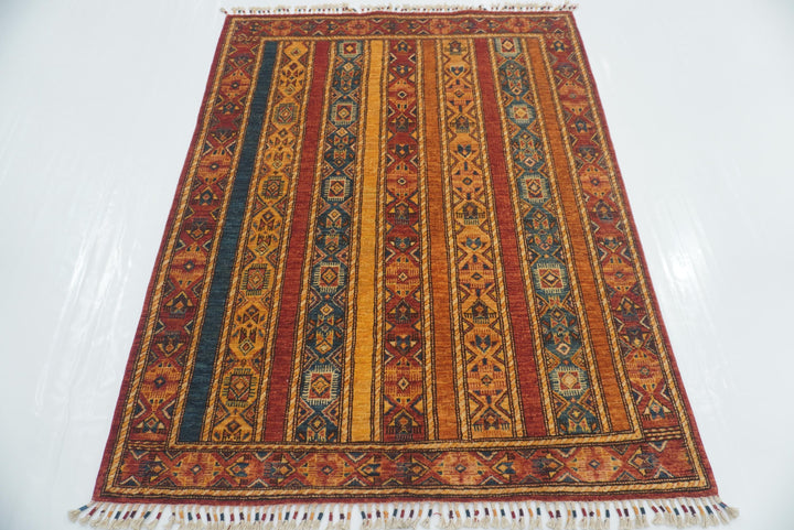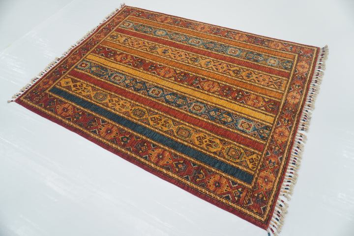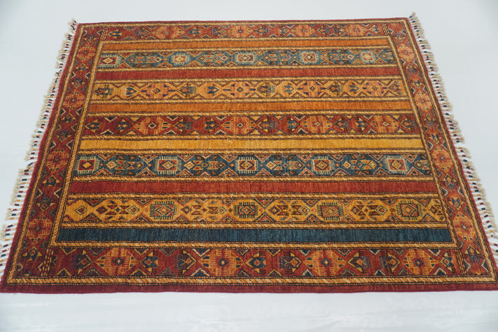 4'2"x5'4" Red Turkish Hand Knotted Wool Rug