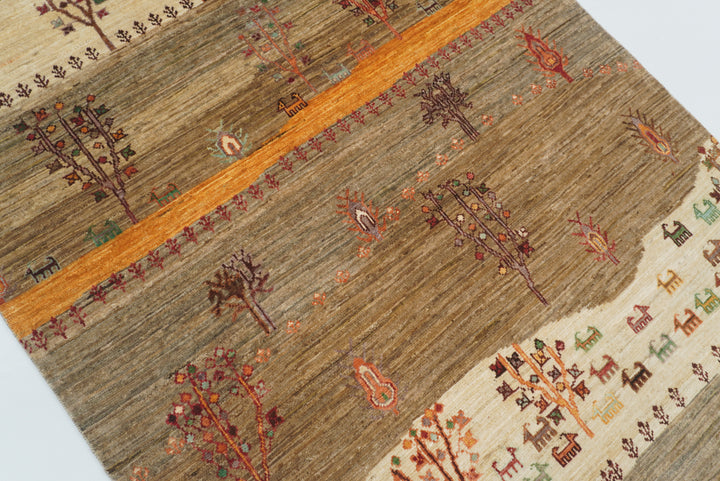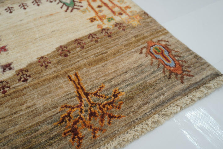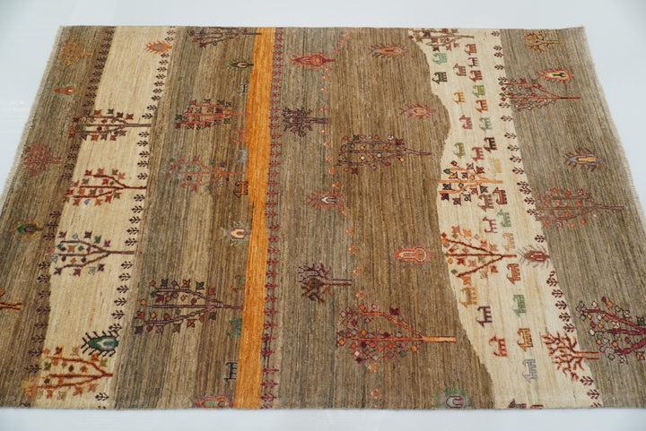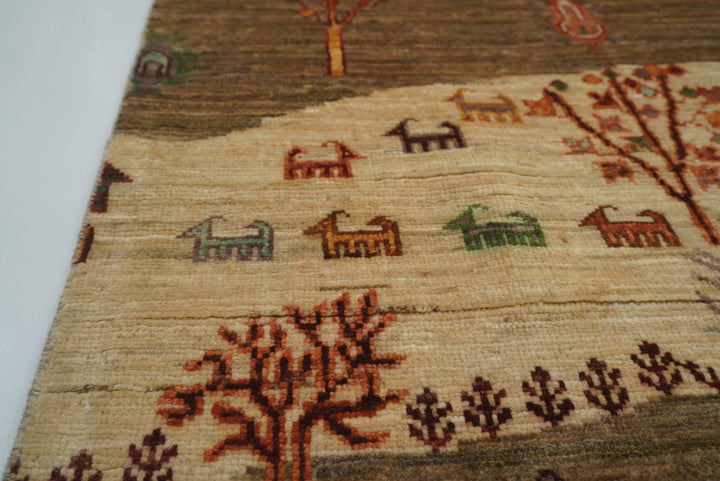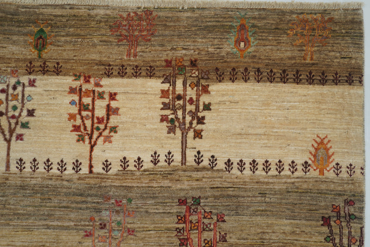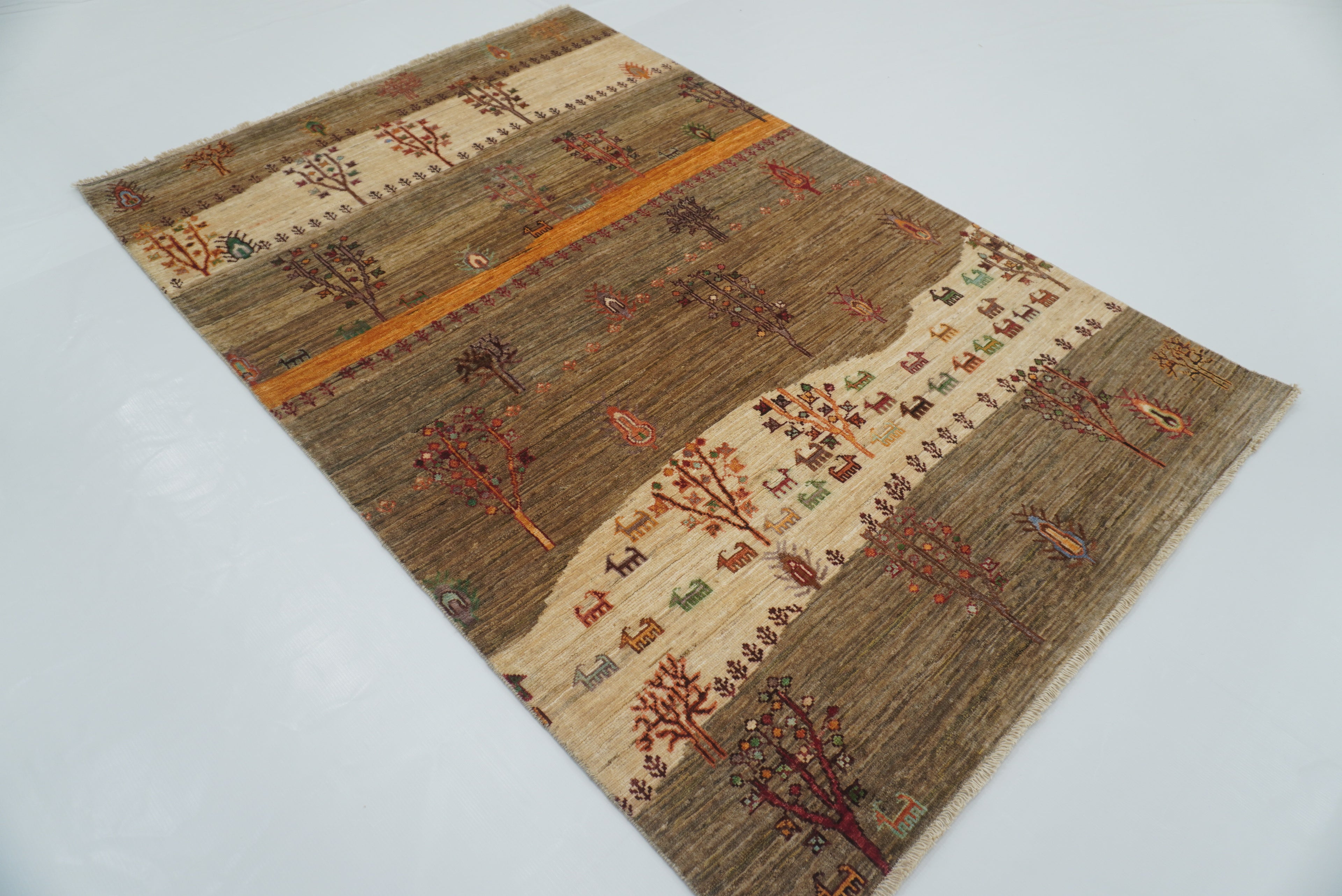 4x6 Beige Brown Gabbeh Tree of life Afghan Hand knotted Rug