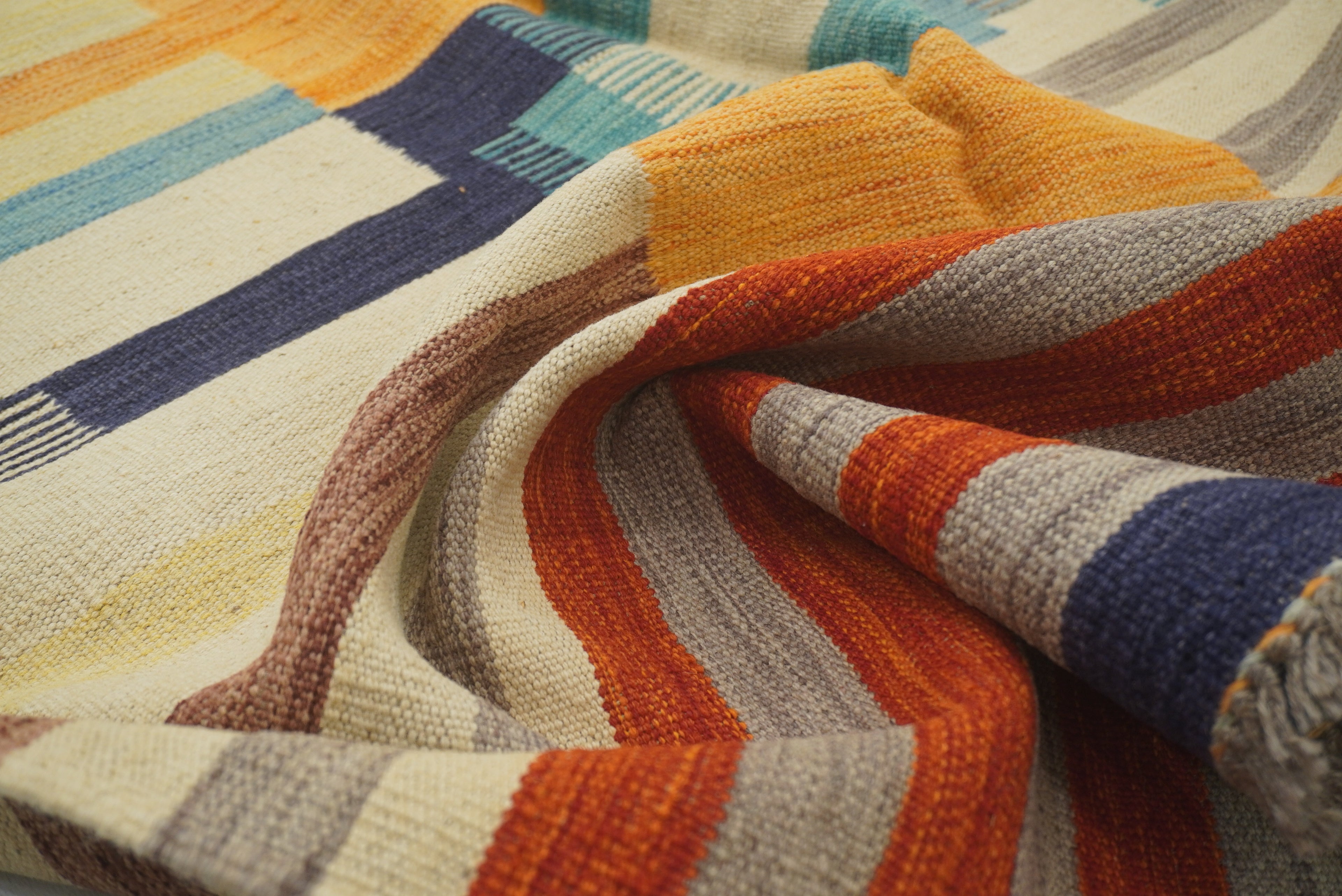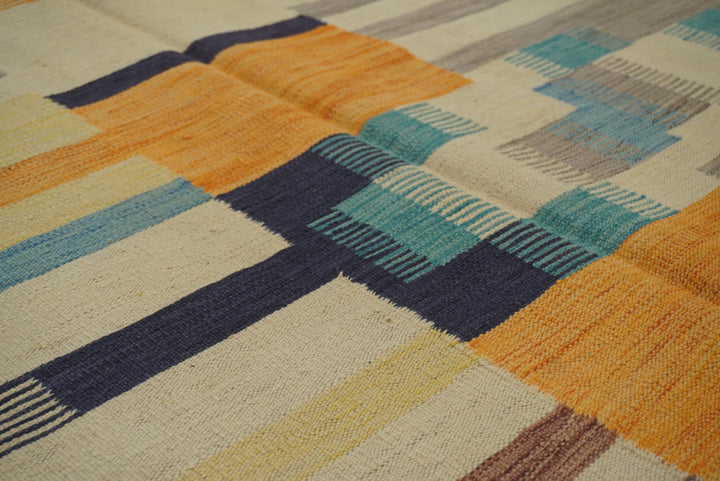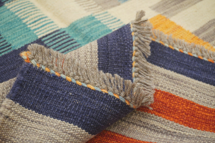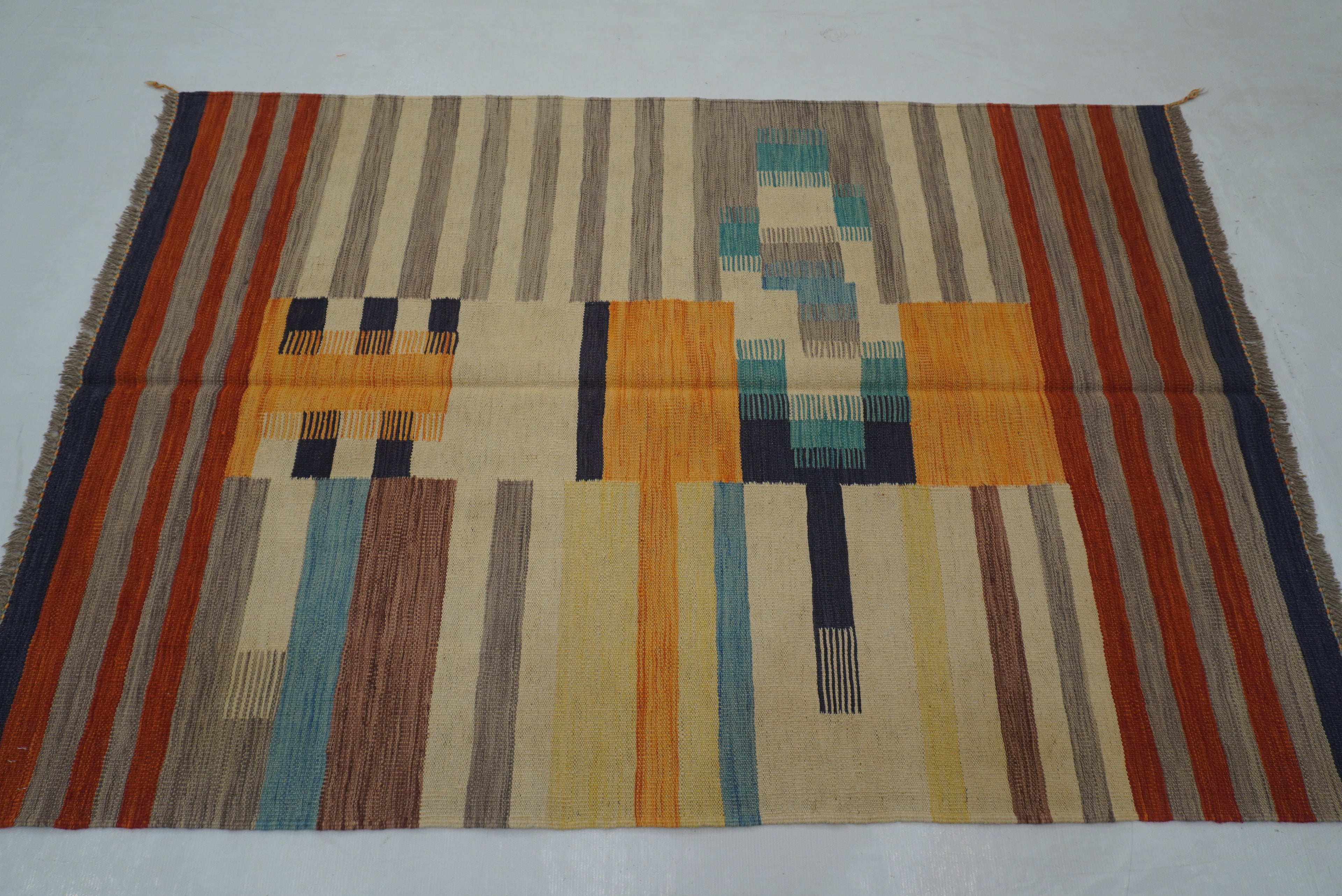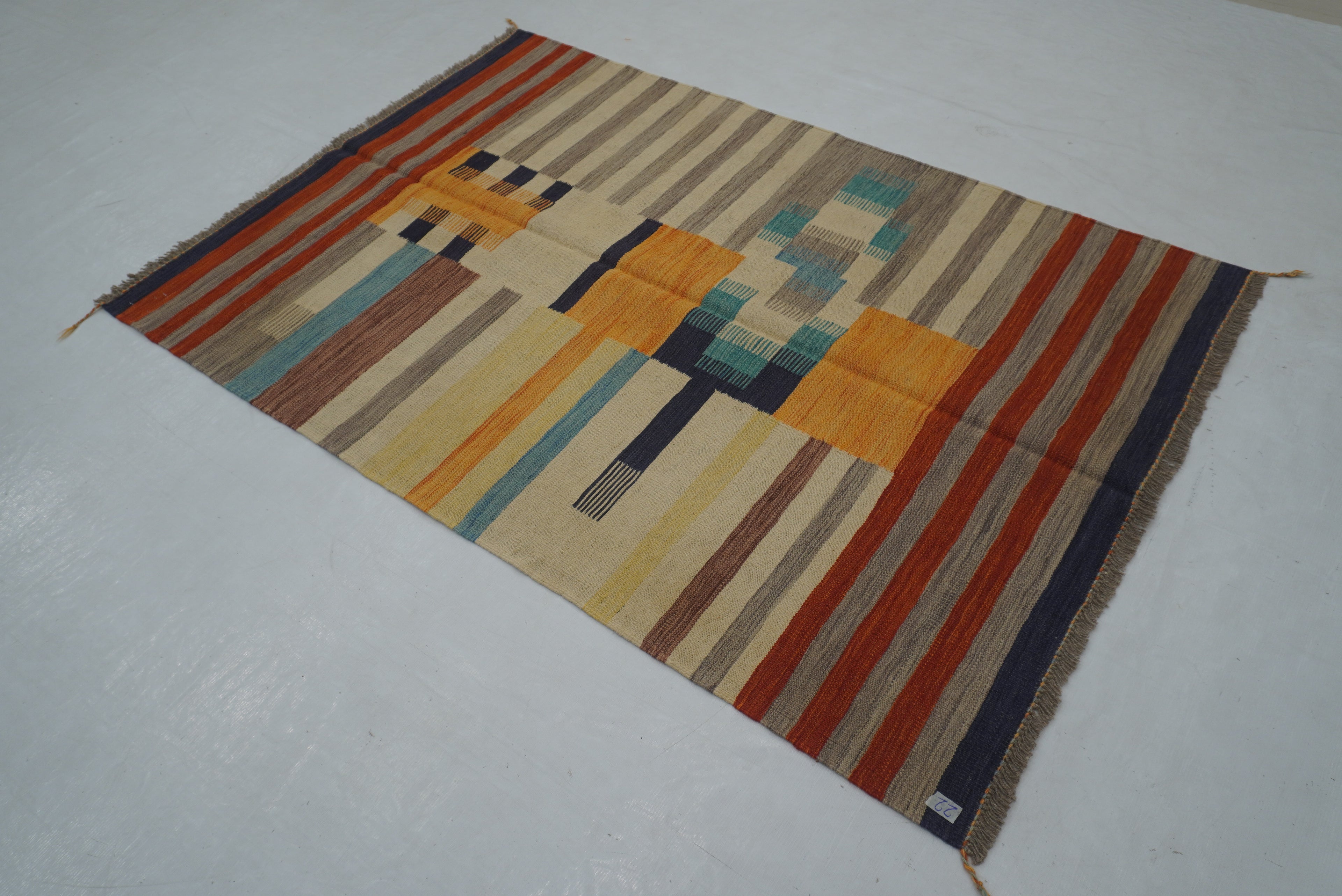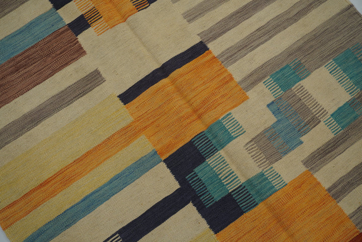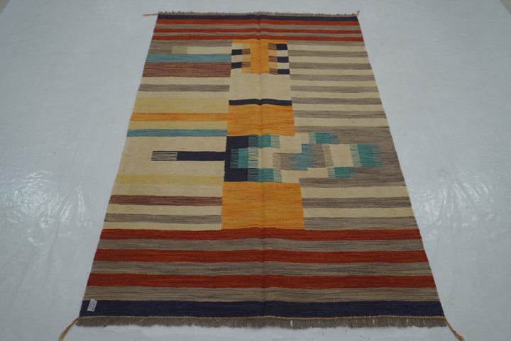 4x6 Beige Gray Afghan Modern Hand woven Kilim Rug