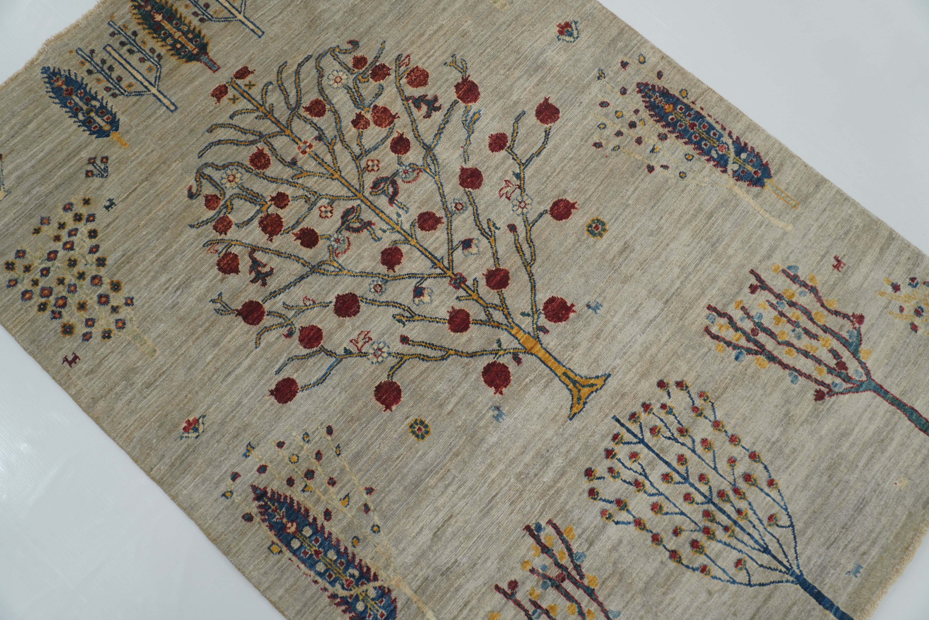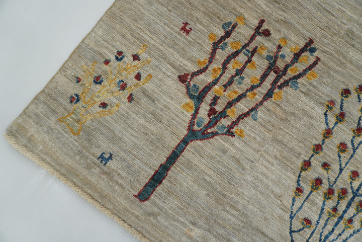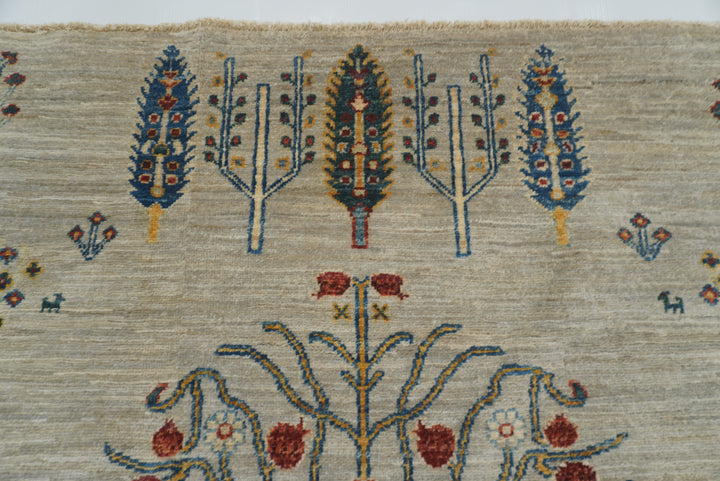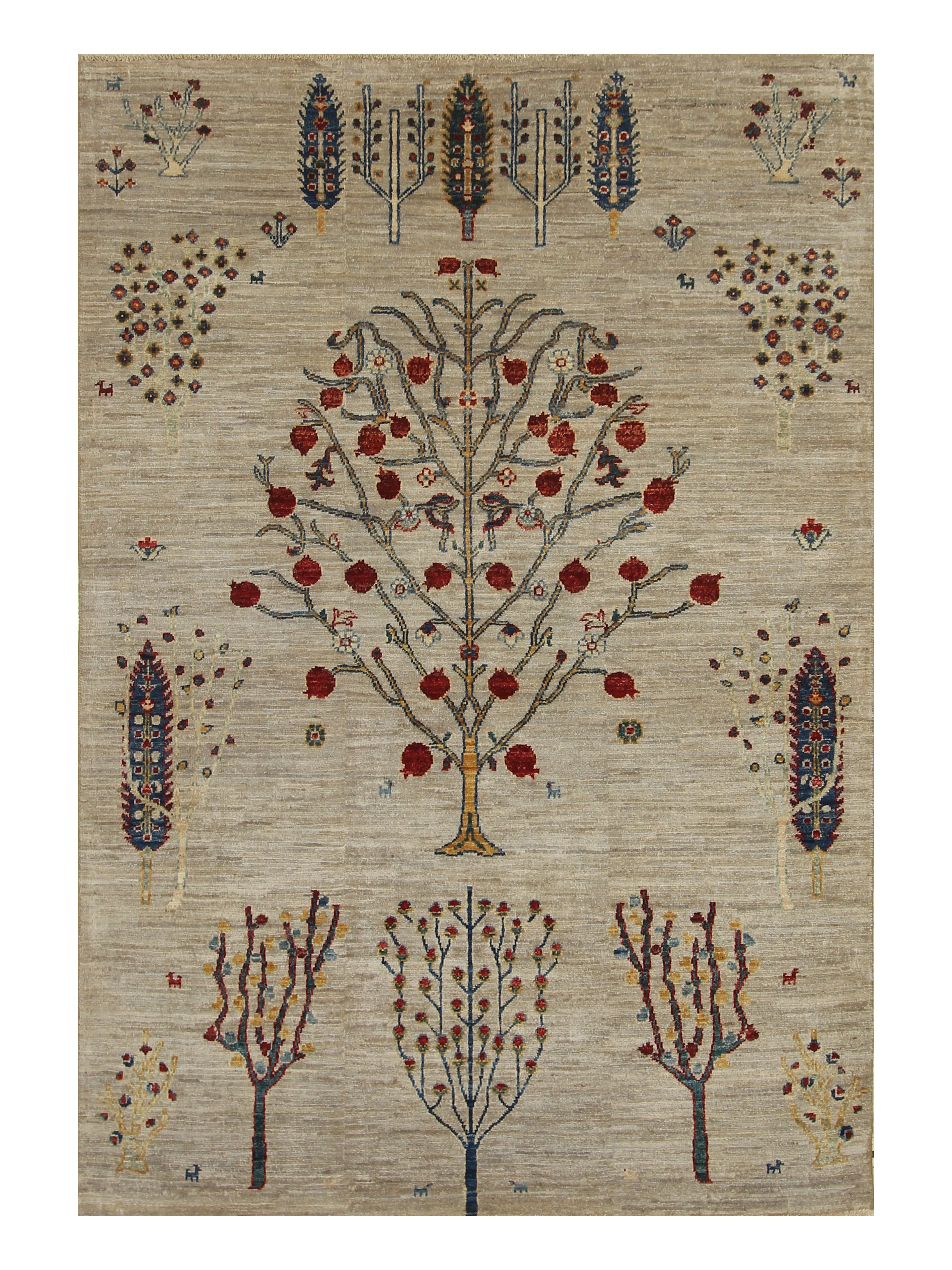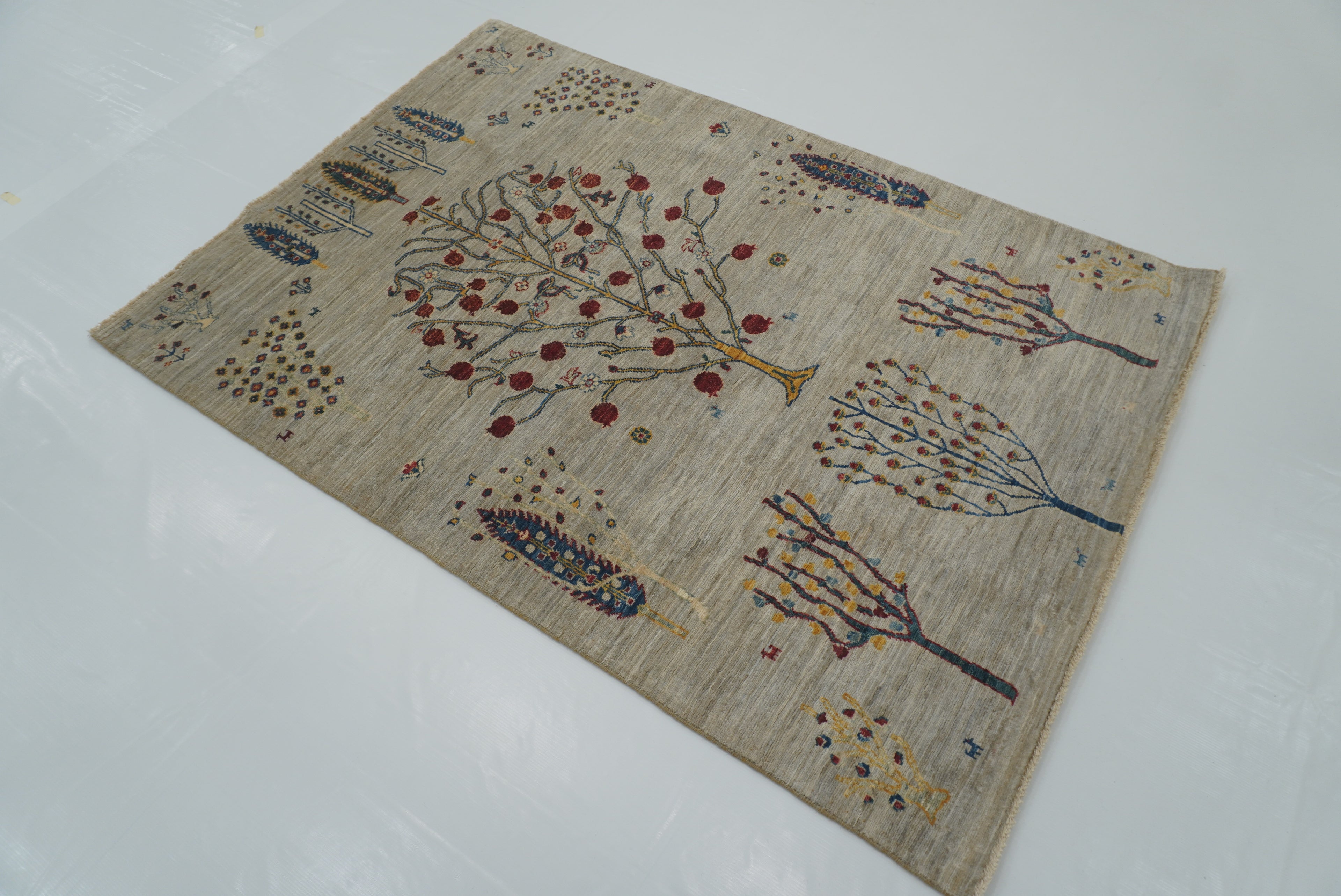 4x6 Gray Tree of Life Gabbeh Hand Knotted Afghan Rug
