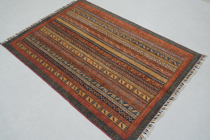 4x6 Red Turkish Vintage Hand Knotted Rug