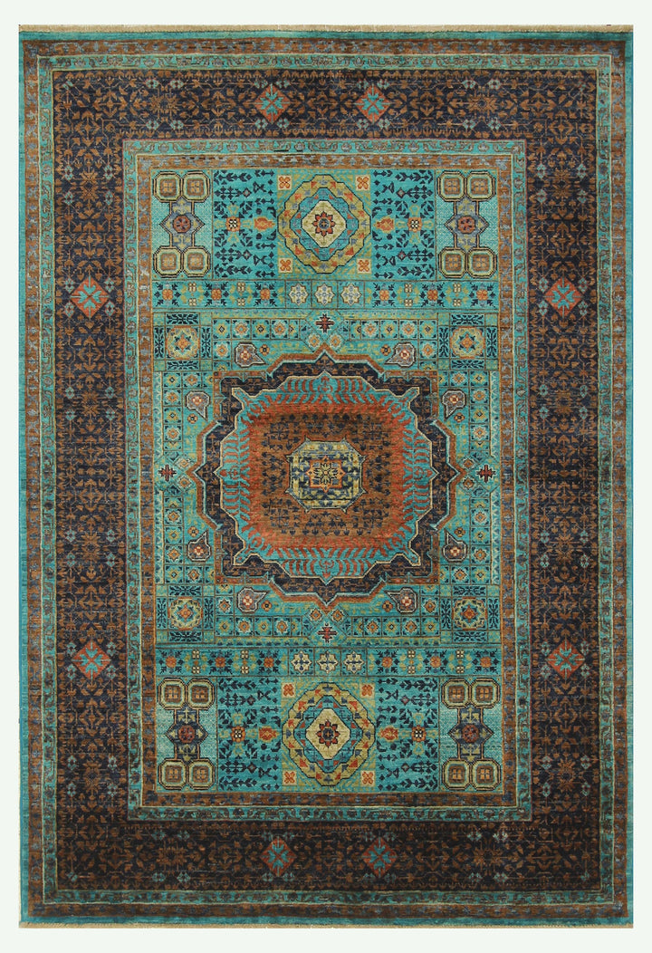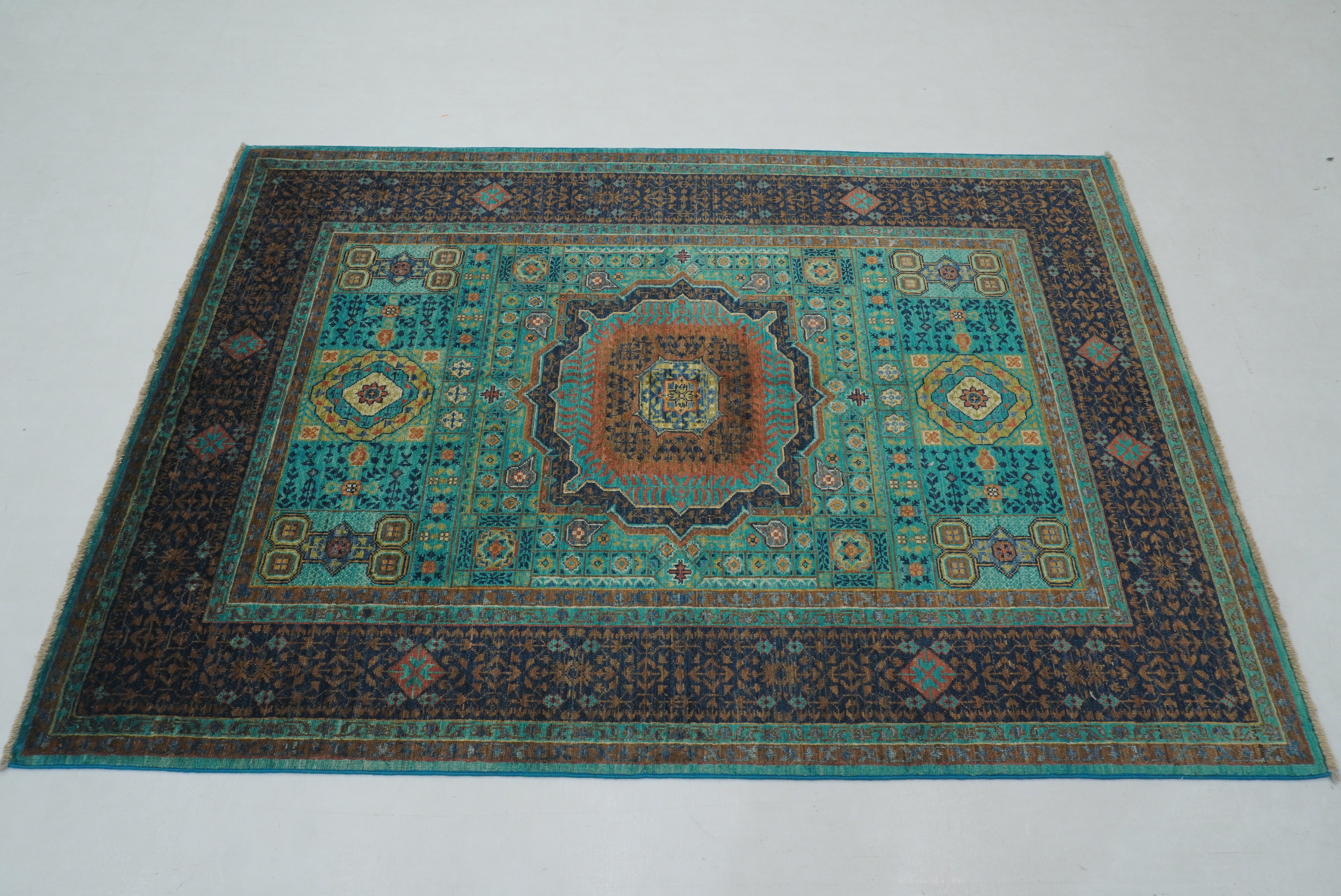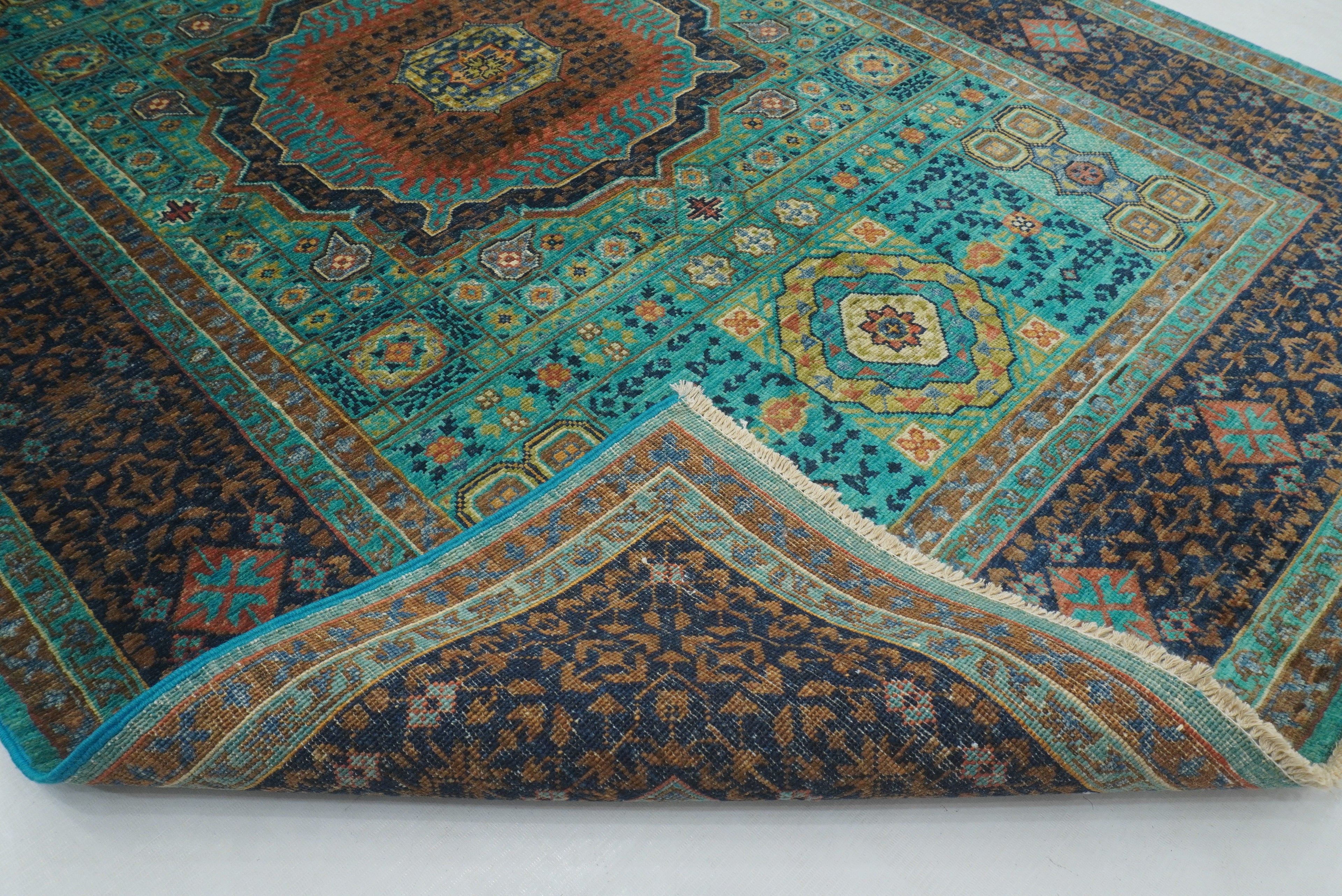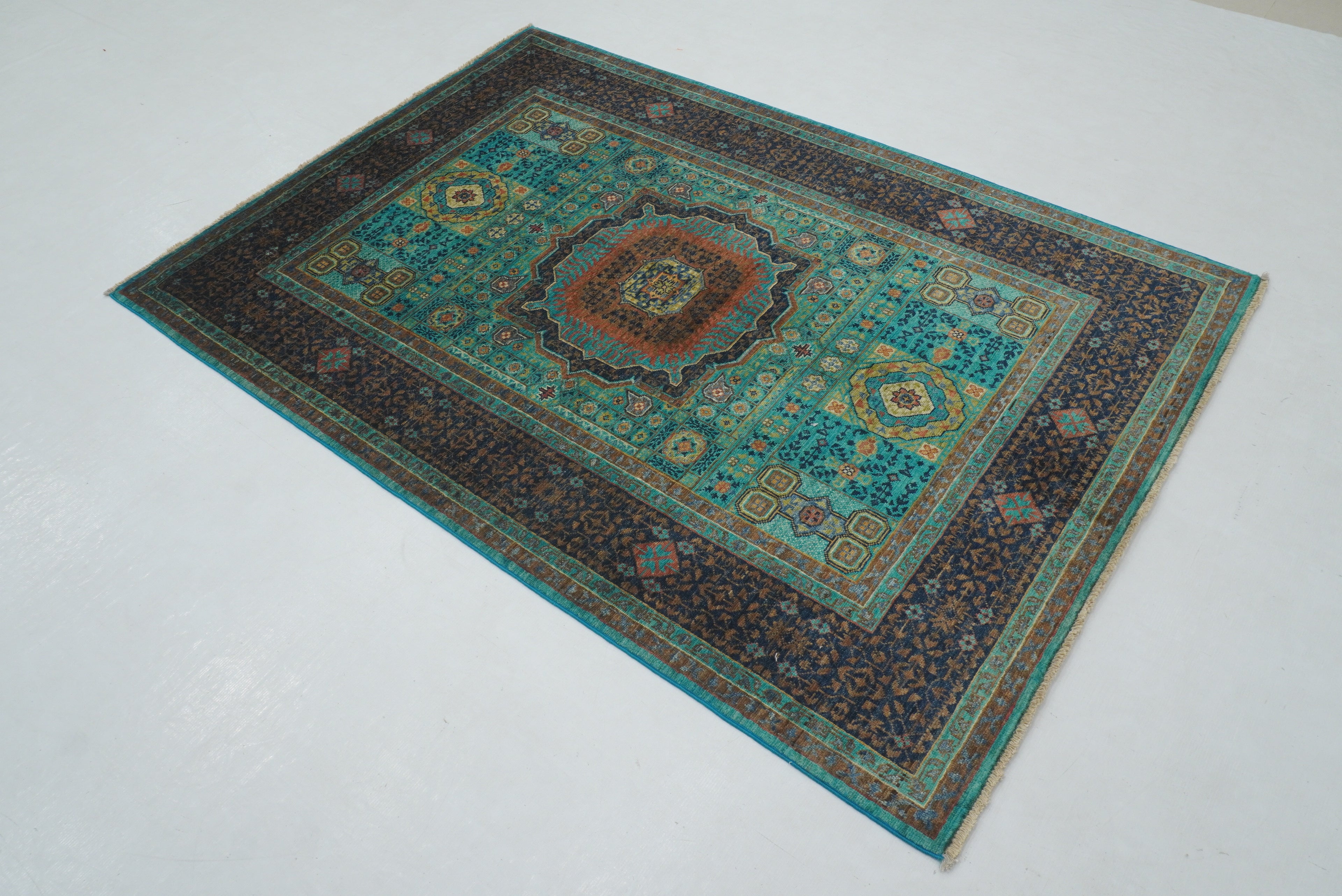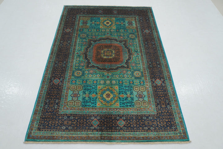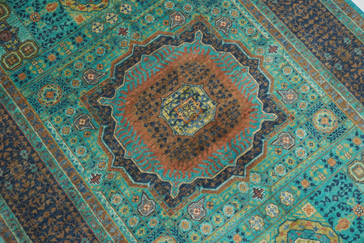 4x6 Turquoise Blue Mamluk Turkish Hand Knotted Medallion Rug