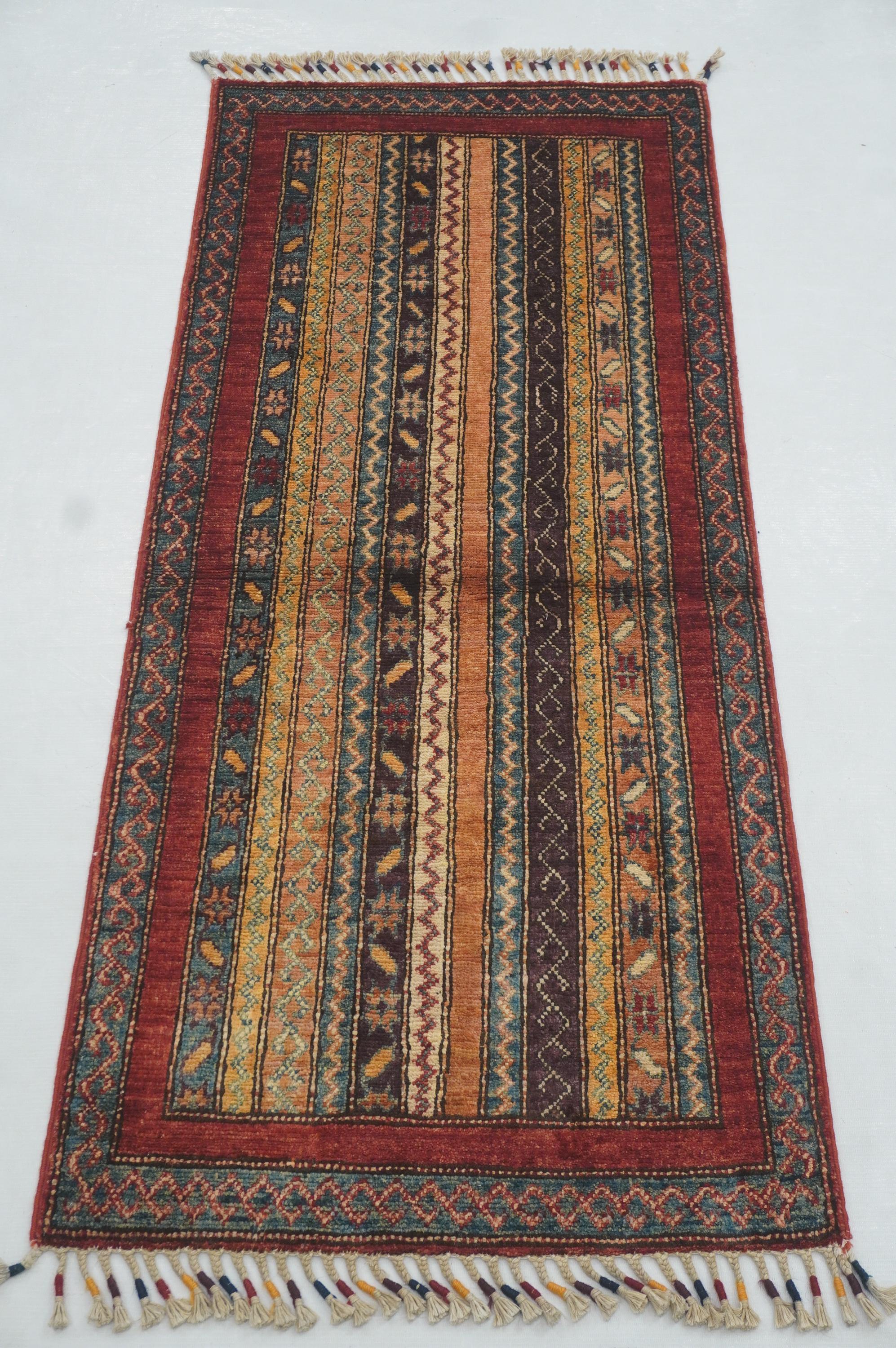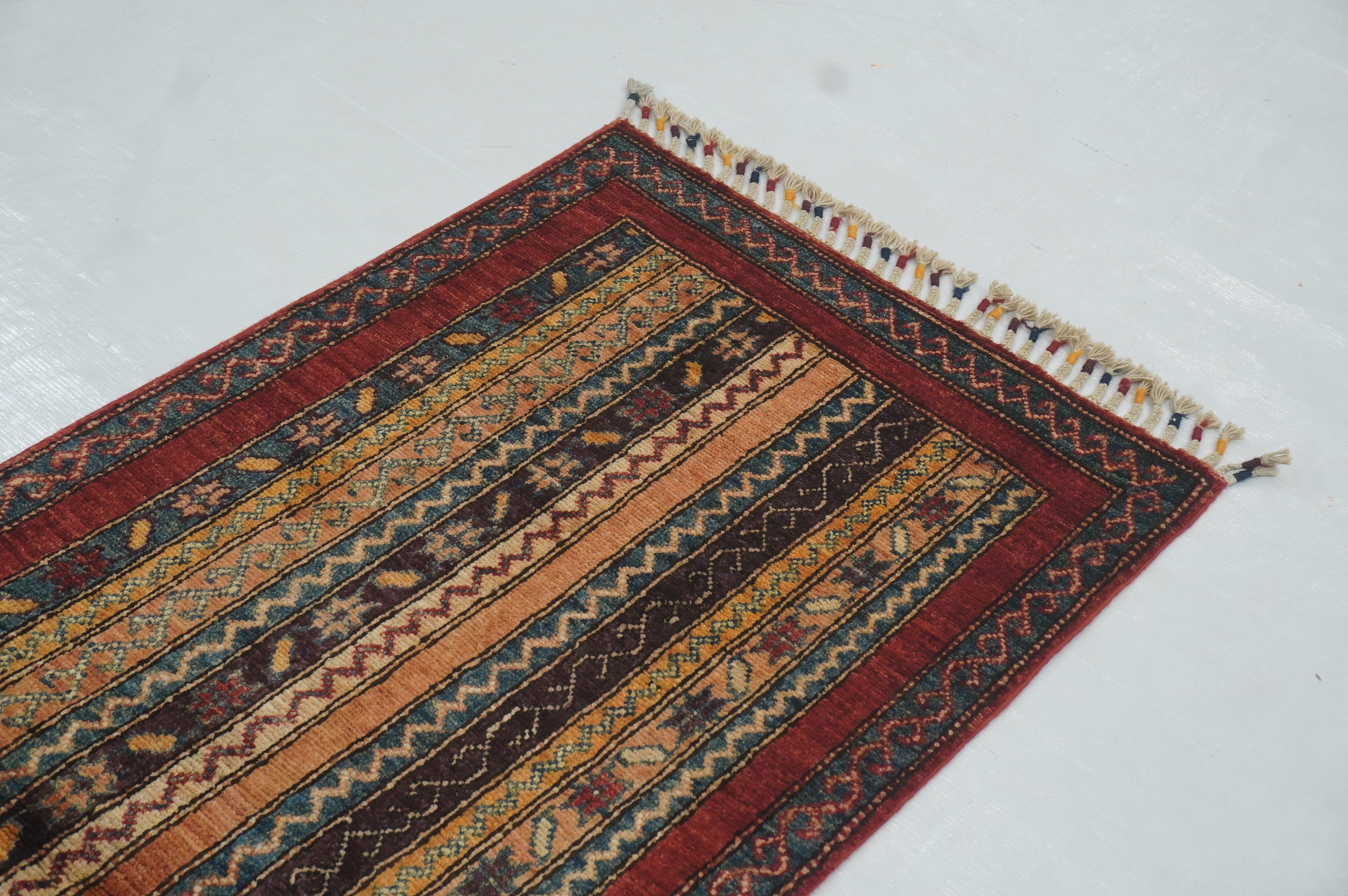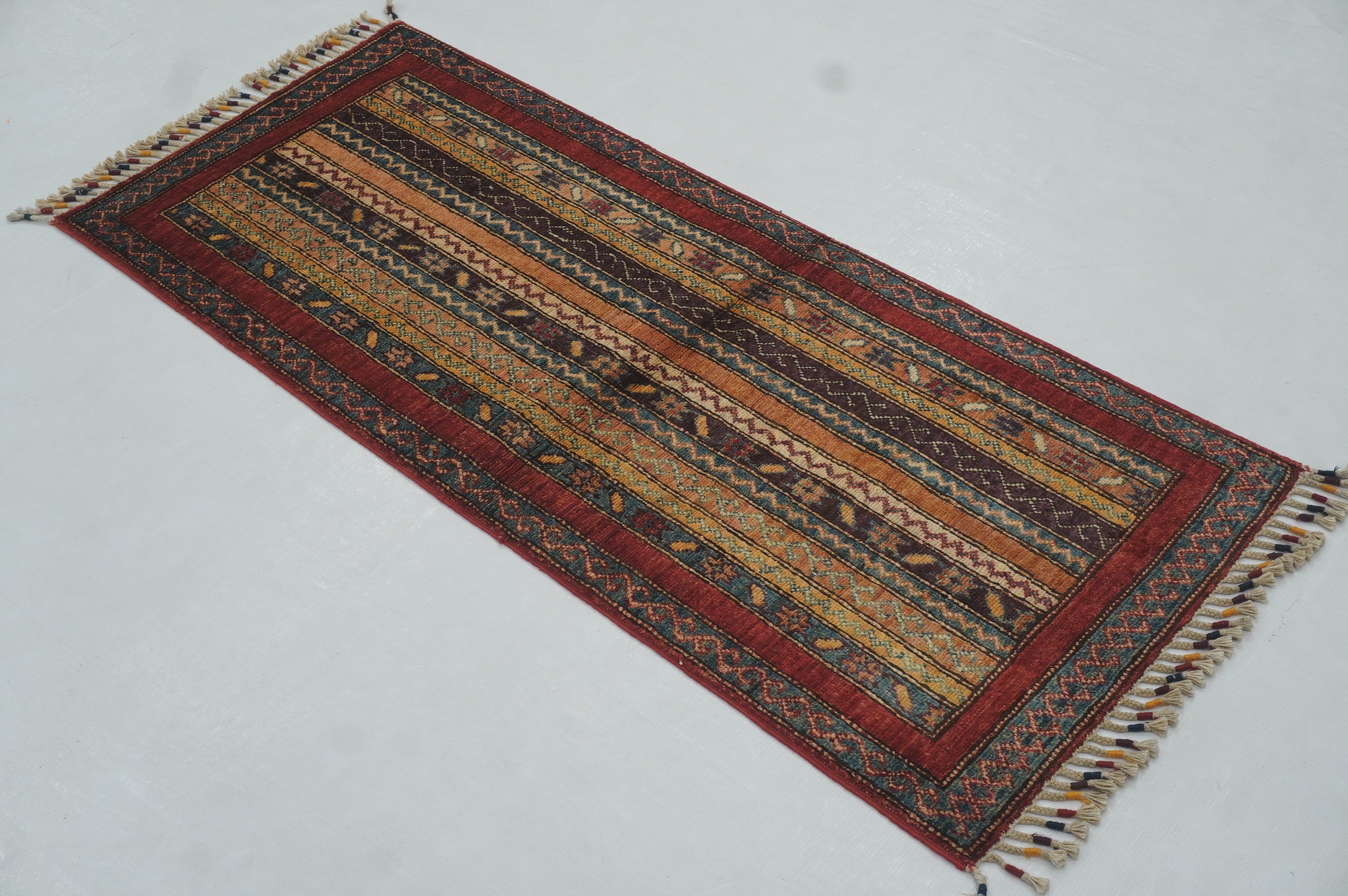 2x5 ft Red Vintage Turkish Shawl Striped Hand knotted Runner Rug