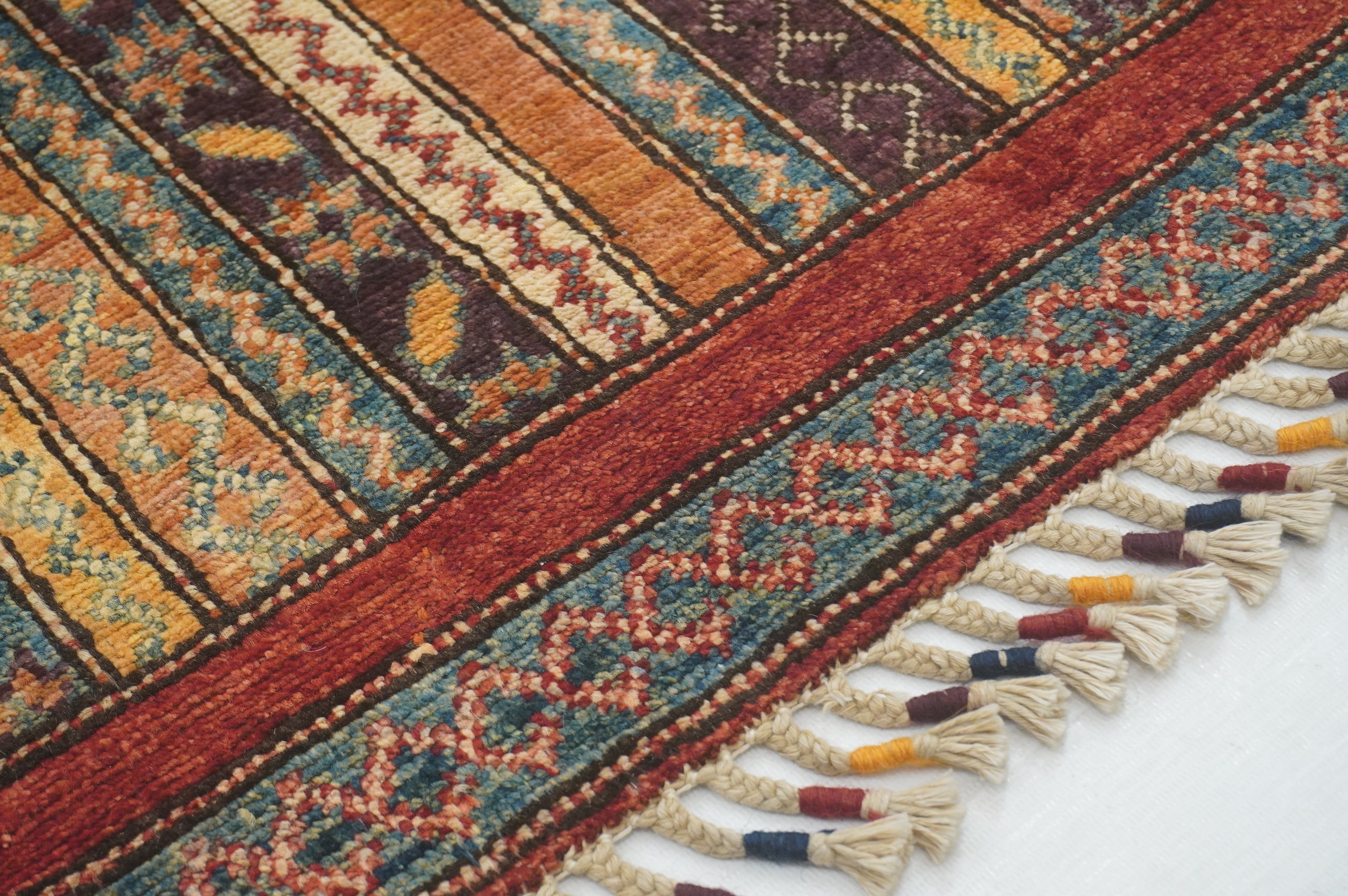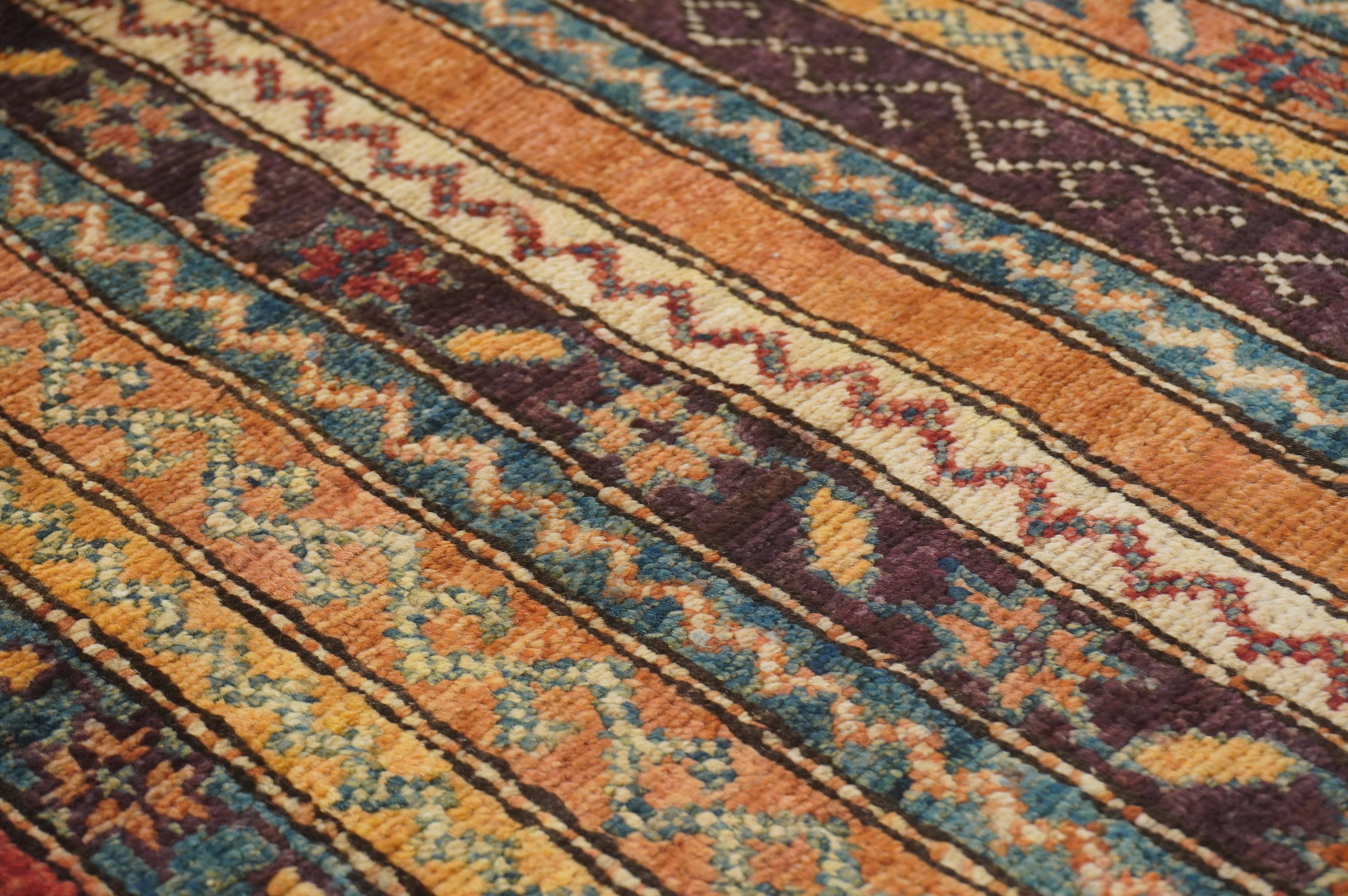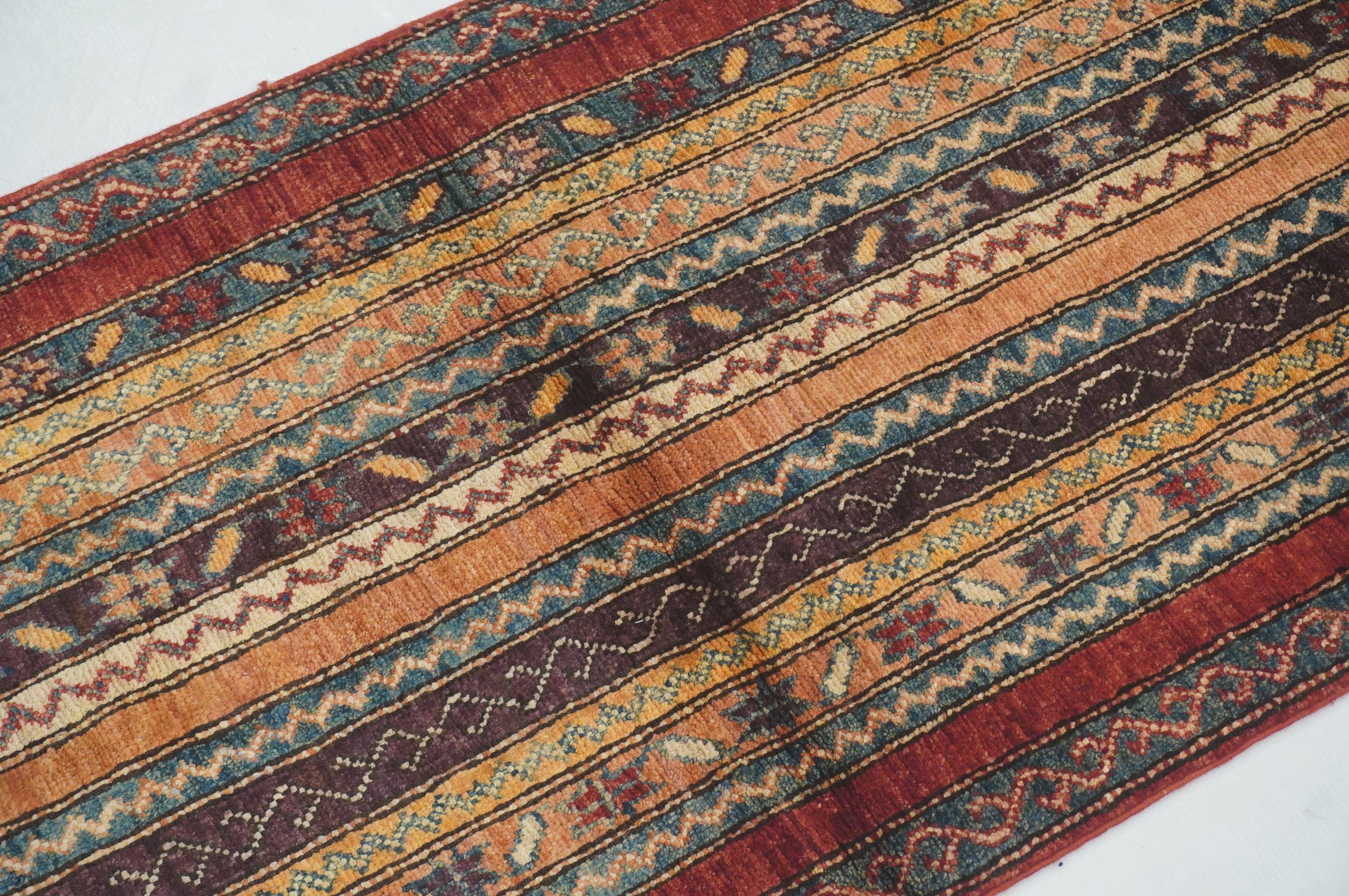 2x5 ft Red Vintage Turkish Shawl Striped Hand knotted Runner Rug