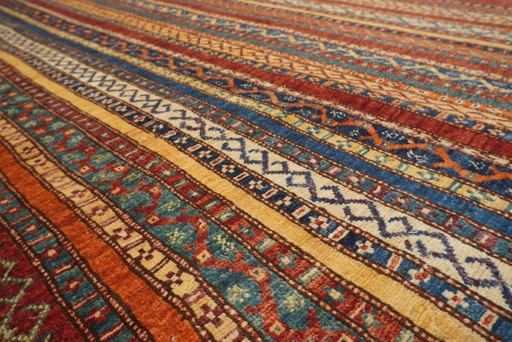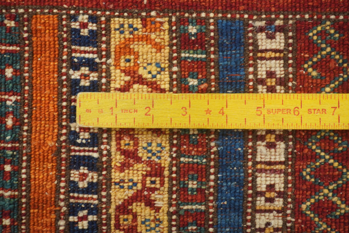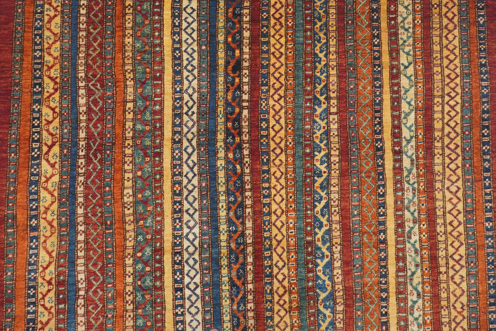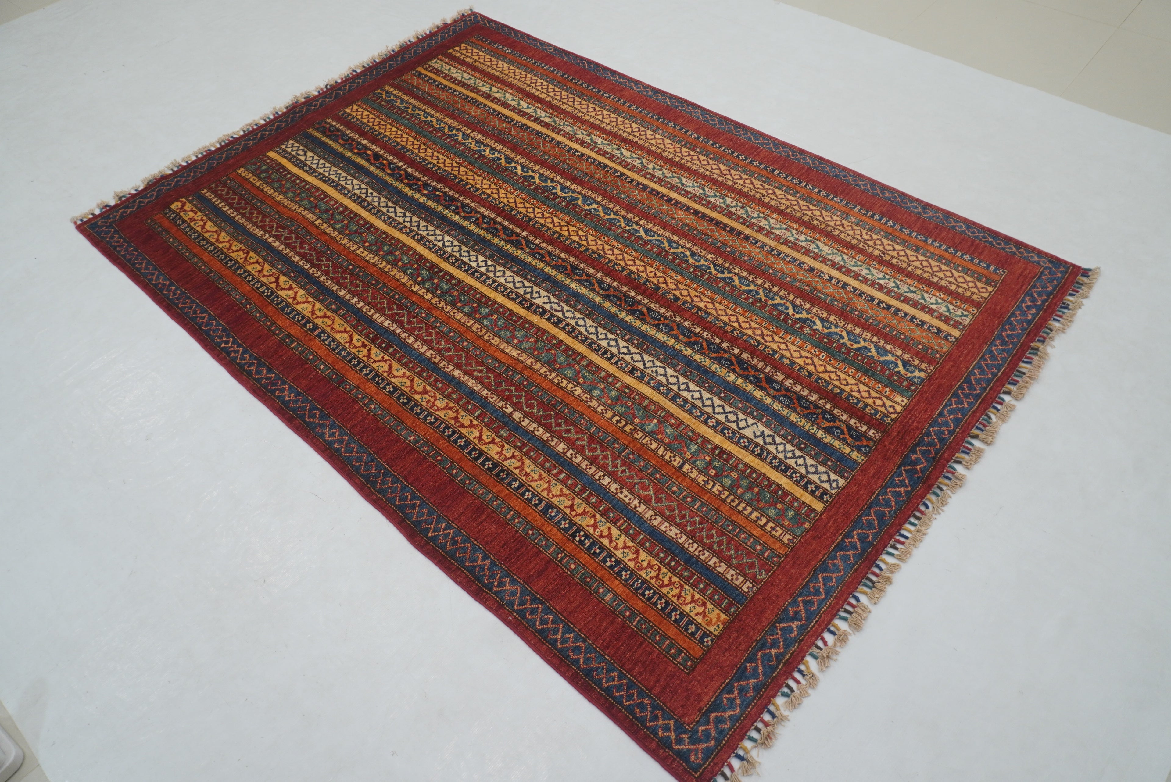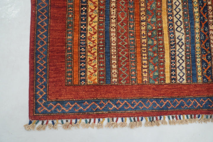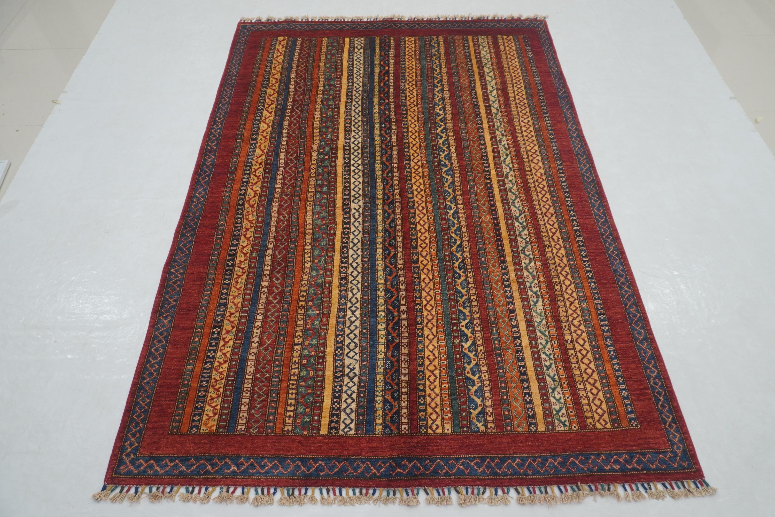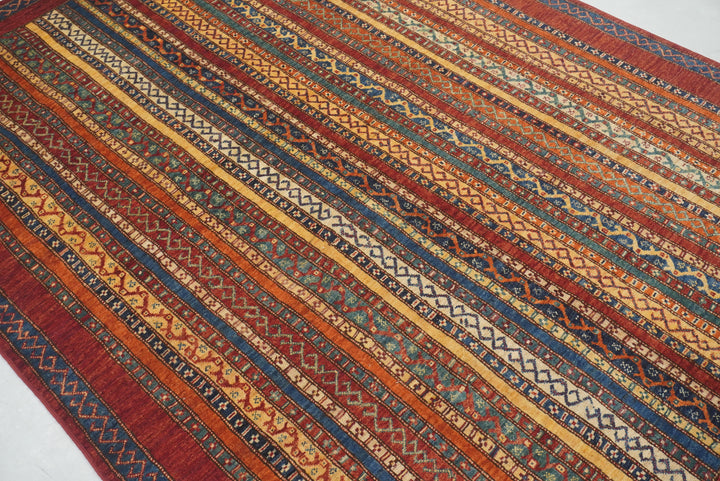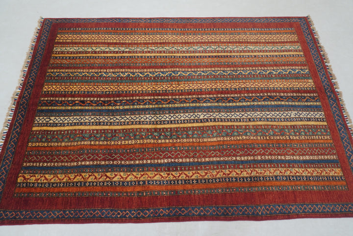 5'4"x7'8" Red Turkish Shawl Pattern Hand Knotted Striped Rug