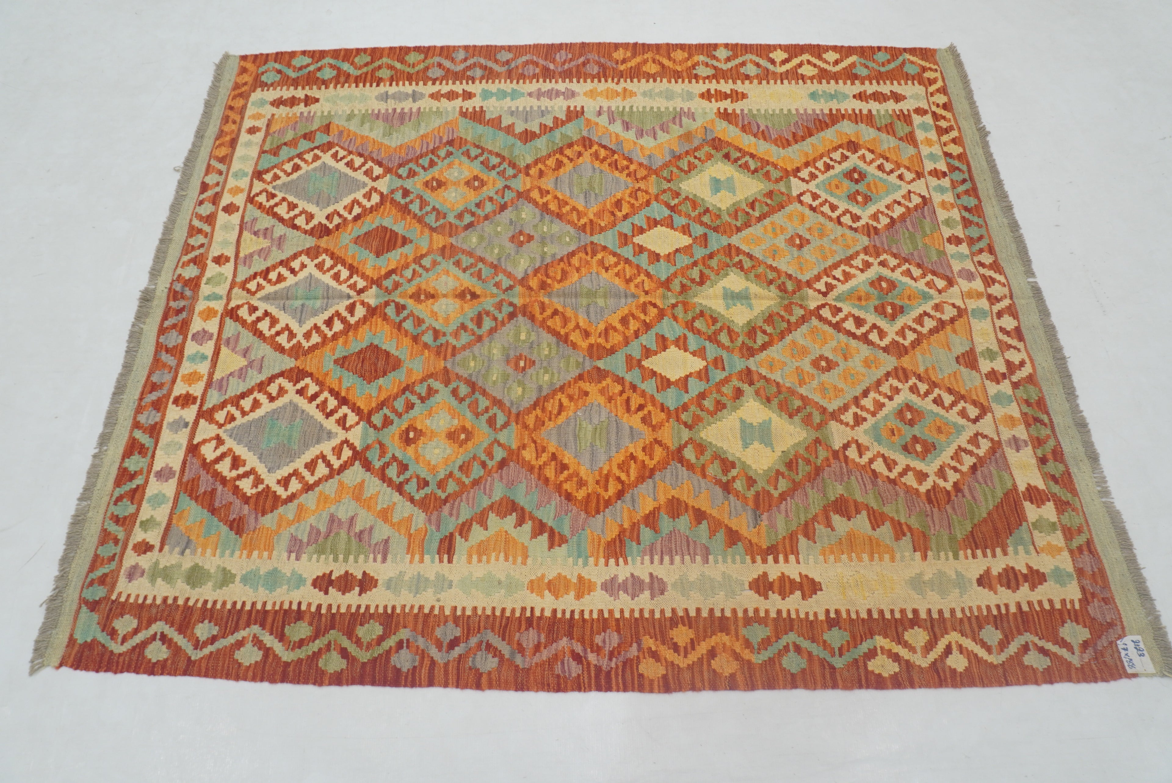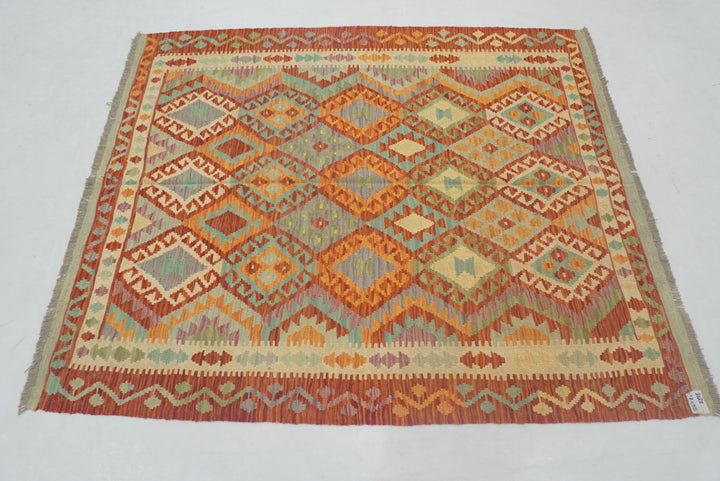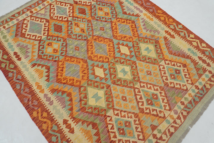 5x6 Rusty Red Afghan Reversible Kilim Rug