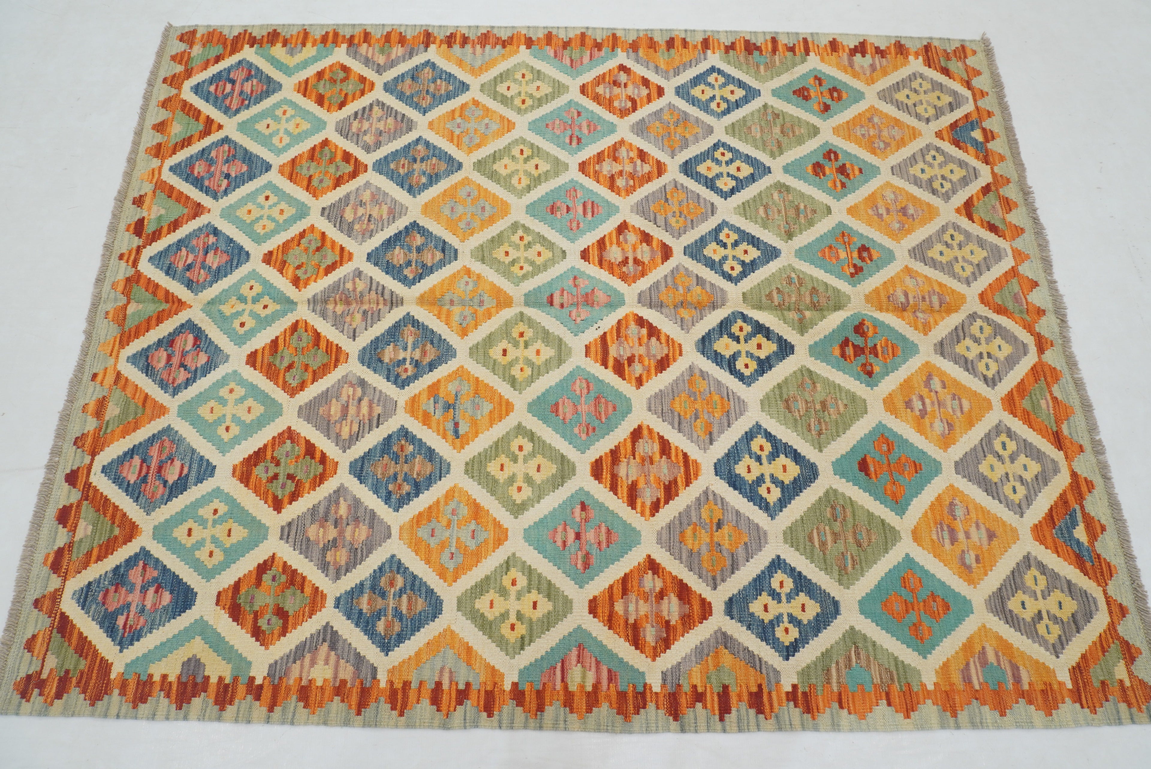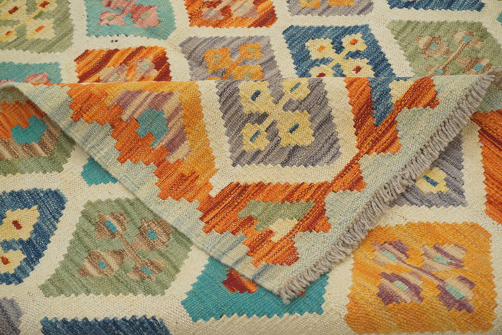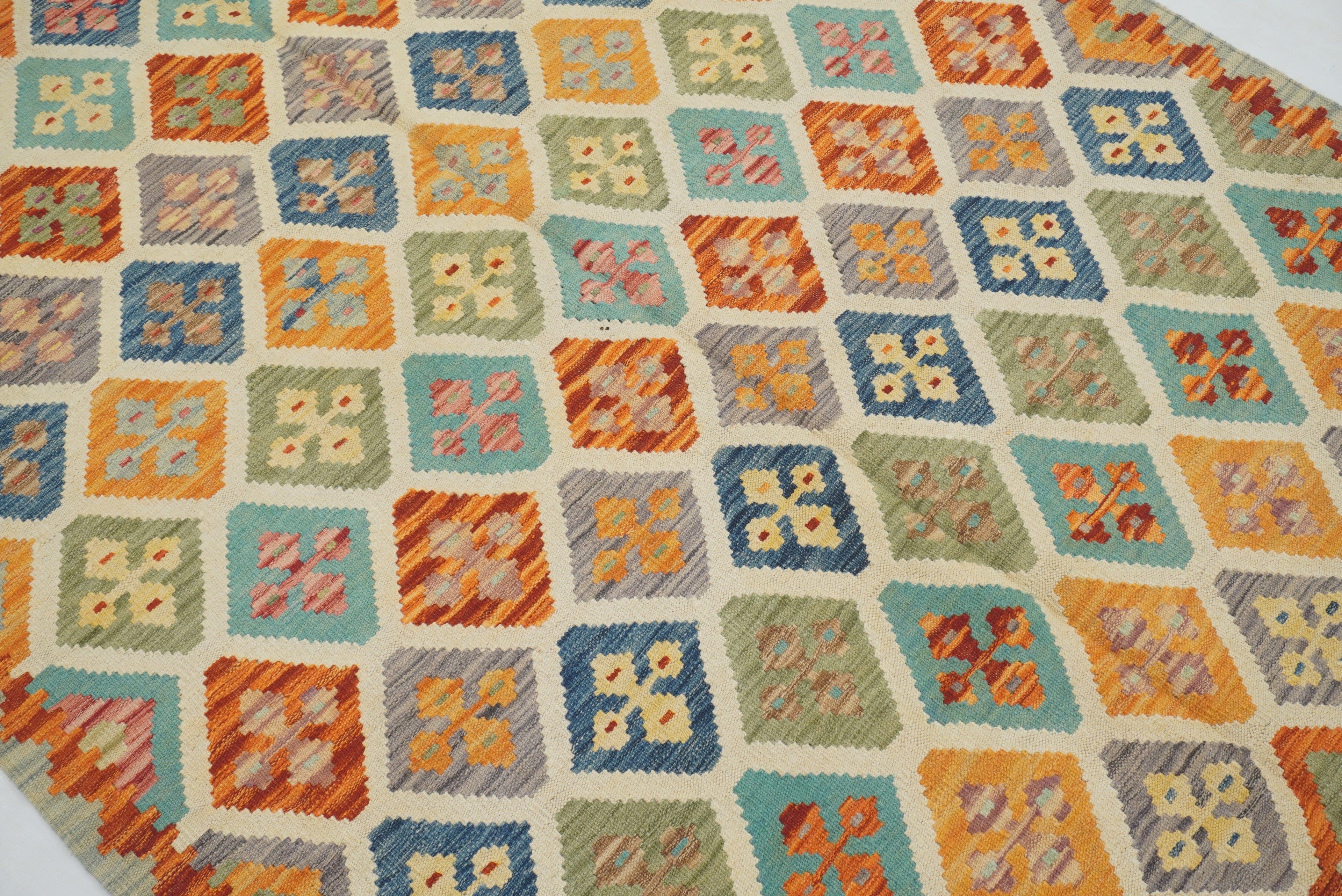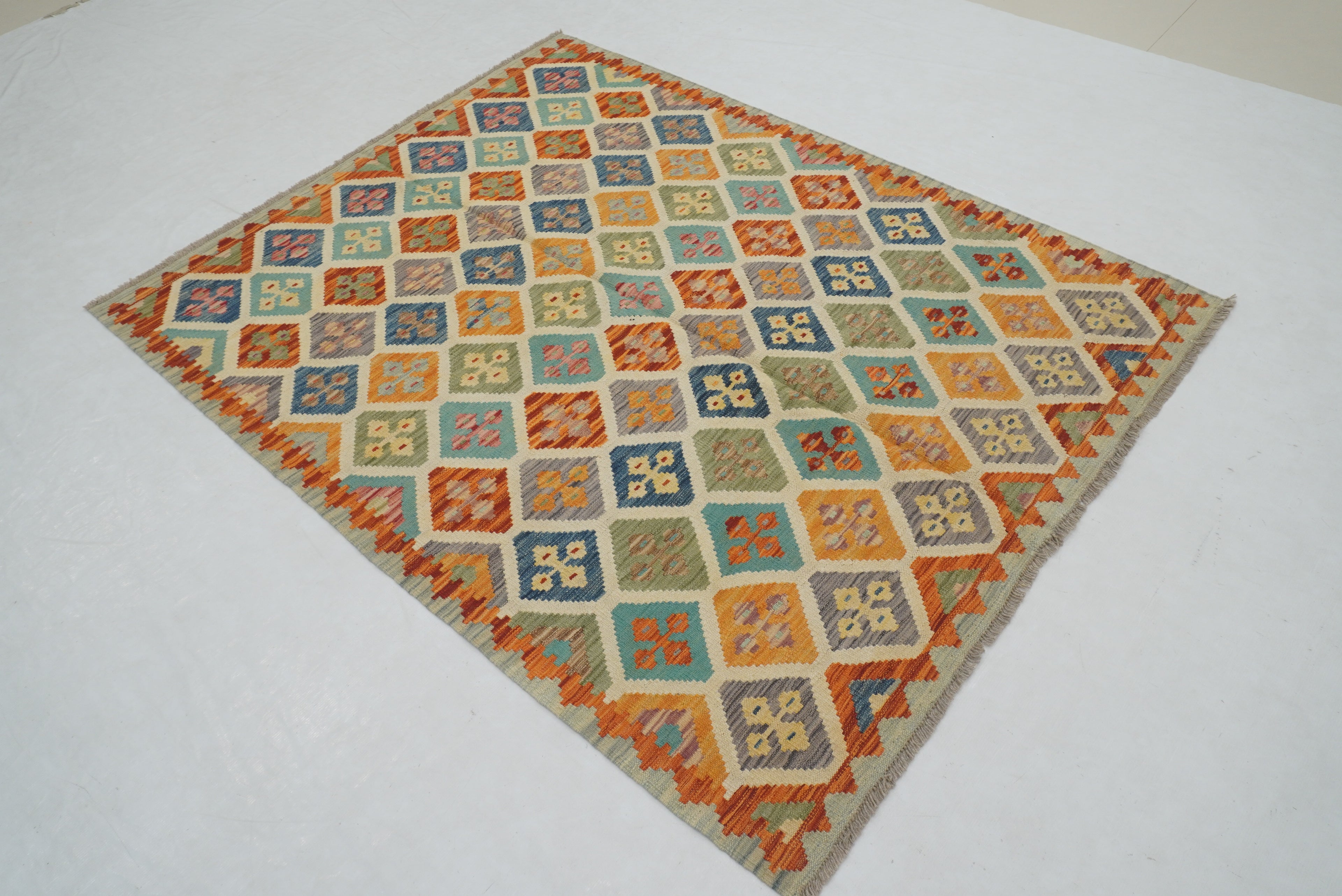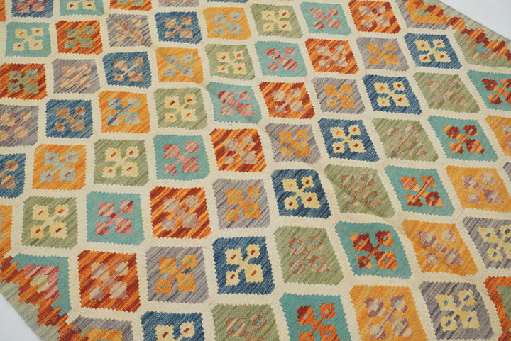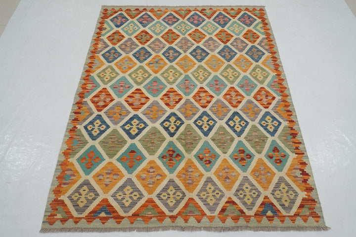 5x7 Beige Afghan Handmade Geometric Kilim Rug