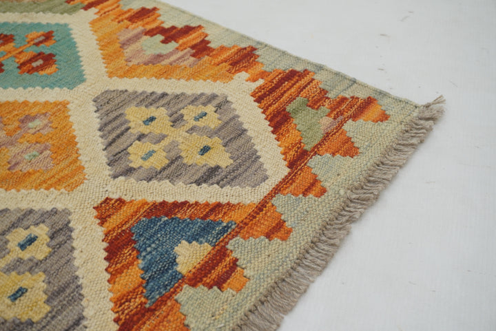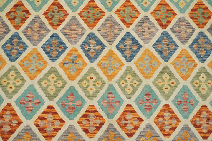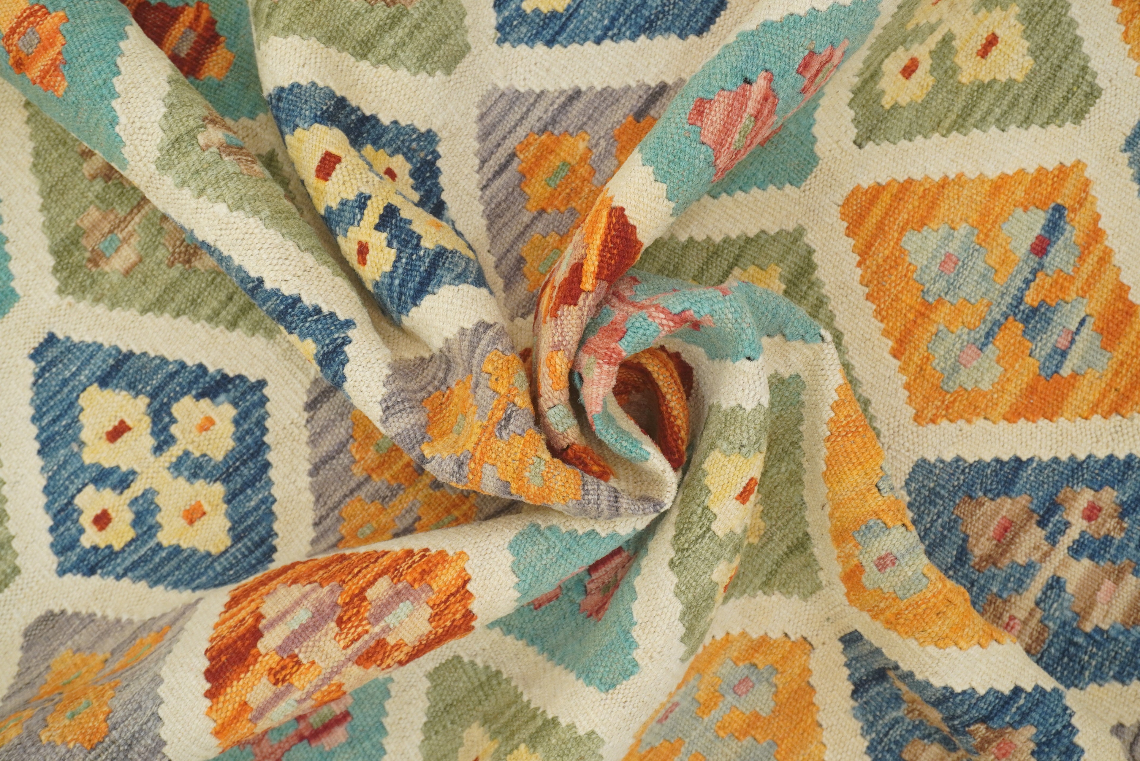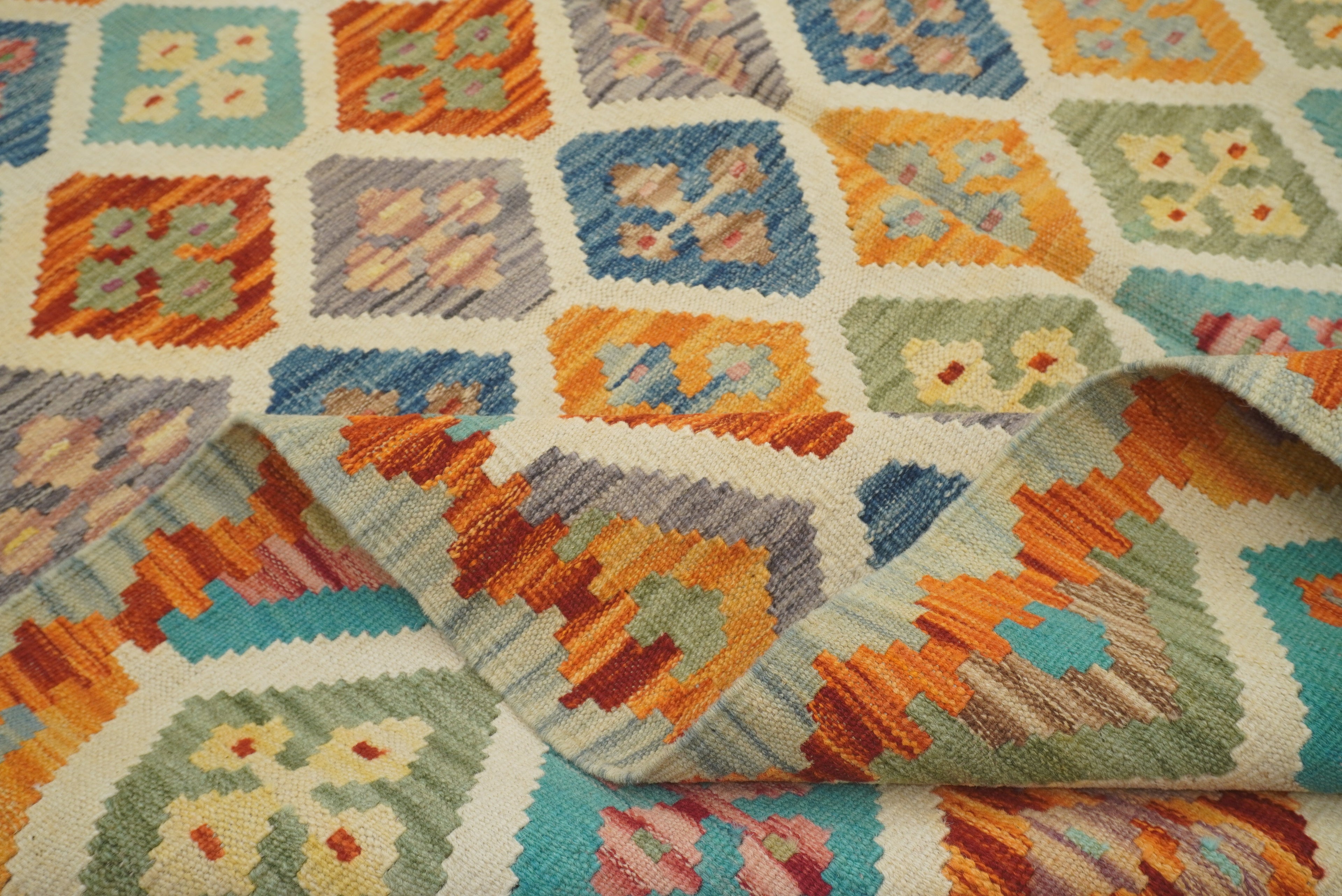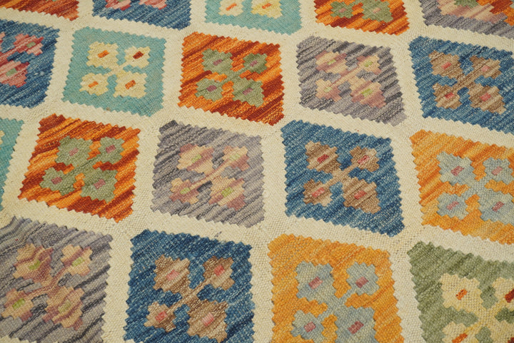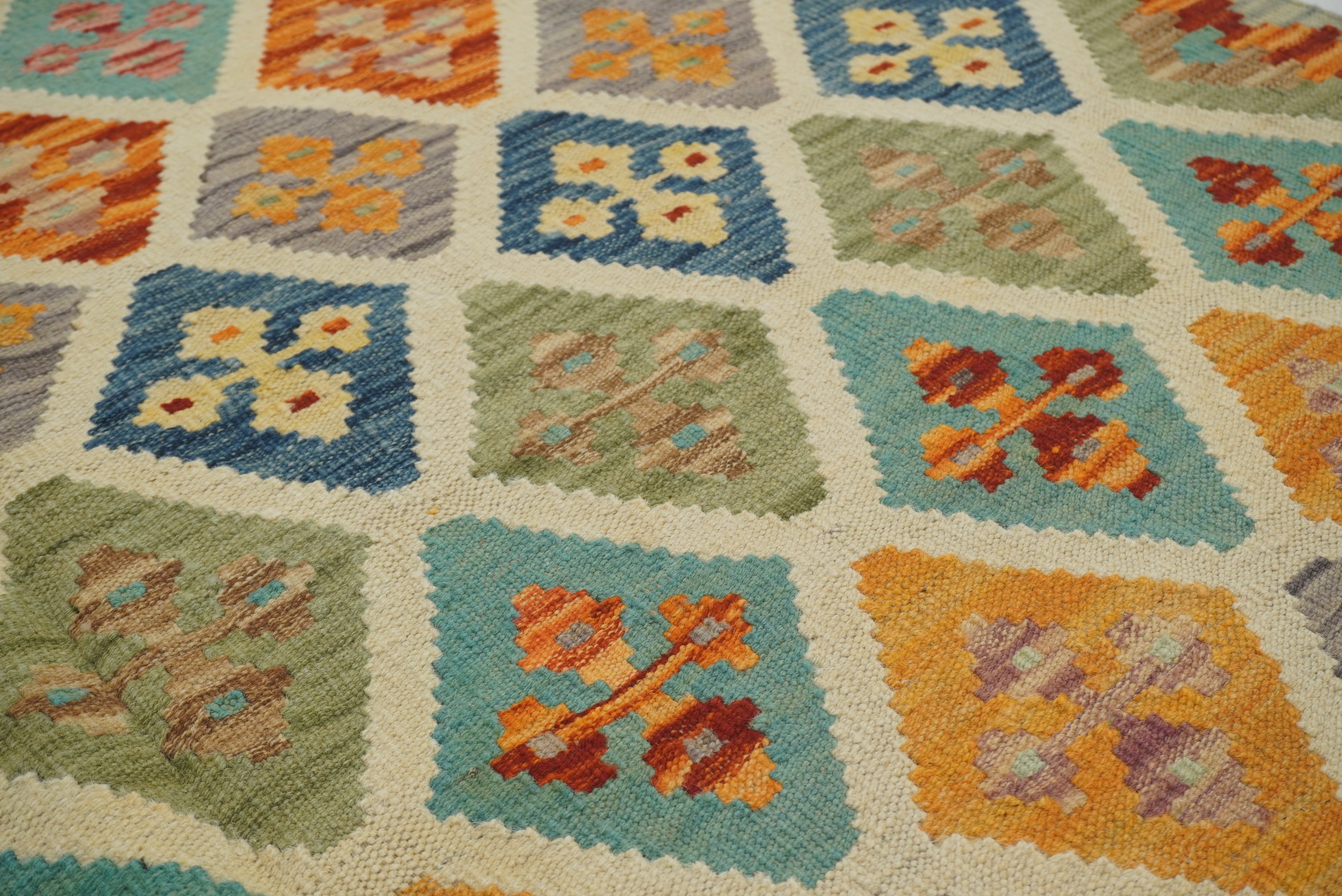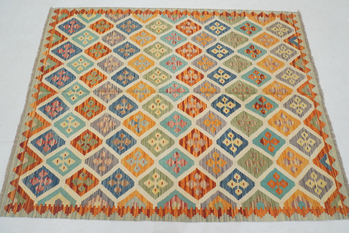 5x7 Beige Afghan Handmade Geometric Kilim Rug