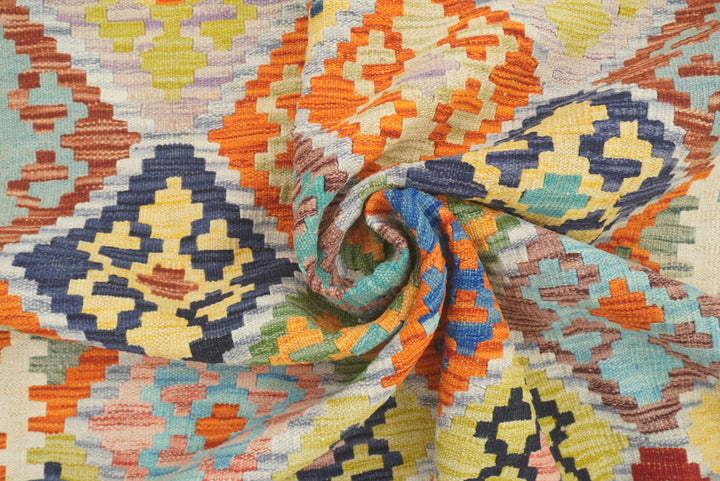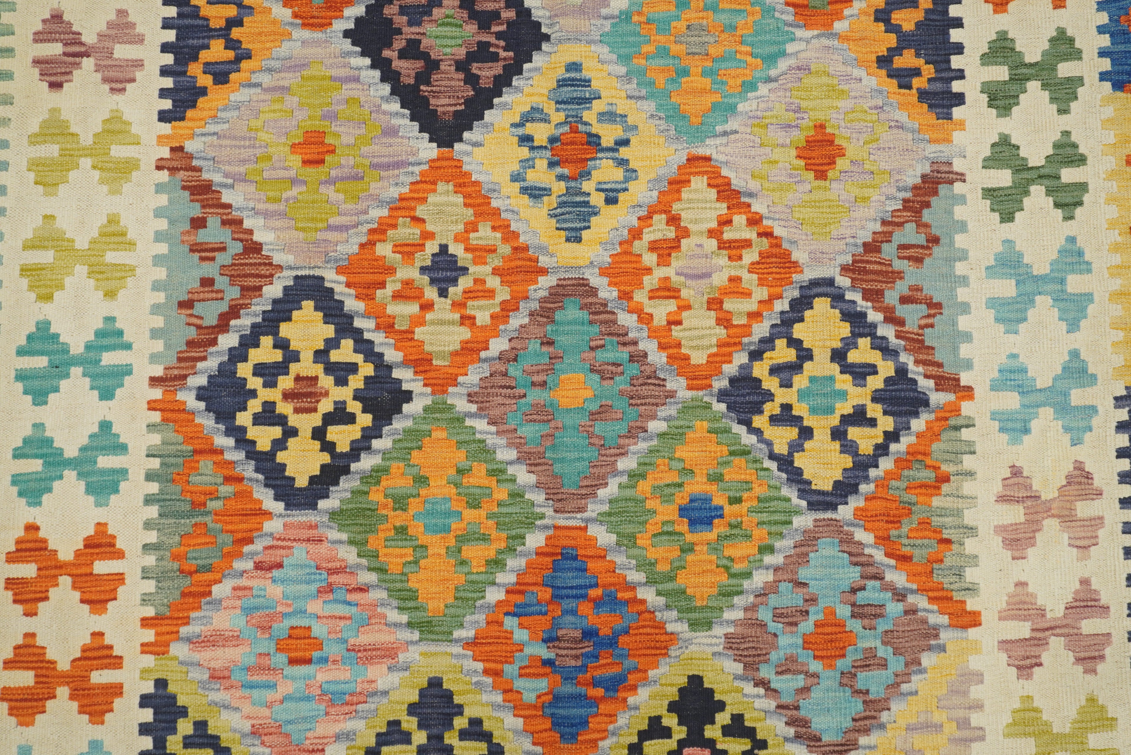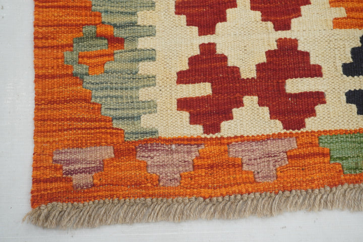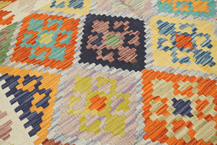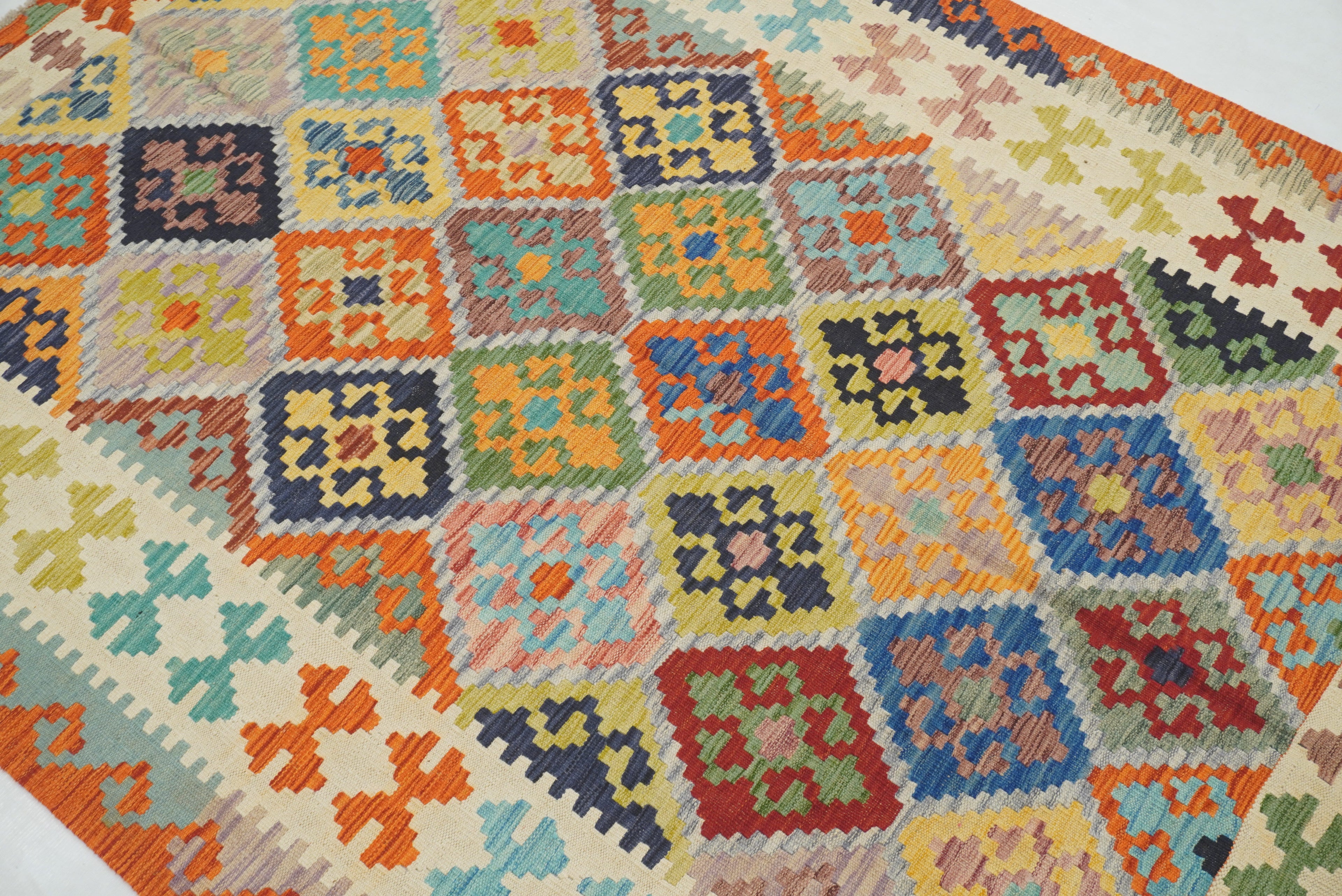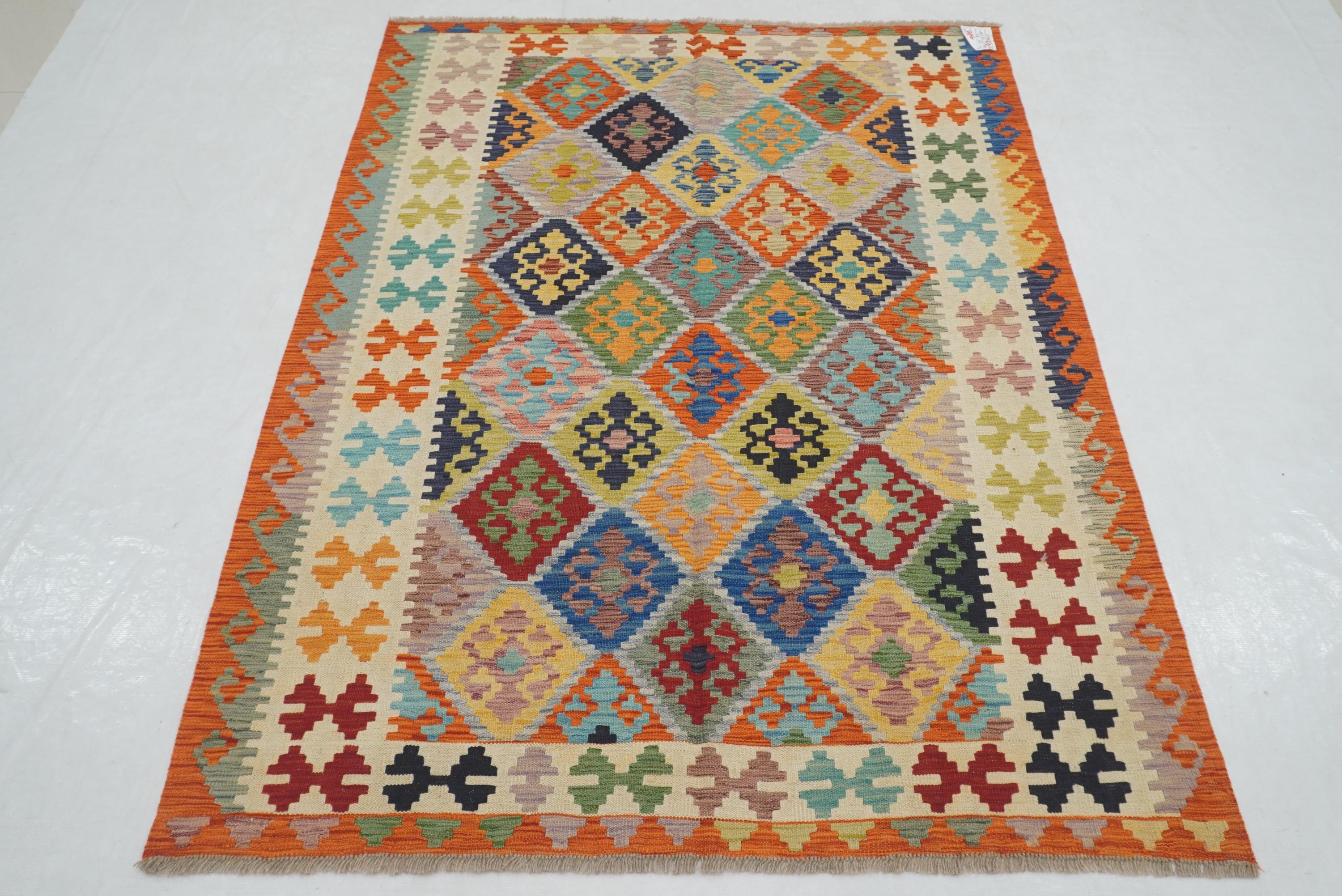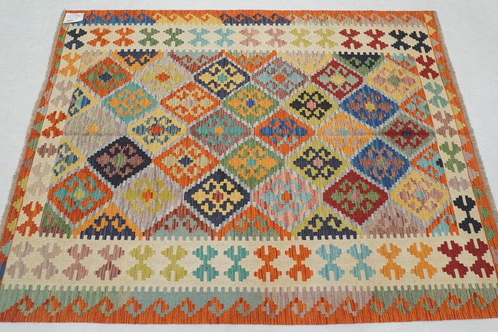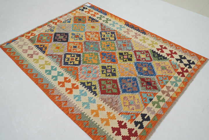5x7 Beige Orange Afghan Handmade Geometric Kilim Rug