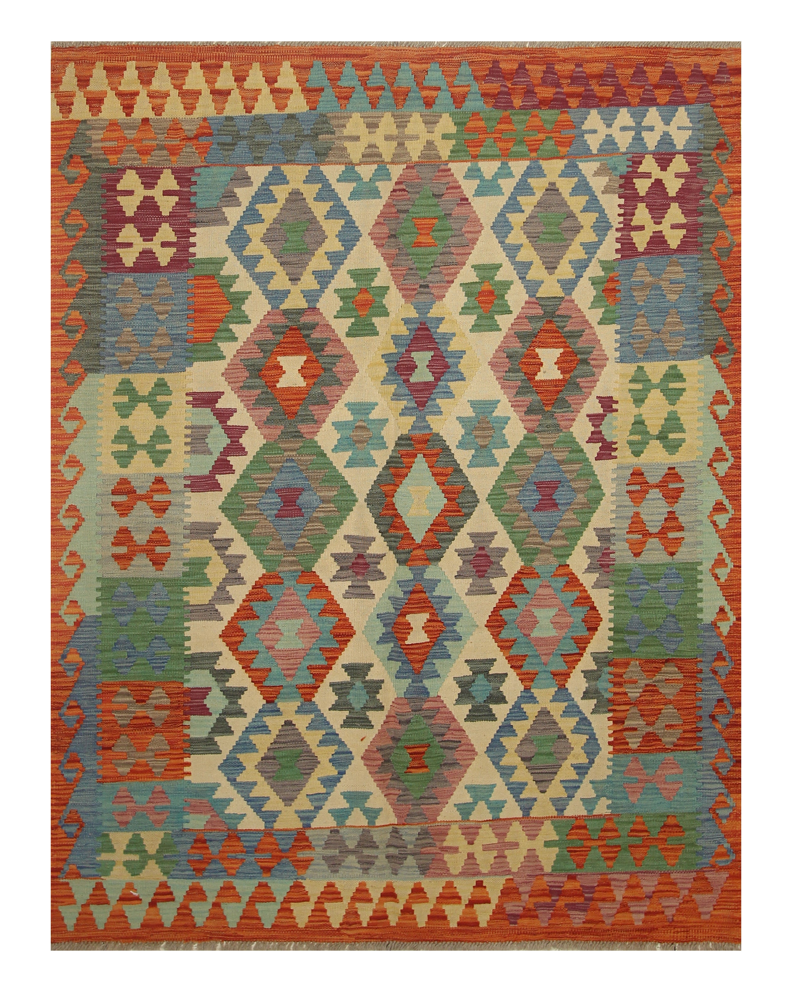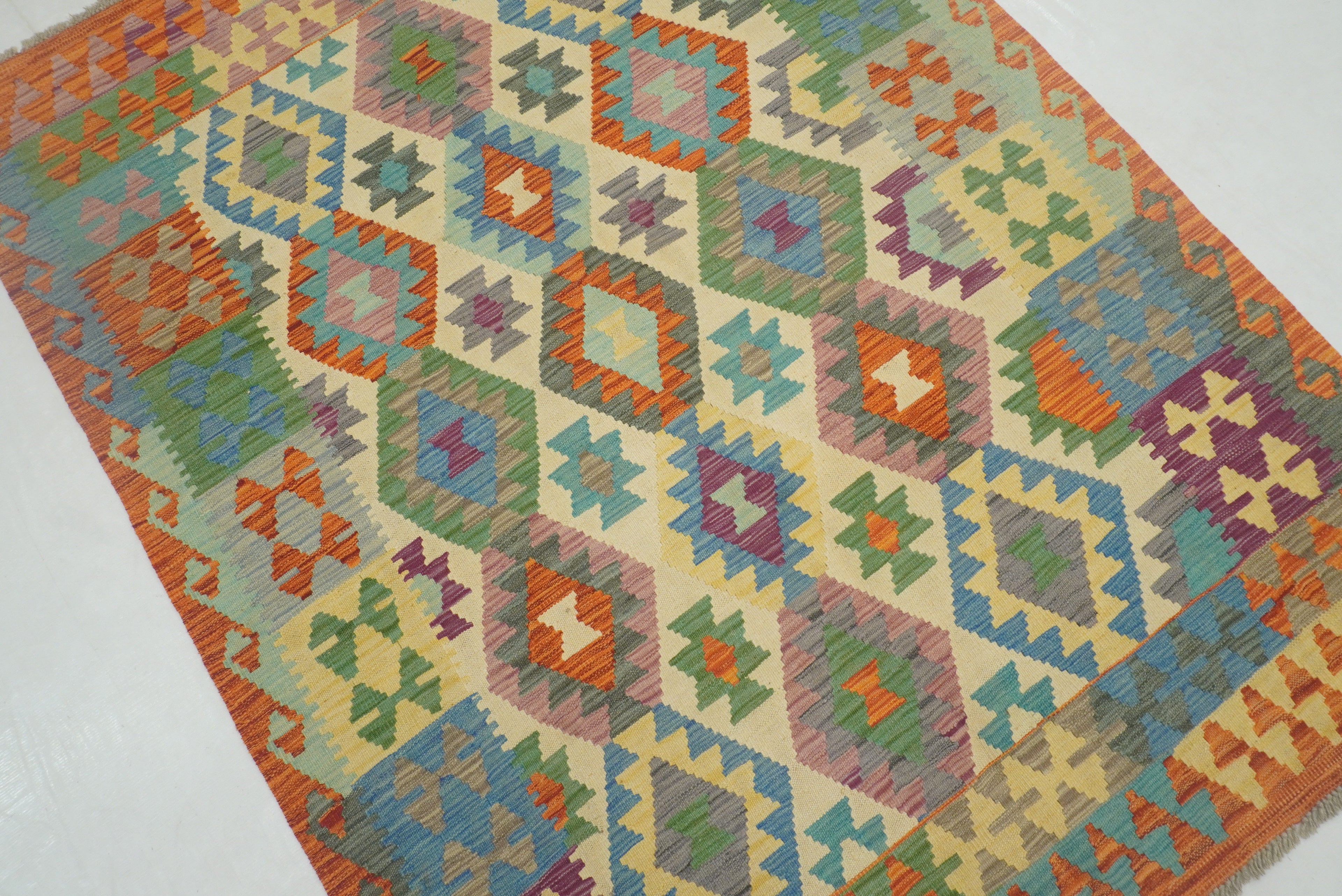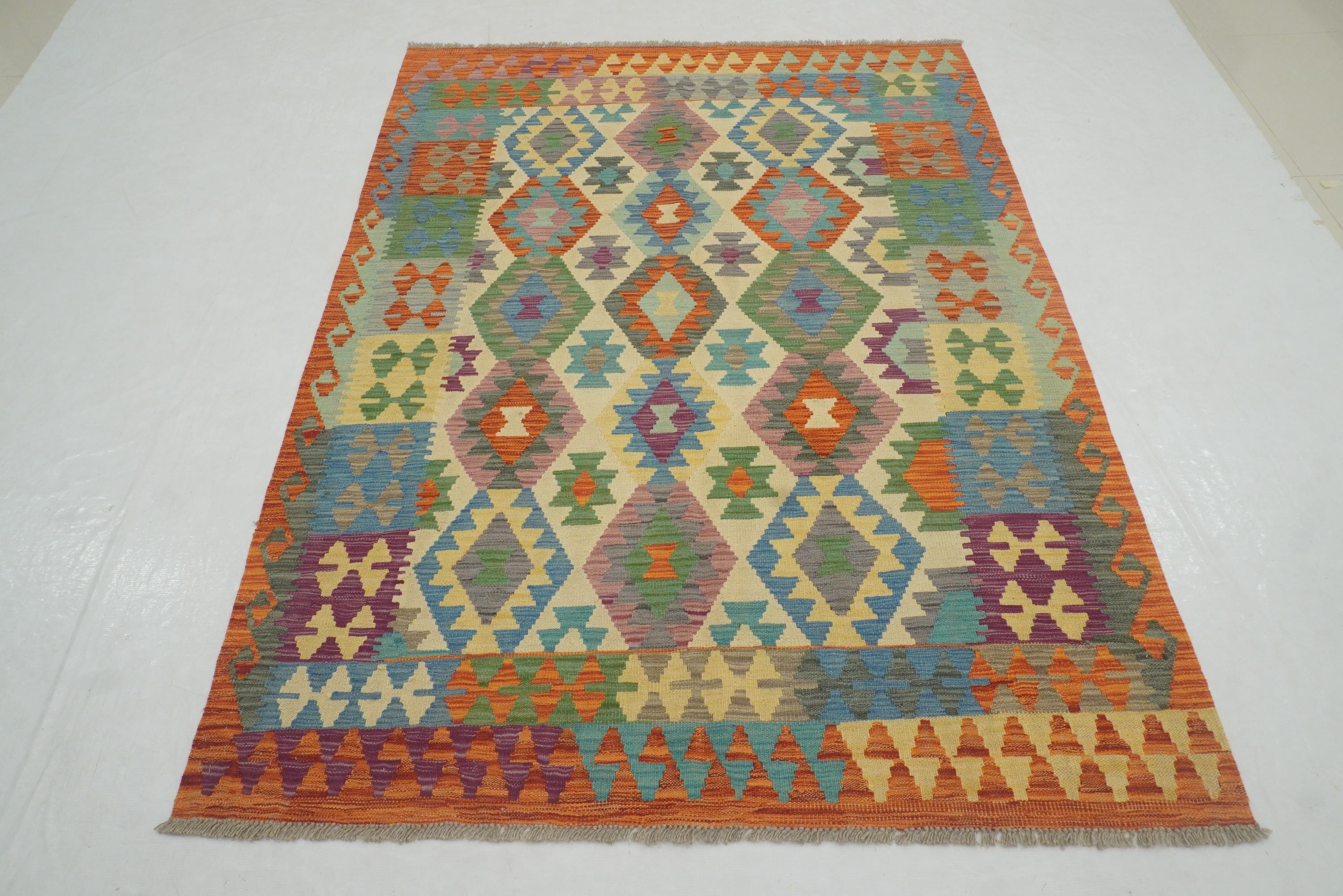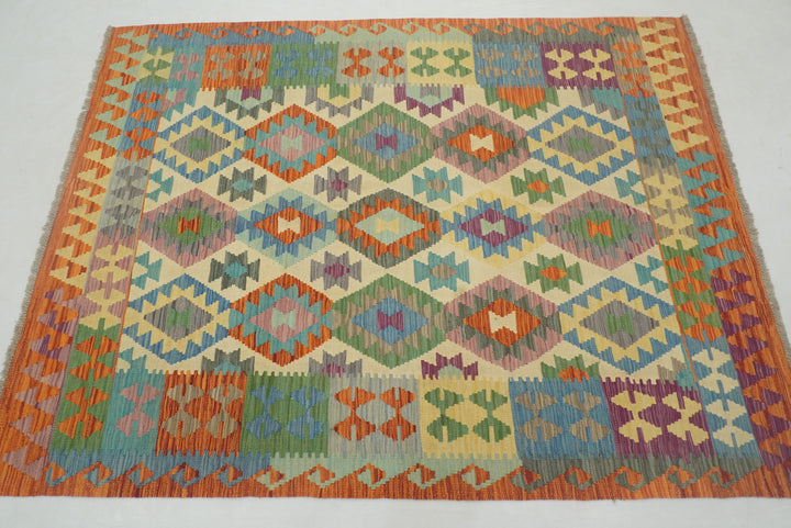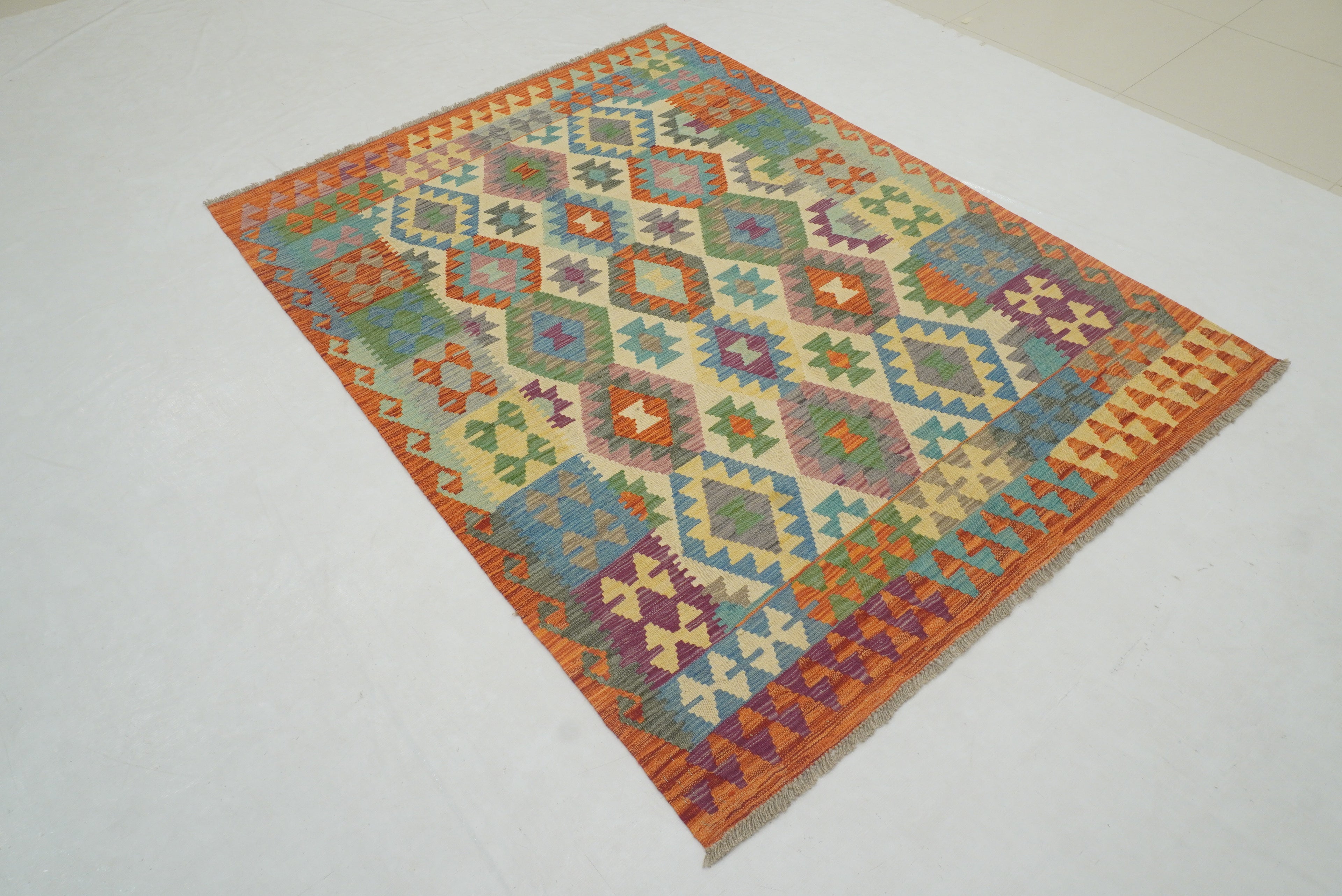 5x7 Beige Orange Afghan Handmade Reversible Kilim Rug