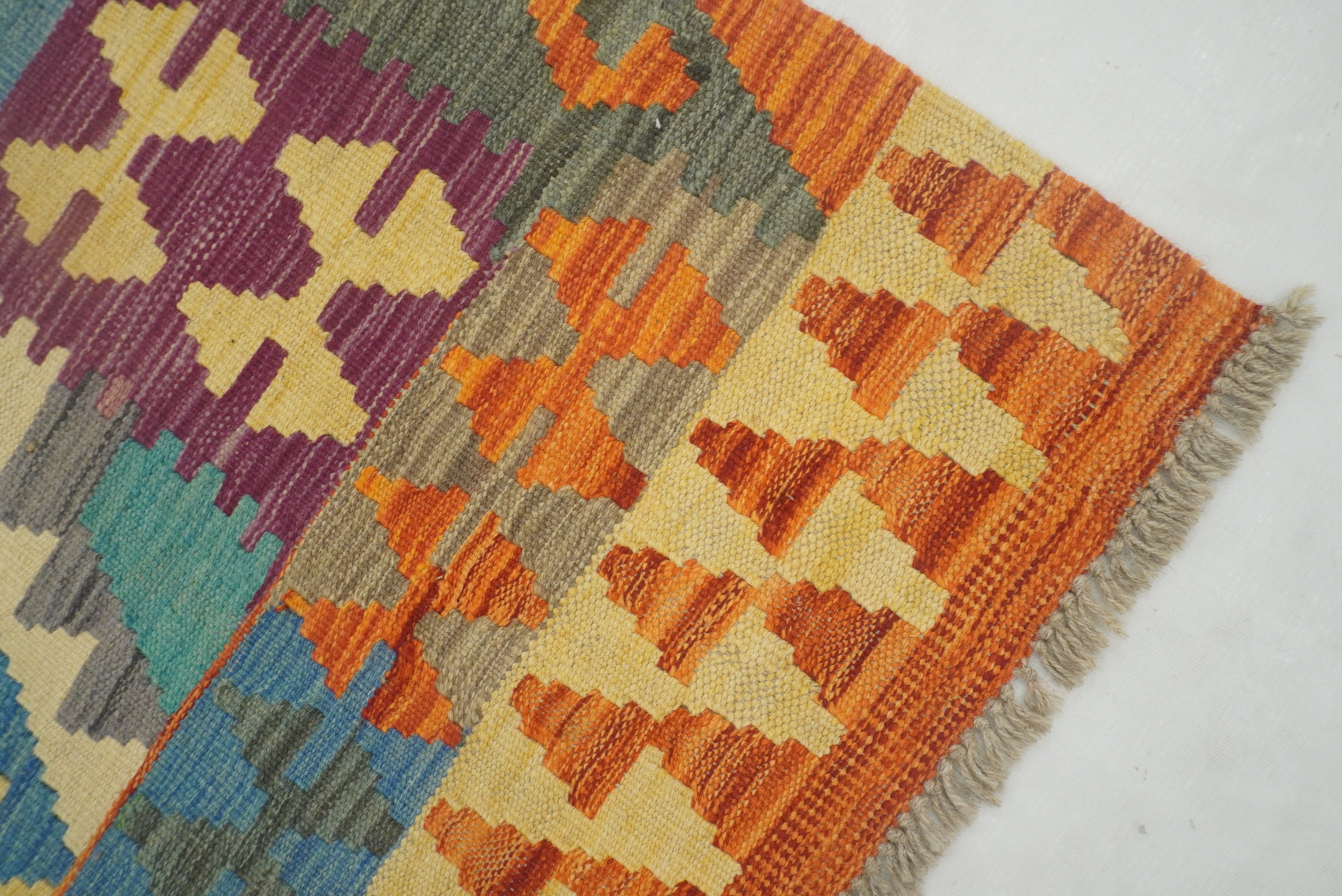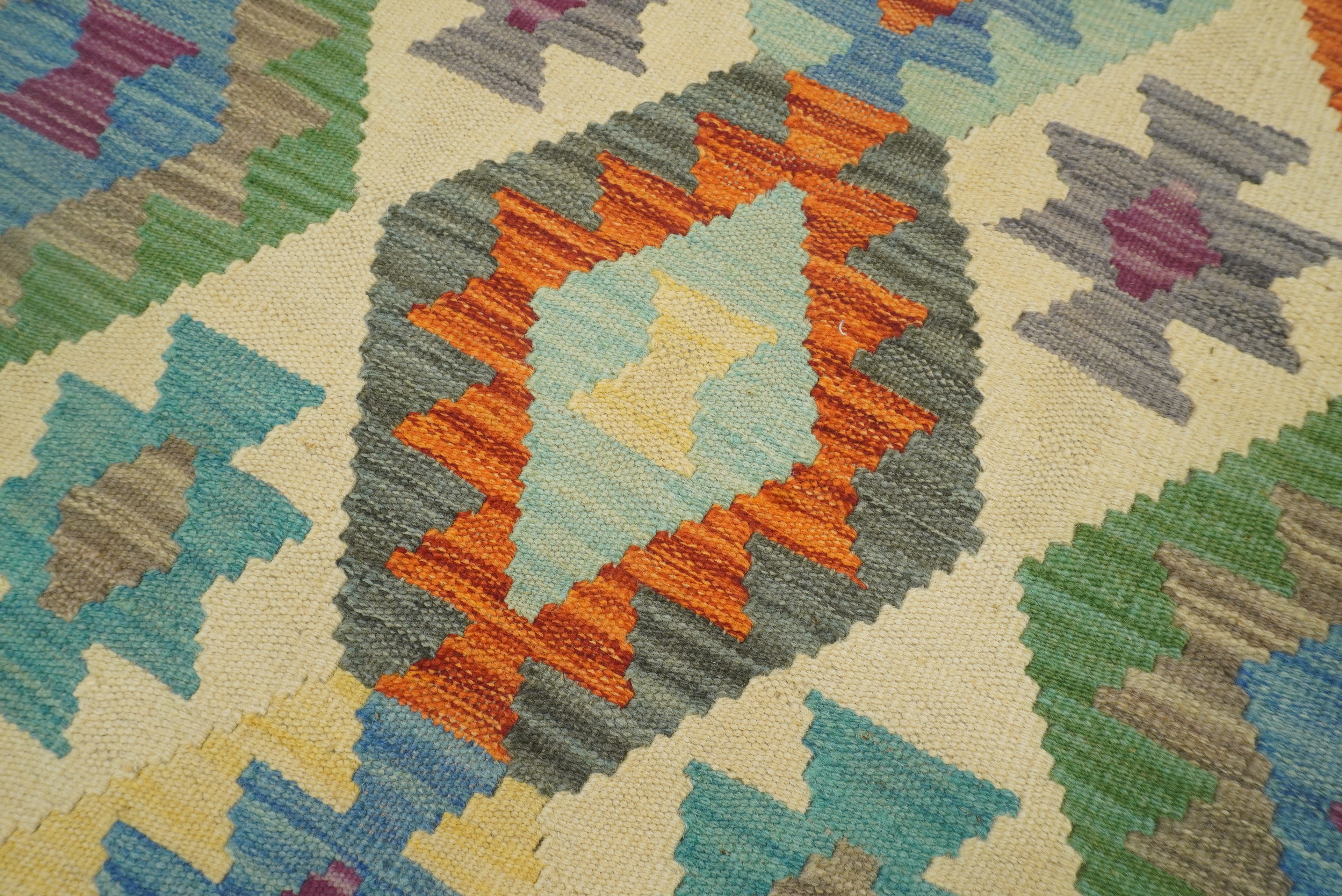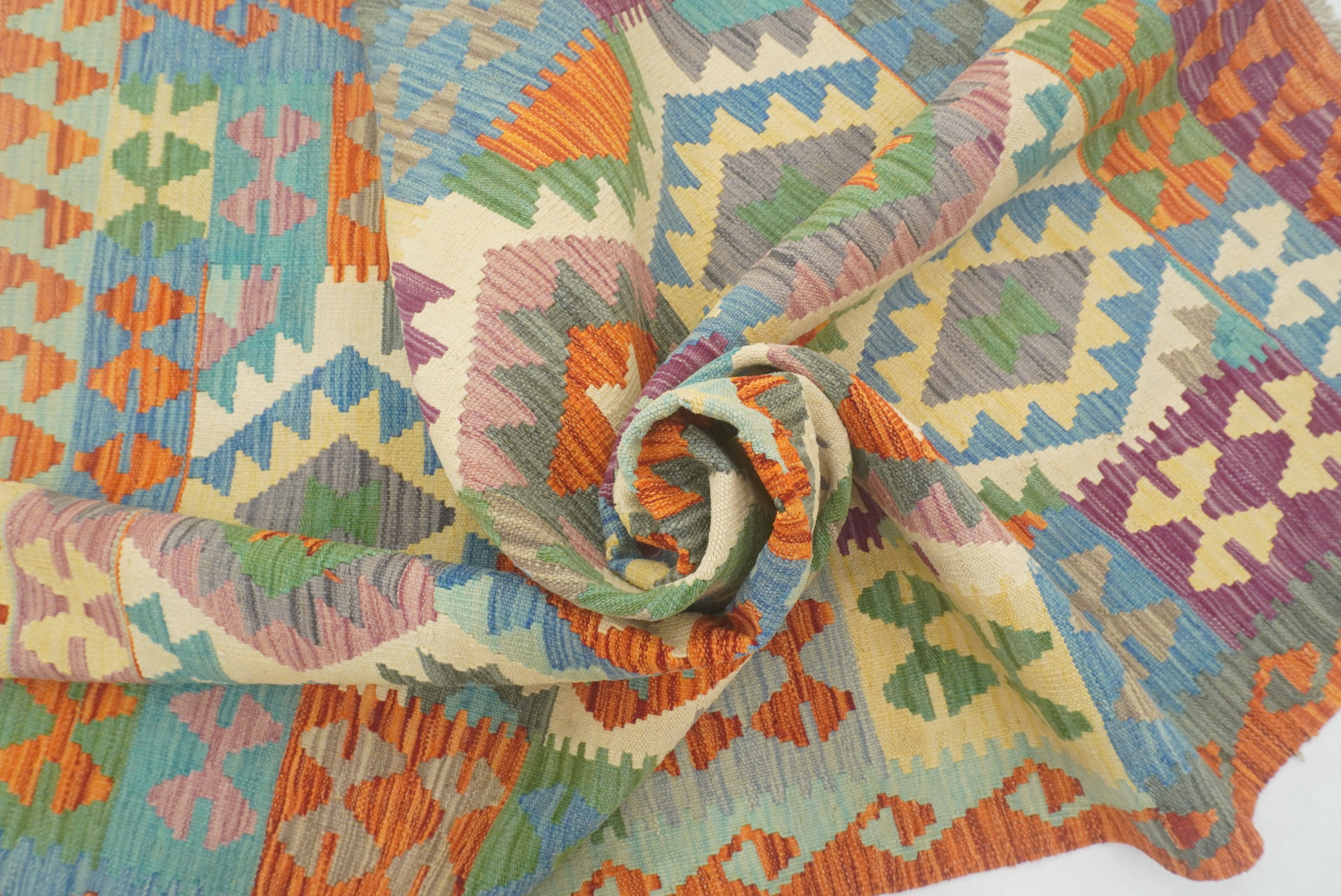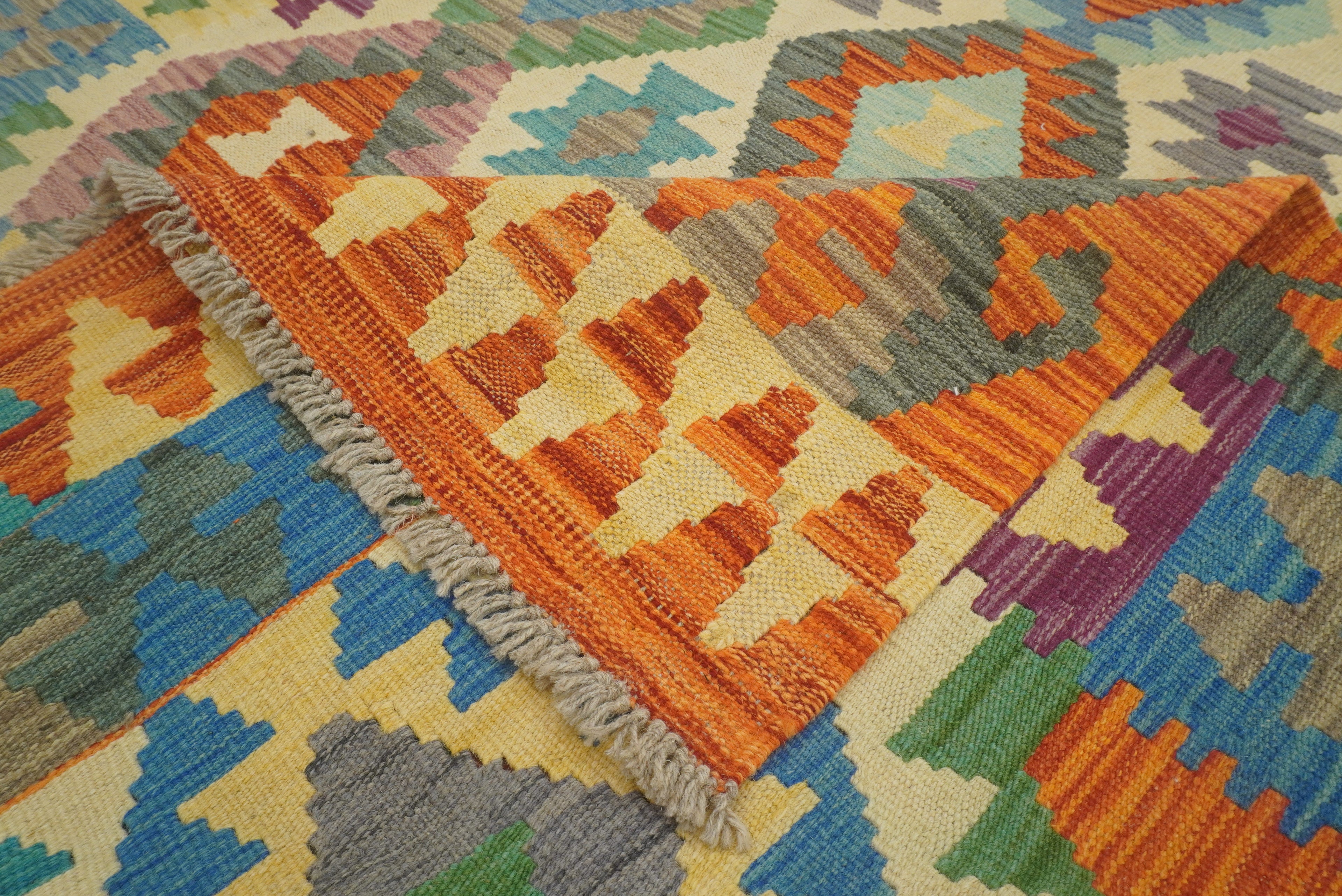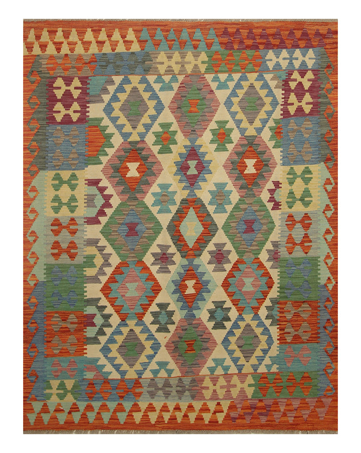 5x7 Beige Orange Afghan Handmade Reversible Kilim Rug