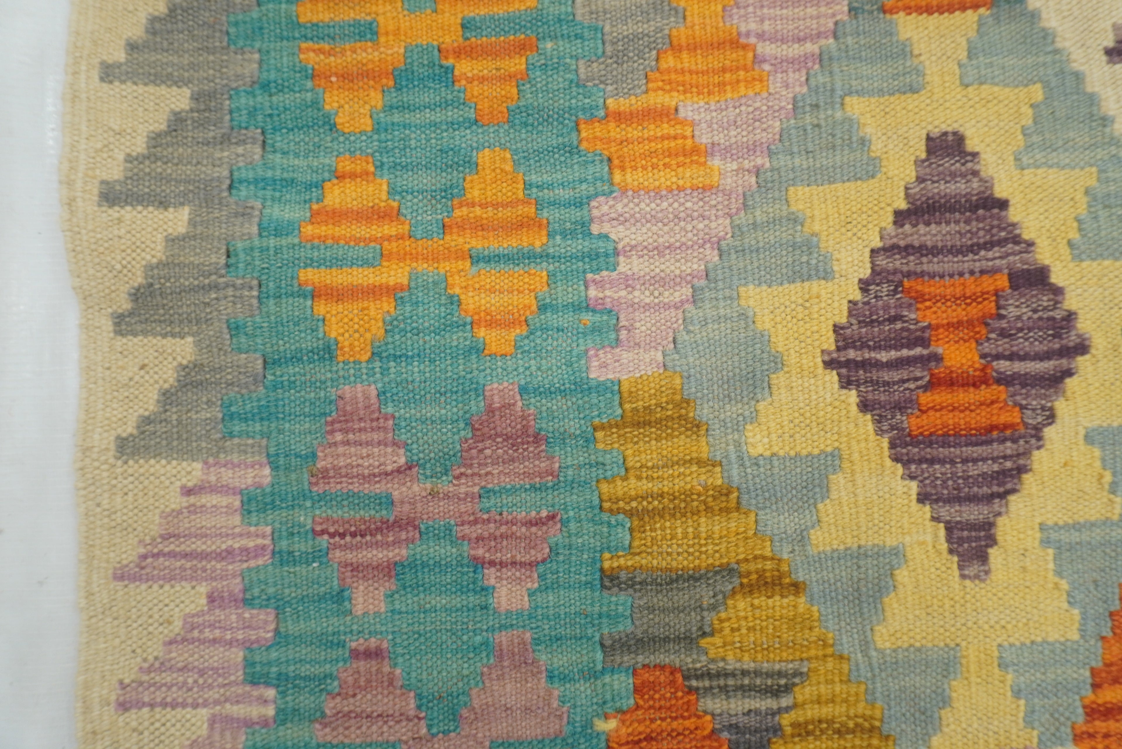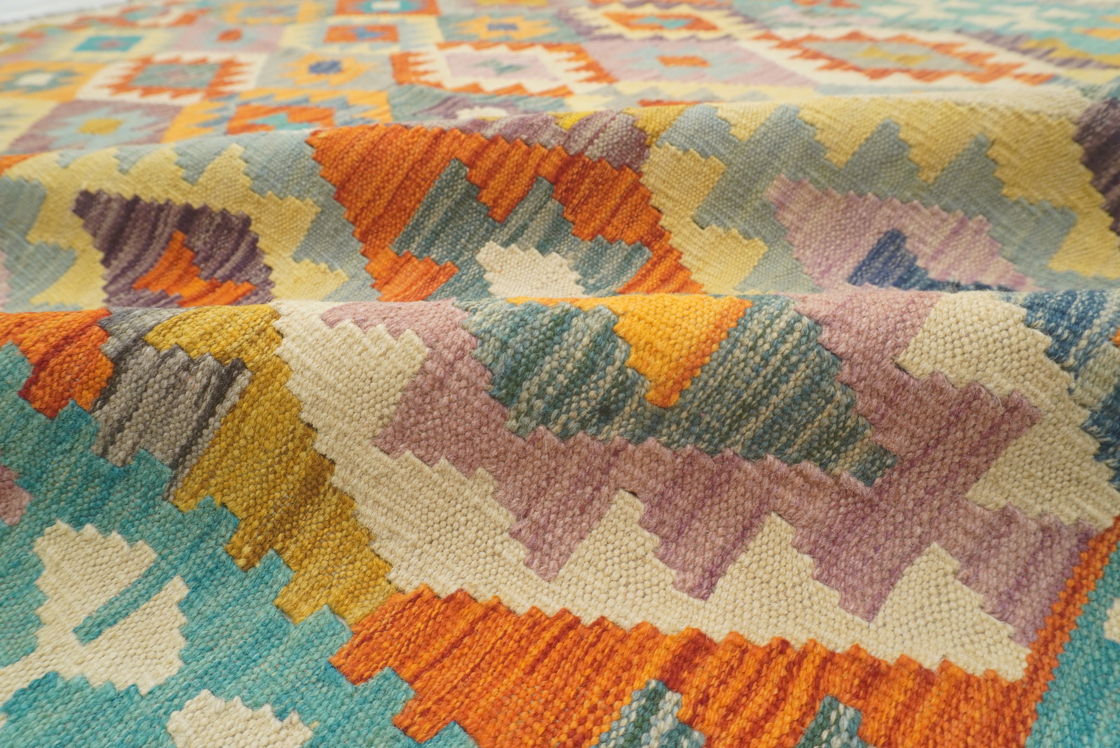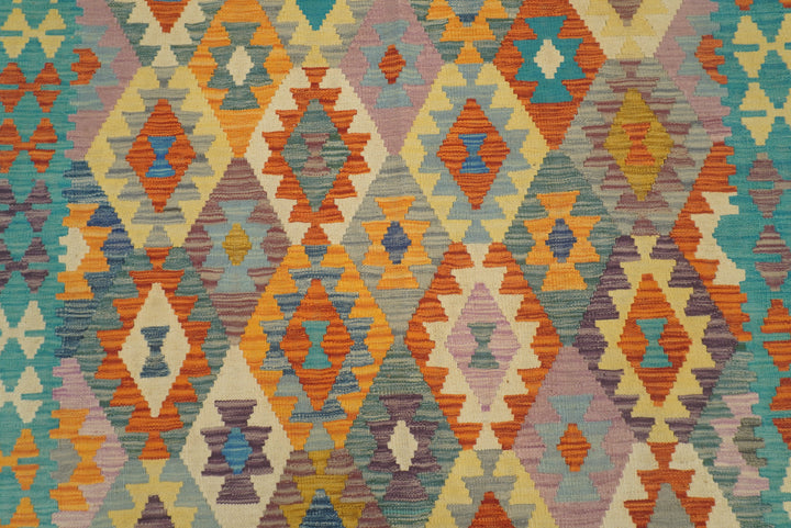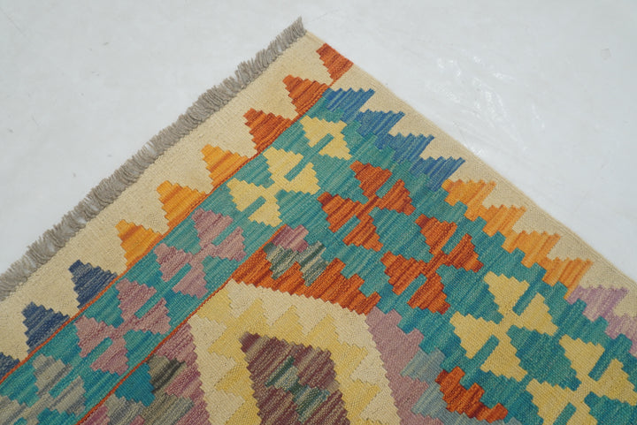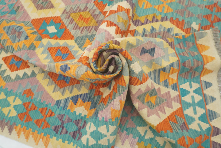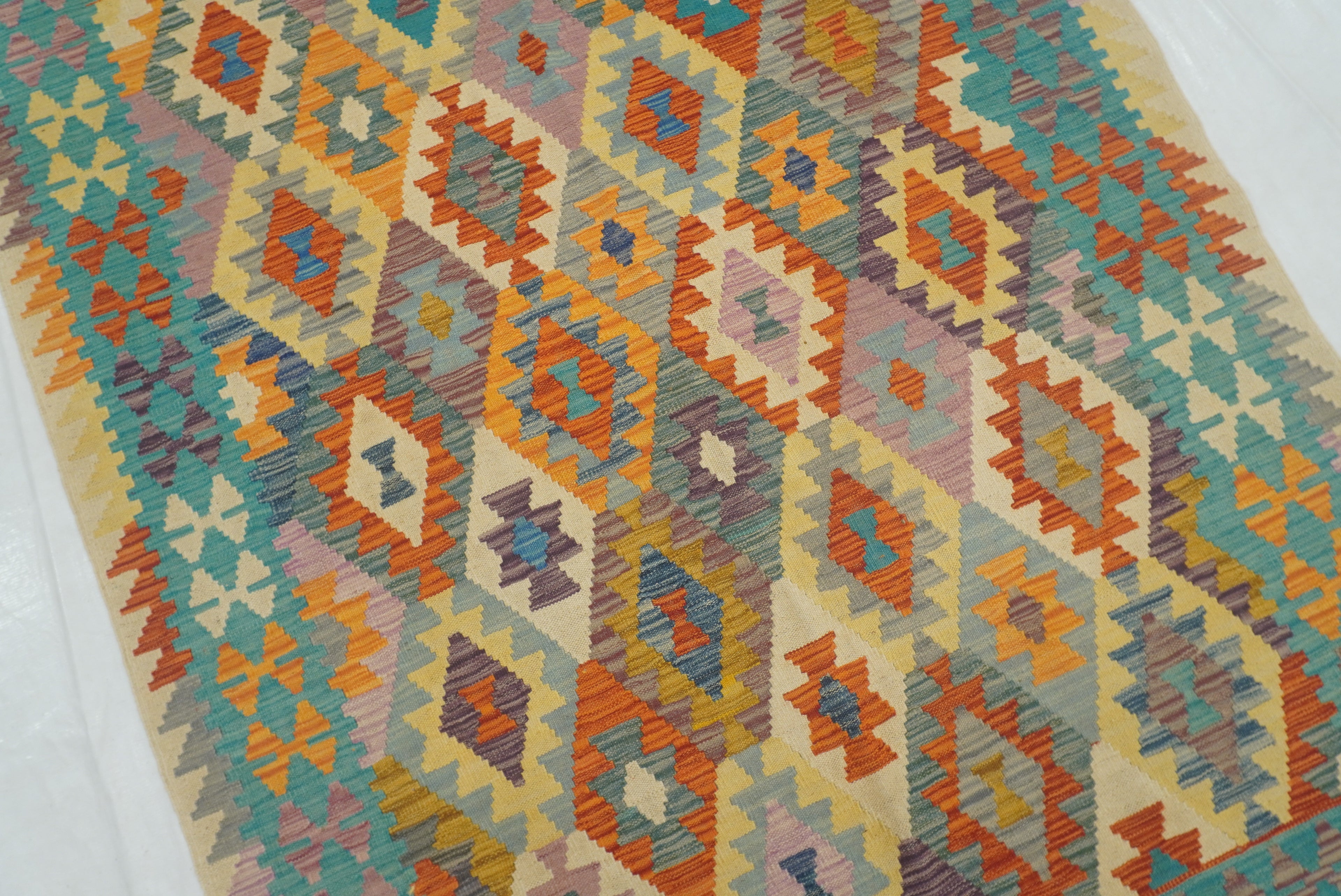 5x7 Beige Turquoise Blue Afghan Geometric Reversible Kilim Rug