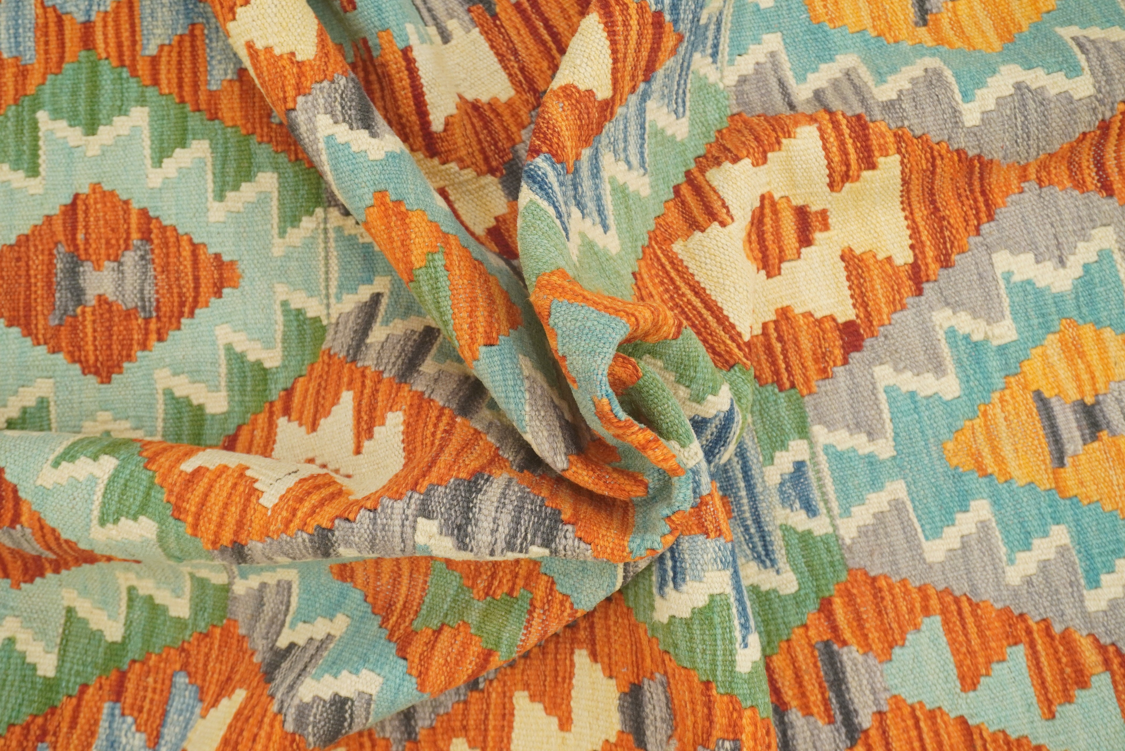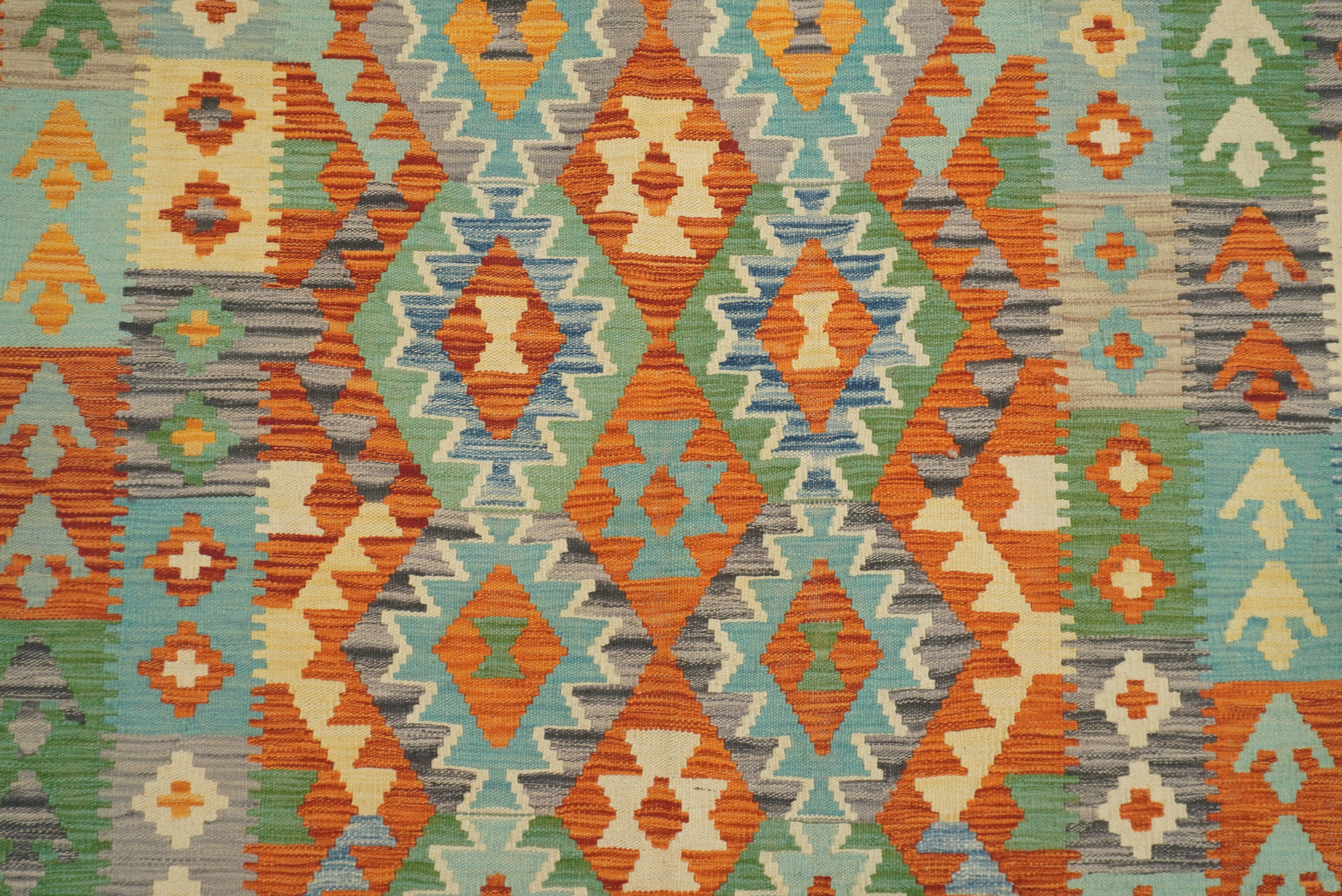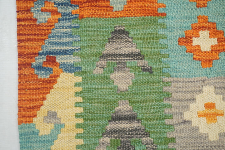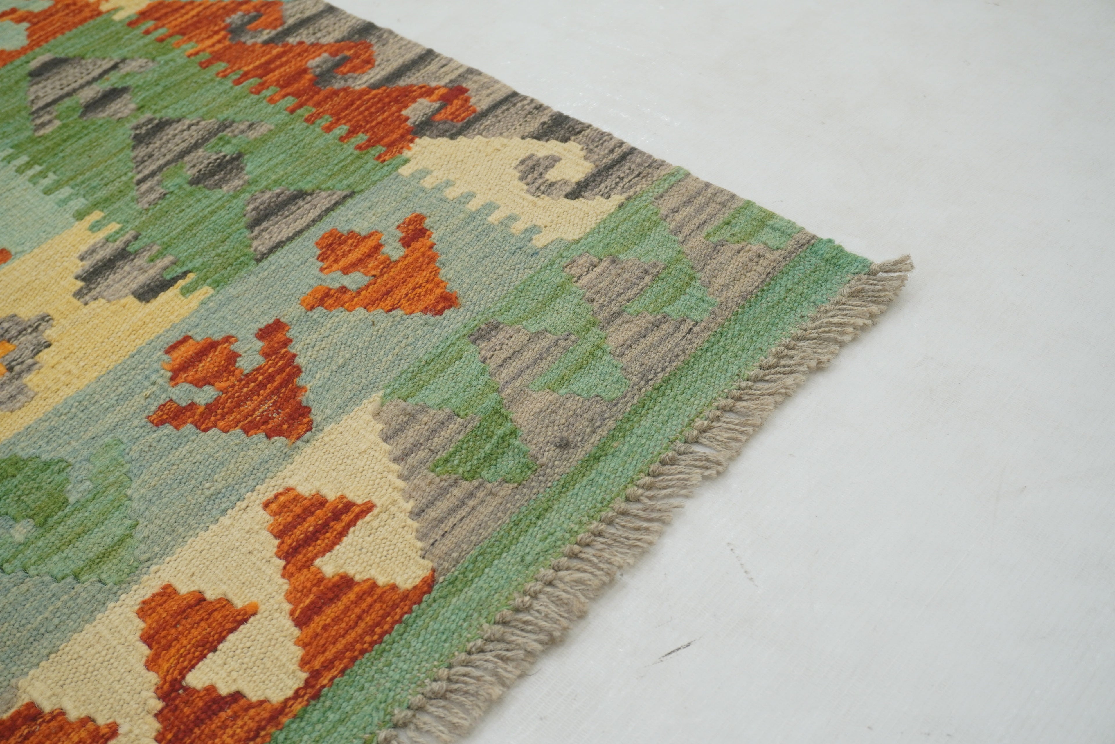 5x7 Green Orange Afghan Handmade Reversible Kilim Rug