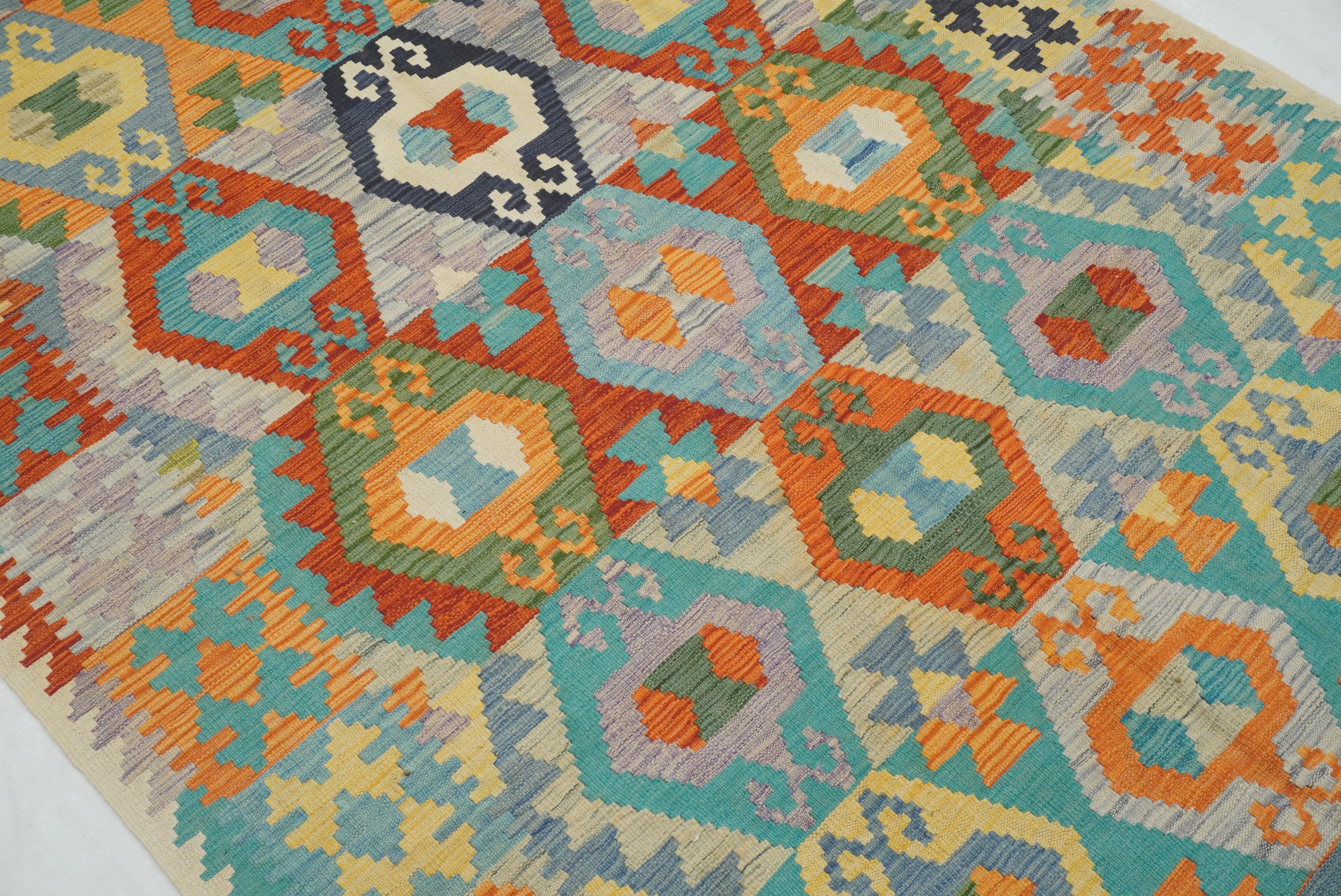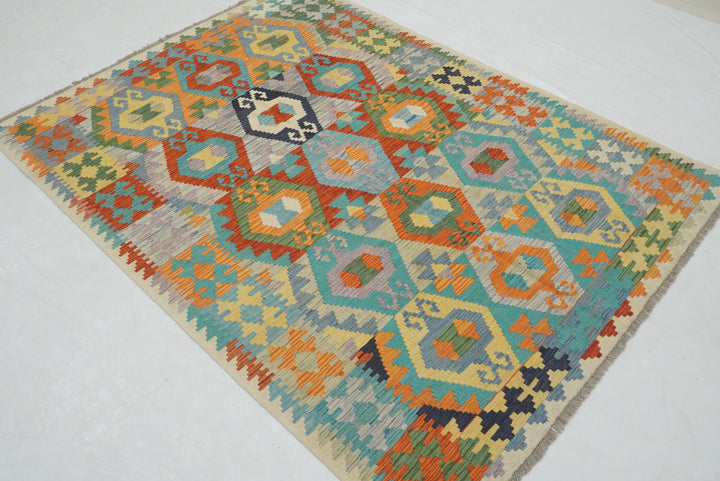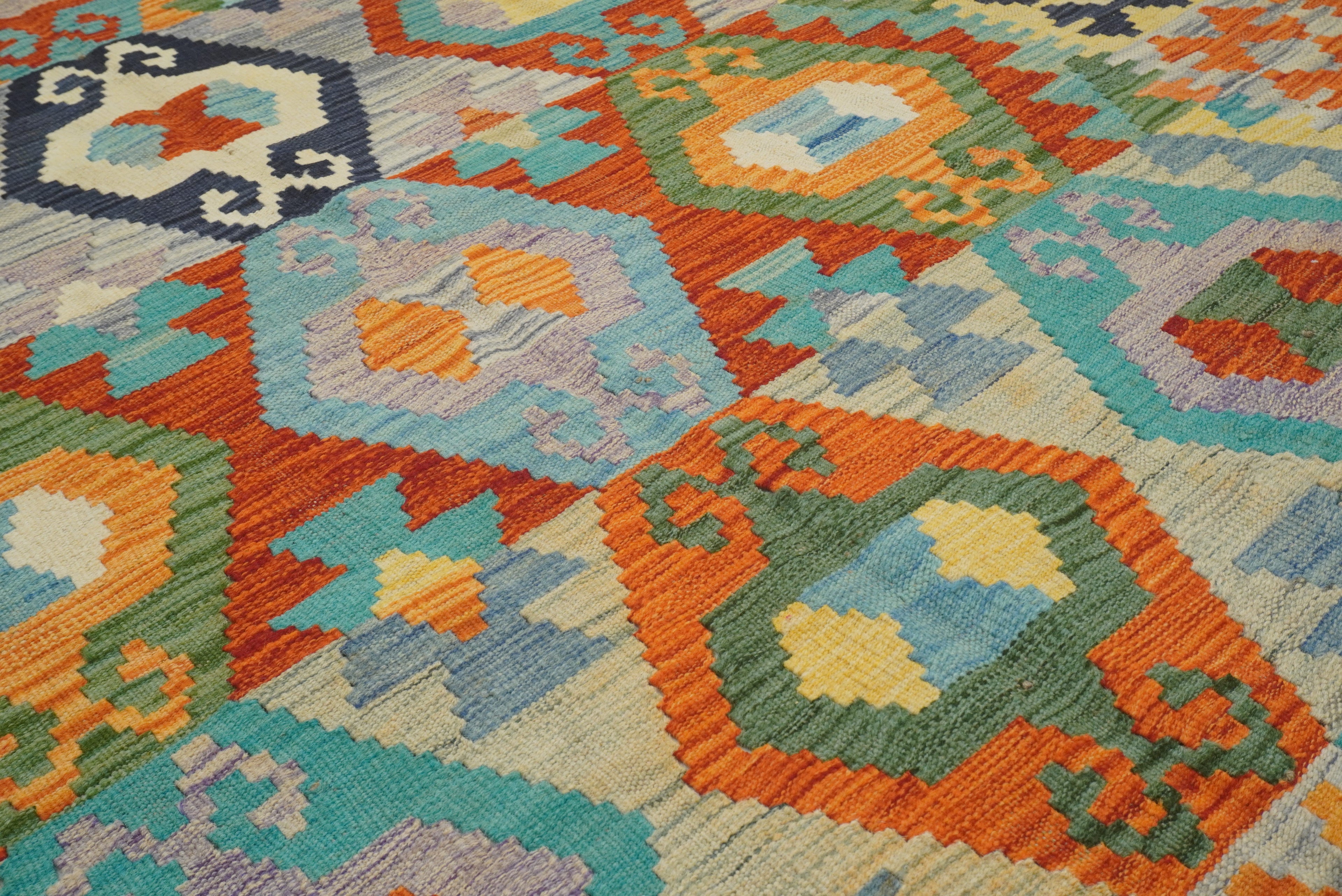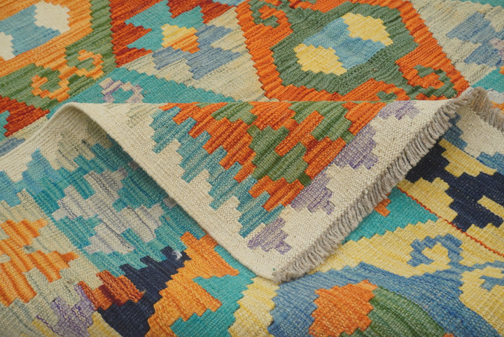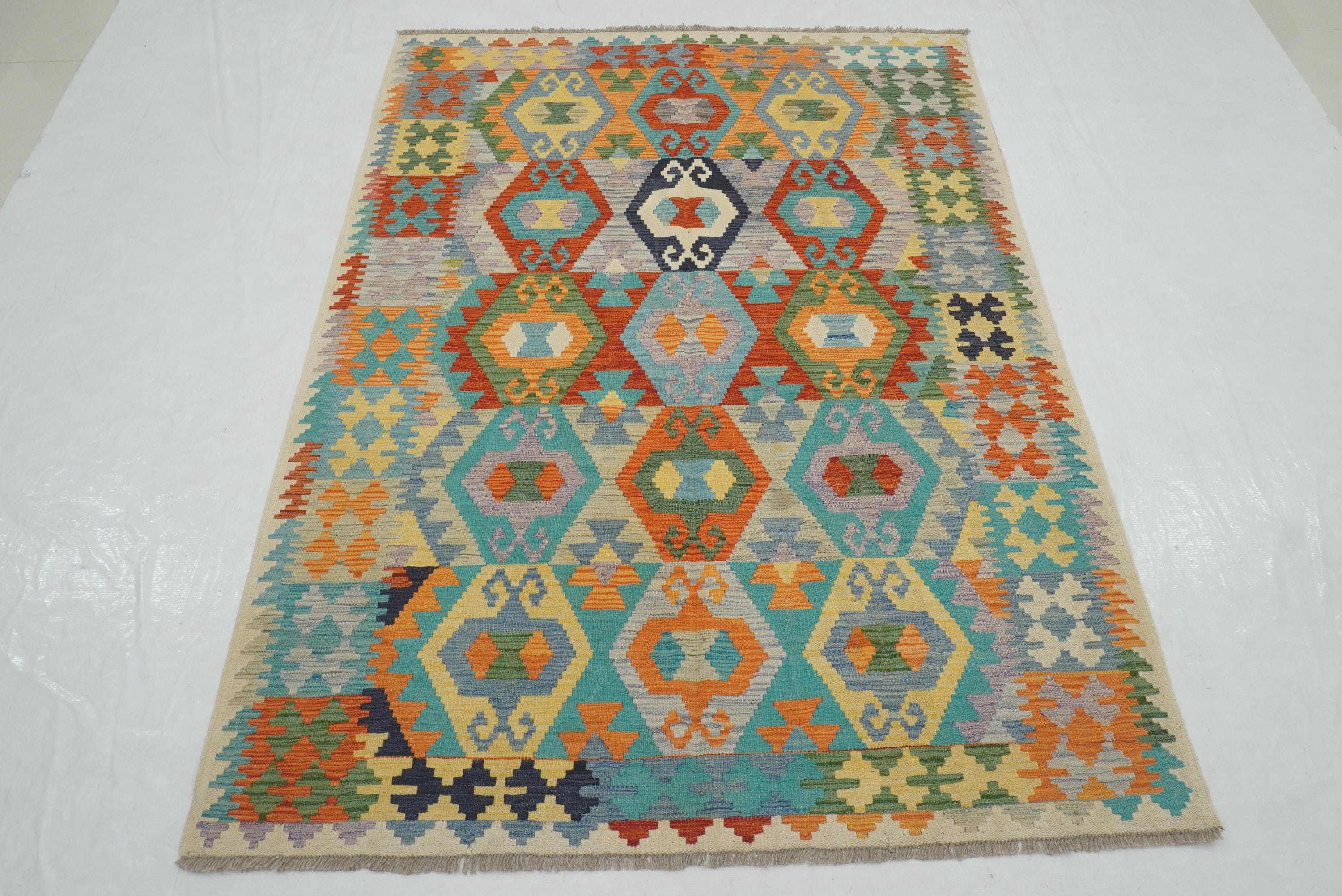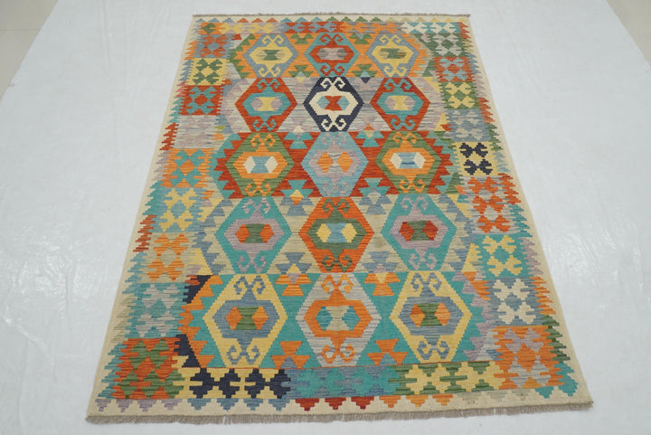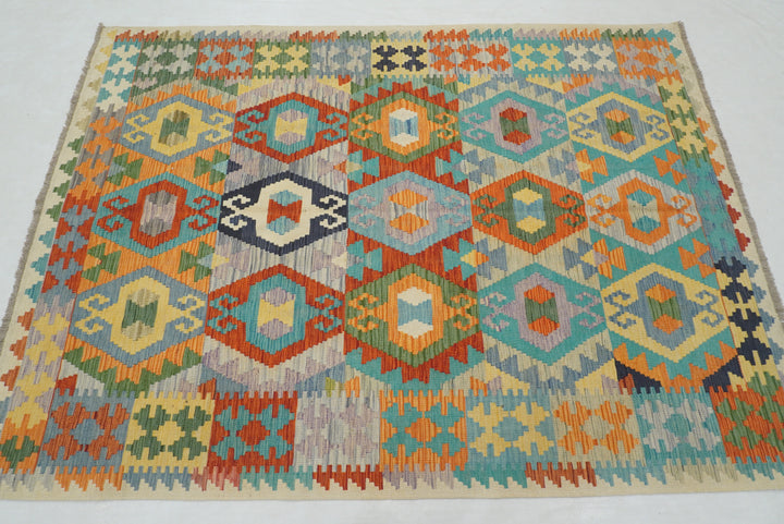 5x7 Multicolor Afghan Handmade Geometric Reversible Kilim Rug