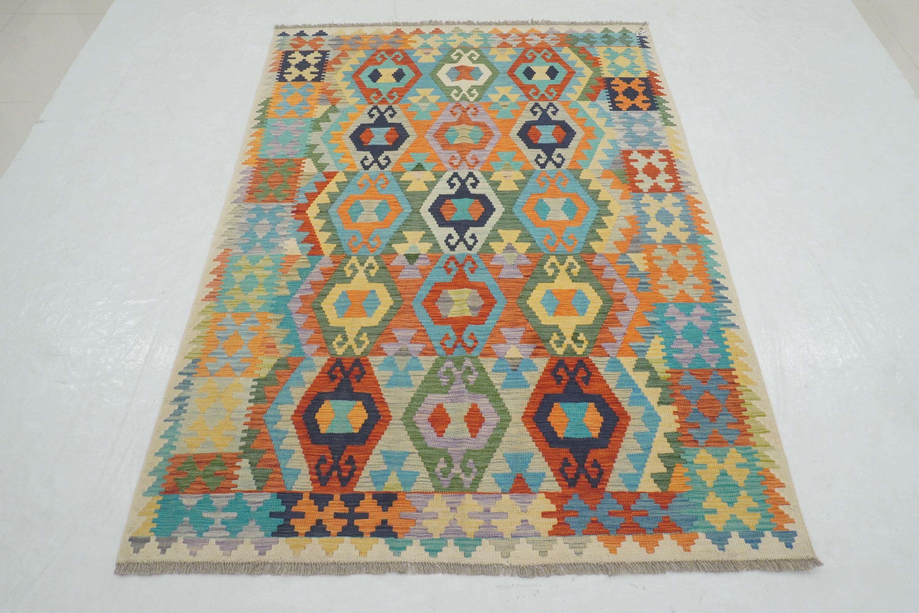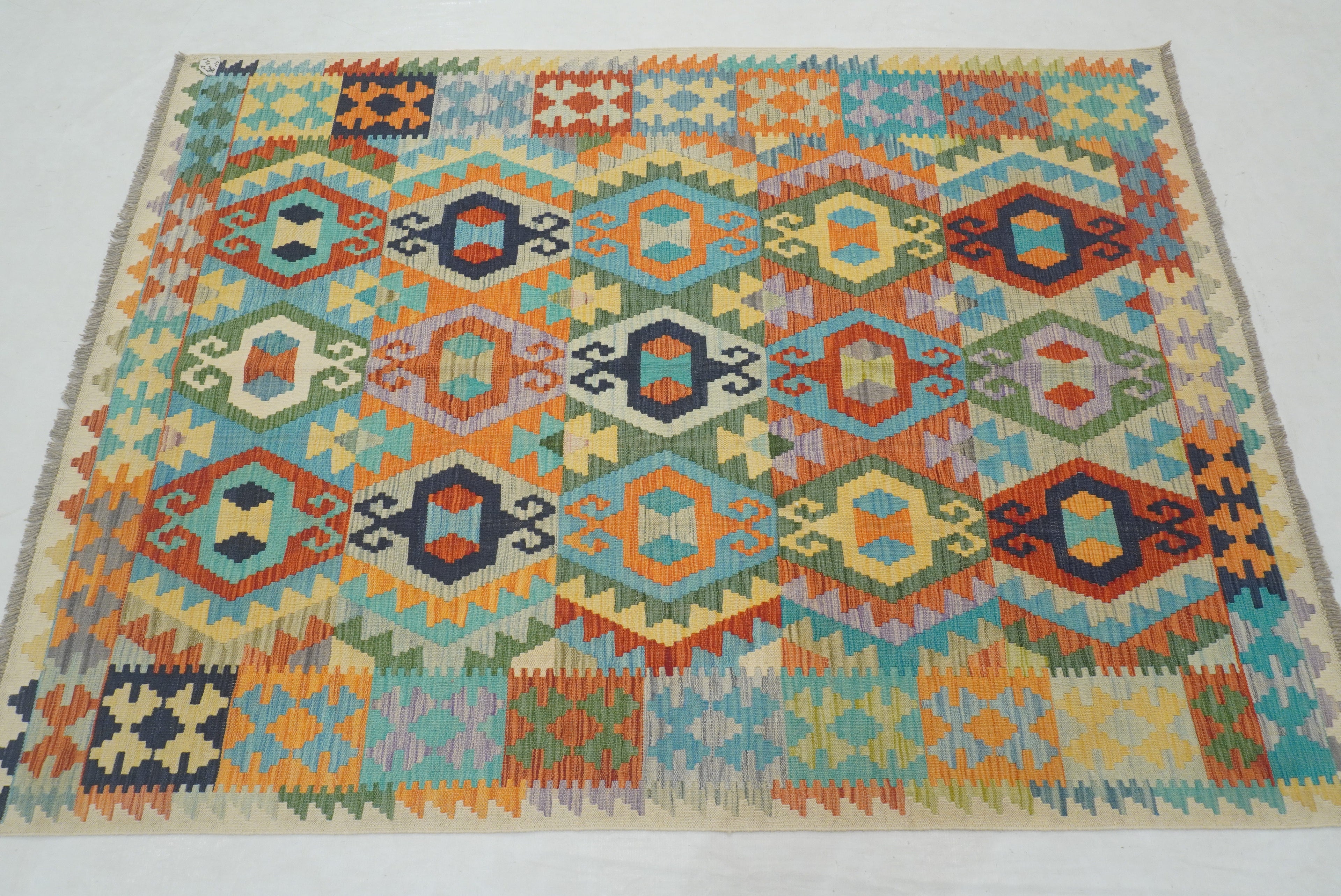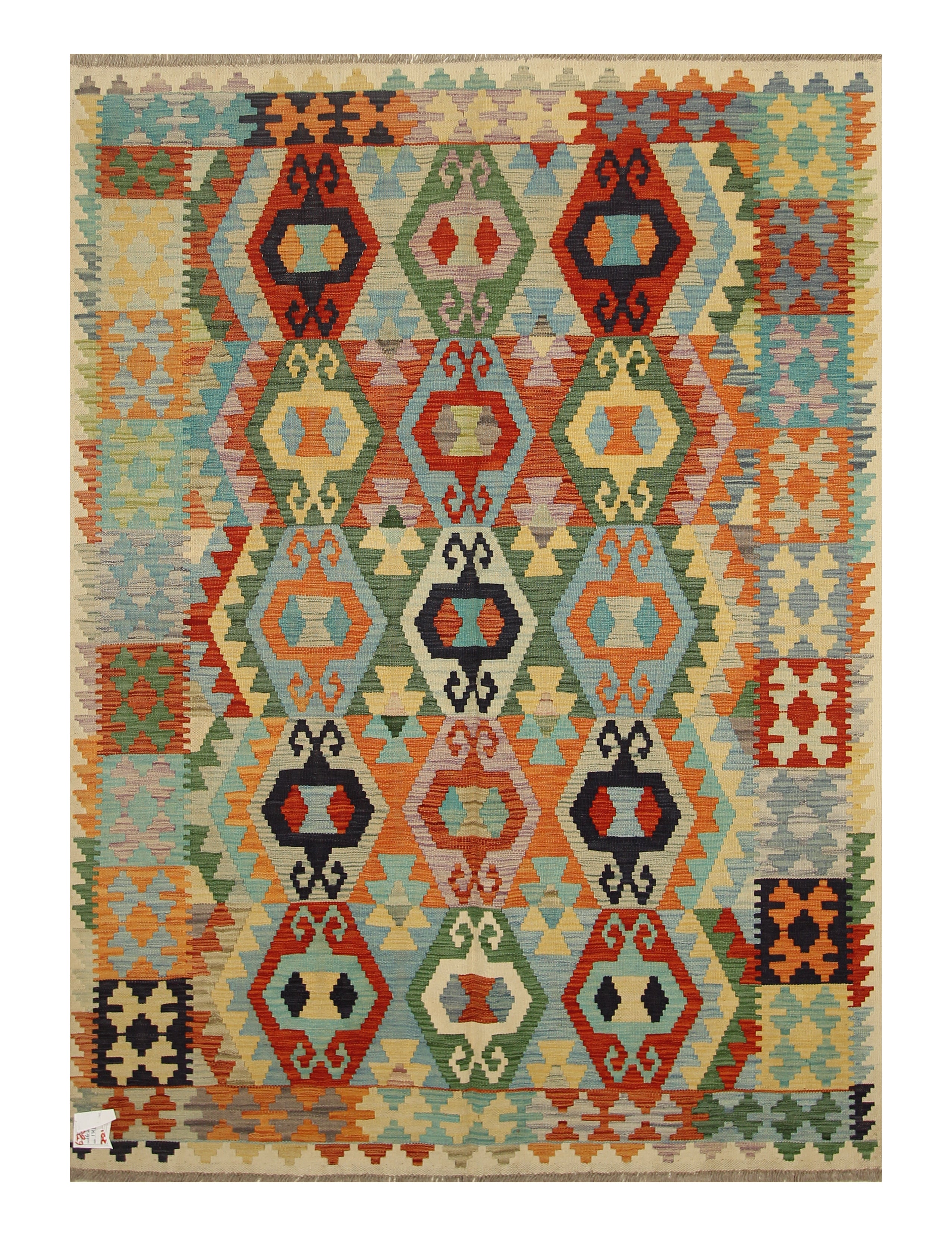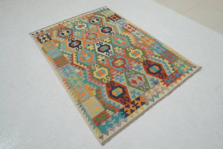 5x7 Multicolor Afghan Handmade Reversible Kilim Rug