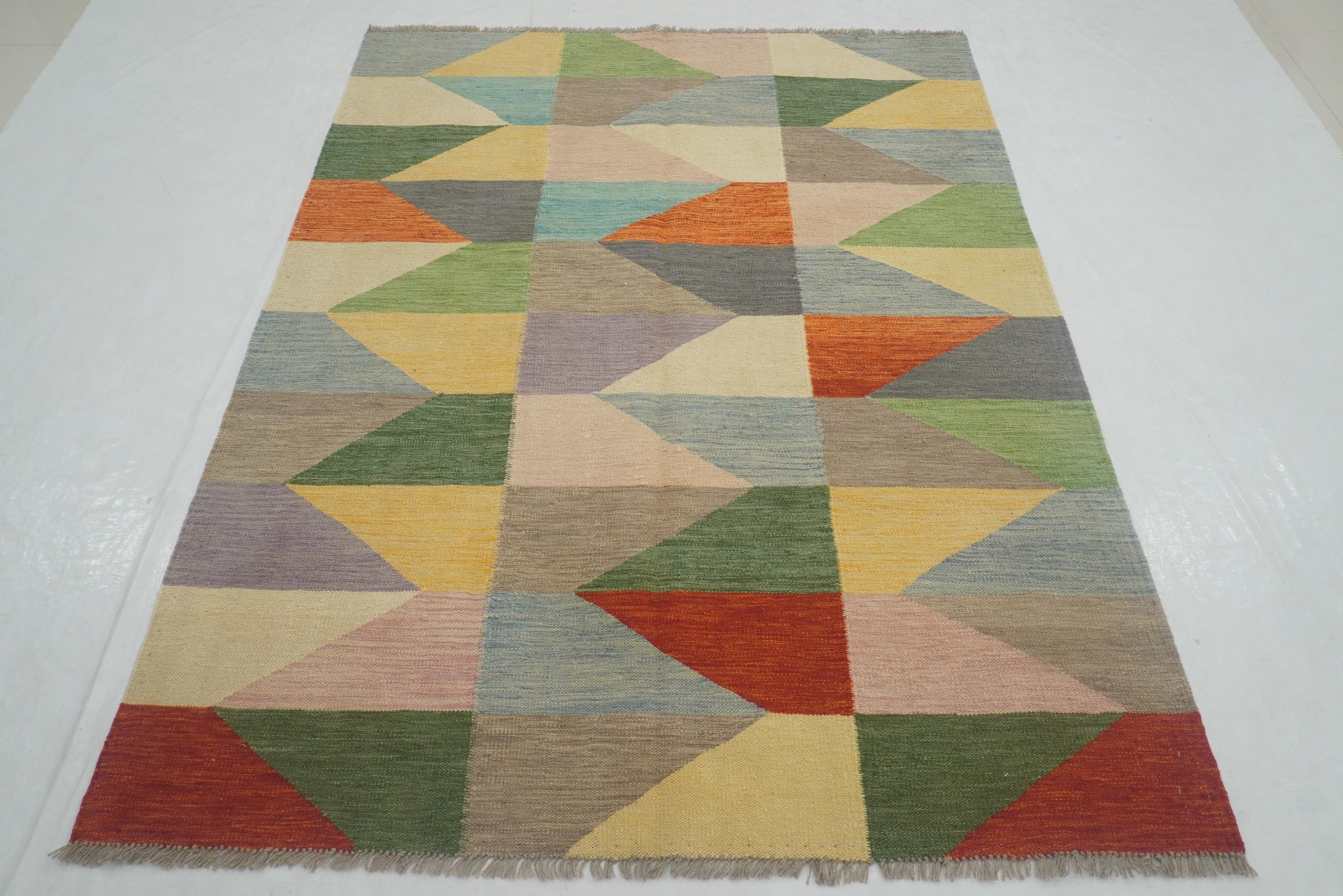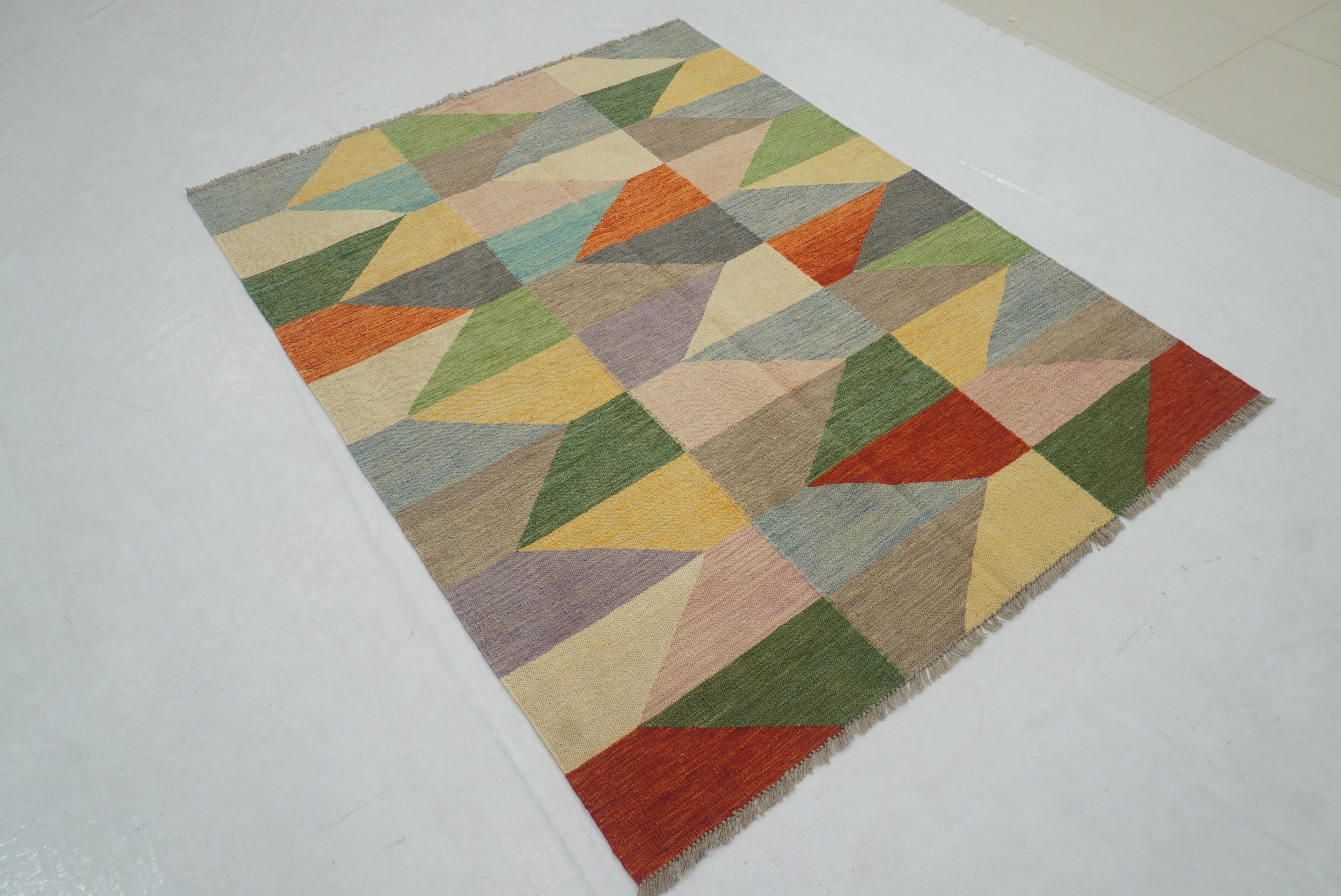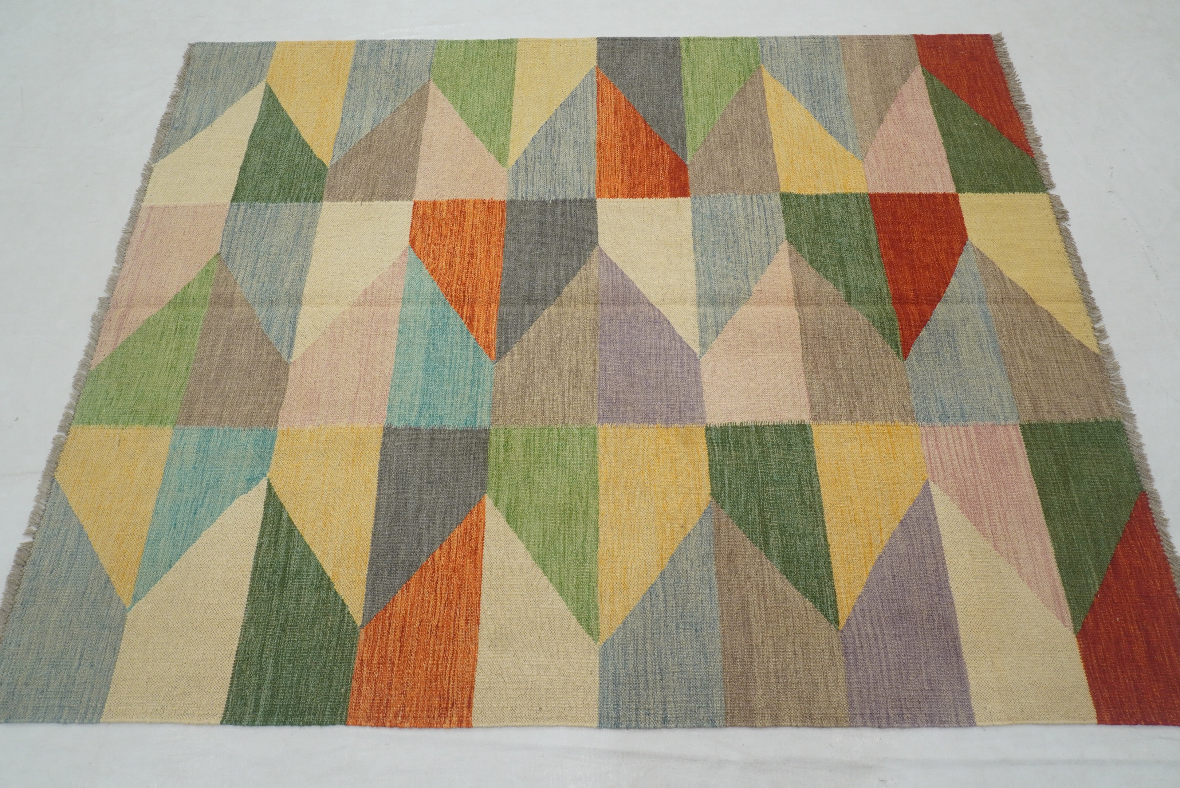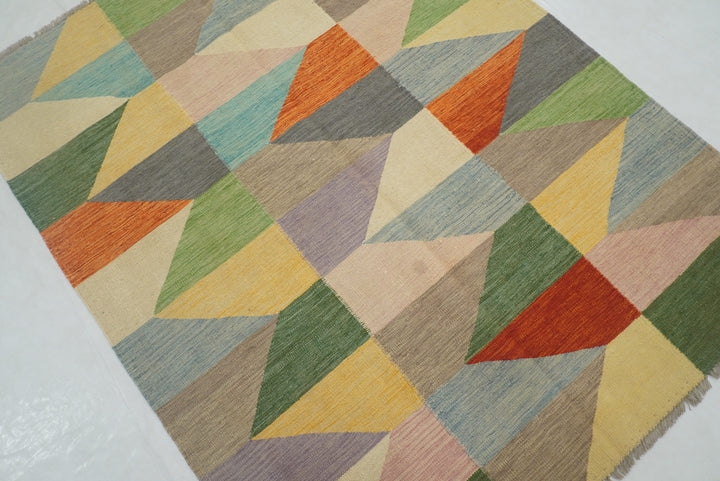 5x7 Multicolor Modern Afghan Reversible Kilim Rug