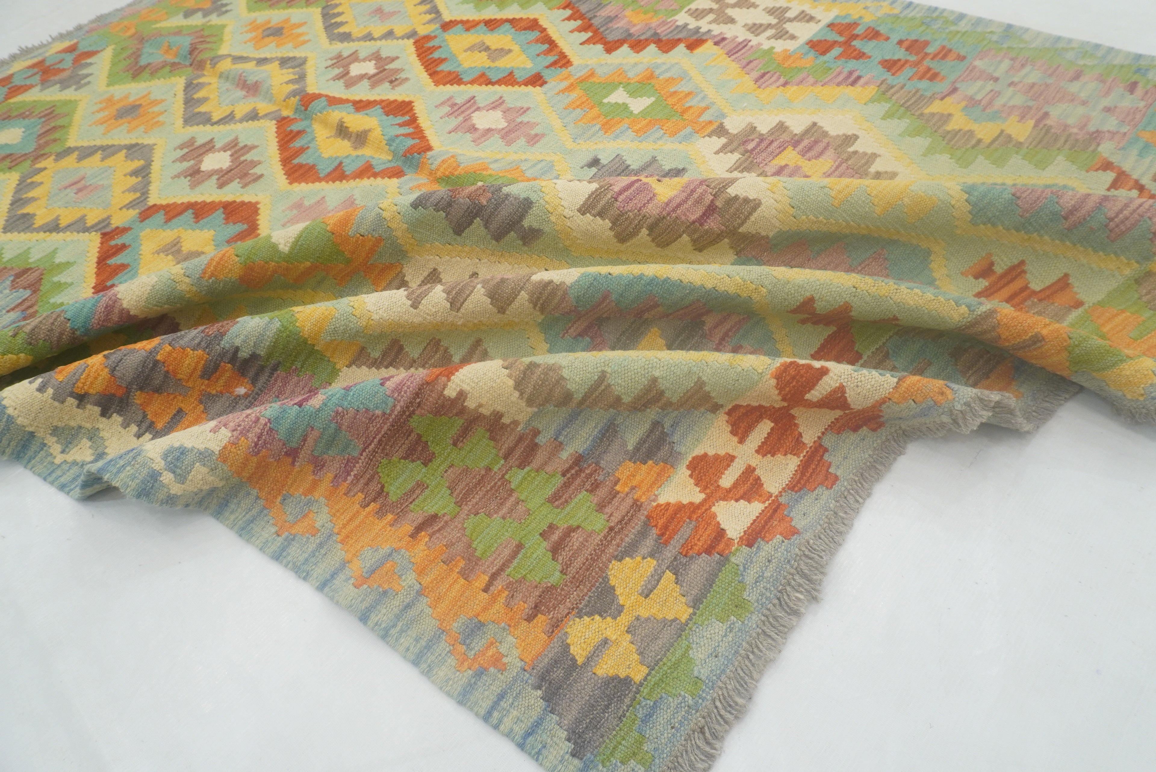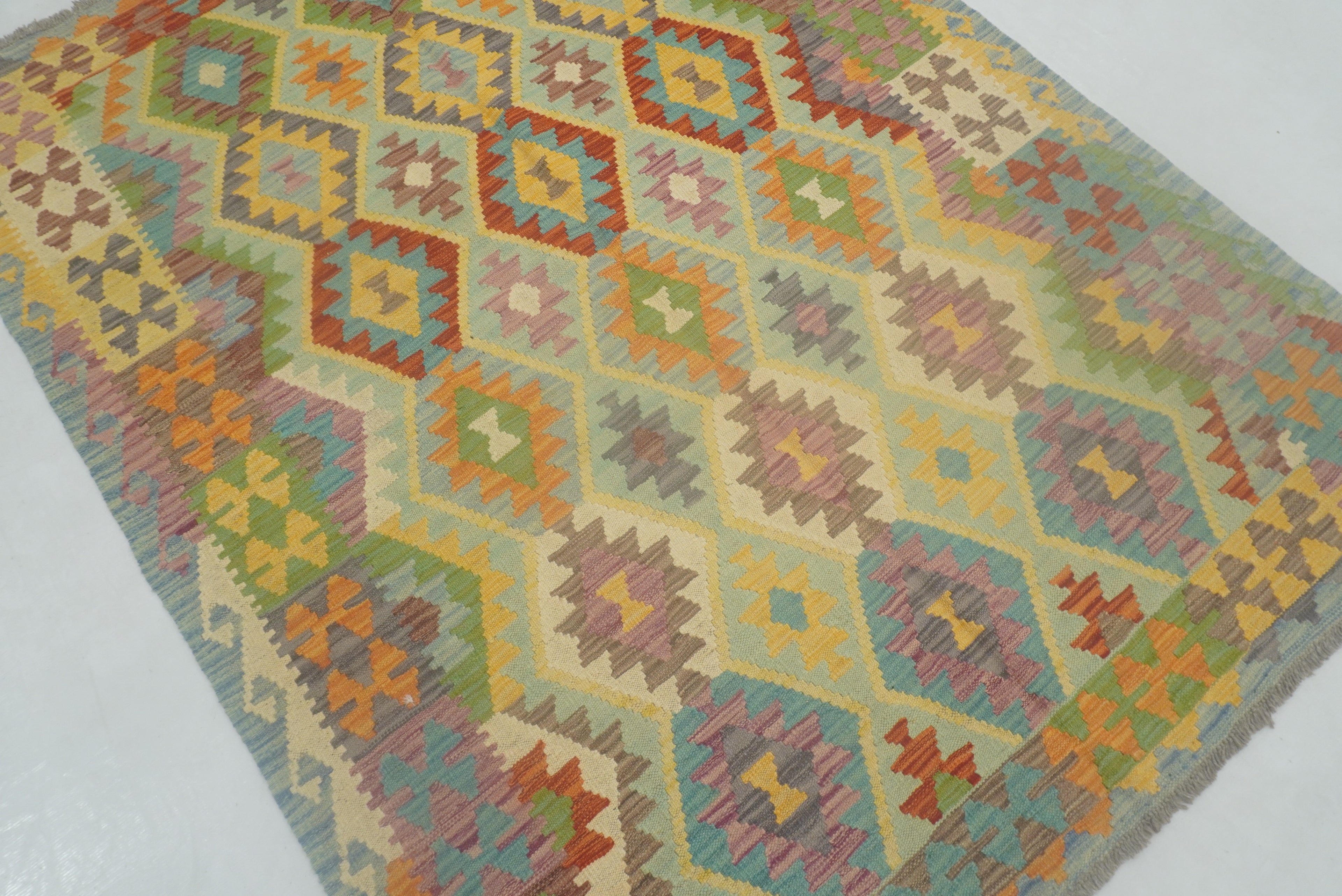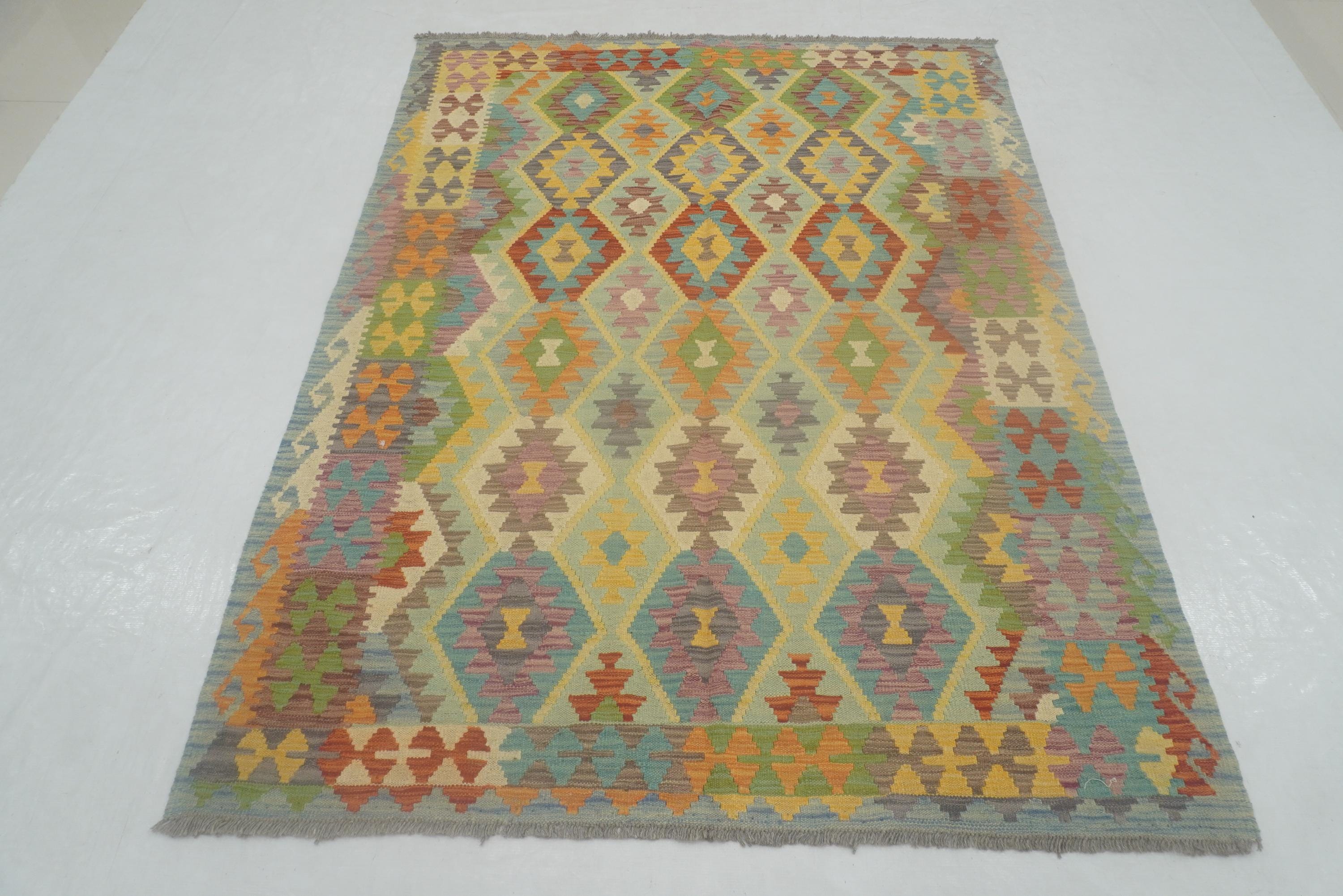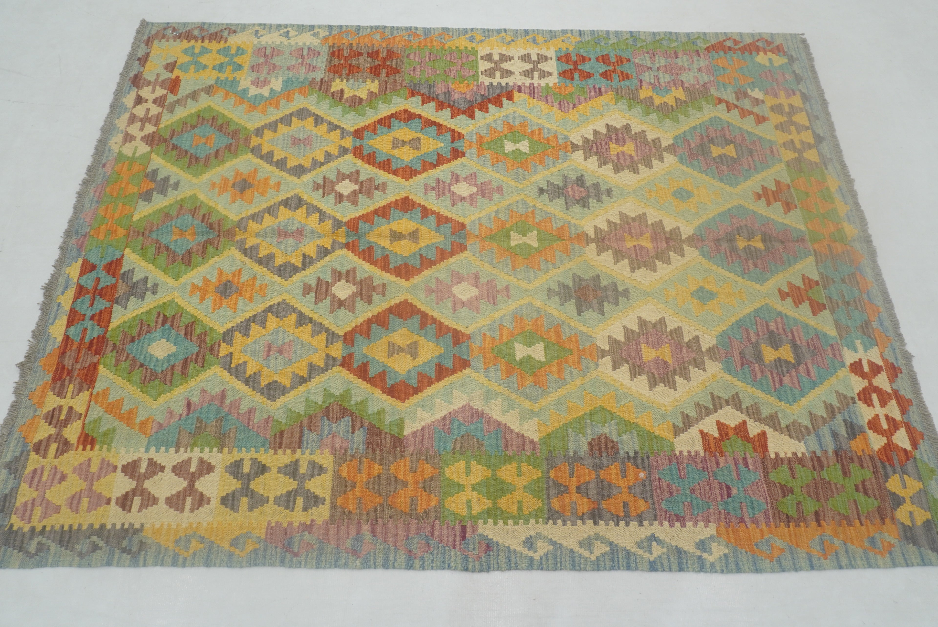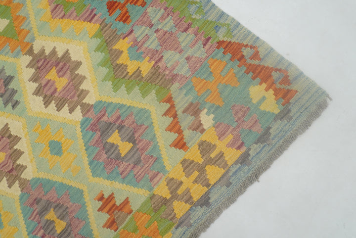 5x7 Muted Blue Afghan Reversible Kilim Rug