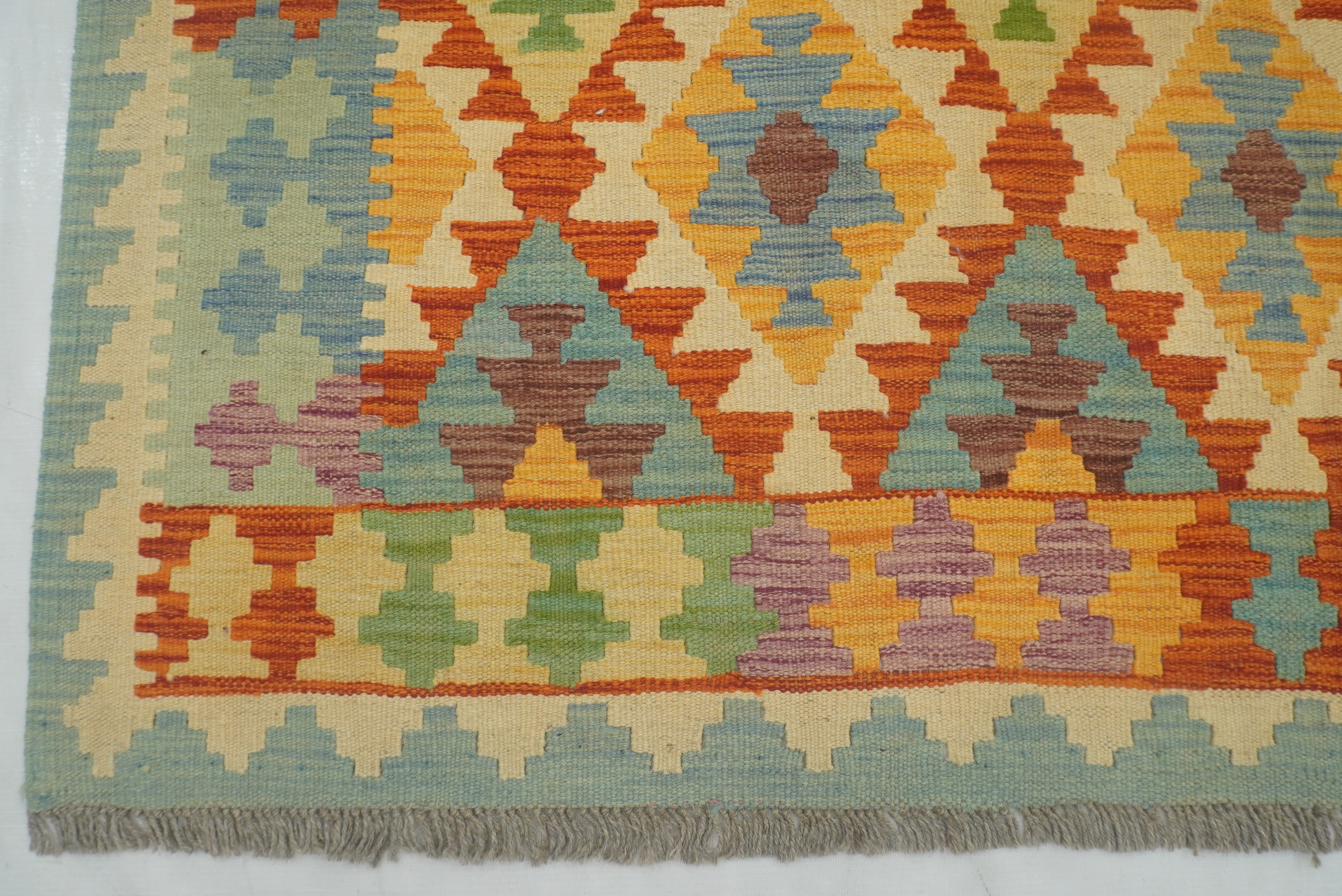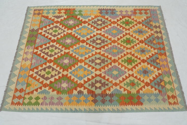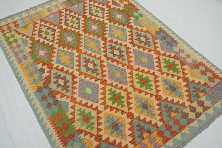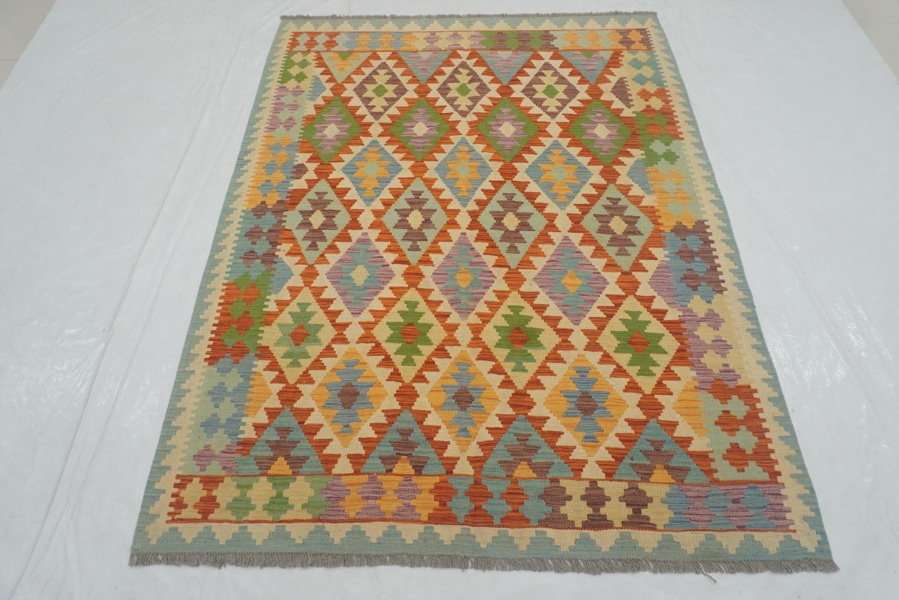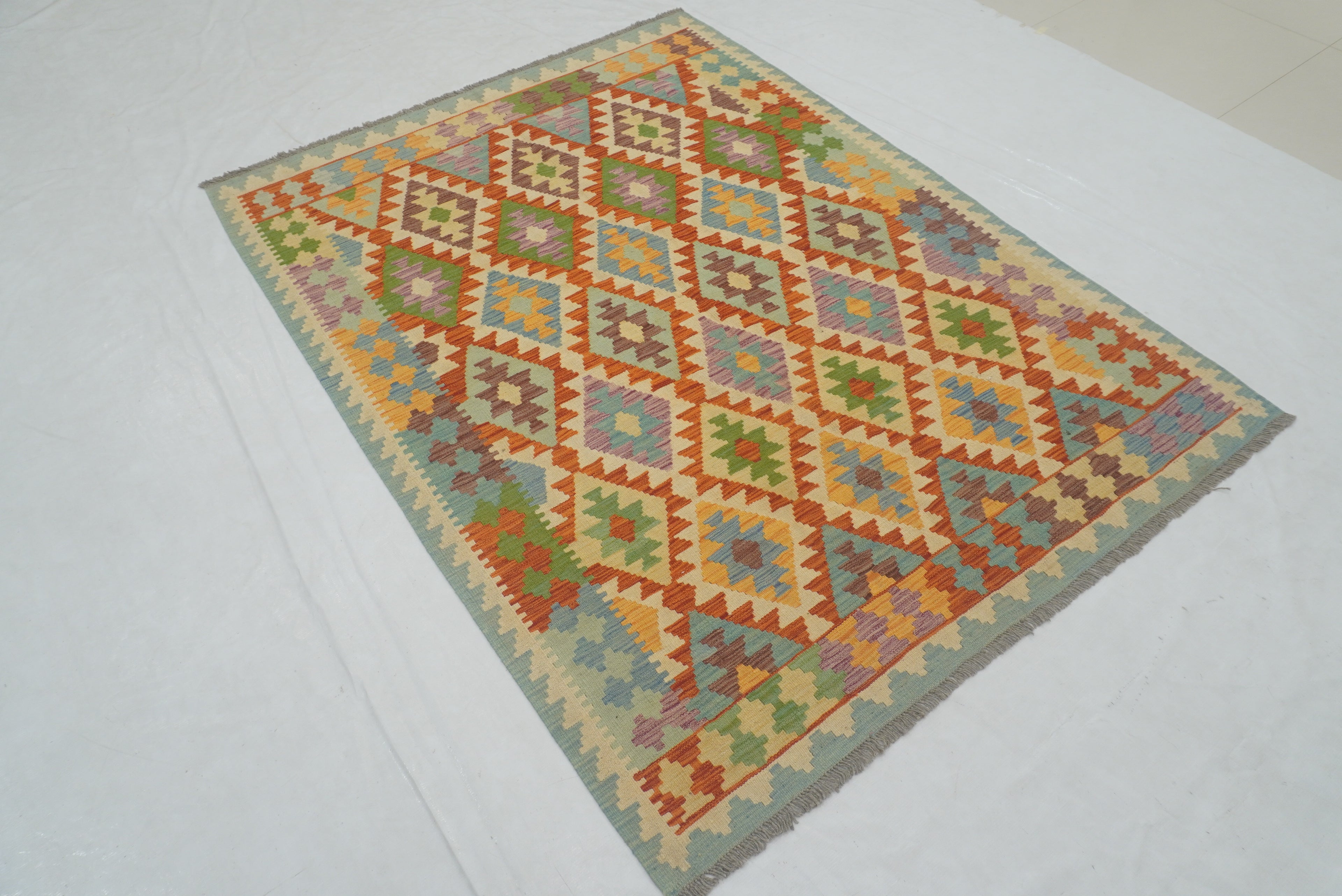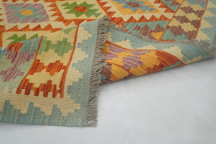 5x7 Orange Blue Afghan Geometric Reversible Kilim Rug