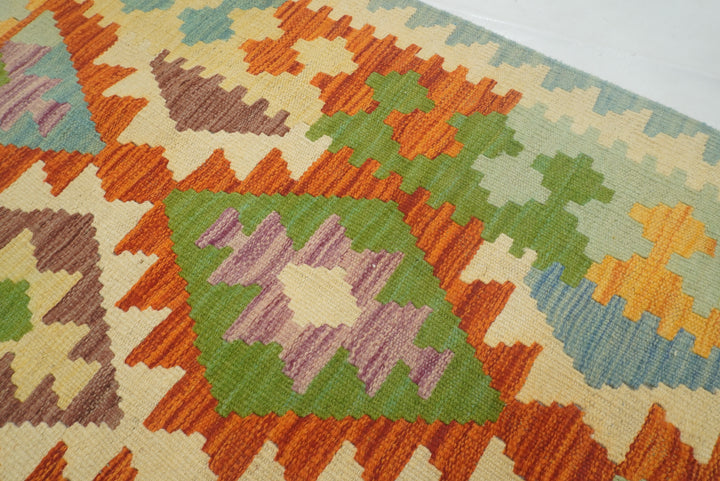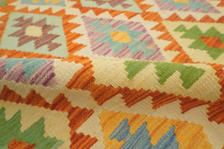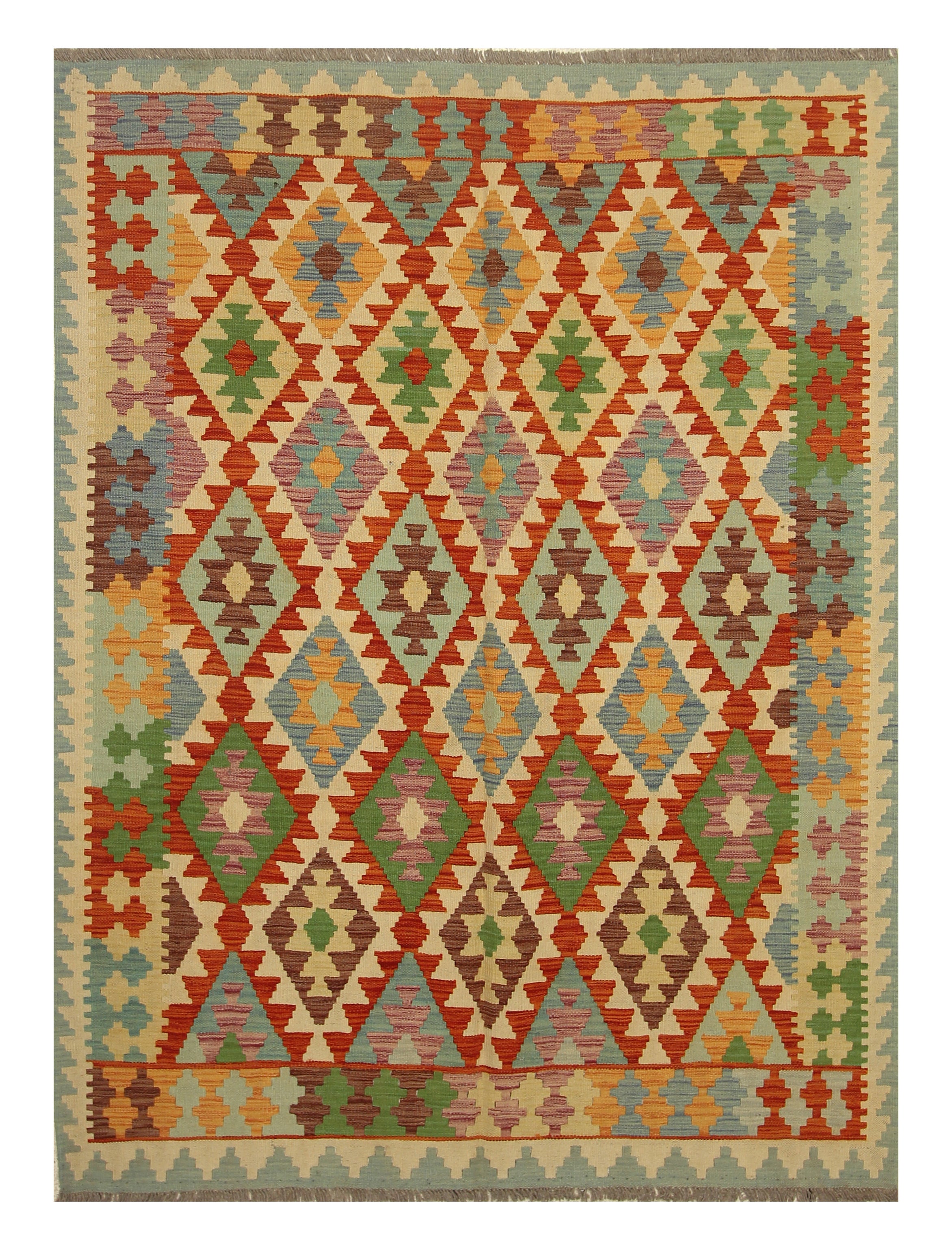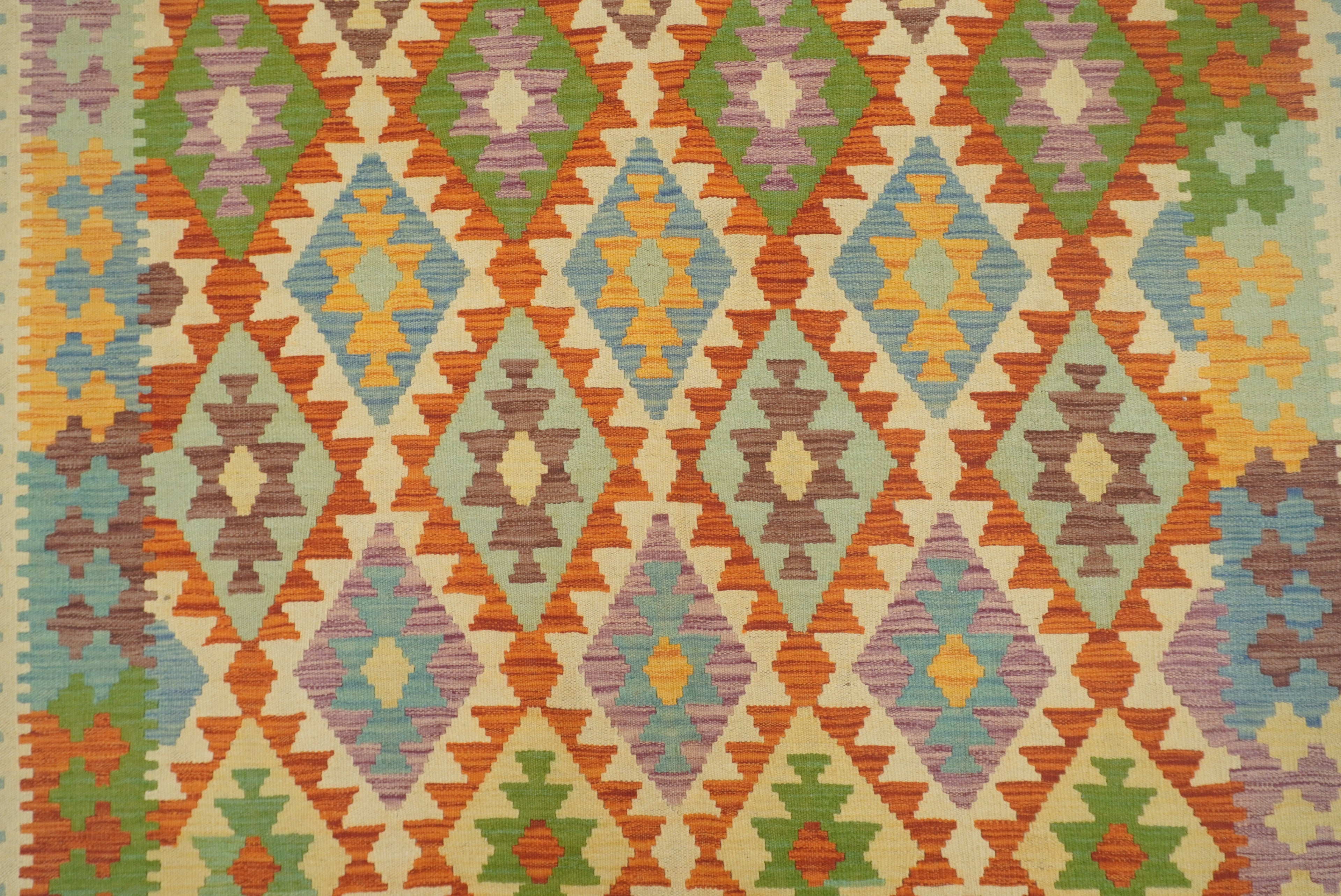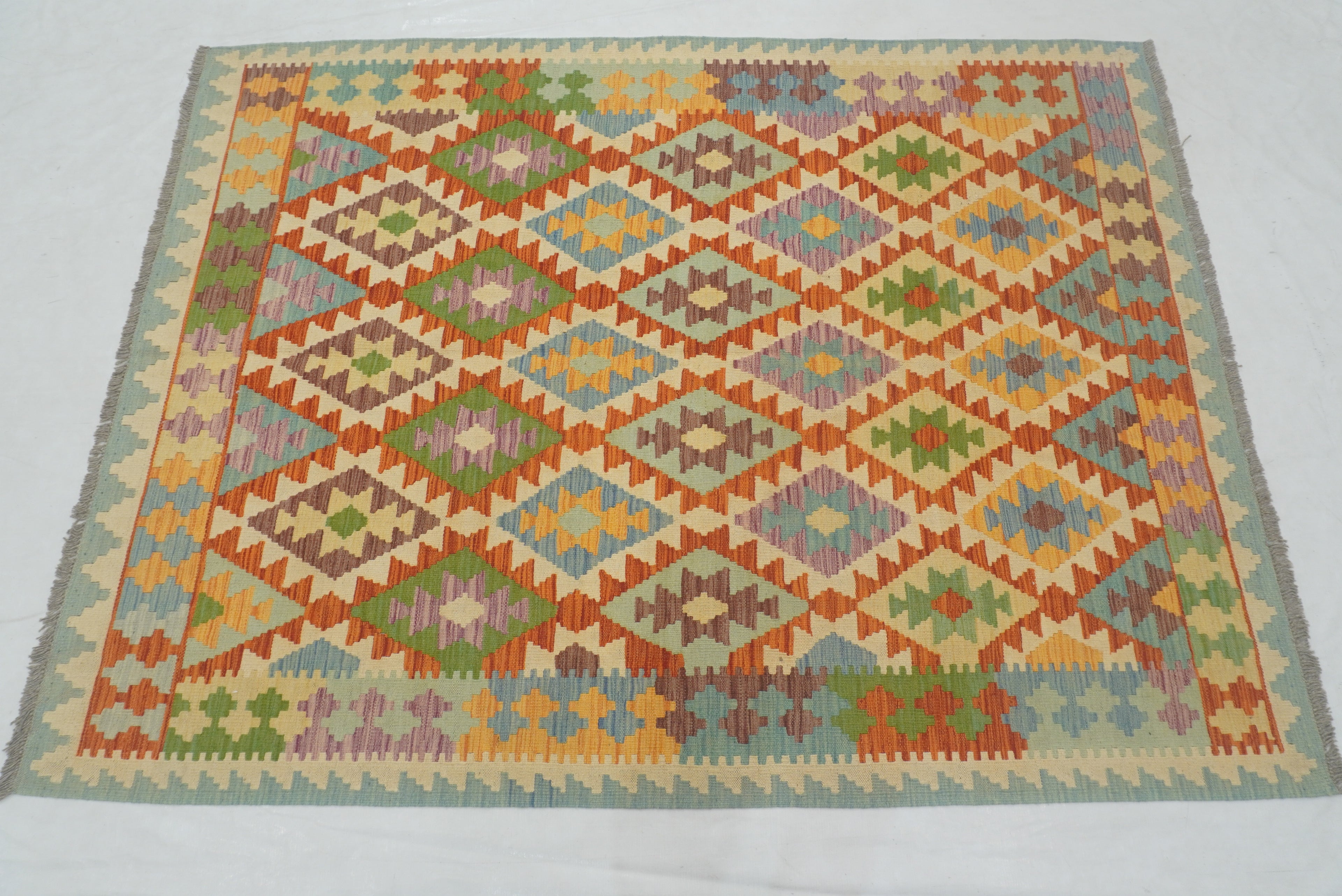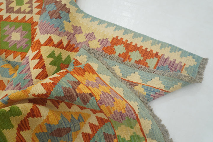 5x7 Orange Blue Afghan Geometric Reversible Kilim Rug