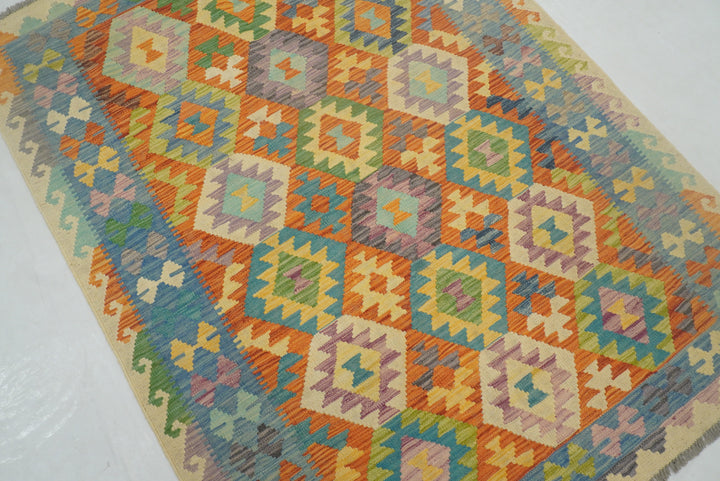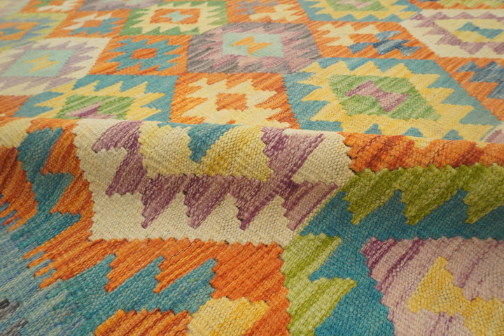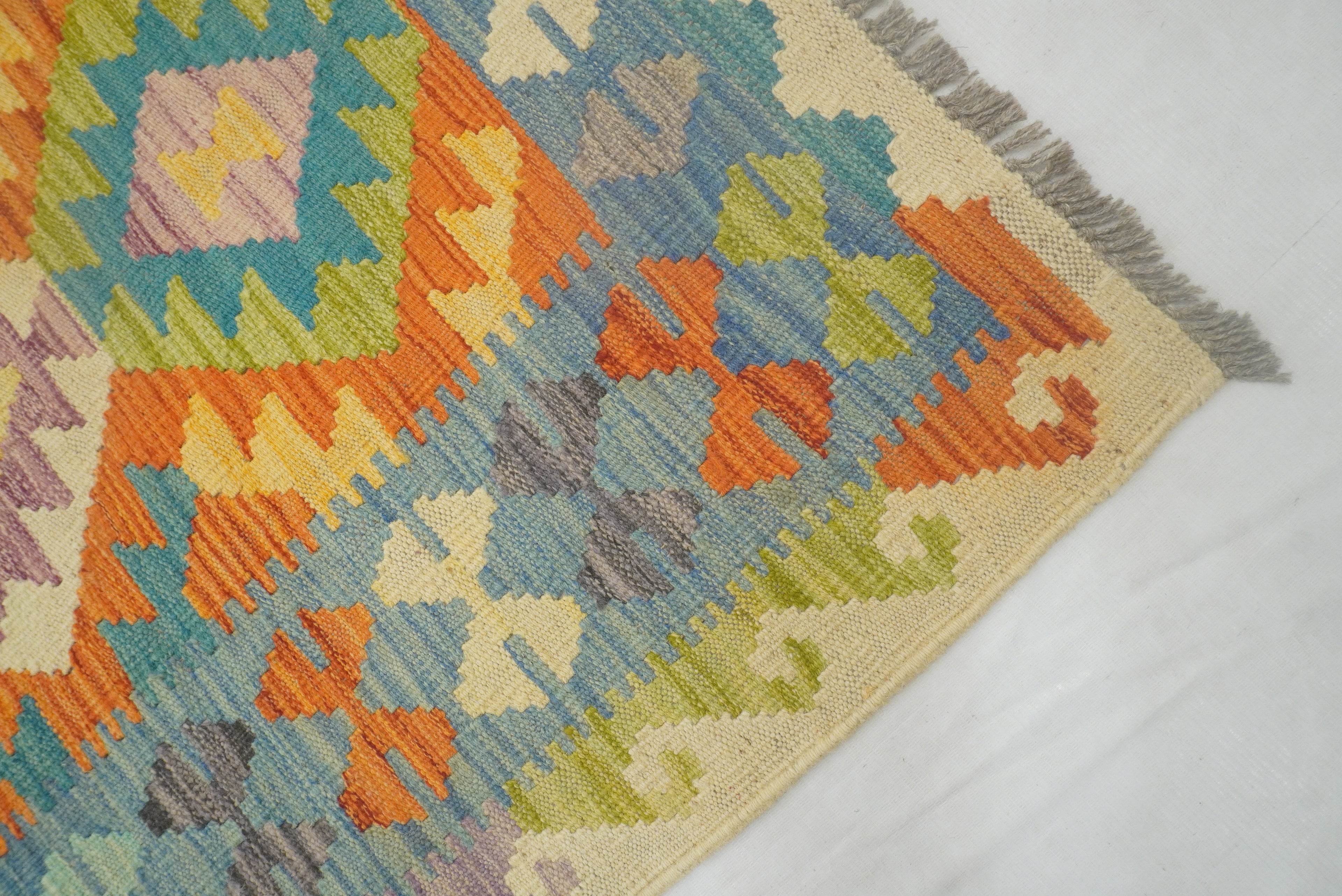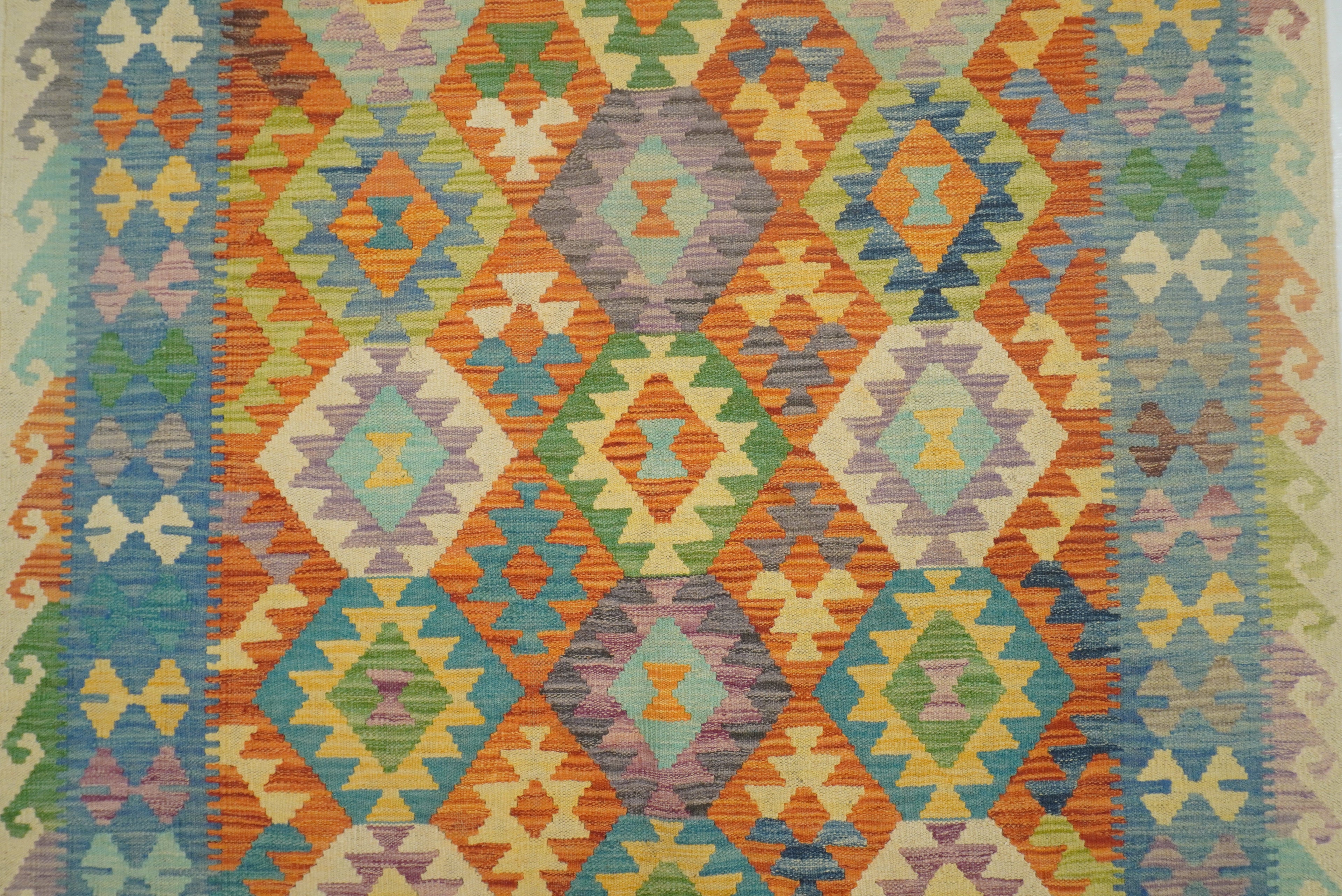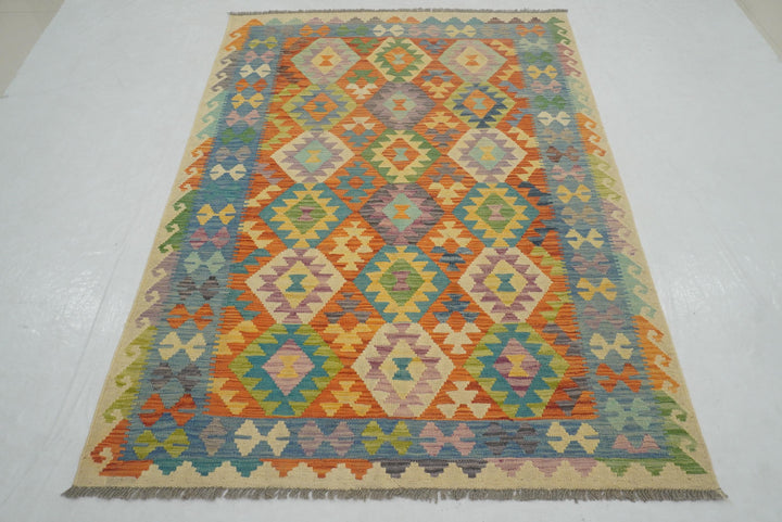 5x7 Orange Blue Afghan Handmade Reversible Kilim Rug
