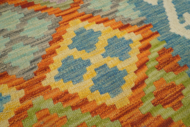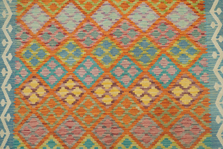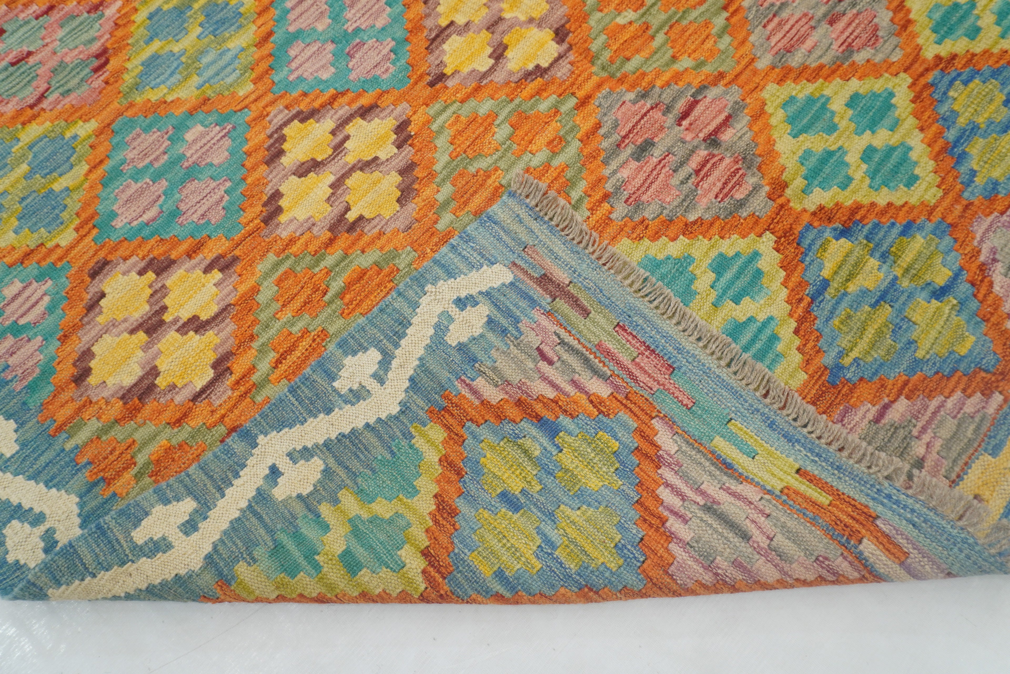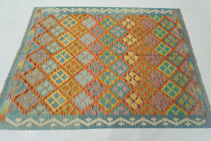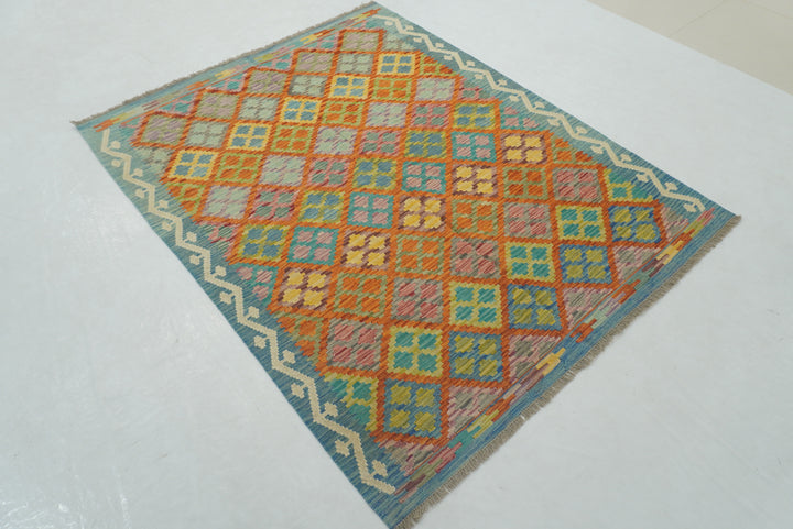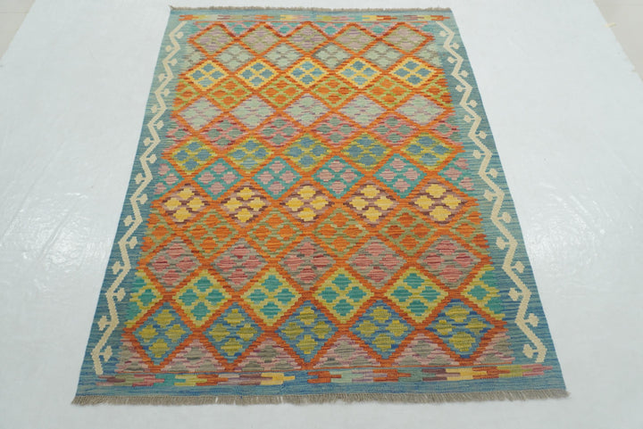 5x7 Orange Blue Afghan Reversible Kilim Rug