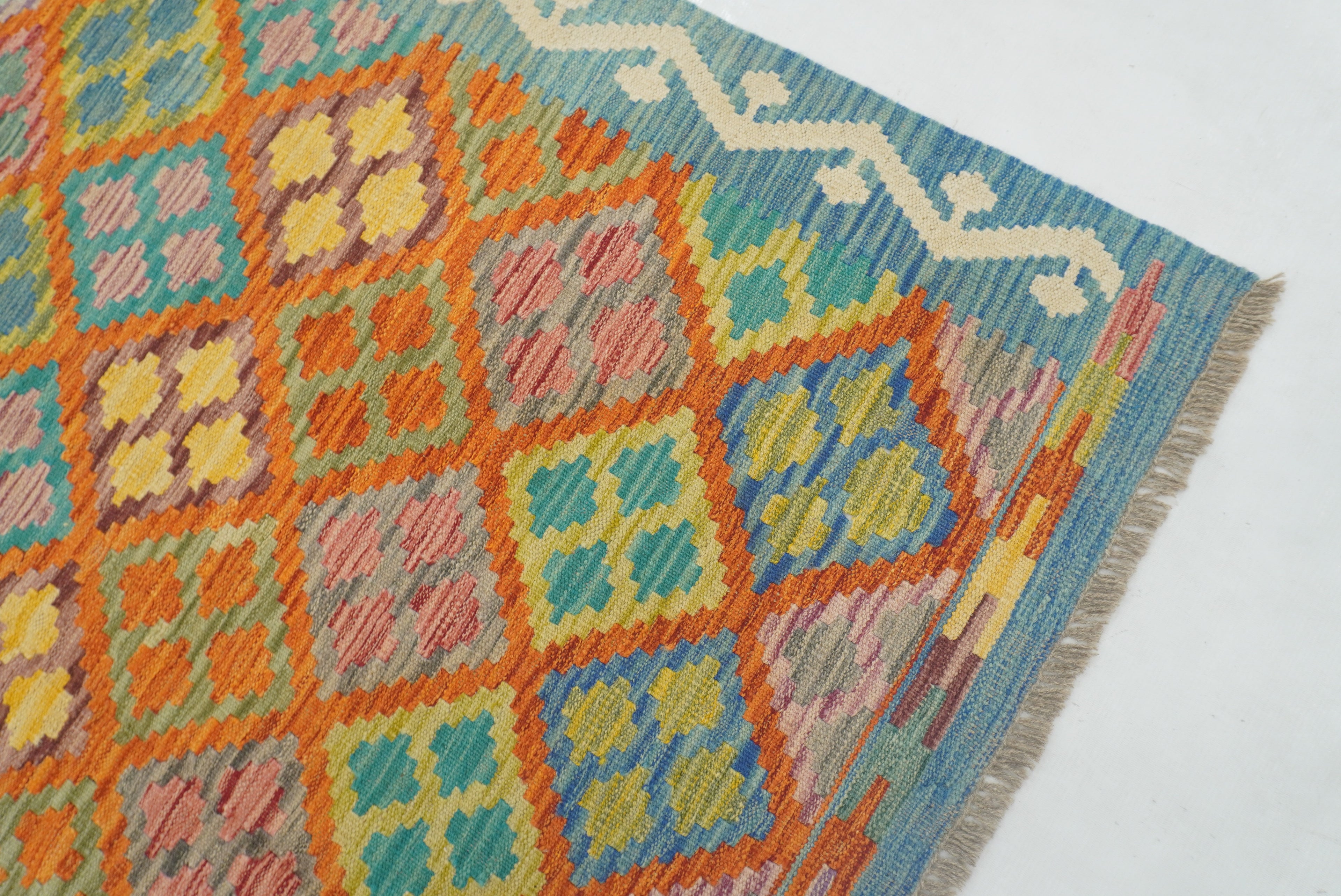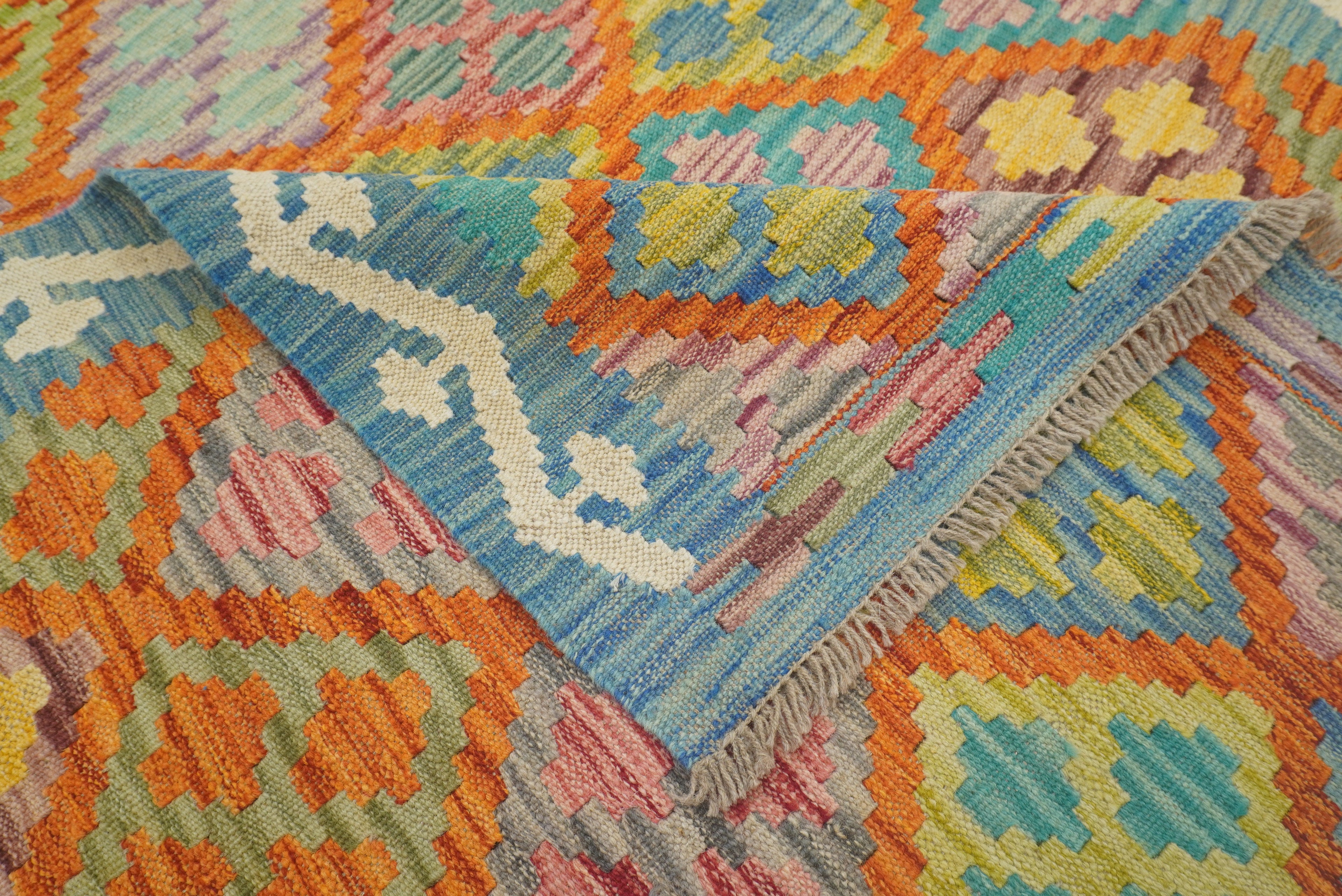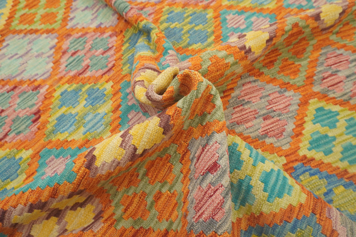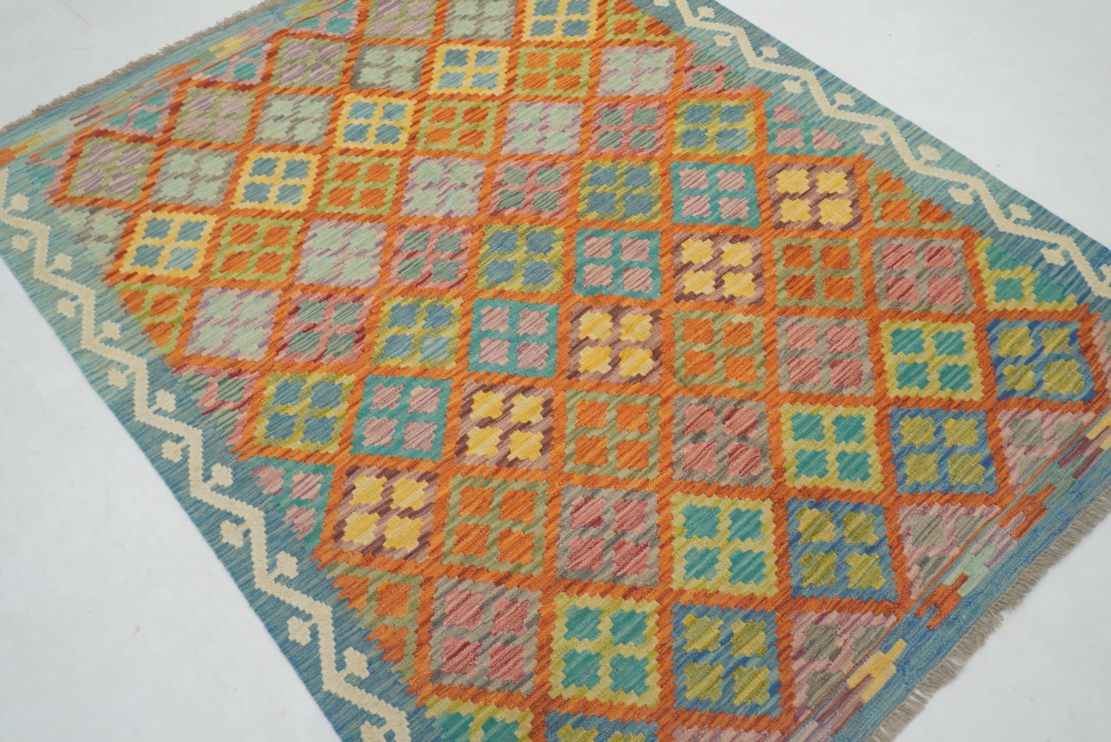 5x7 Orange Blue Afghan Reversible Kilim Rug