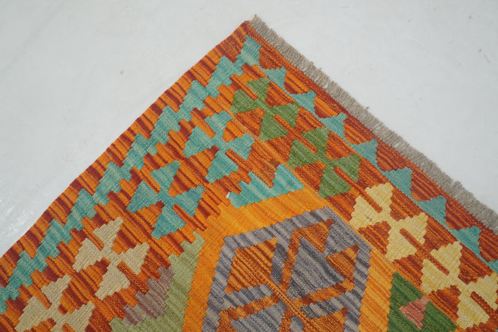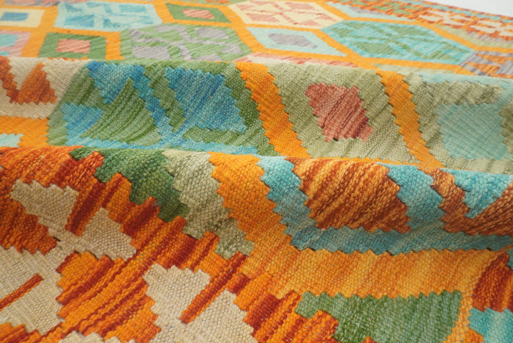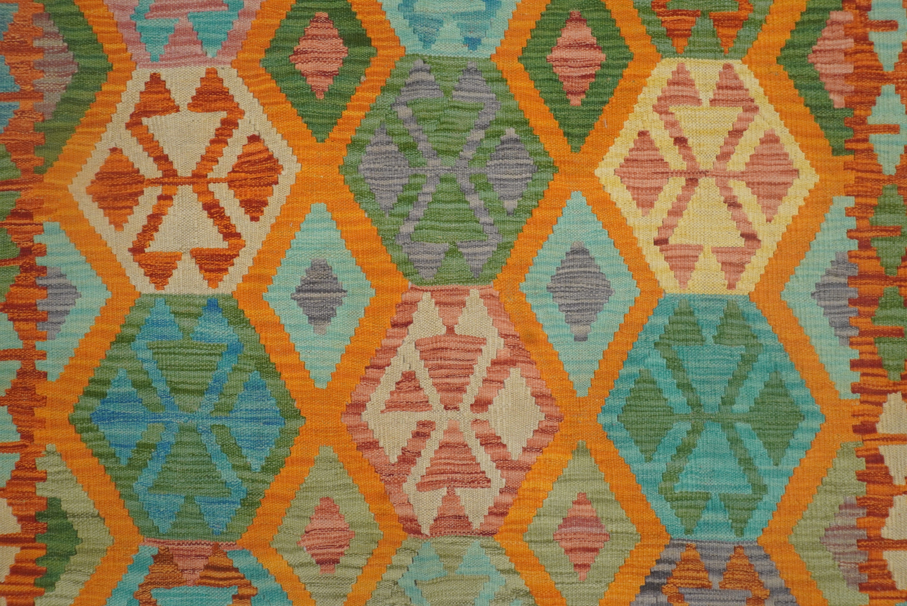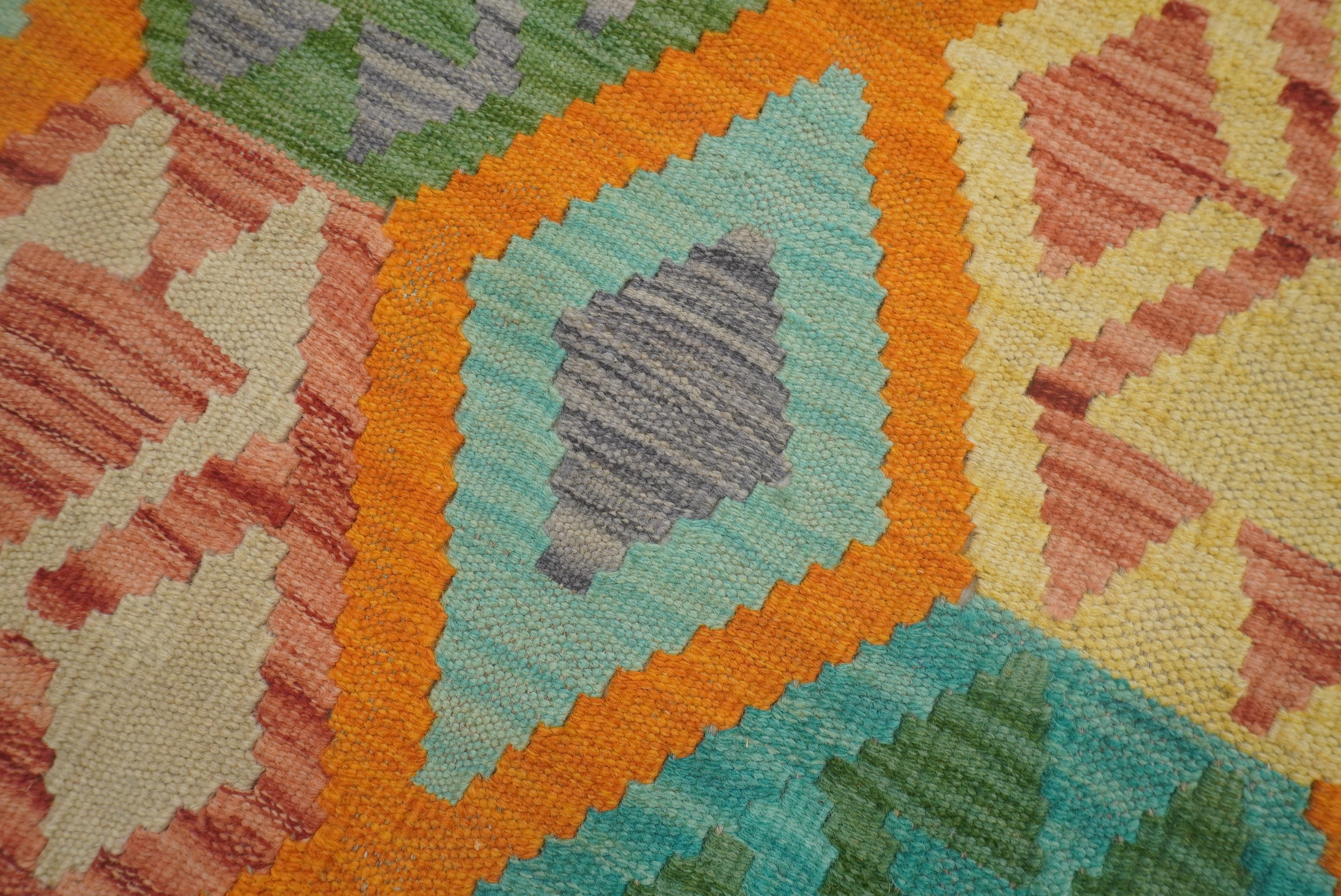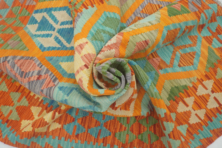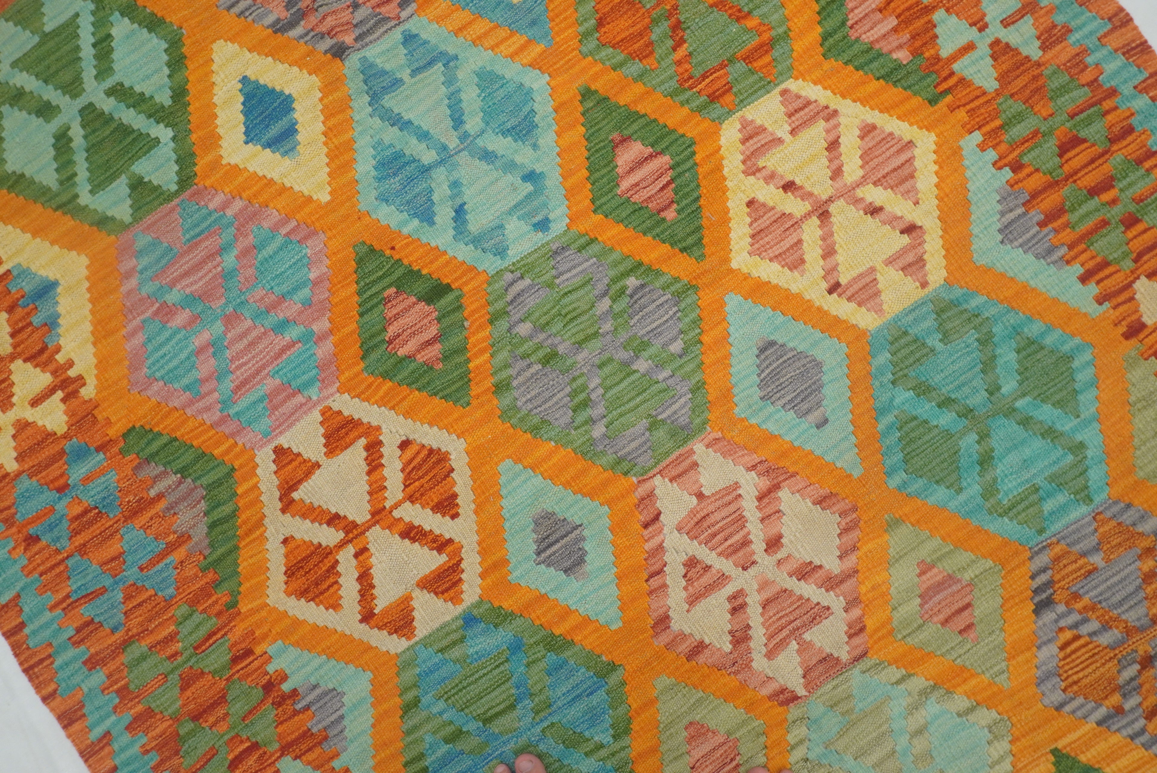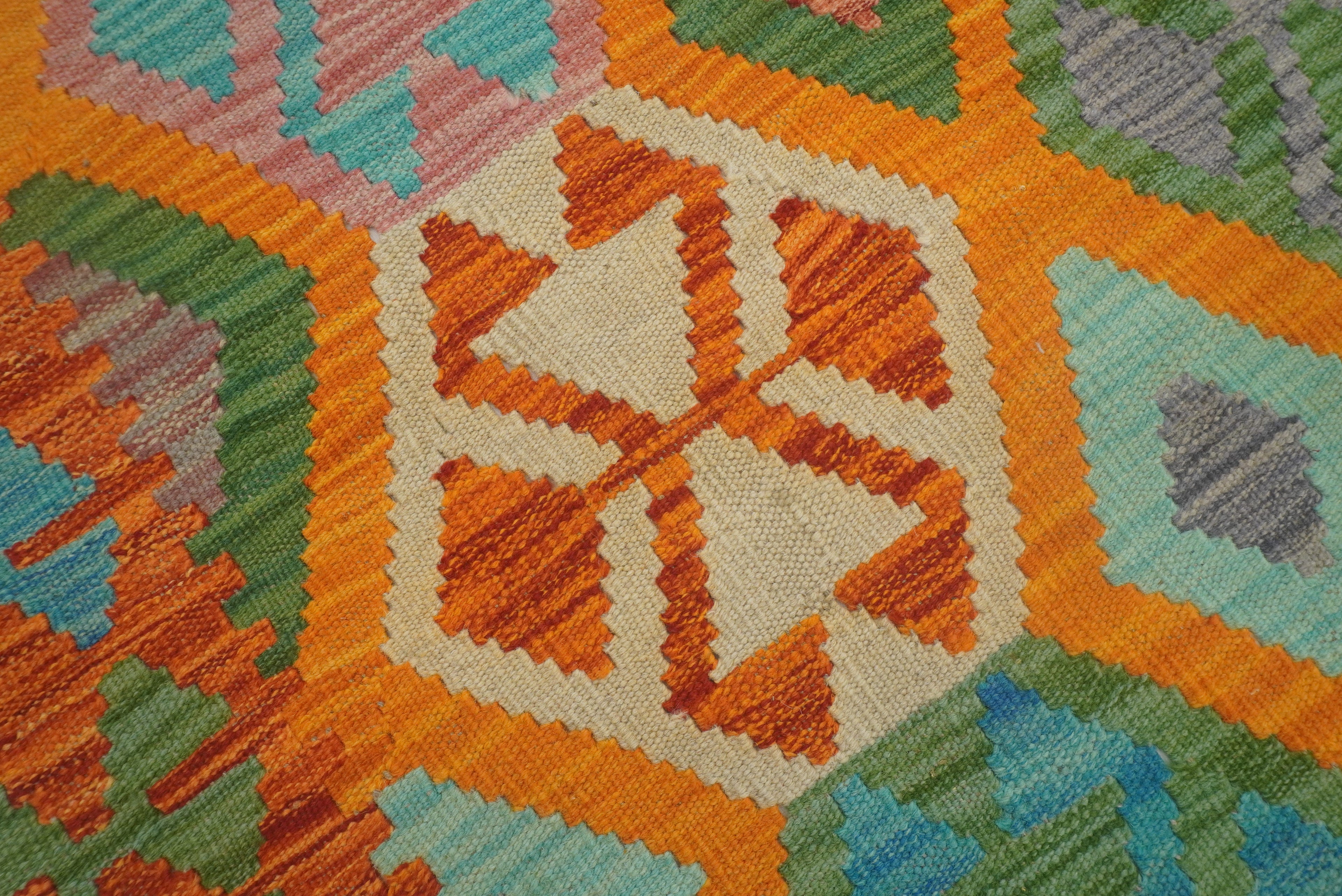 5x7 Orange Red Afghan Geometric Reversible Kilim Rug