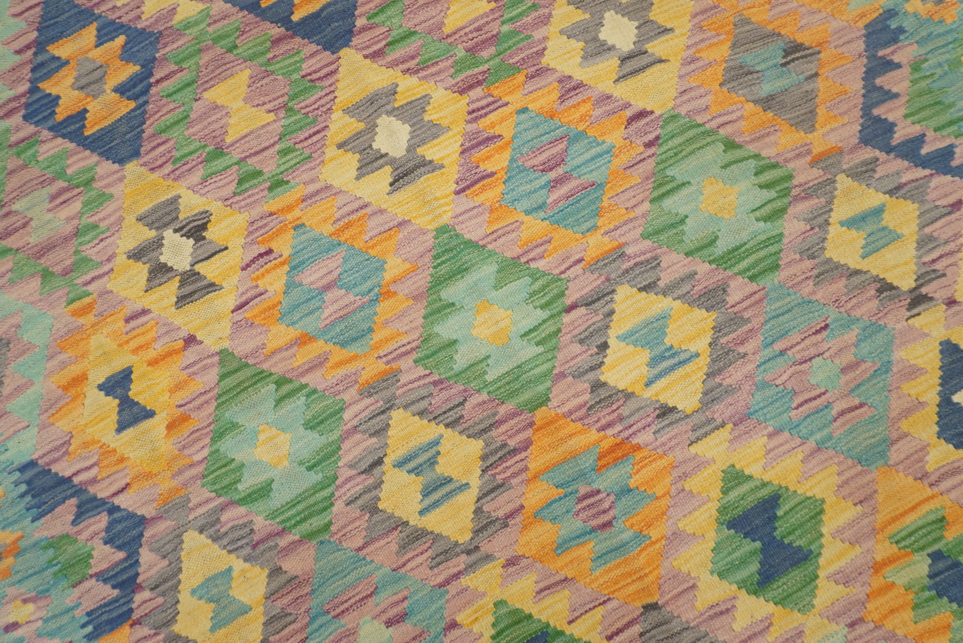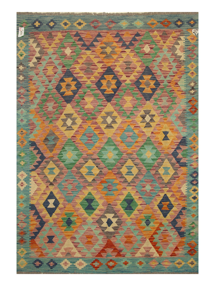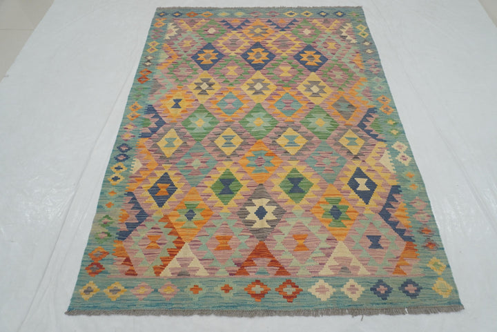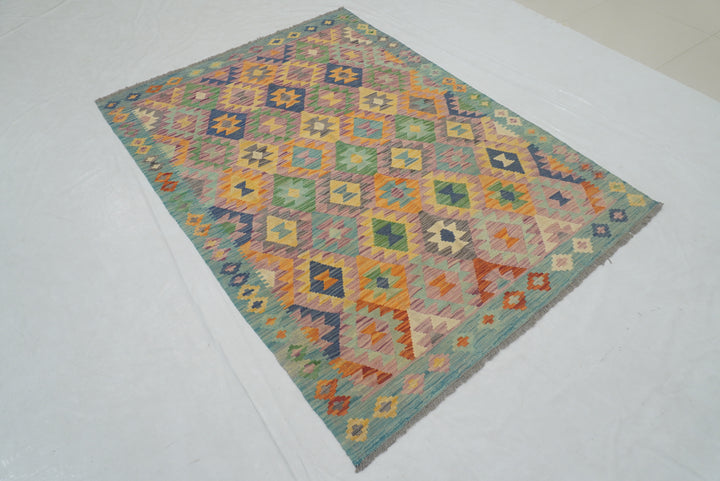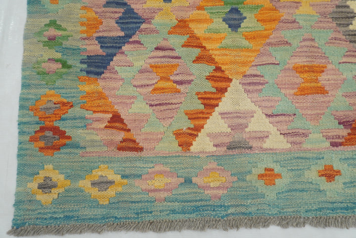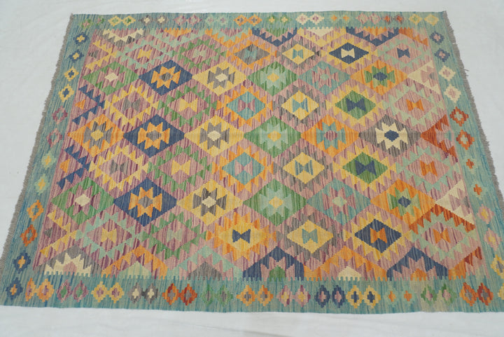 5x7 Purple Blue Afghan Geometric Reversible Kilim Rug