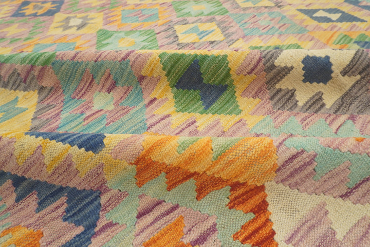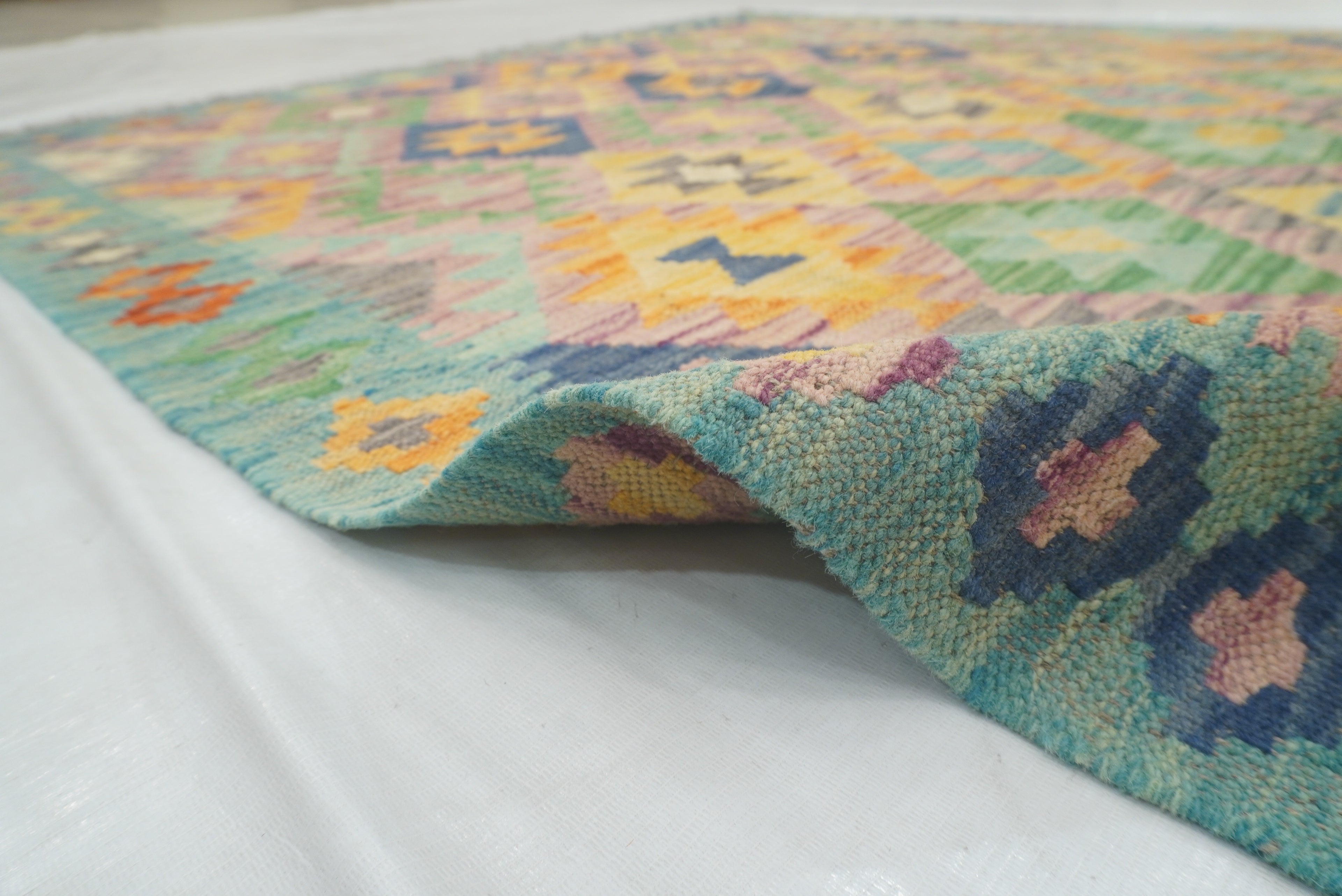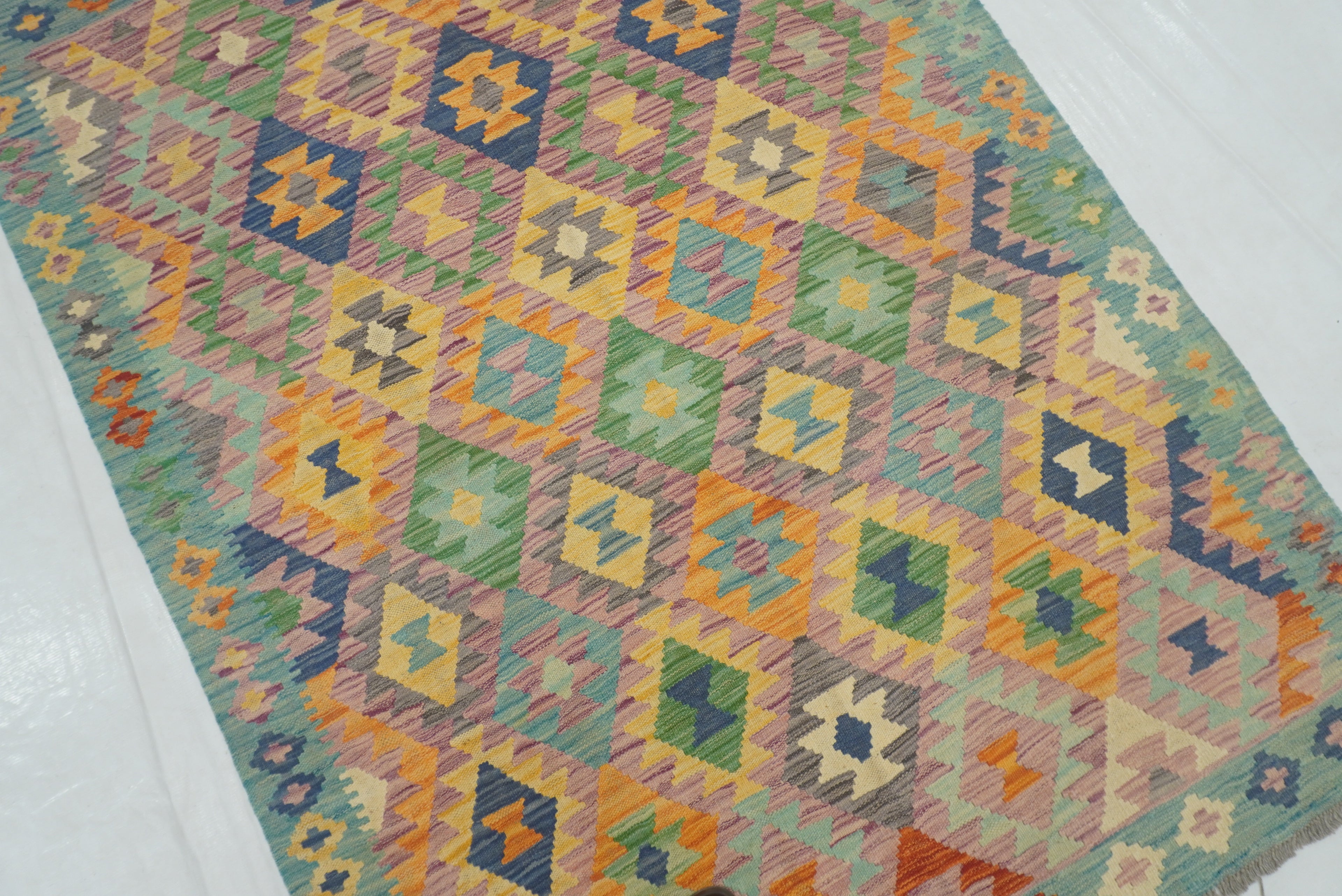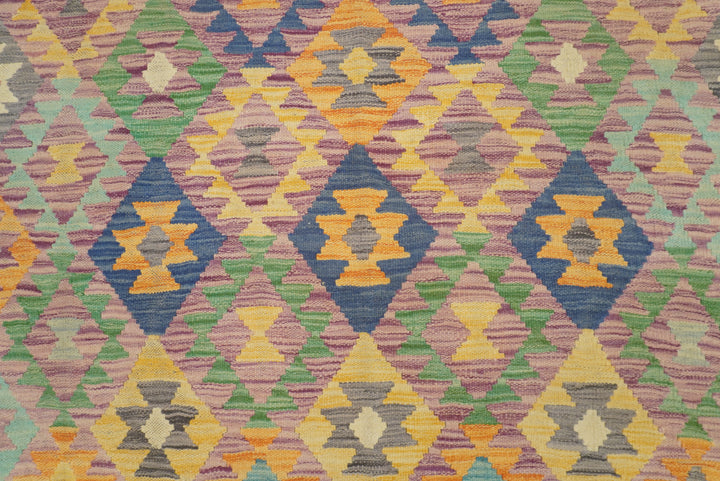 5x7 Purple Blue Afghan Geometric Reversible Kilim Rug