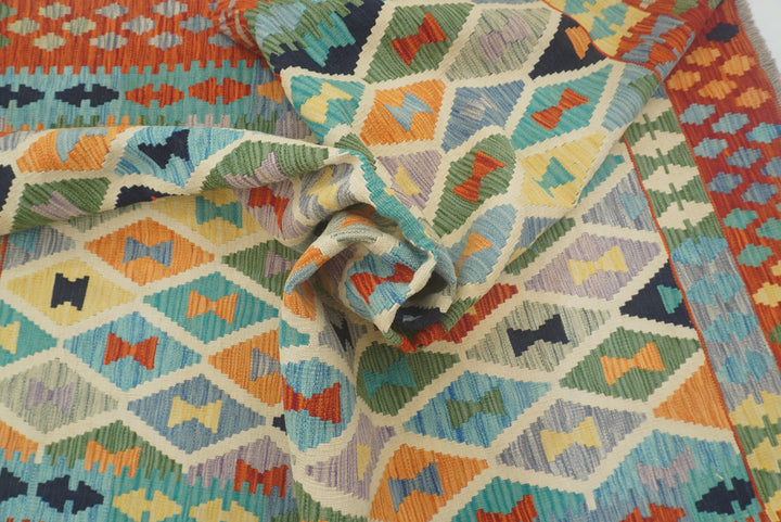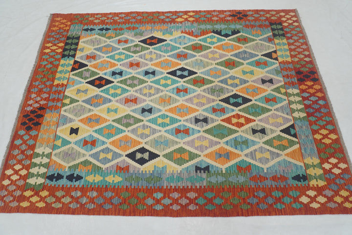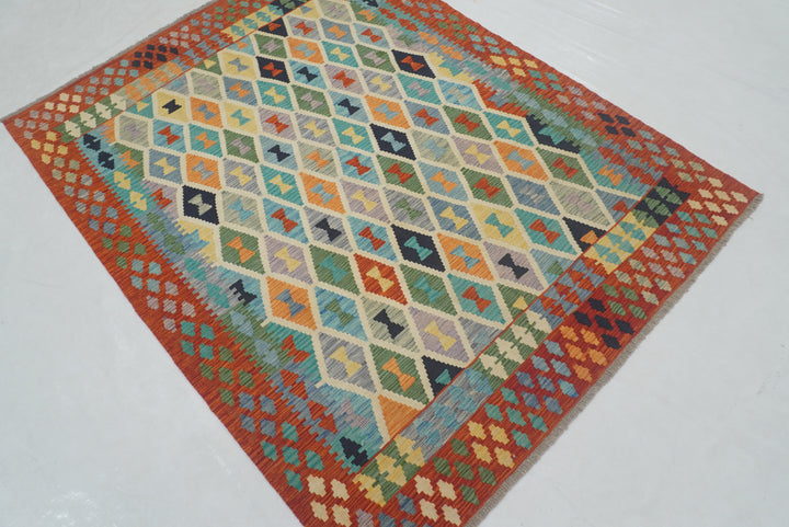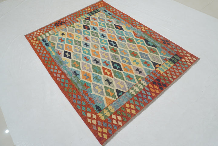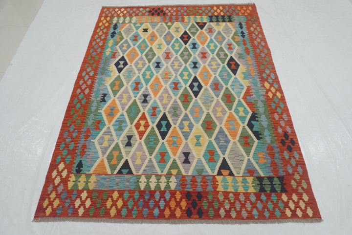 5x7 Red Afghan Geometric Reversible Kilim Rug