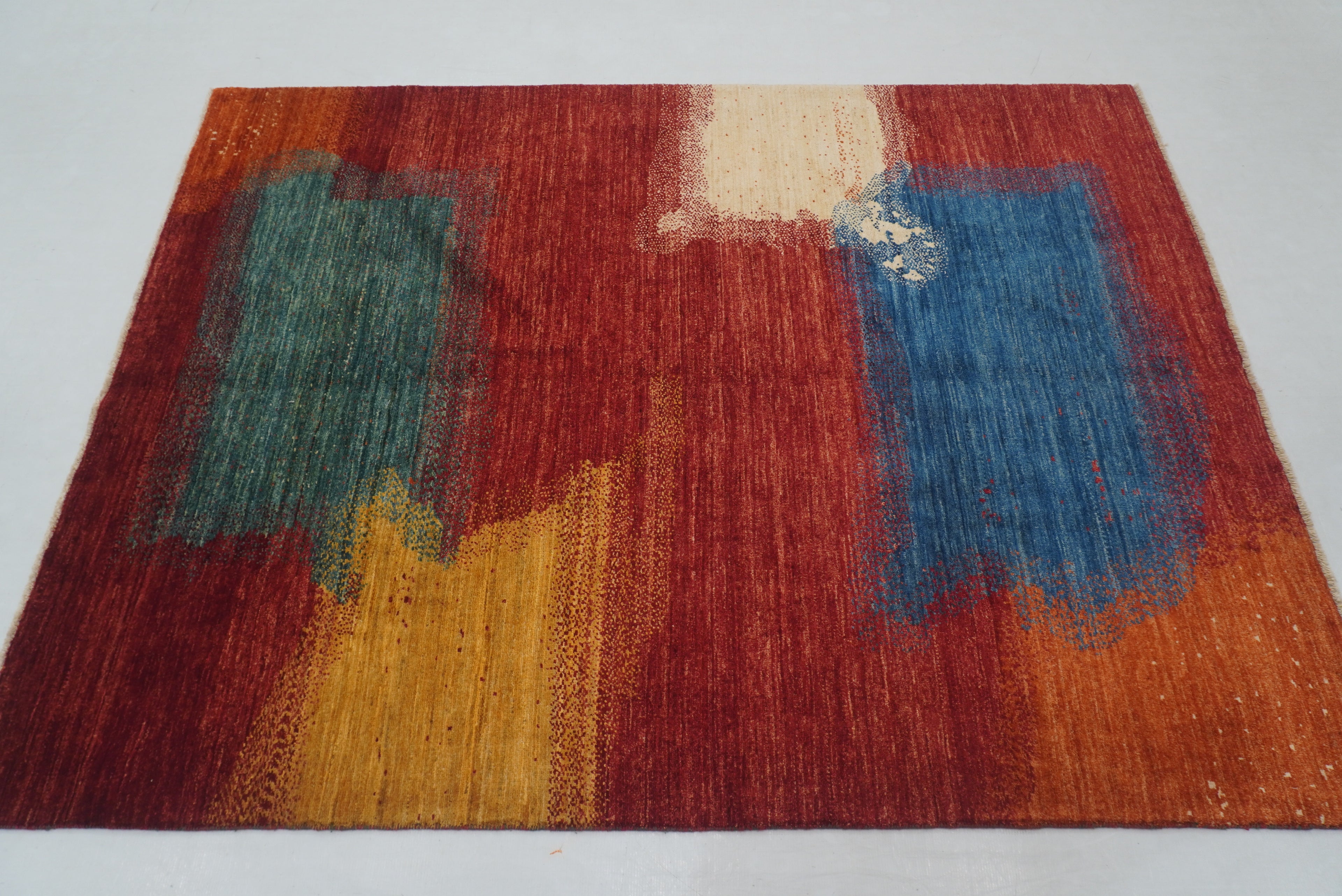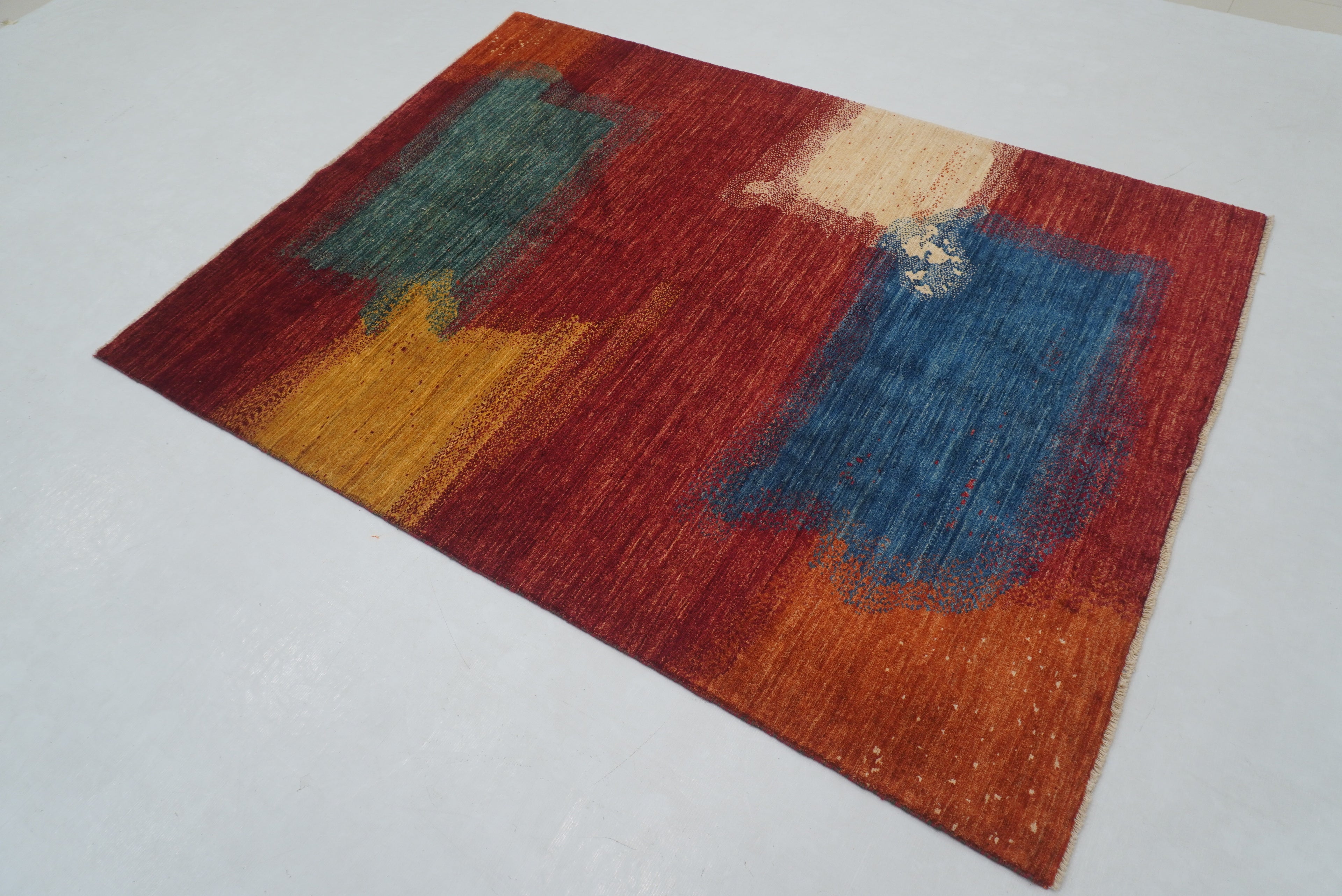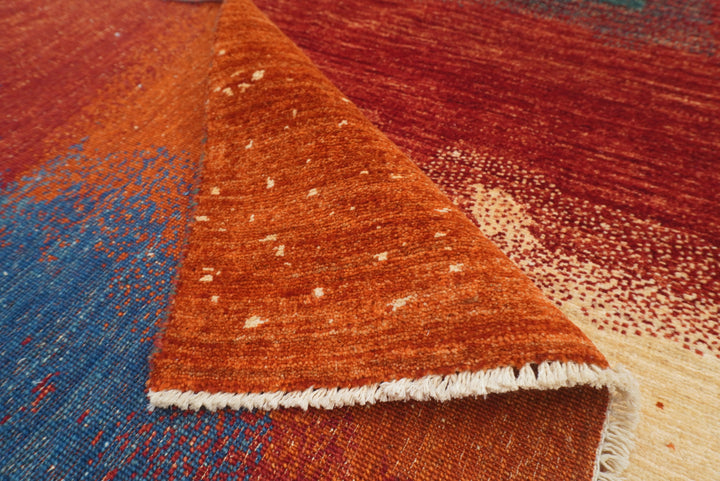 5x7 Red Modern Afghan Hand knotted Abstract Rug
