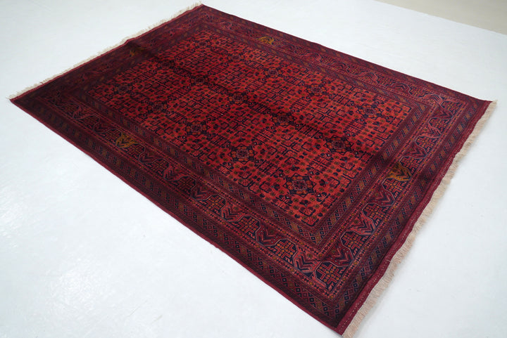 5x7 Rust Red Vintage Kunduz Afghan hand knotted Rug
