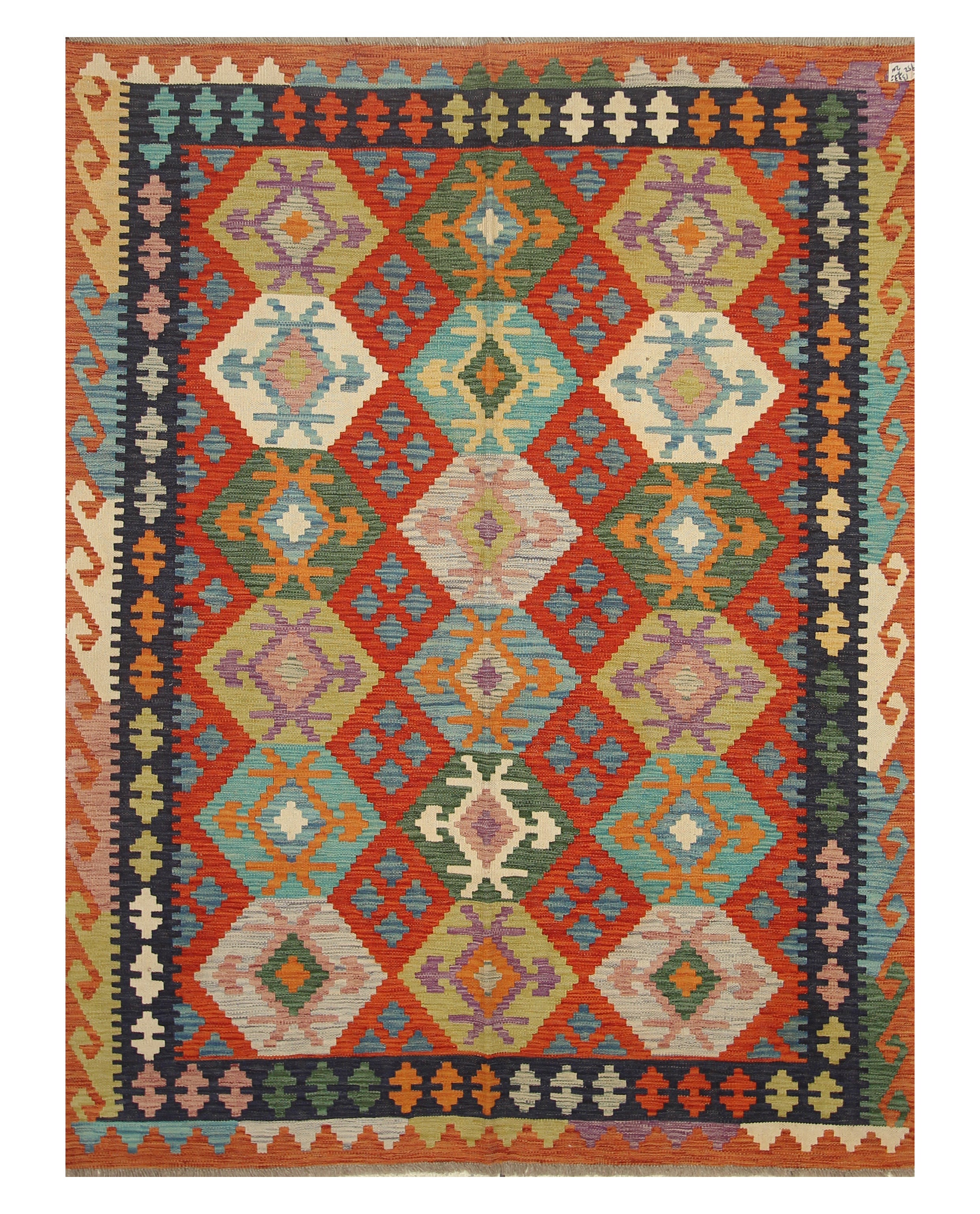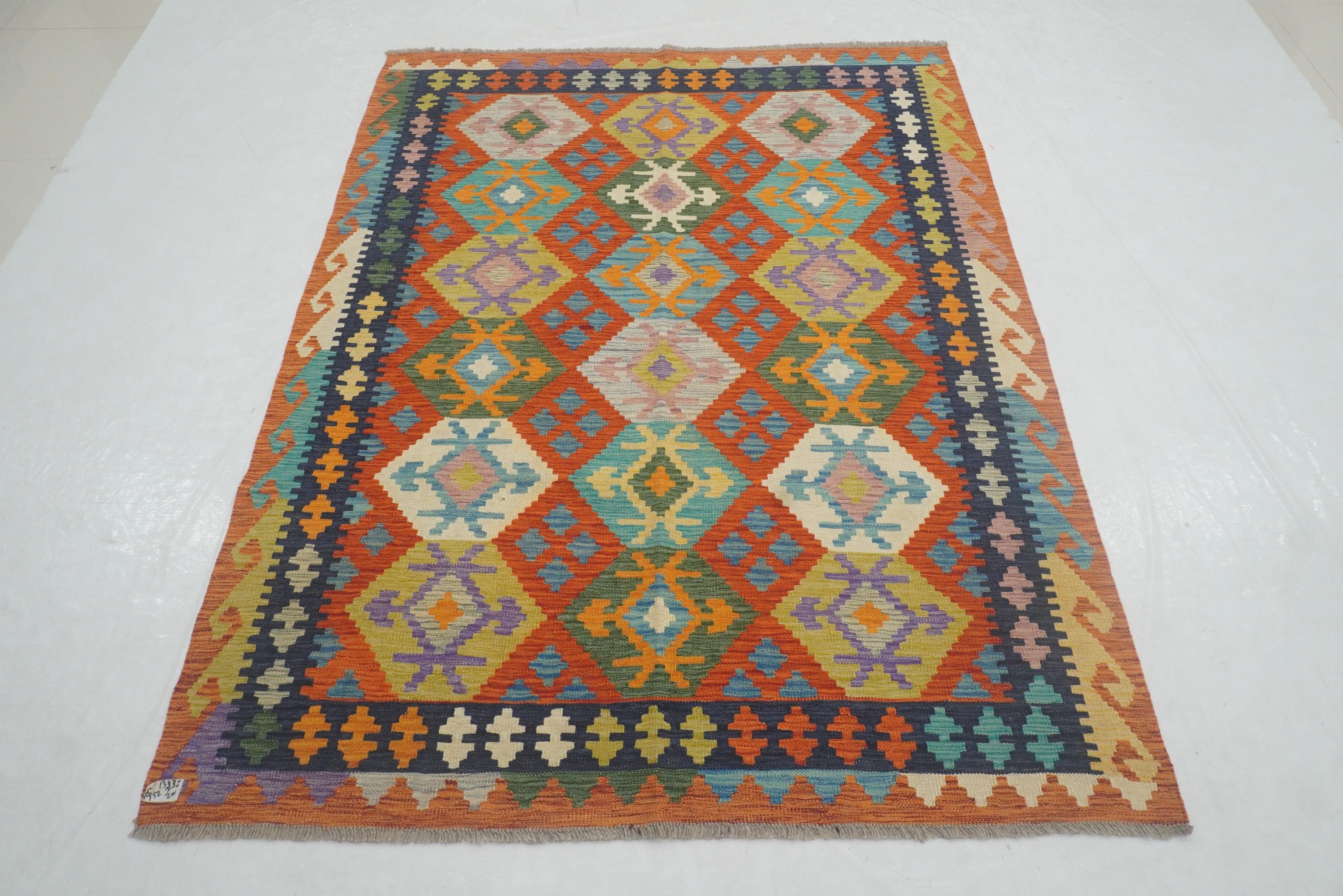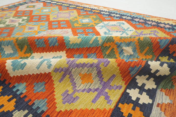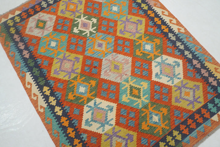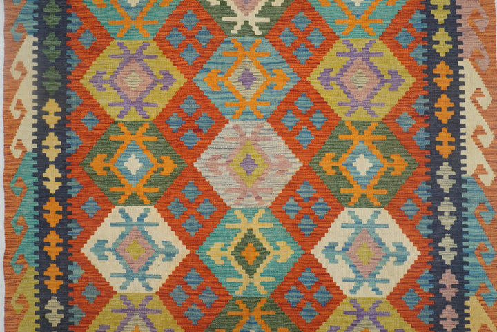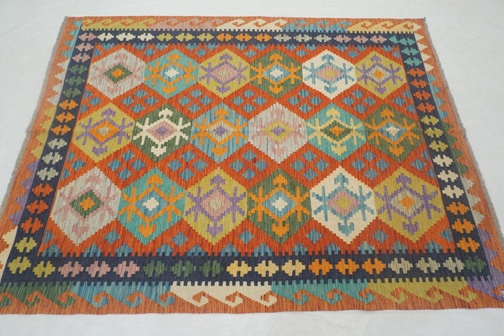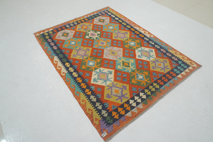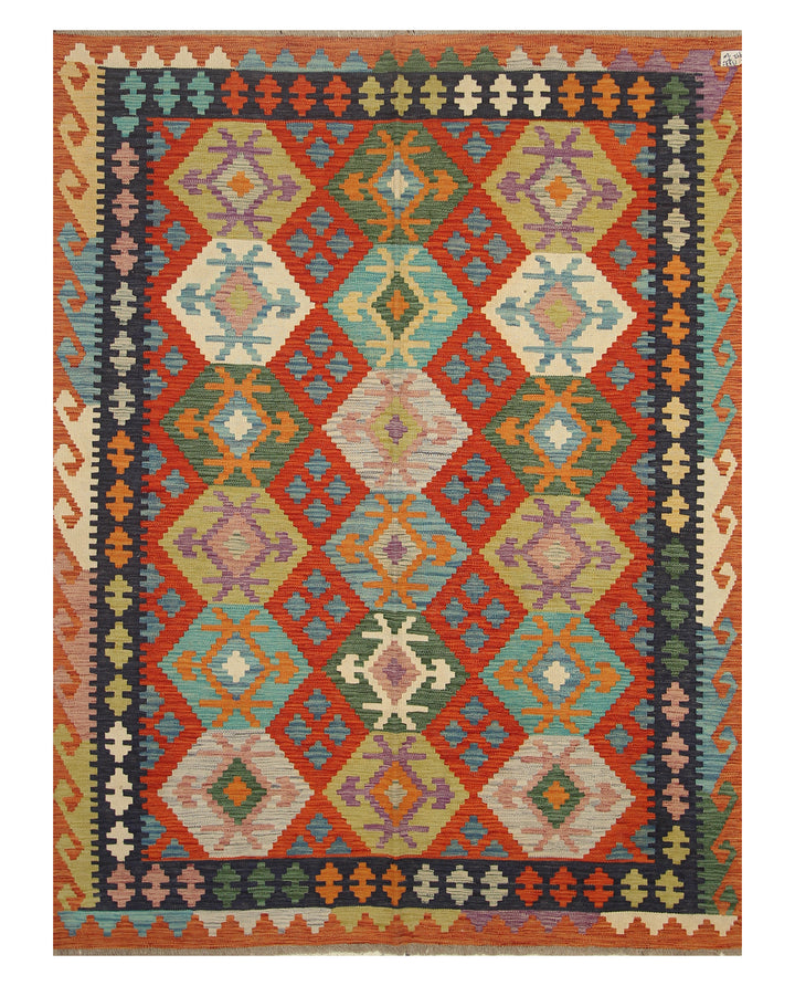5x7 Rusty Red Afghan Geometric Reversible Kilim Rug