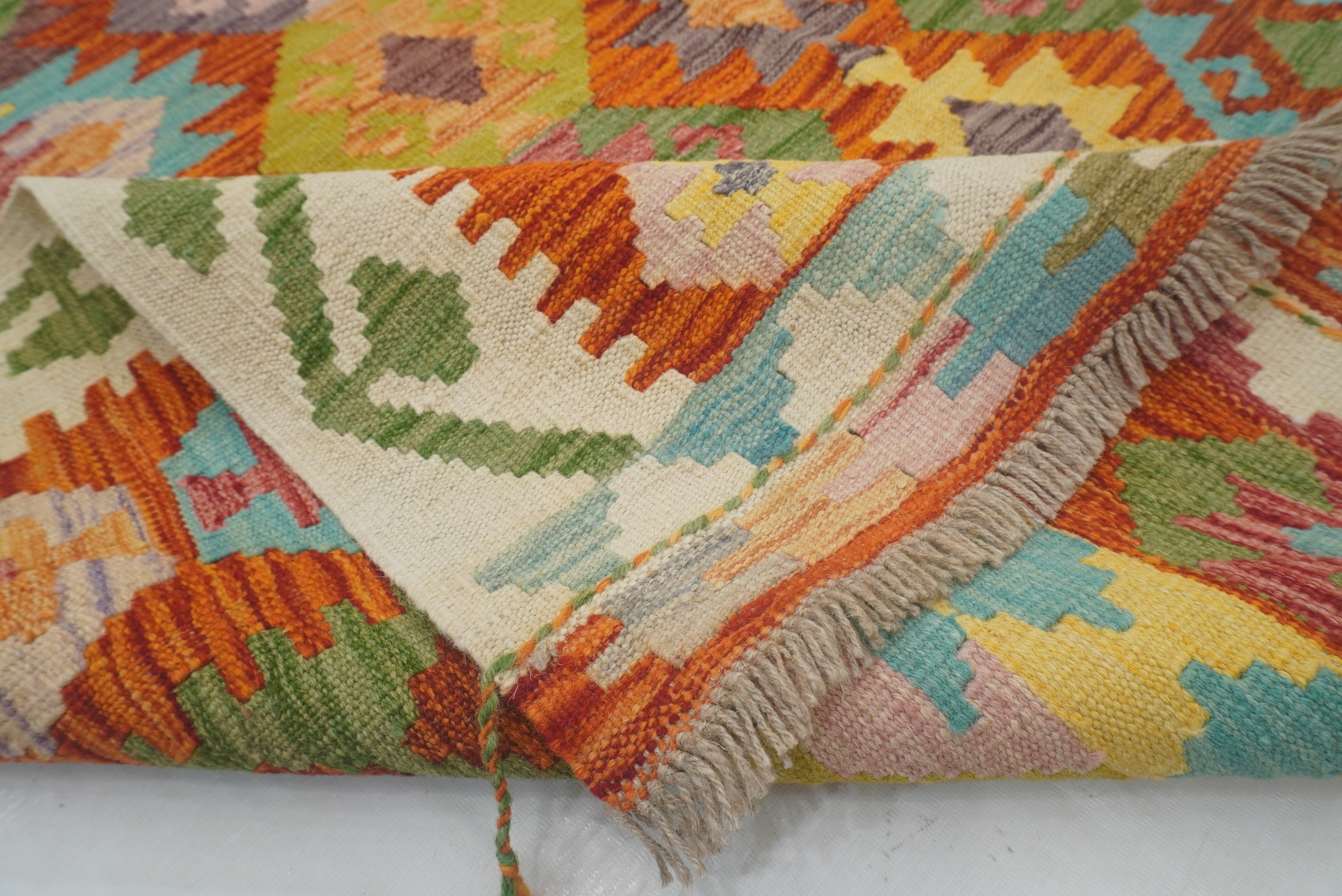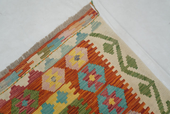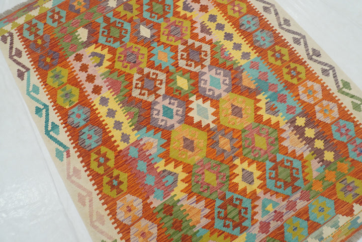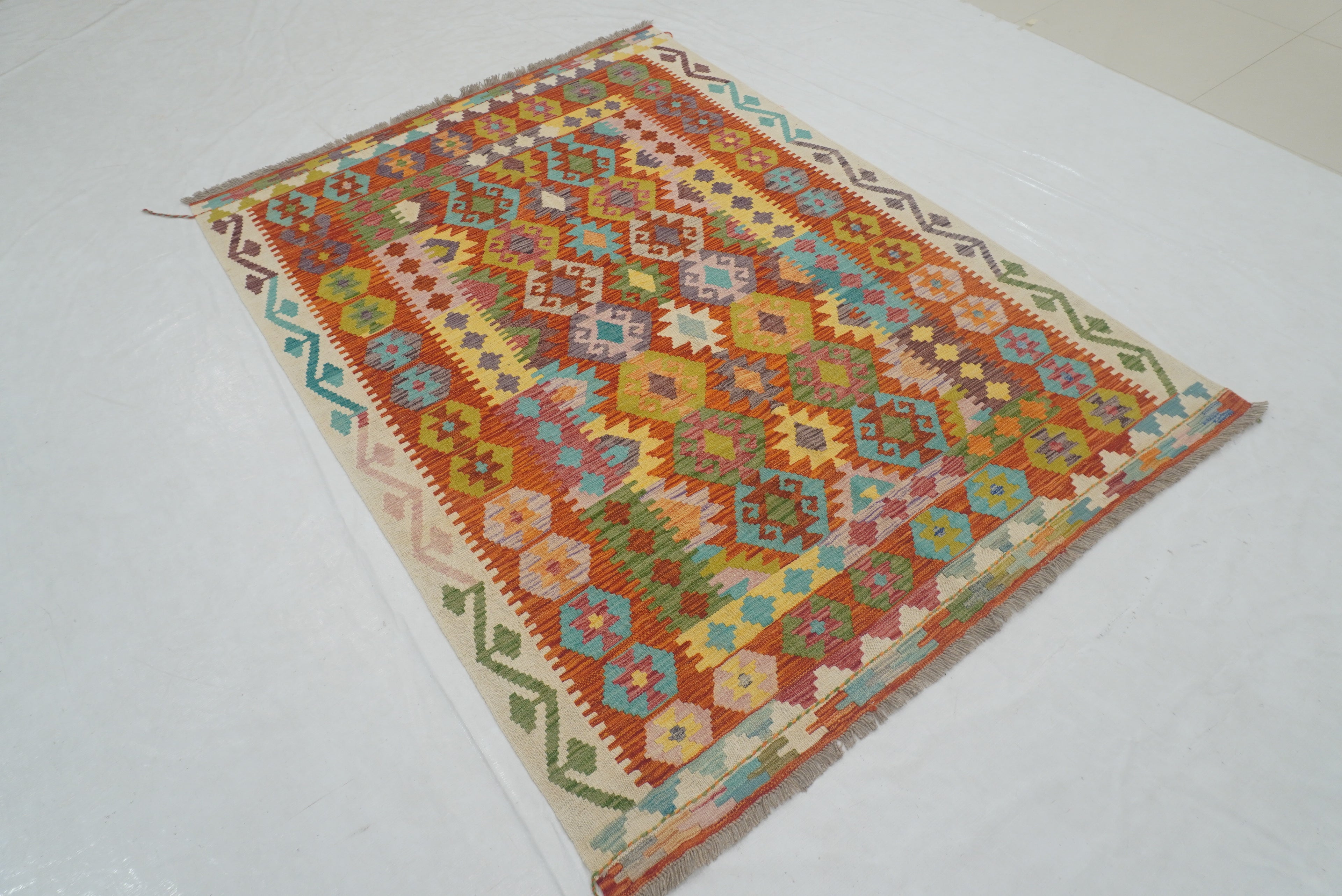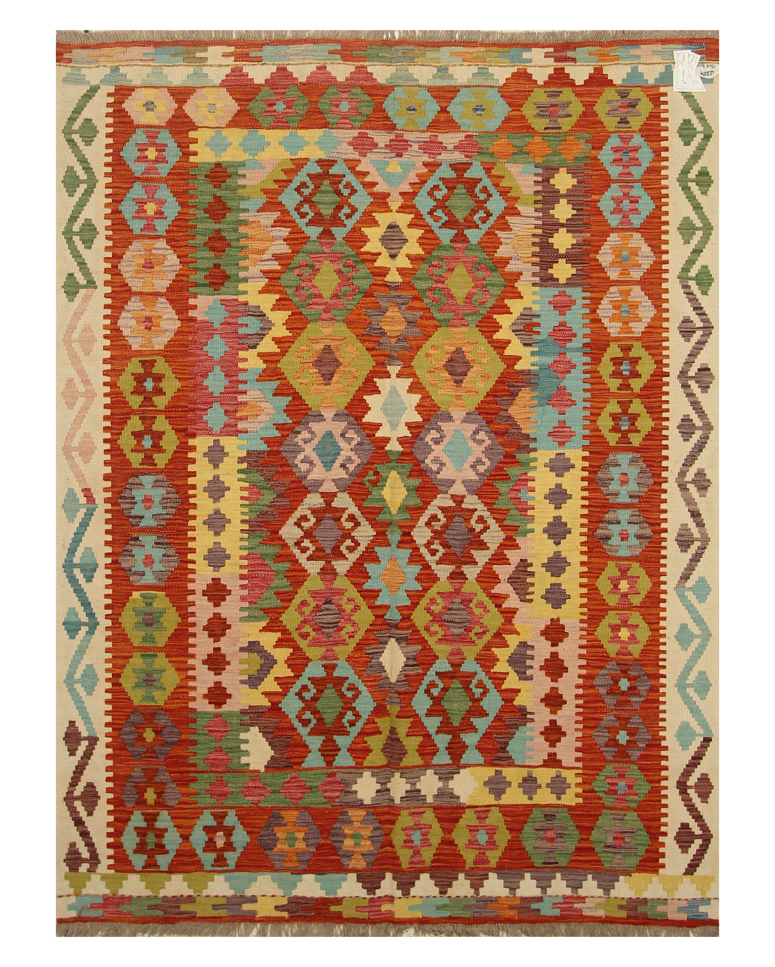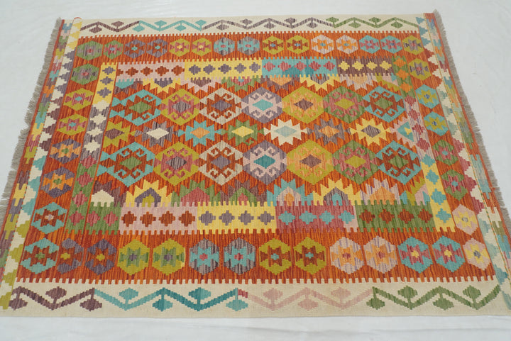 5x7 Rusty Red Afghan Geometric Reversible Kilim Rug