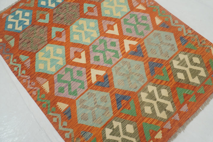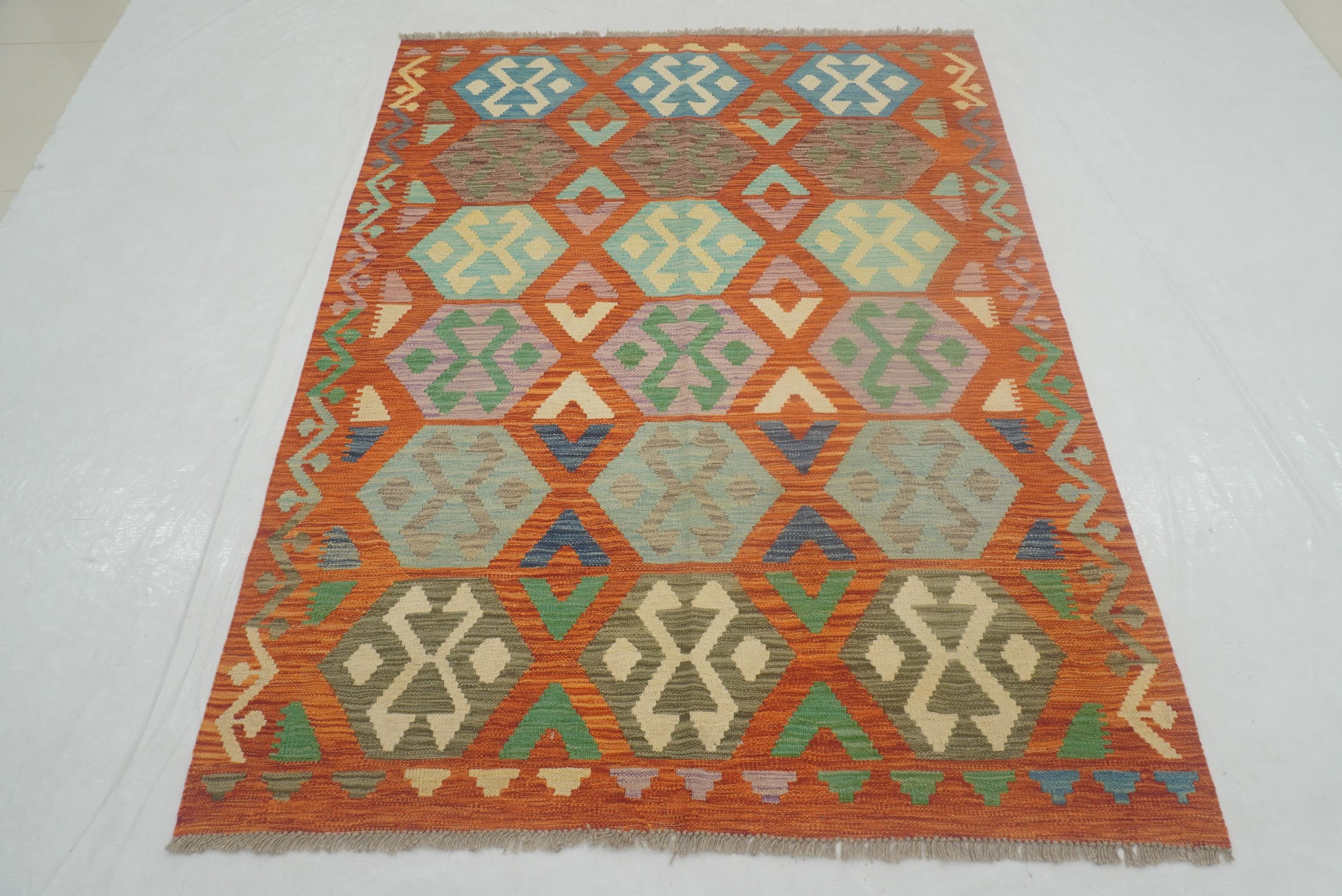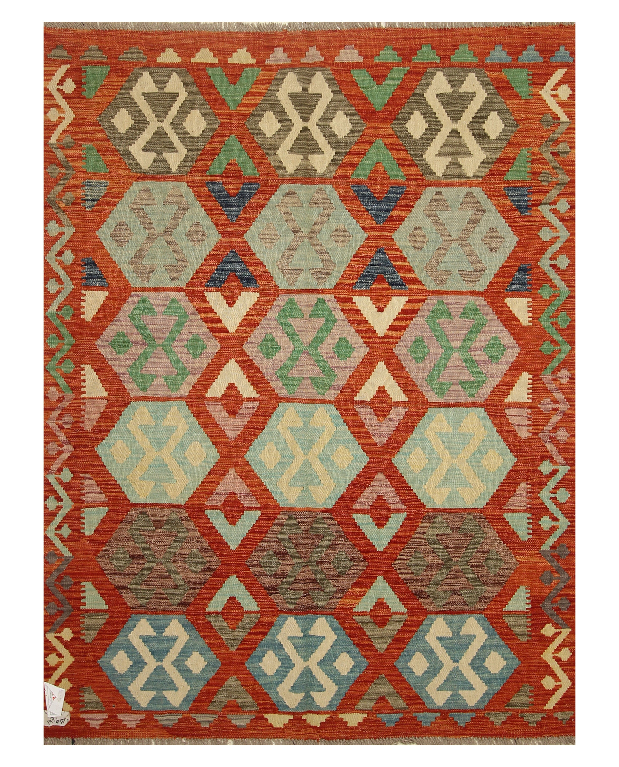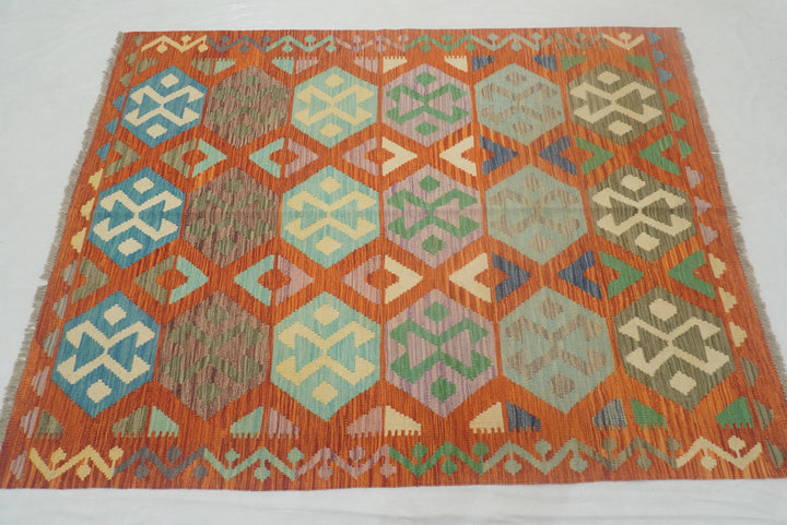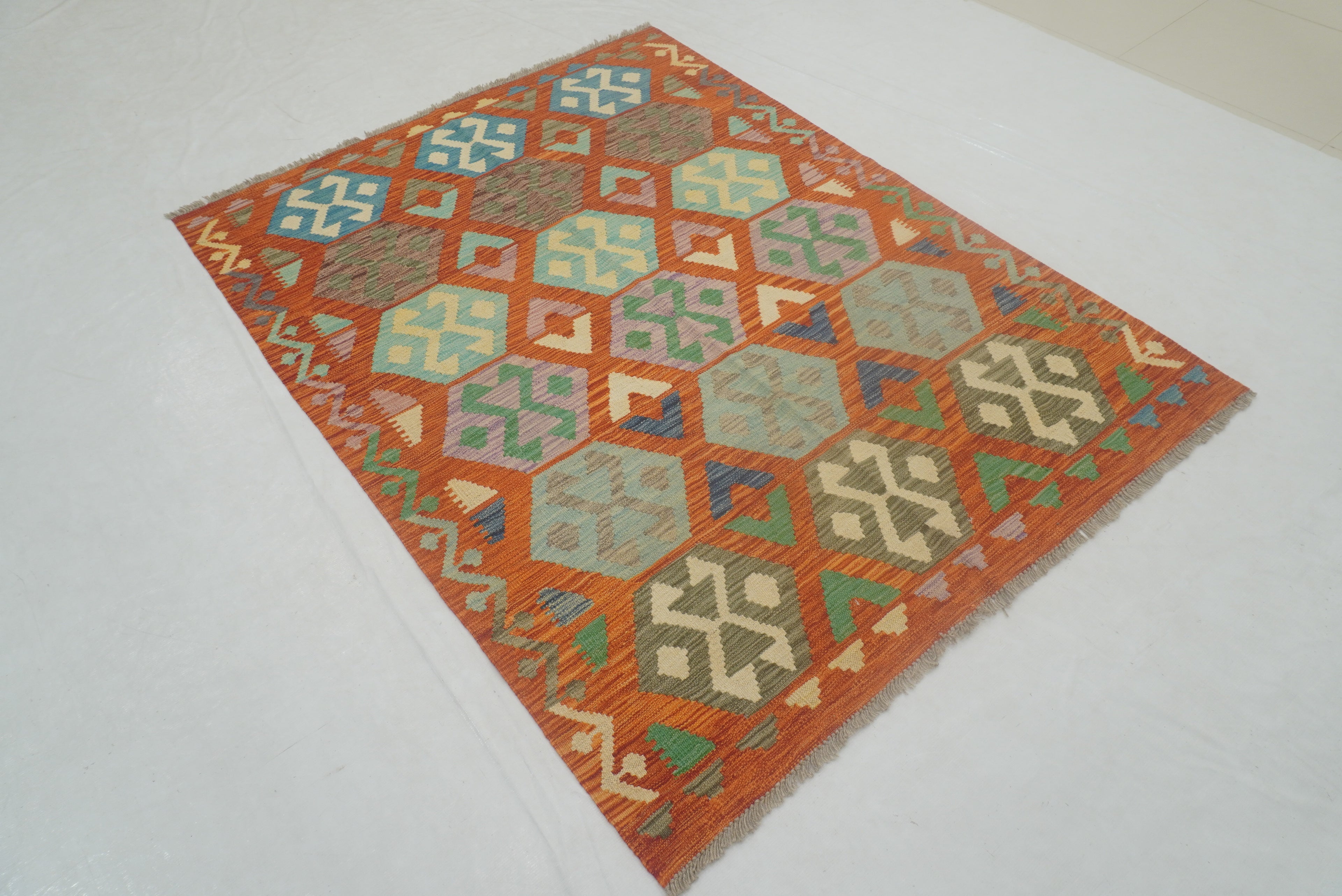 5x7 Rusty Red Afghan Handmade Geometric Reversible Kilim Rug