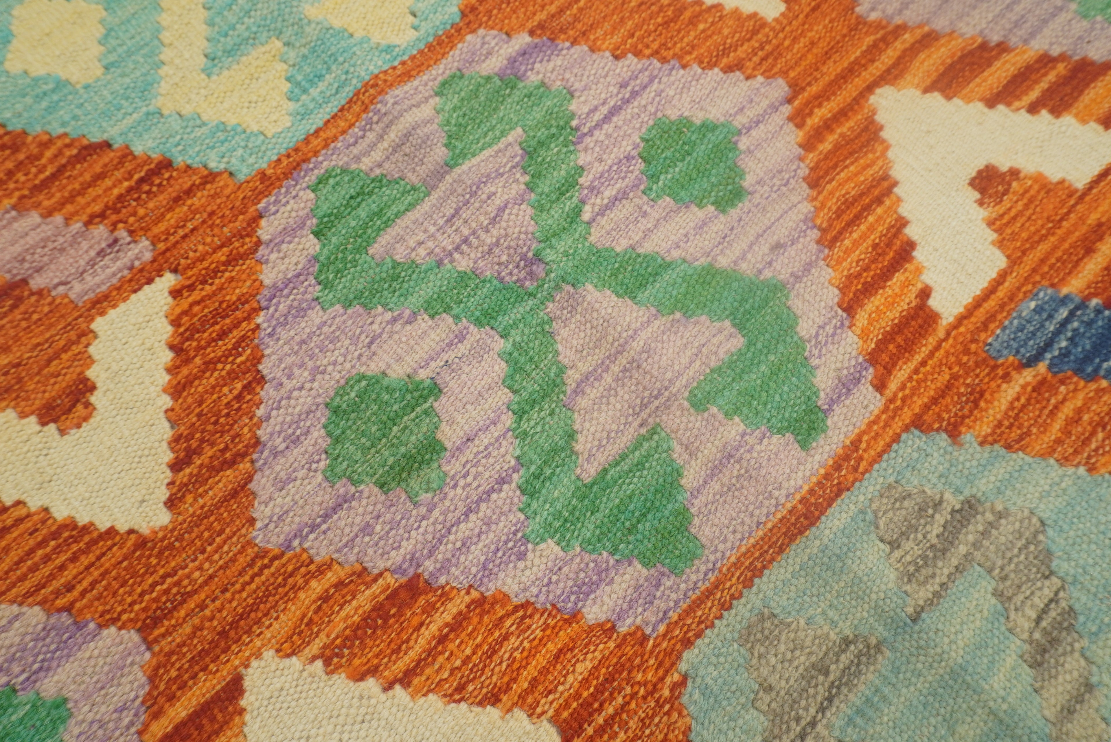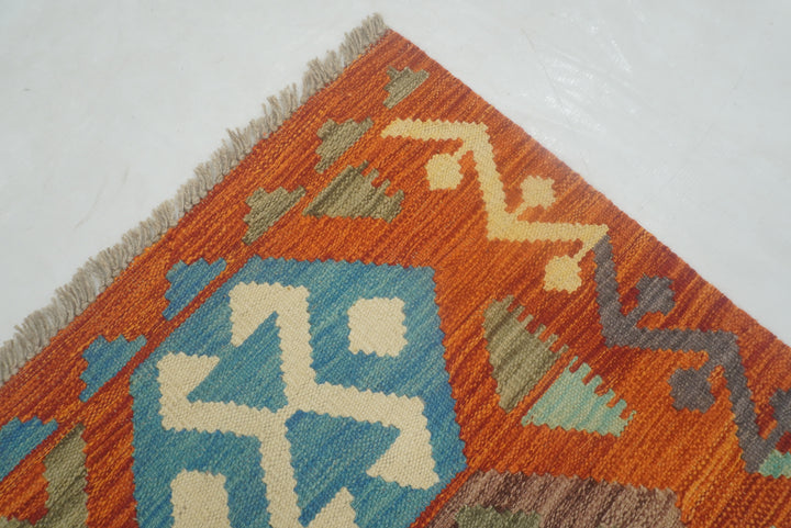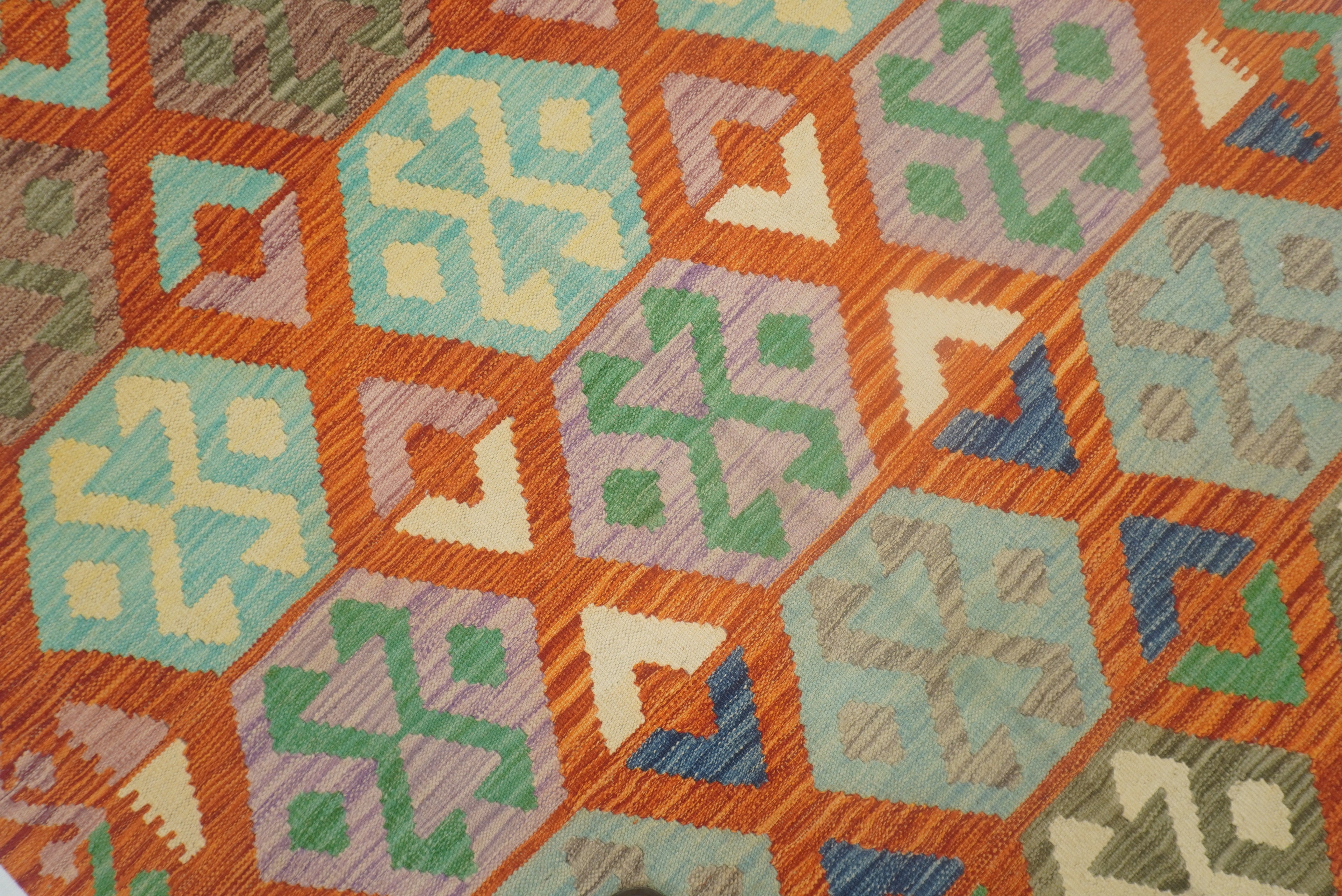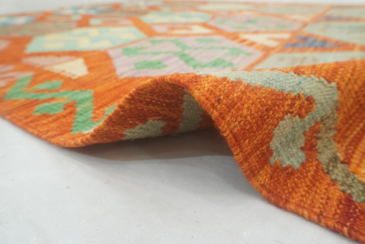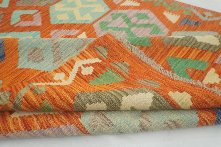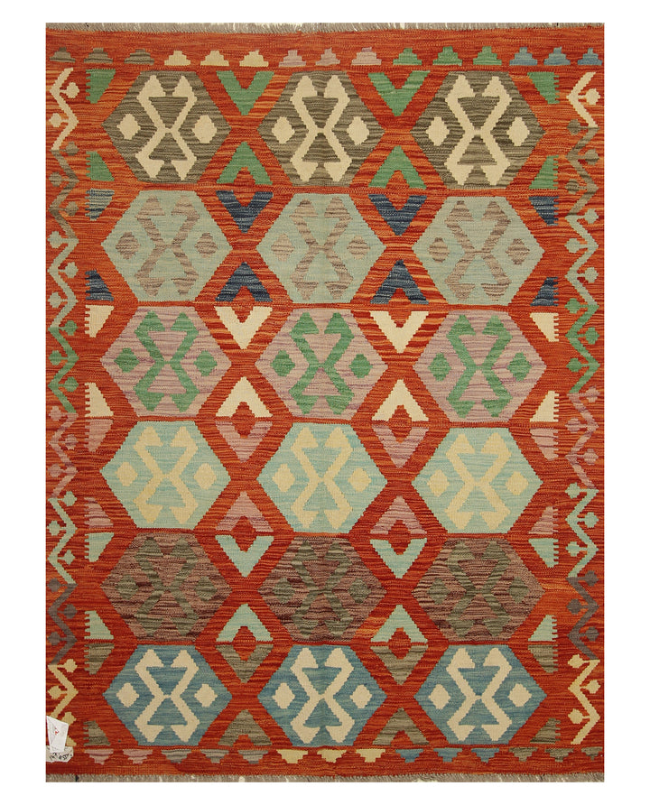 5x7 Rusty Red Afghan Handmade Geometric Reversible Kilim Rug
