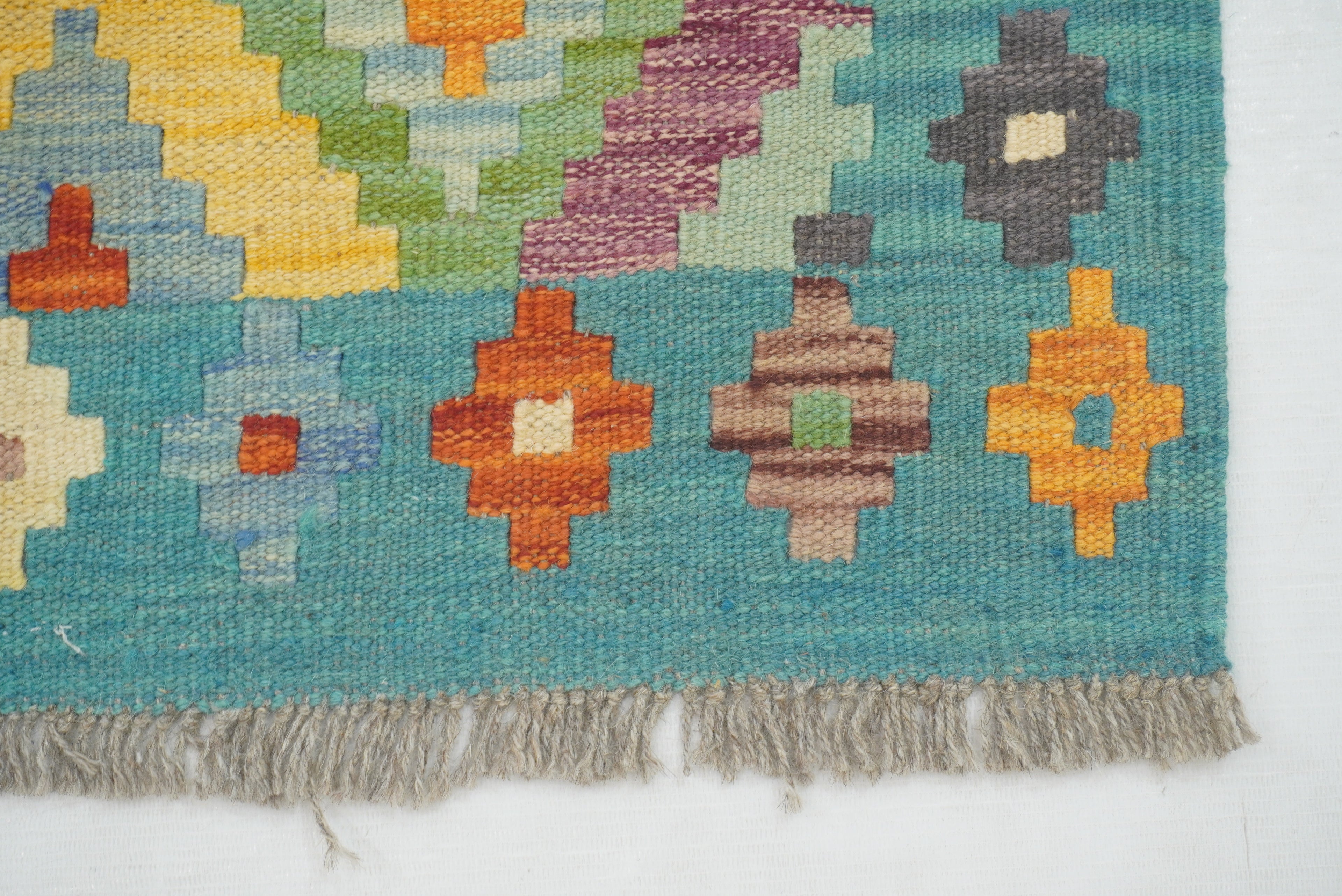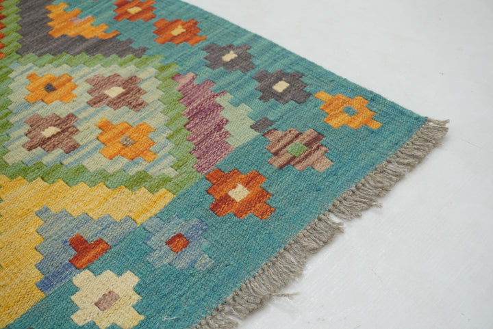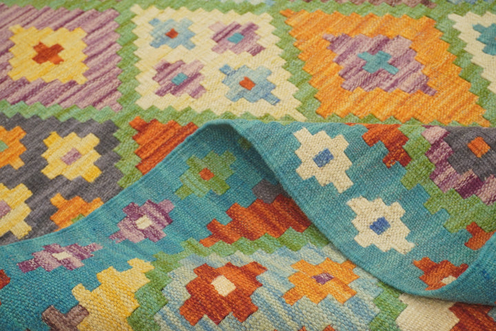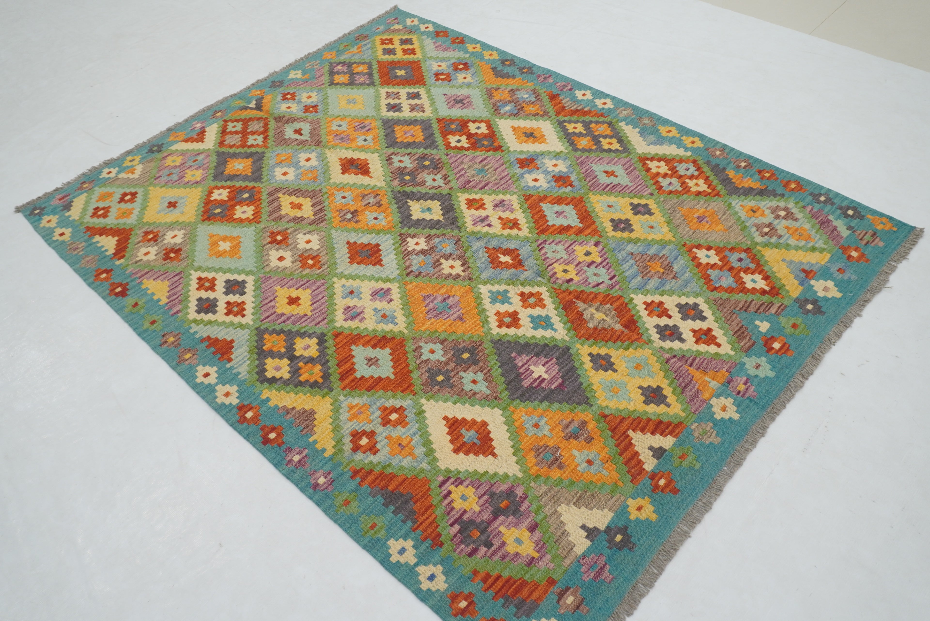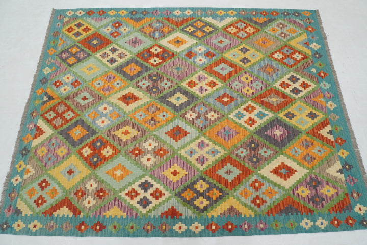 5x7 Turquoise Blue Afghan Handmade Geometric Kilim Rug