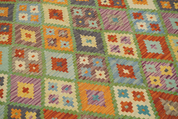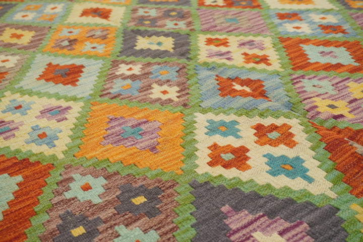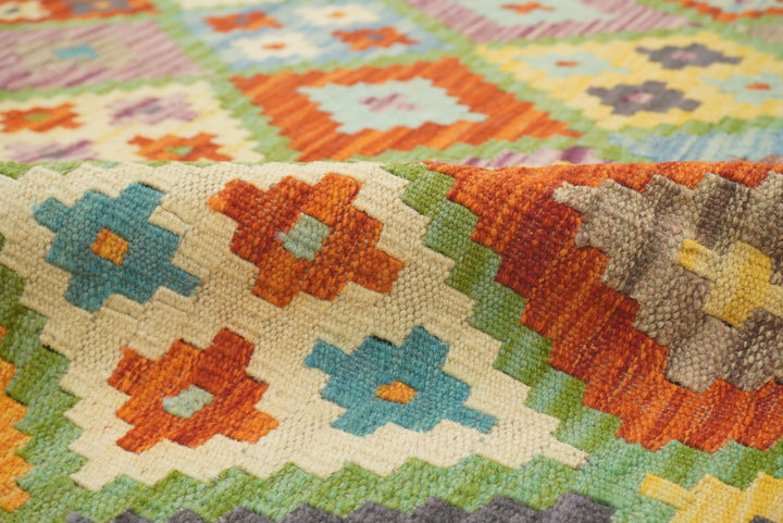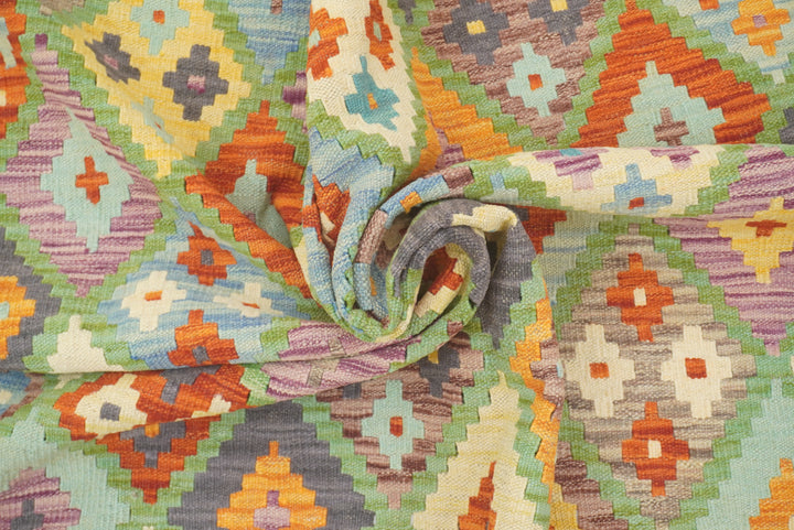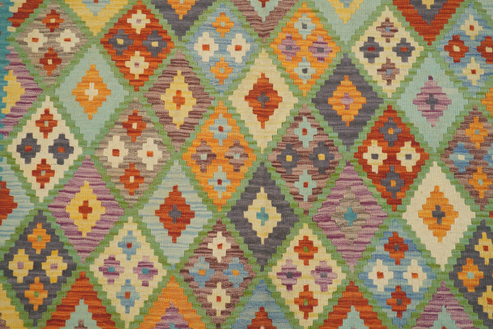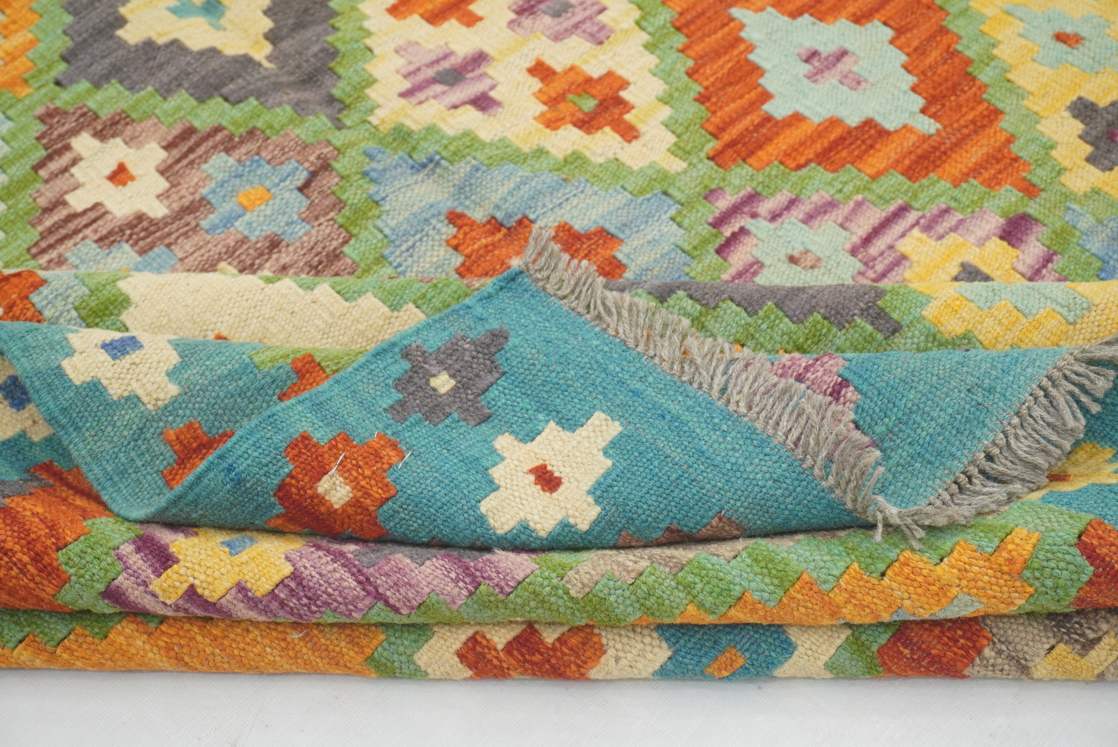5x7 Turquoise Blue Afghan Handmade Geometric Kilim Rug