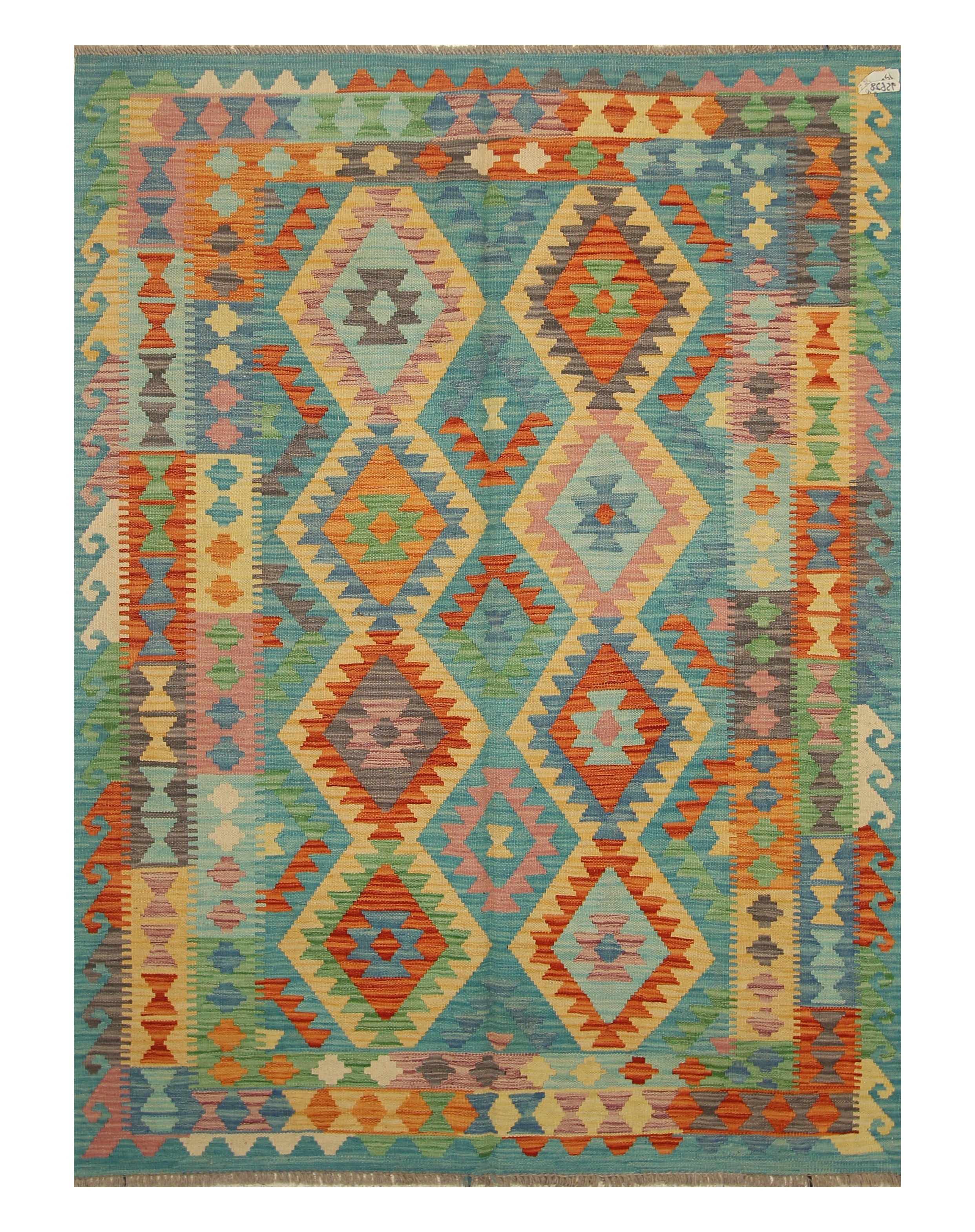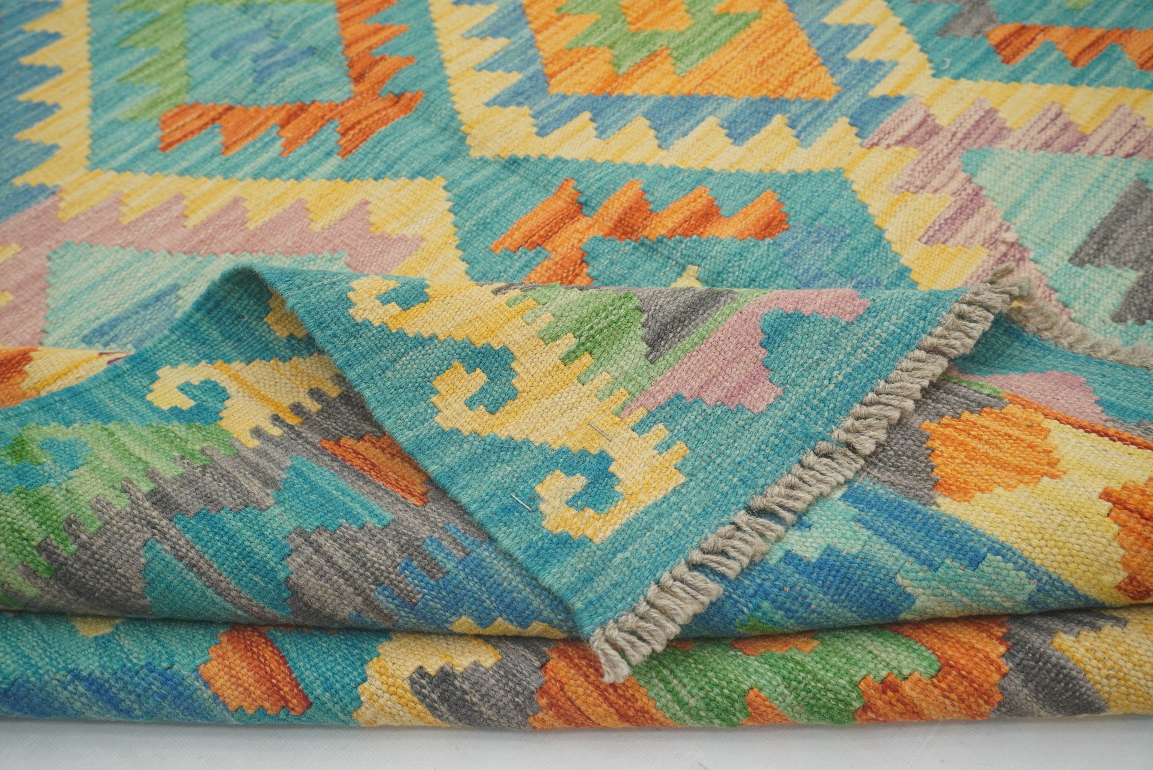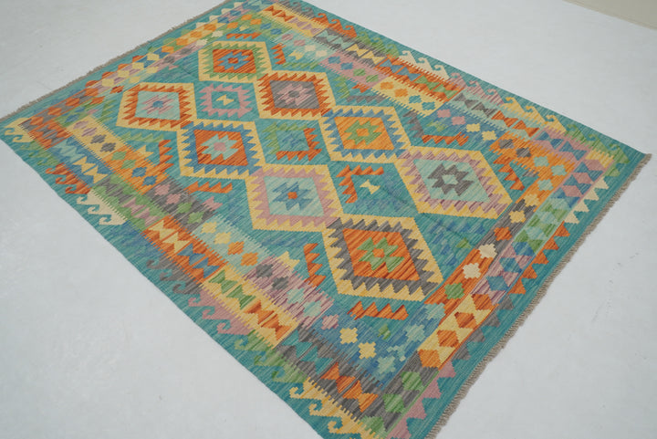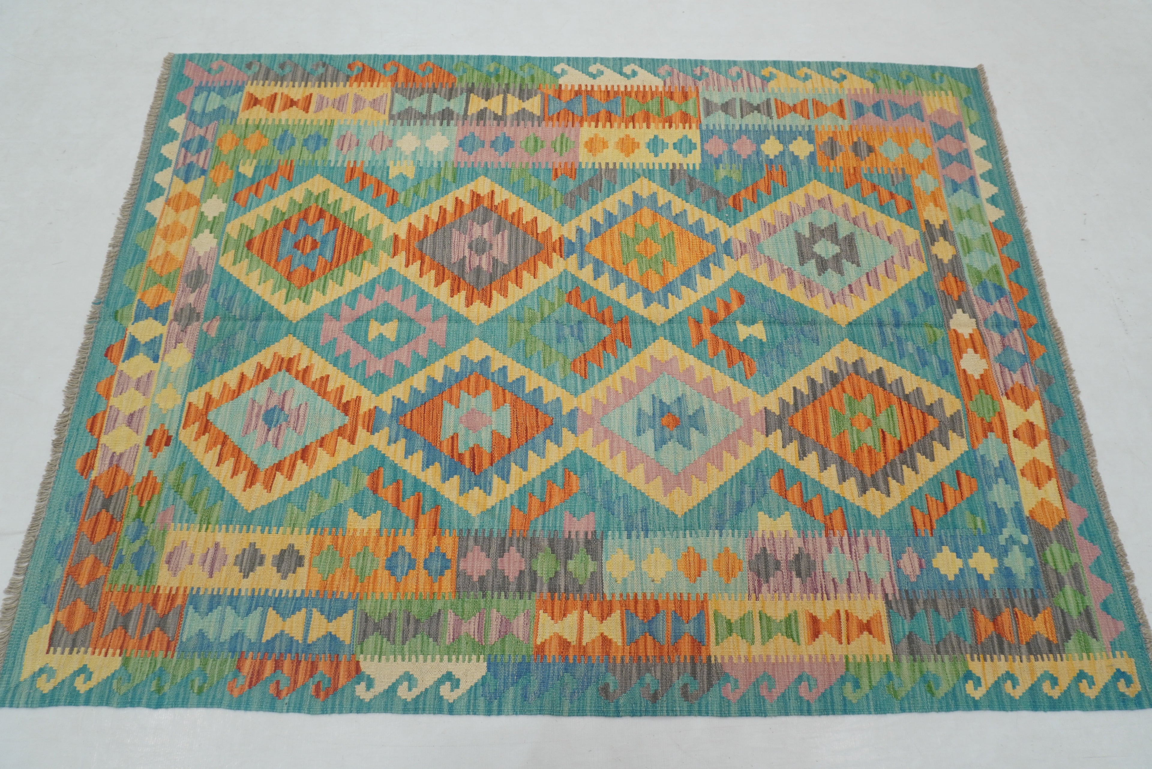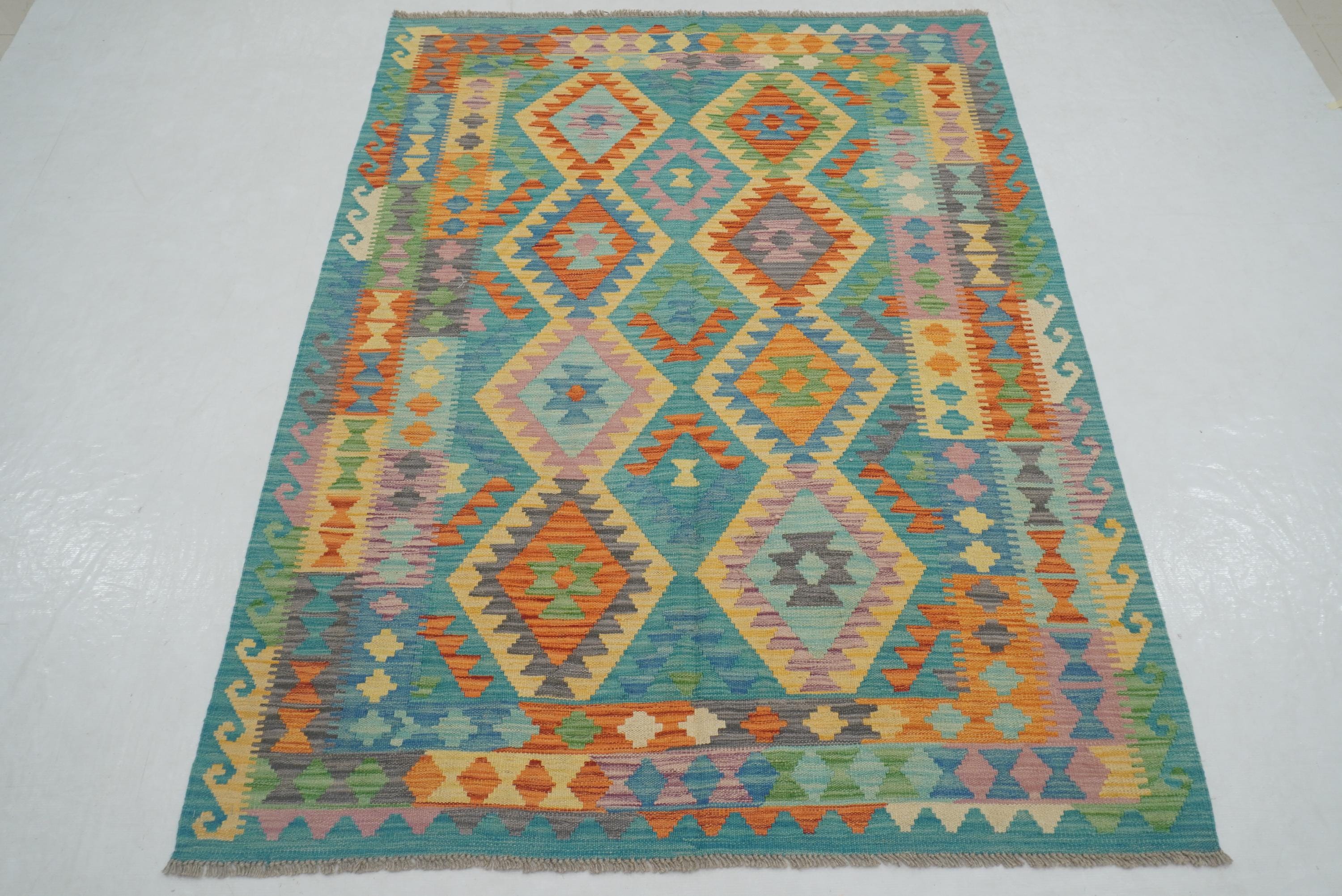5x7 Turquoise Blue Afghan Handmade Reversible Kilim Rug