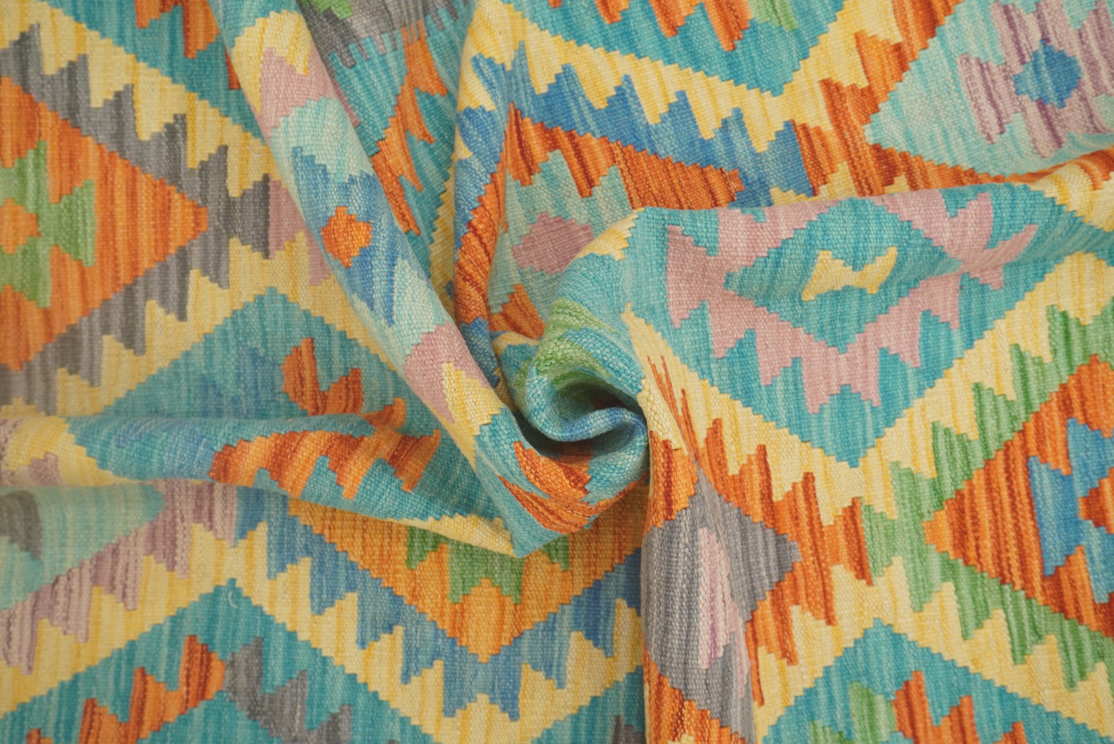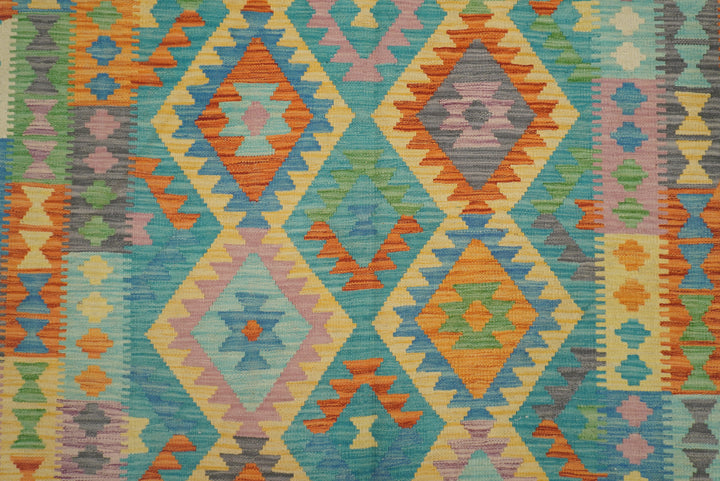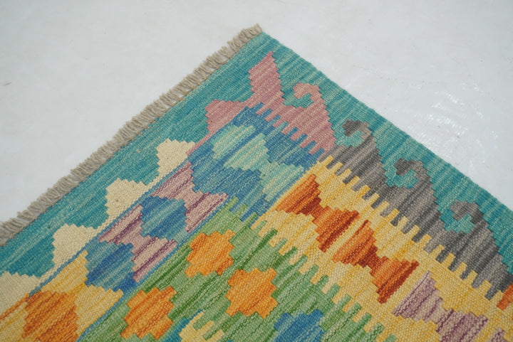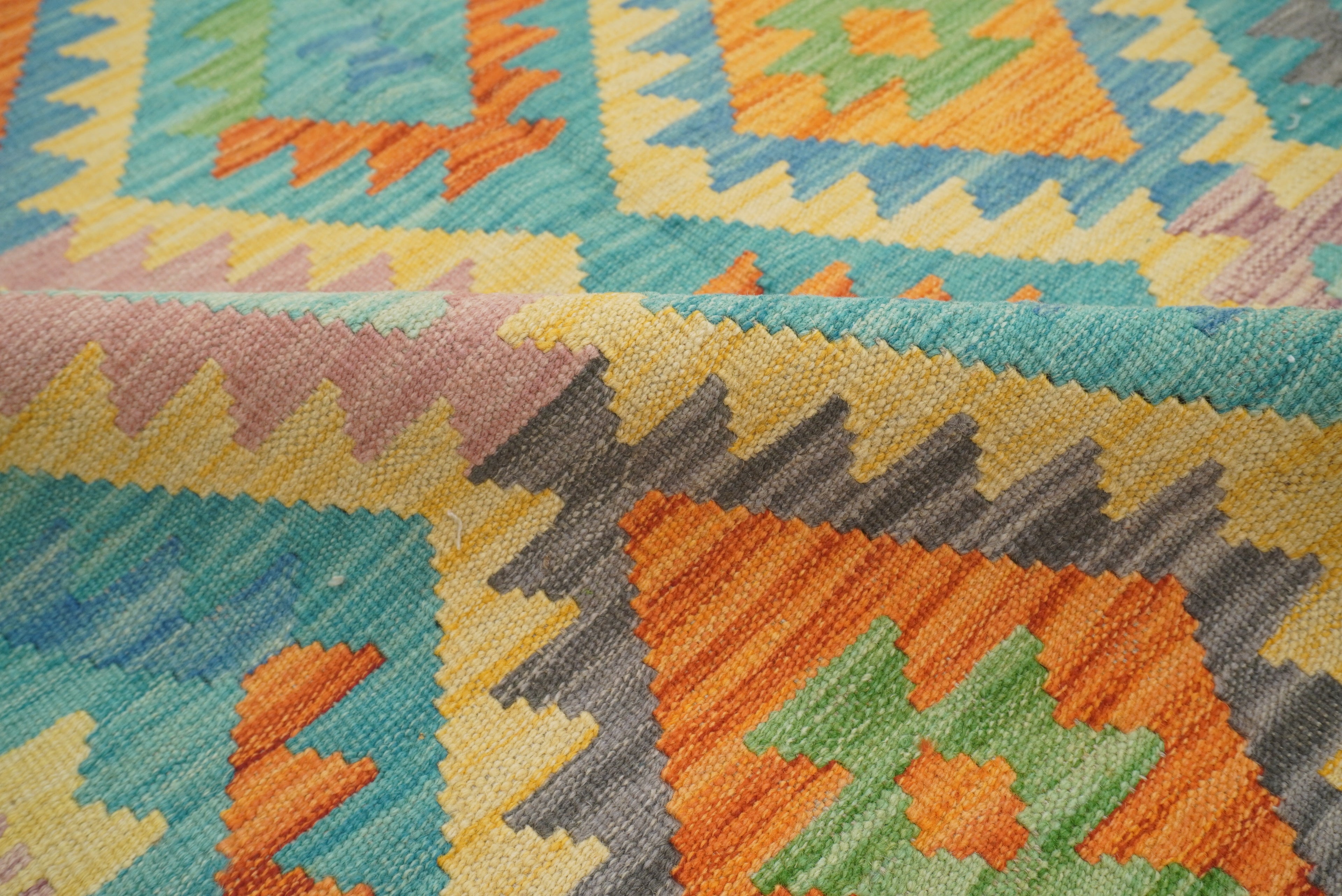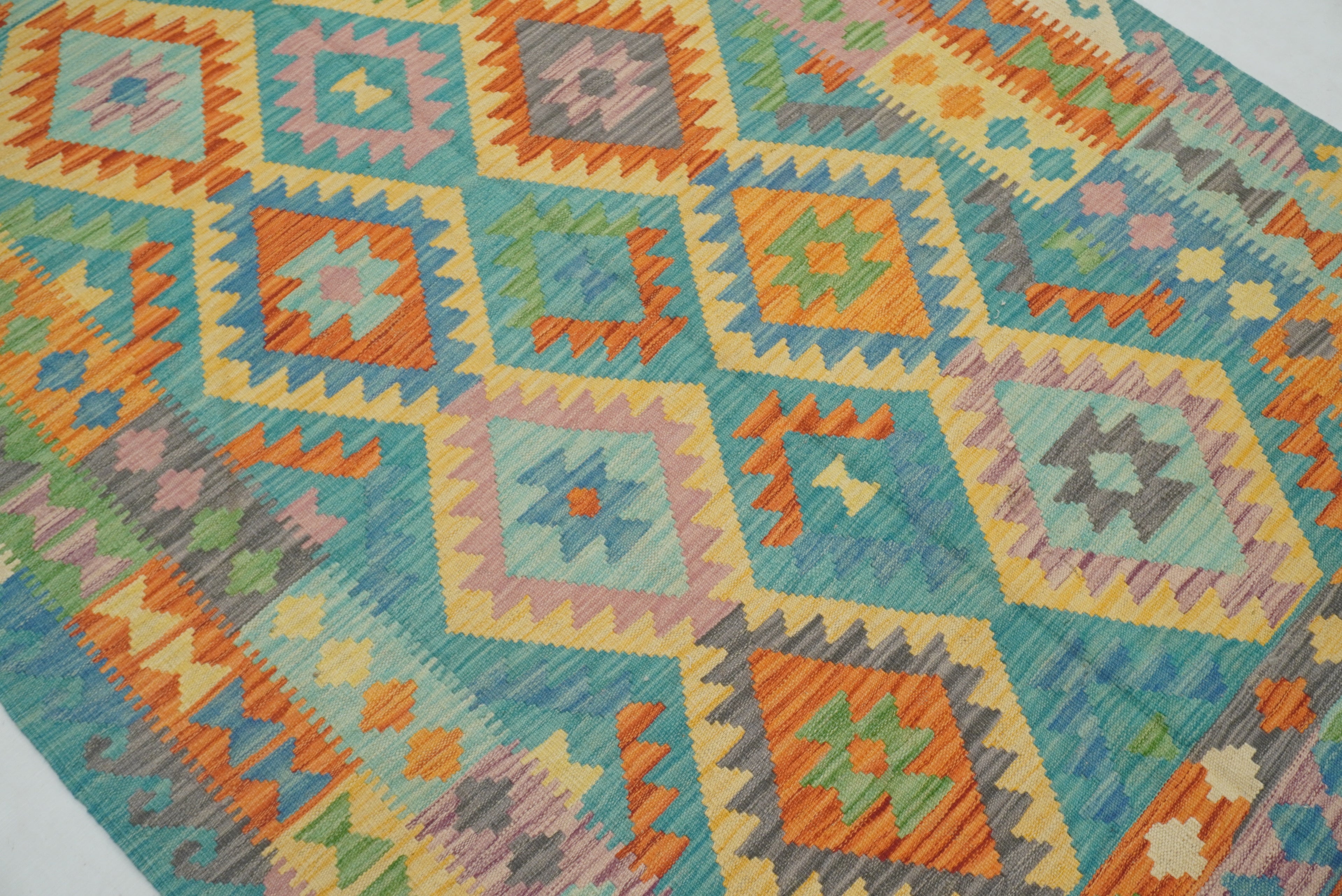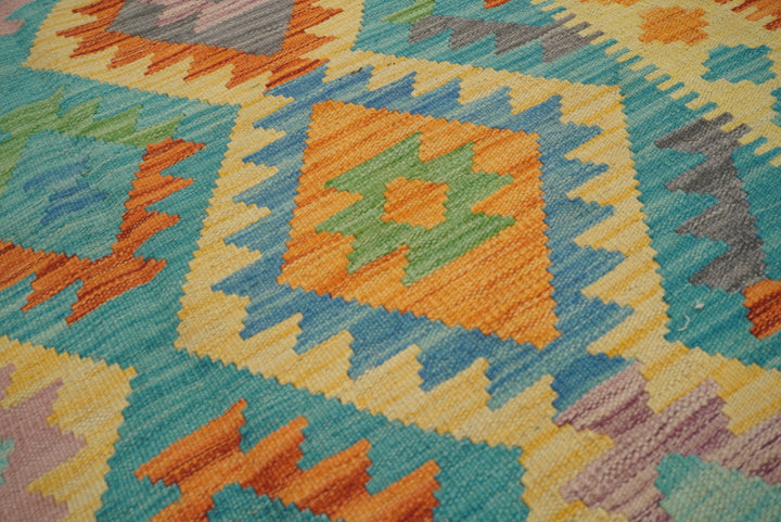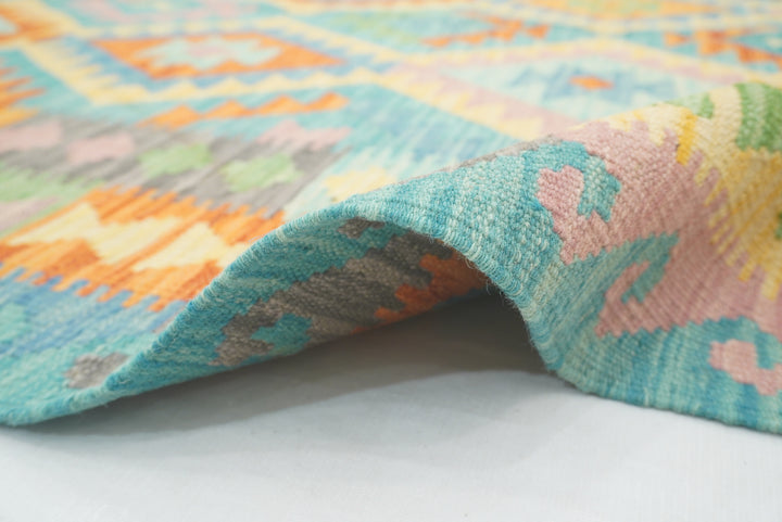 5x7 Turquoise Blue Afghan Handmade Reversible Kilim Rug