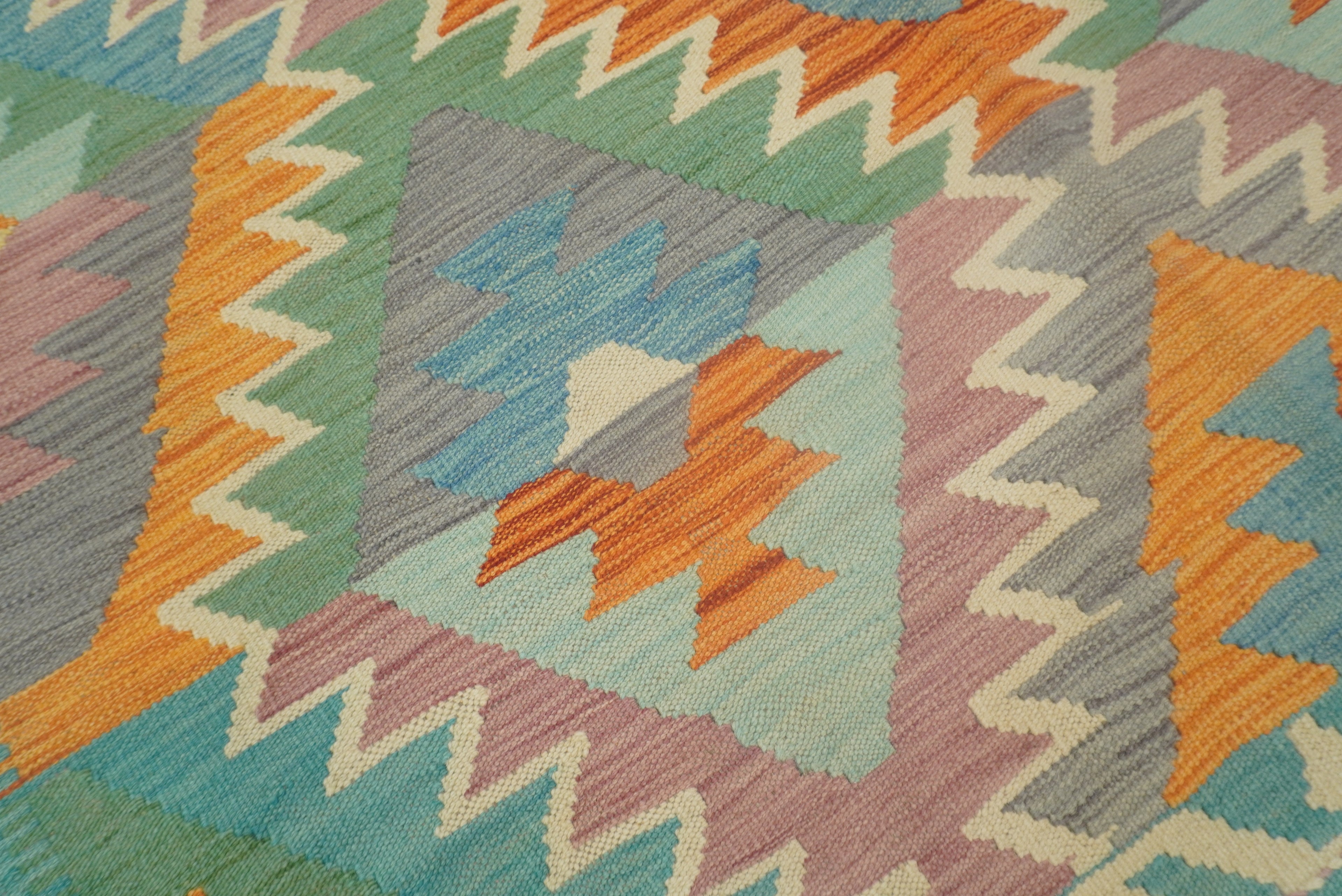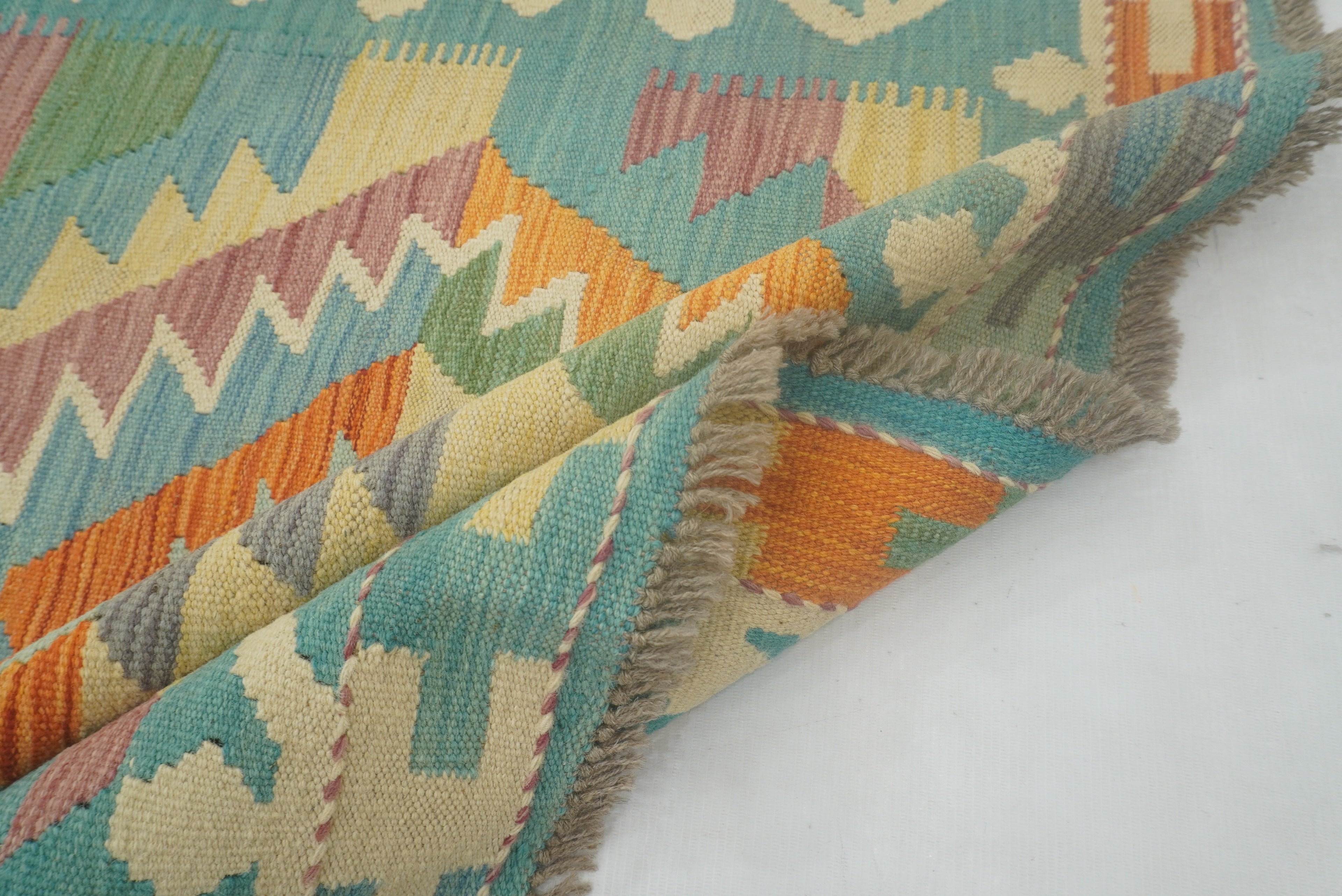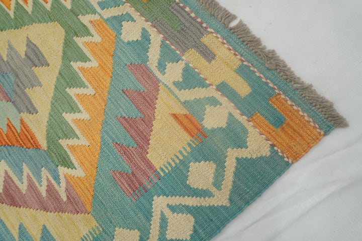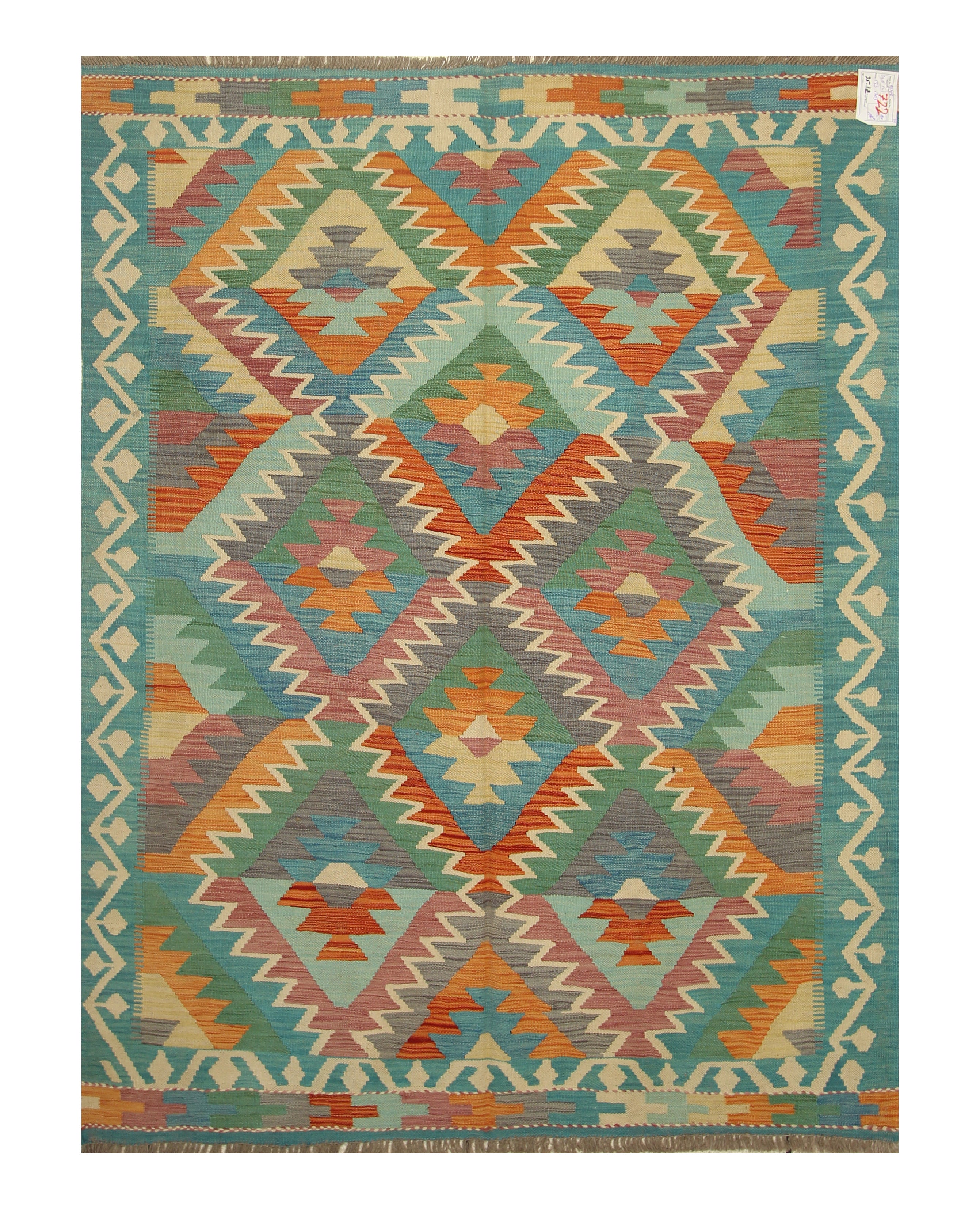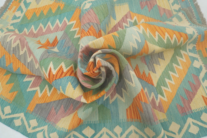 5x7 Turquoise Blue Handmade Geometric Reversible Kilim Rug
