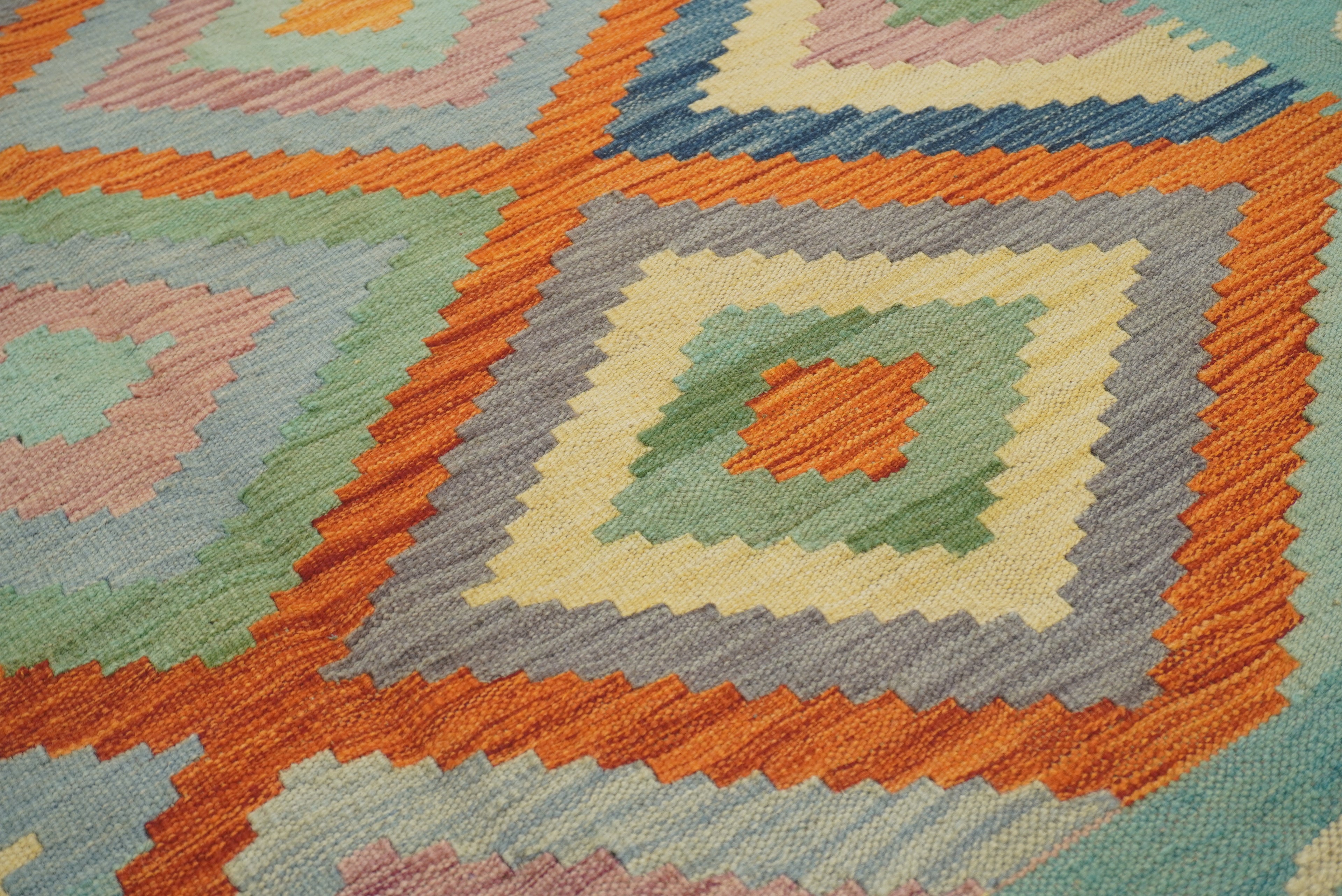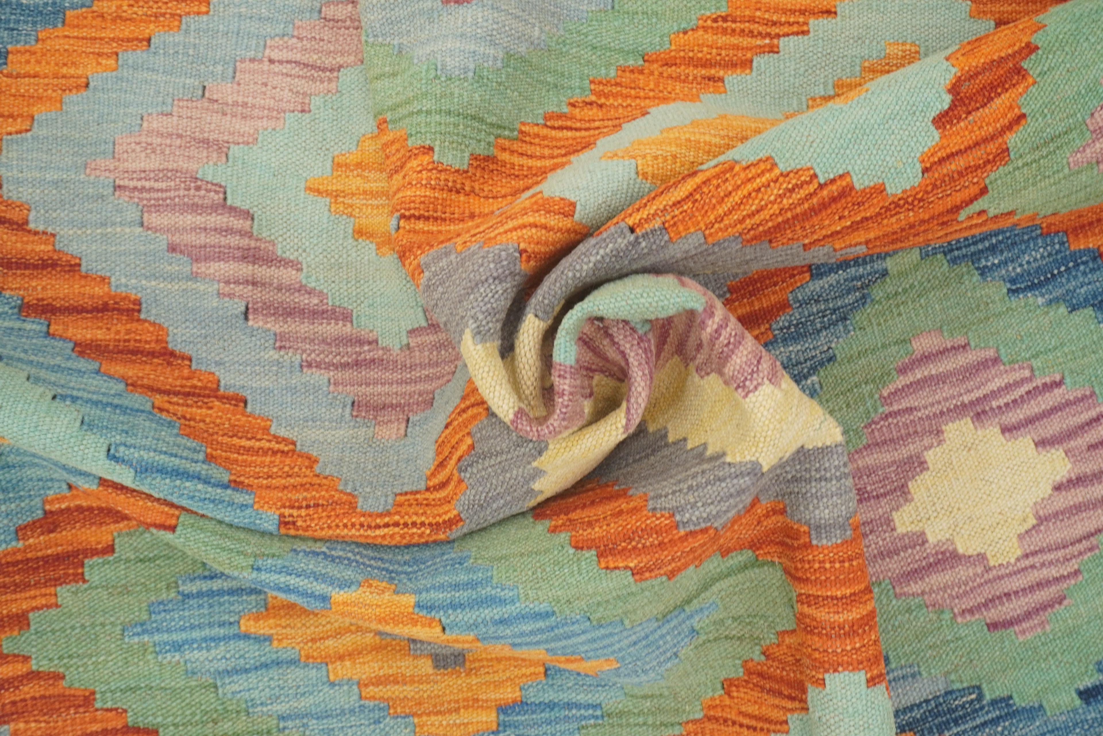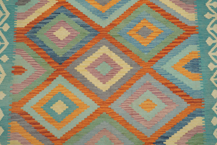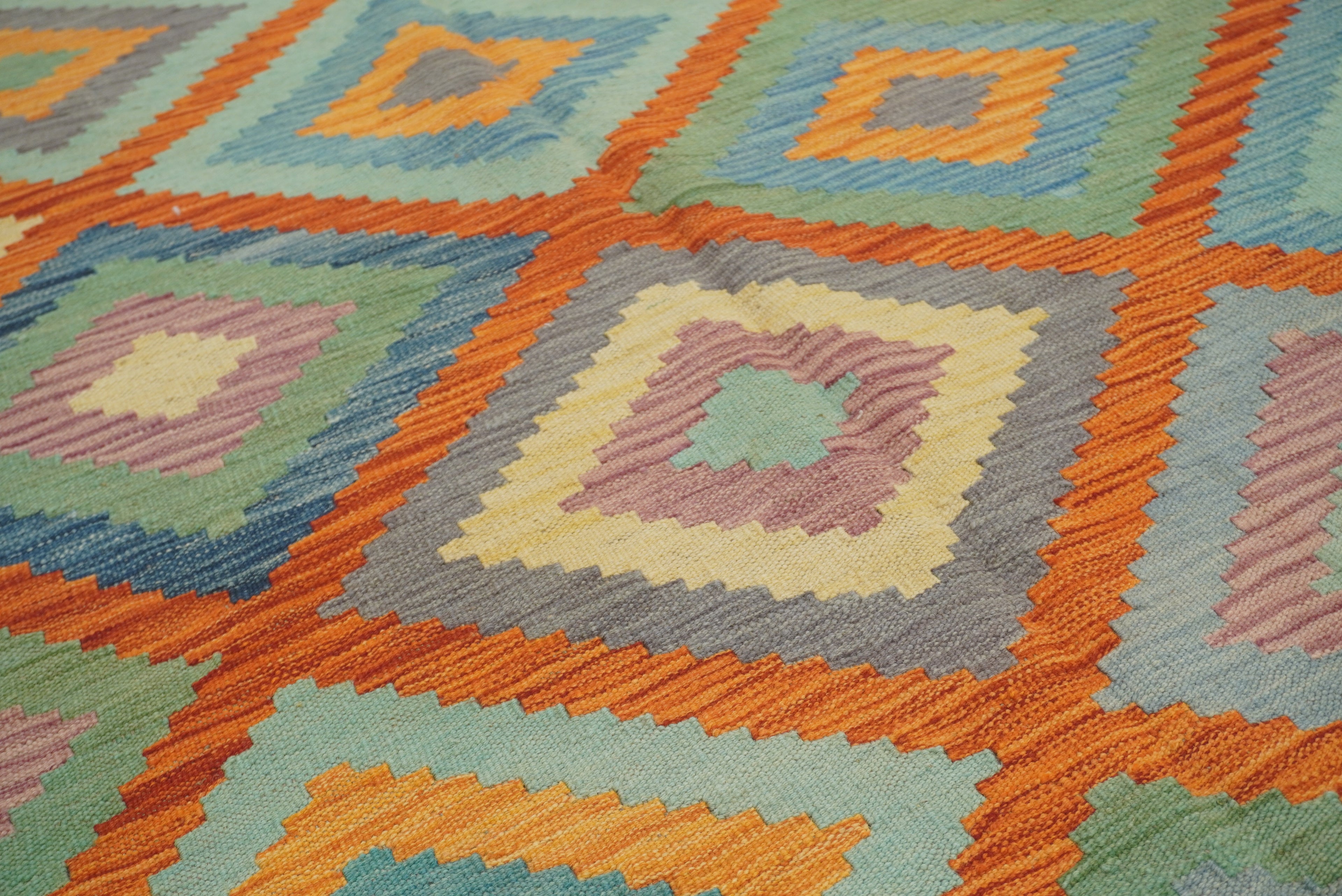 5x7 Turquoise Blue Orange Afghan Handmade Reversible Kilim Rug