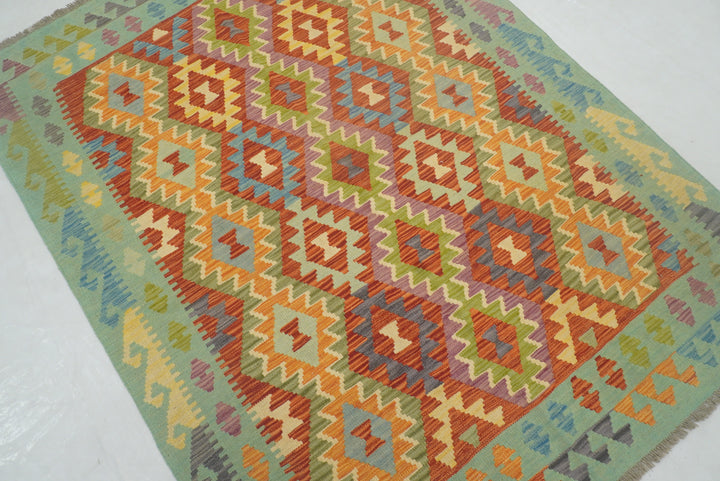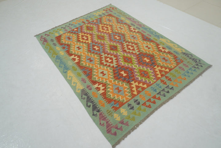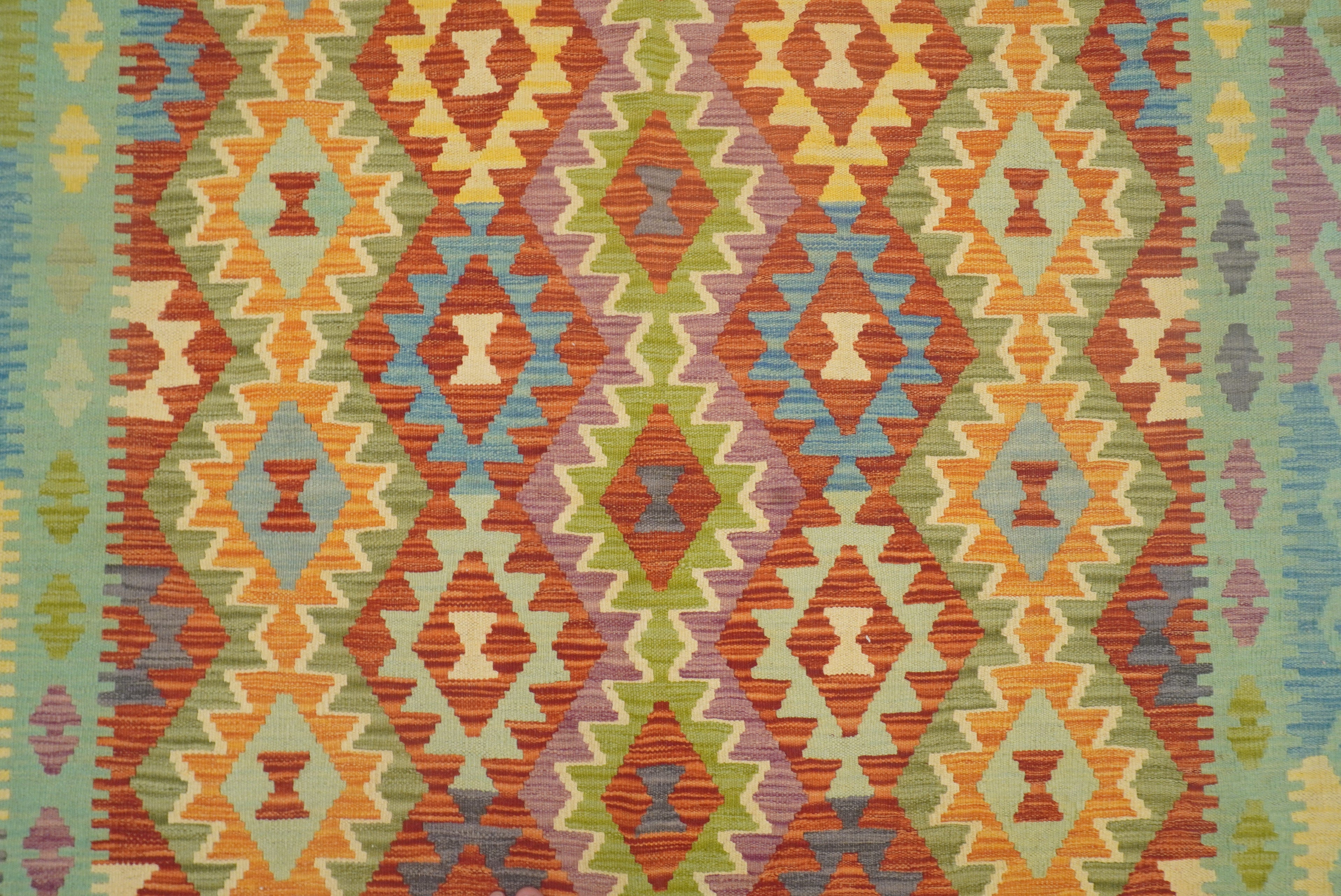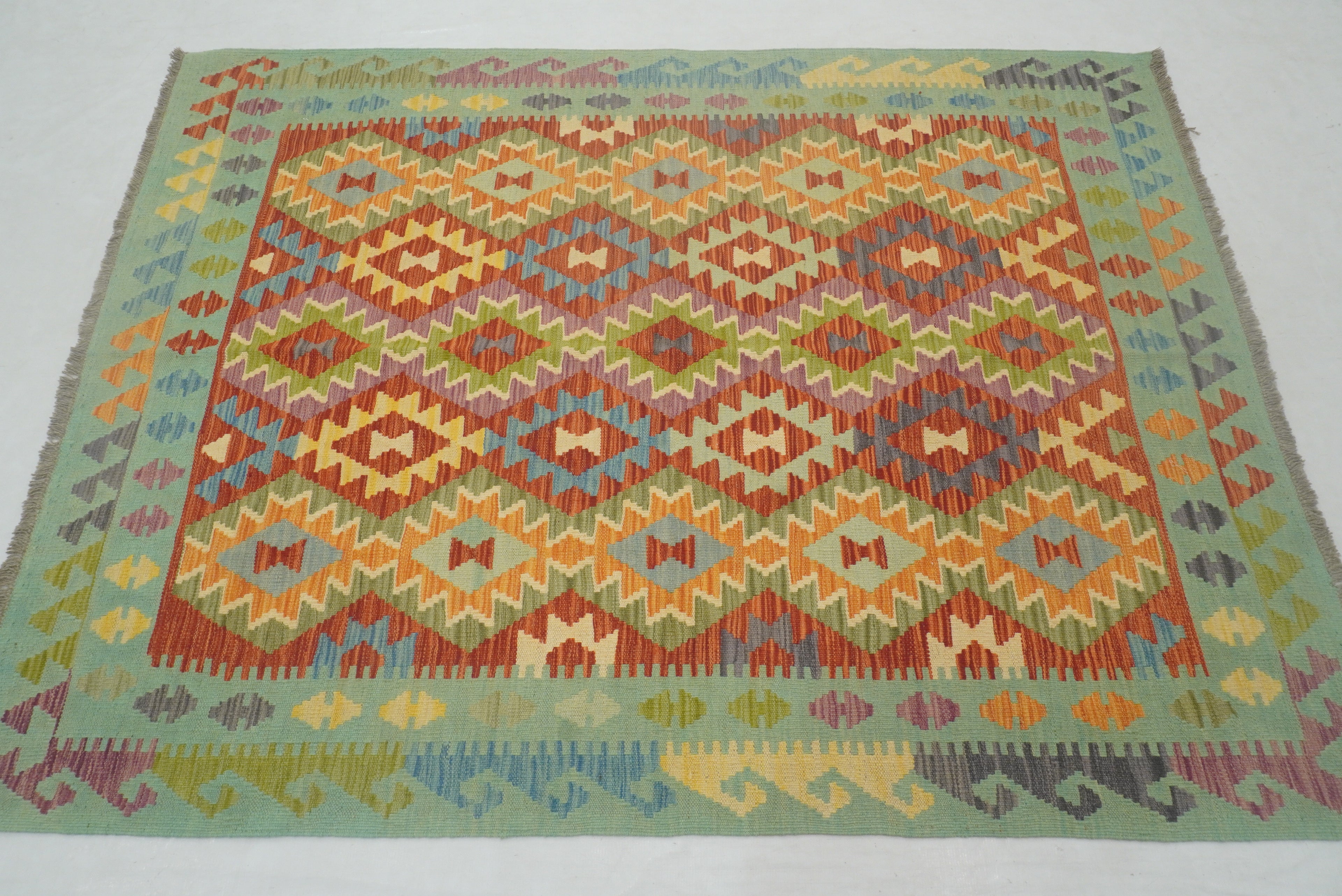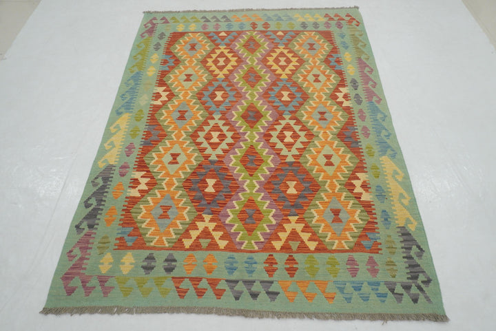 5x7 Turquoise Blue Red Afghan Handmade Reversible Kilim Rug