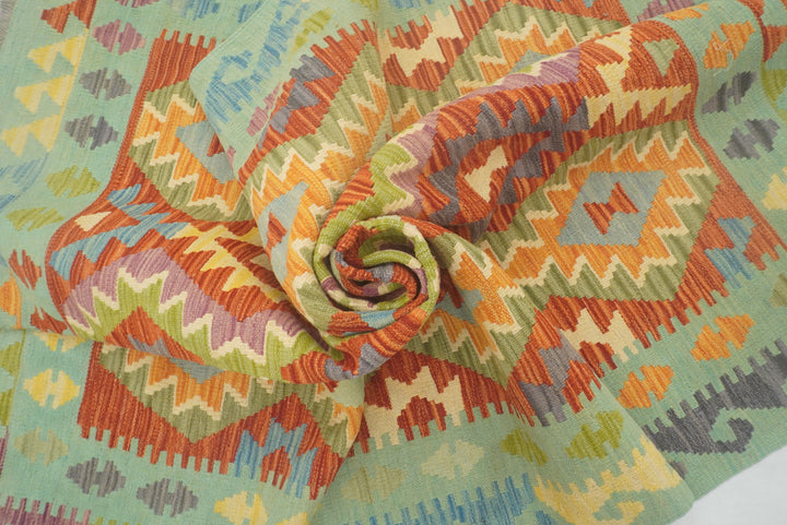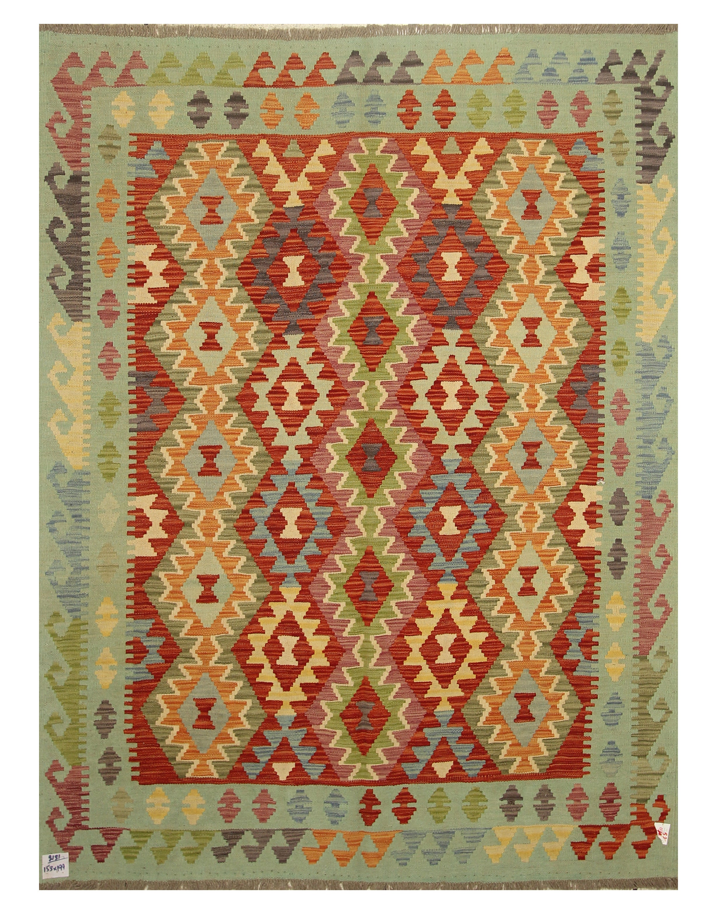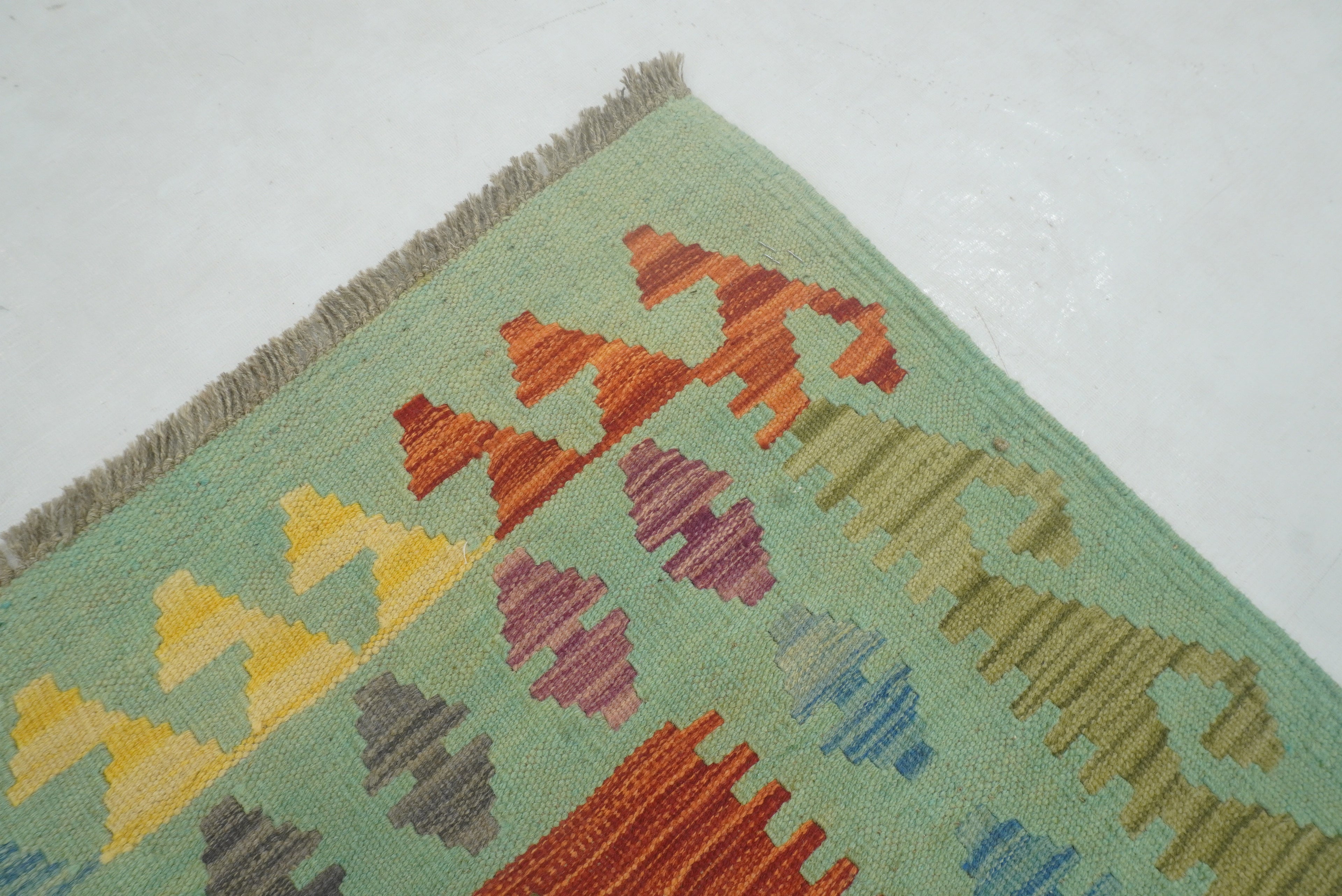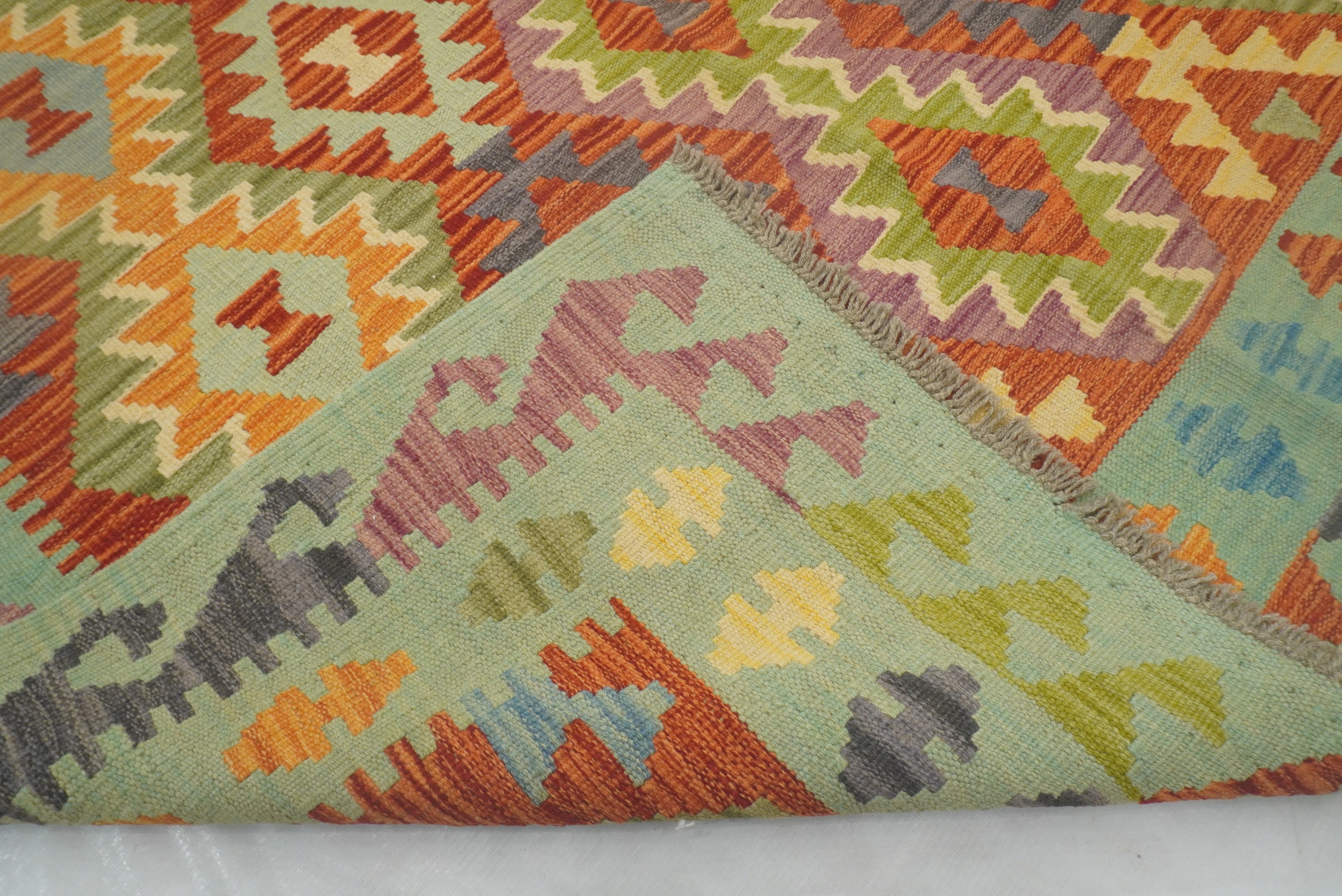 5x7 Turquoise Blue Red Afghan Handmade Reversible Kilim Rug