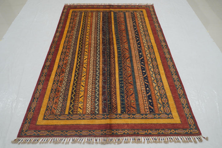 5x8 Red Turkish Shawl Pattern Hand Knotted Rug