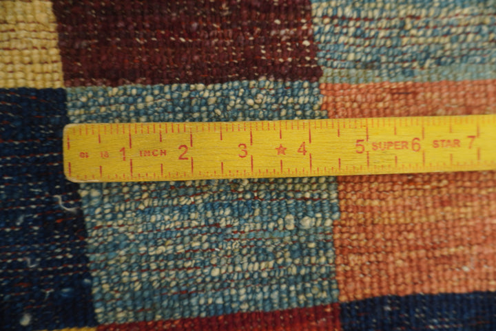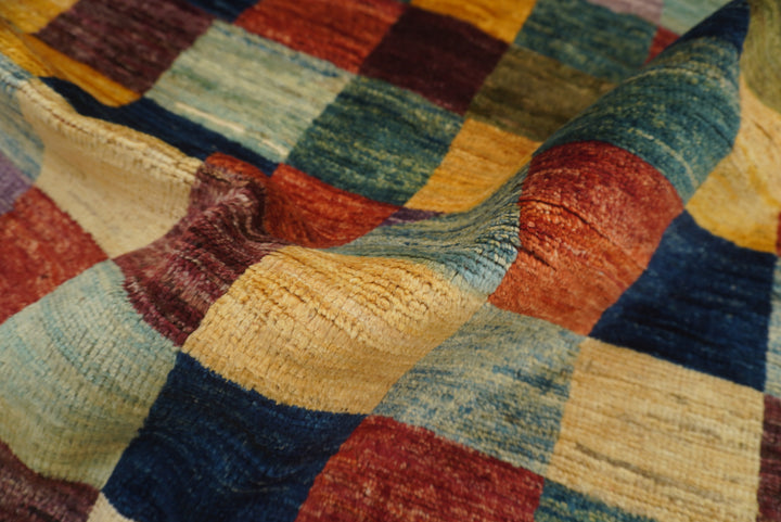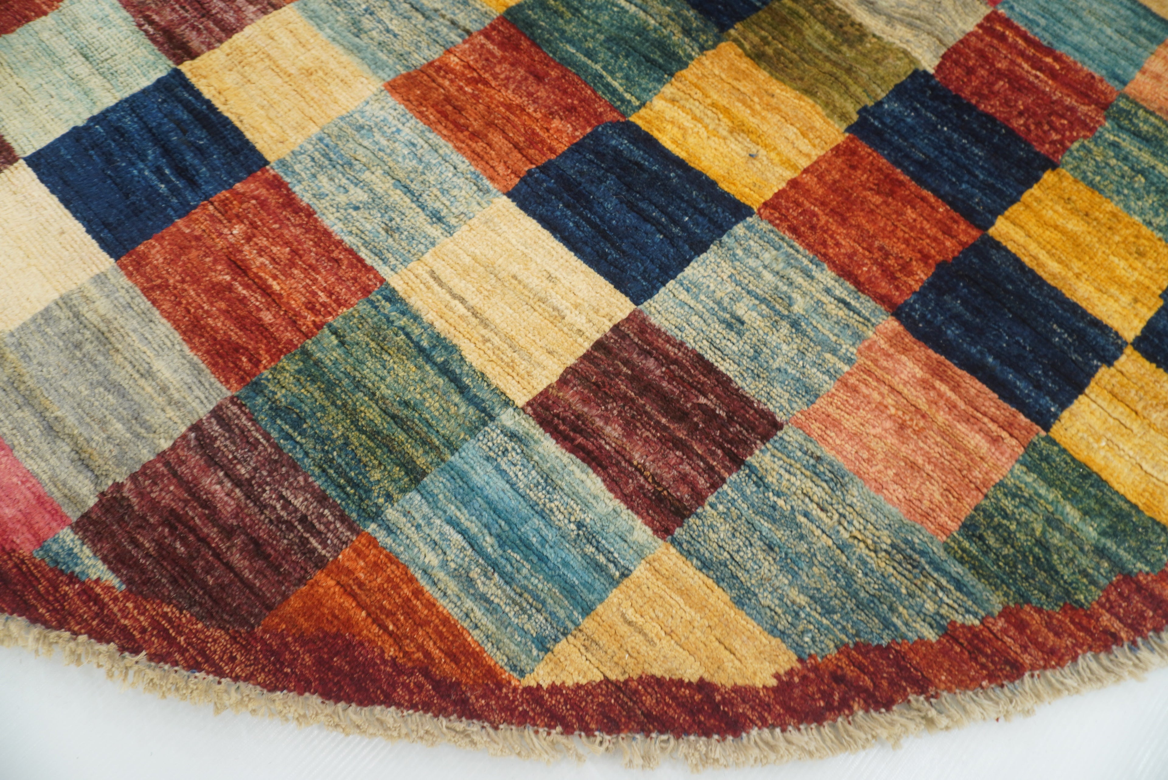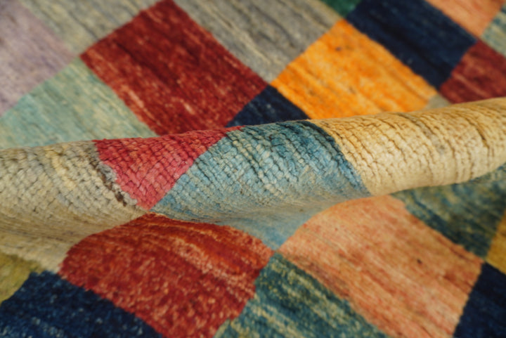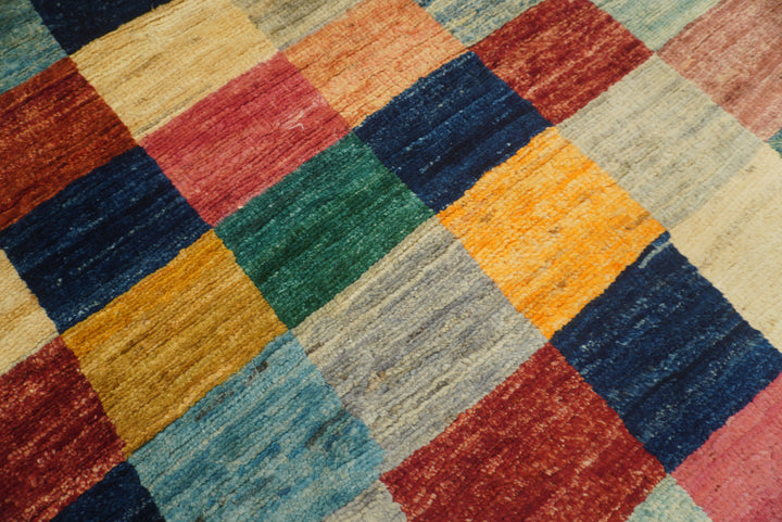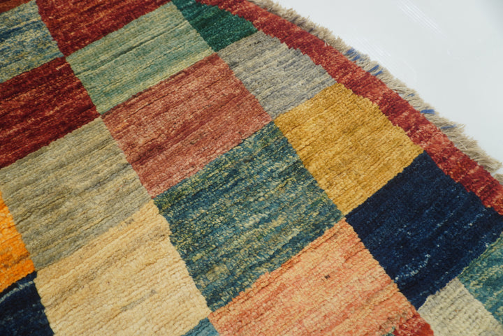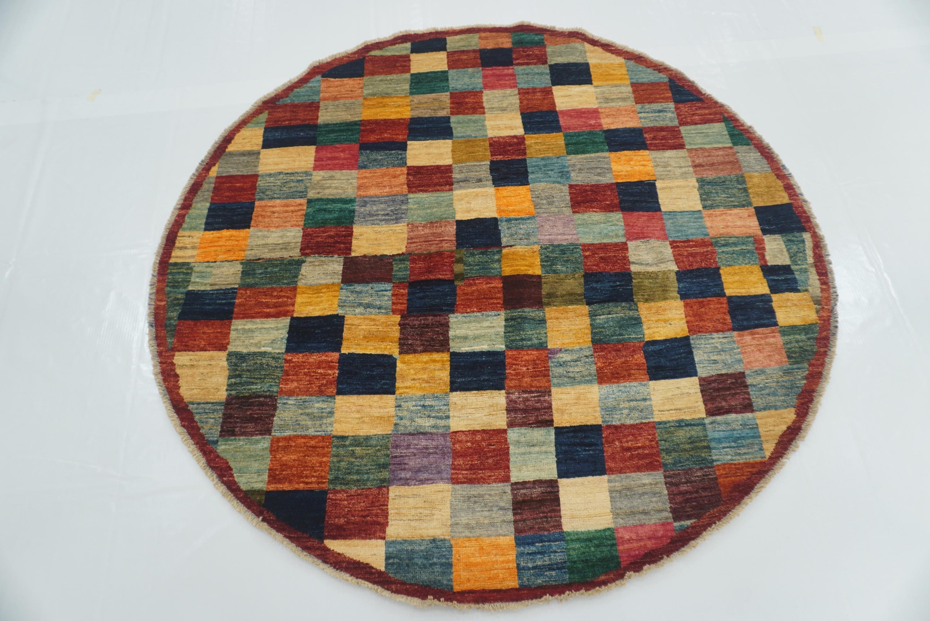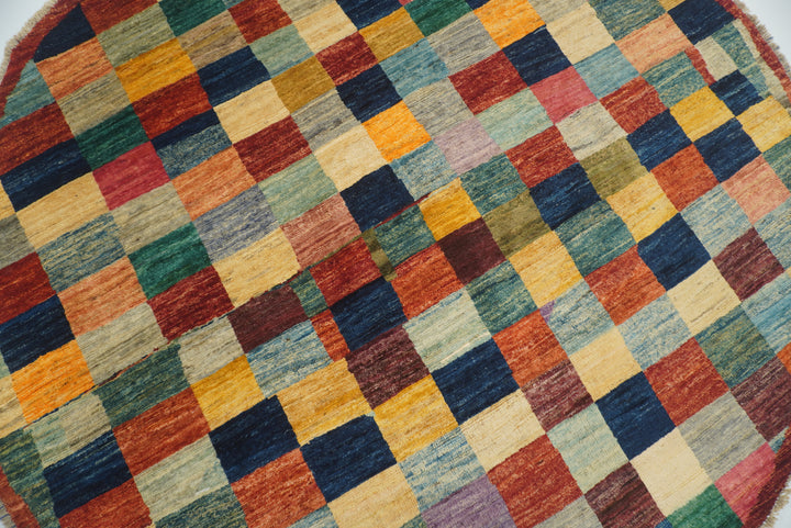 6x6 Checkered Multicolor Gabbeh Afghan Hand-Knotted Round Rug