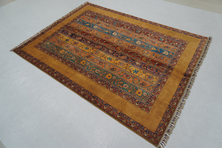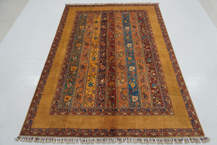 6x7 Brown Turkish Shawl Pattern Hand Knotted Rug