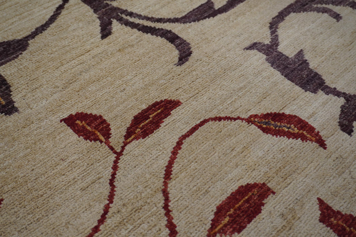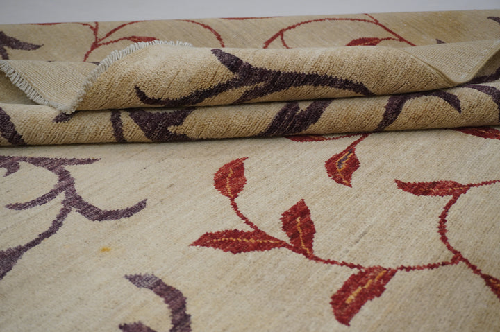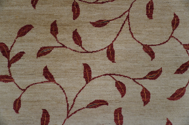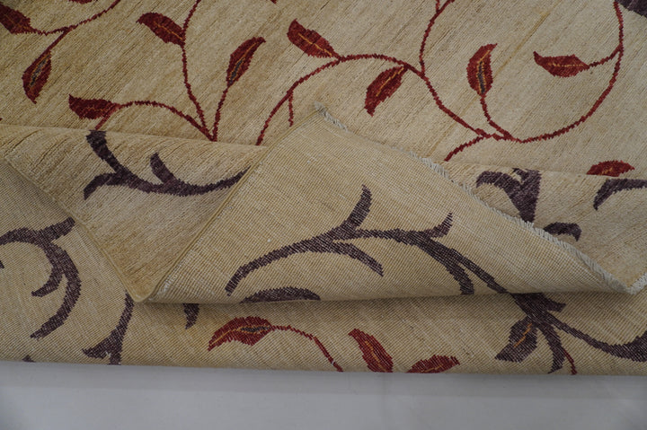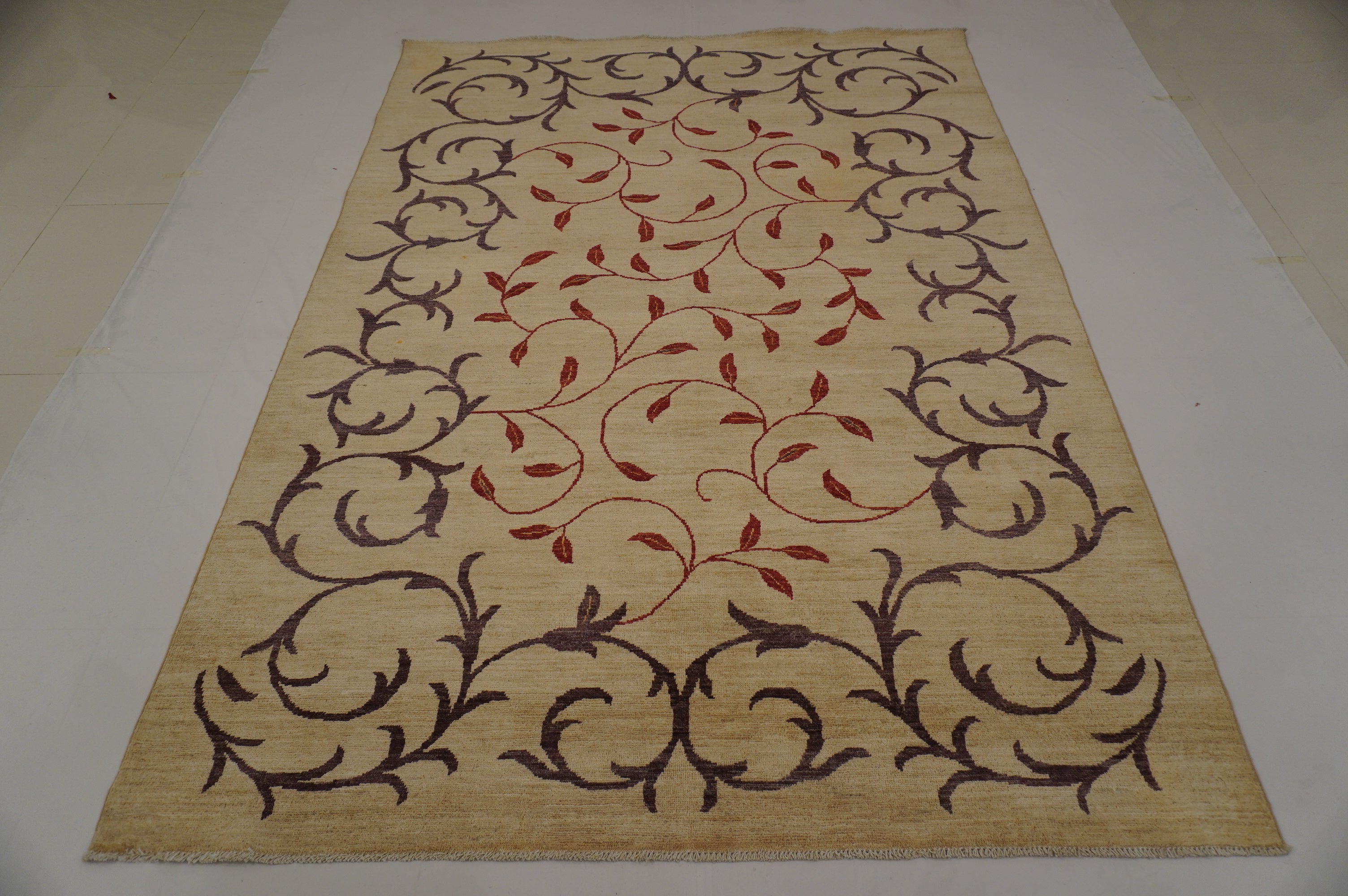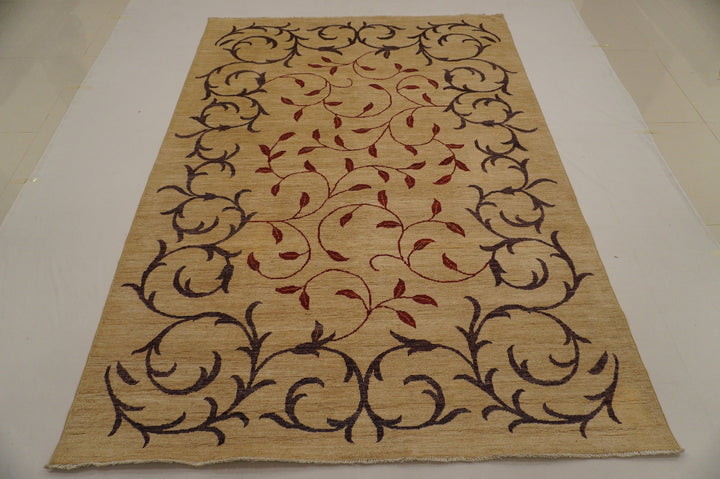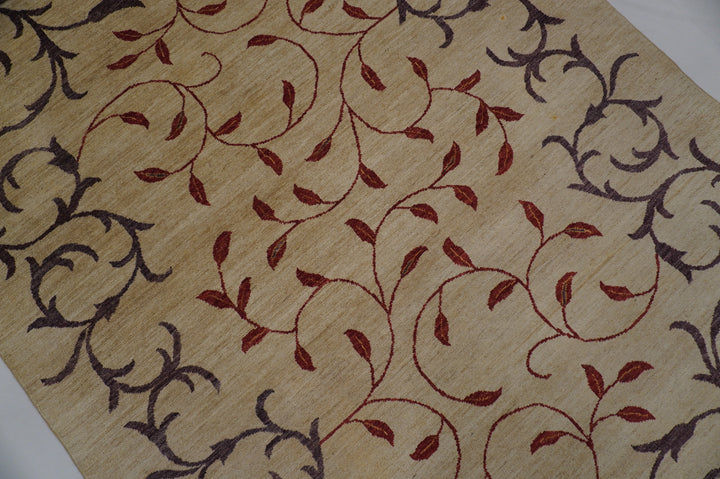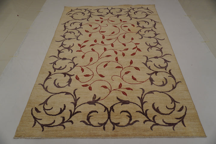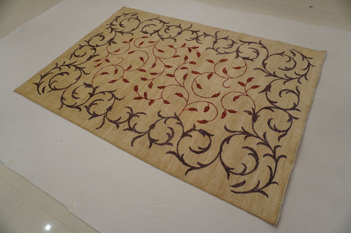 6x8 Beige Vintage Afghan Hand knotted Floral Rug