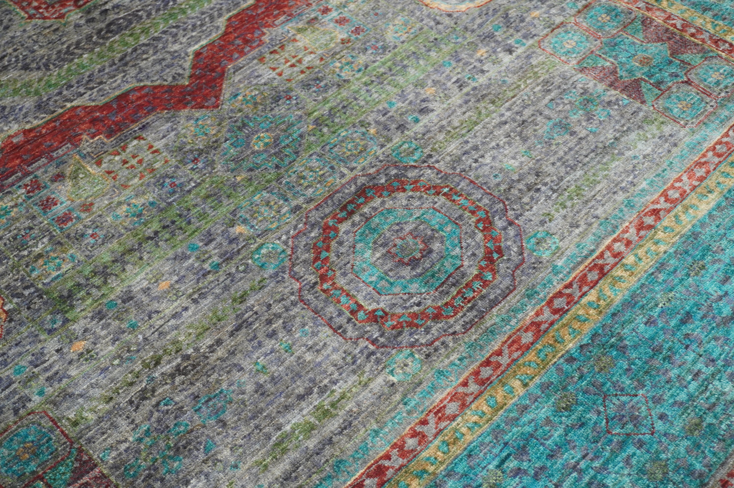 6x8 Blueish Gray Mamluk Hand Knotted Wool Afghan Medallion Rug