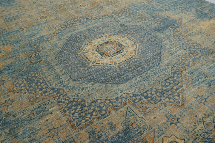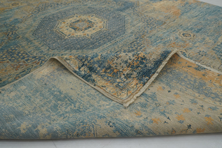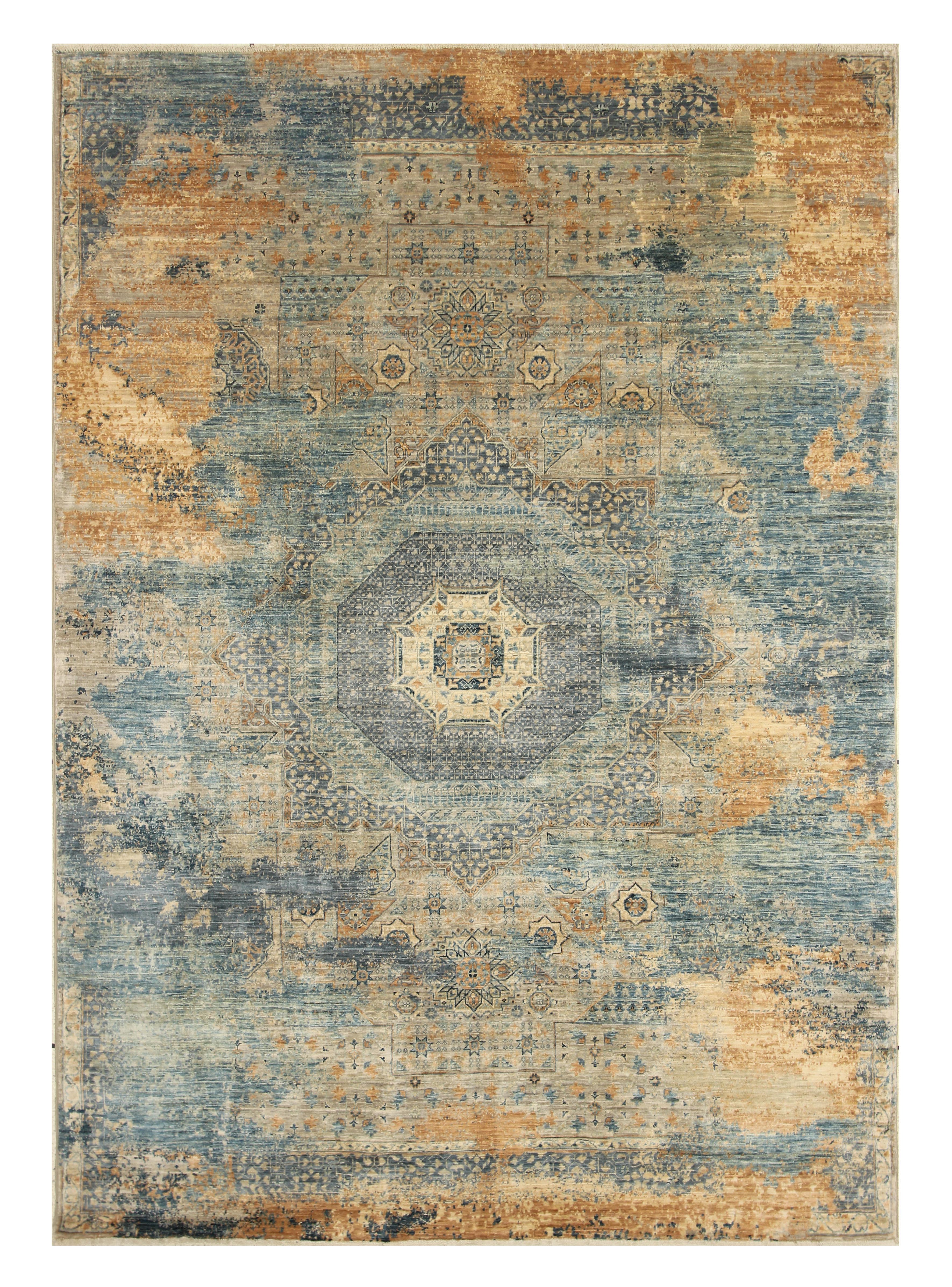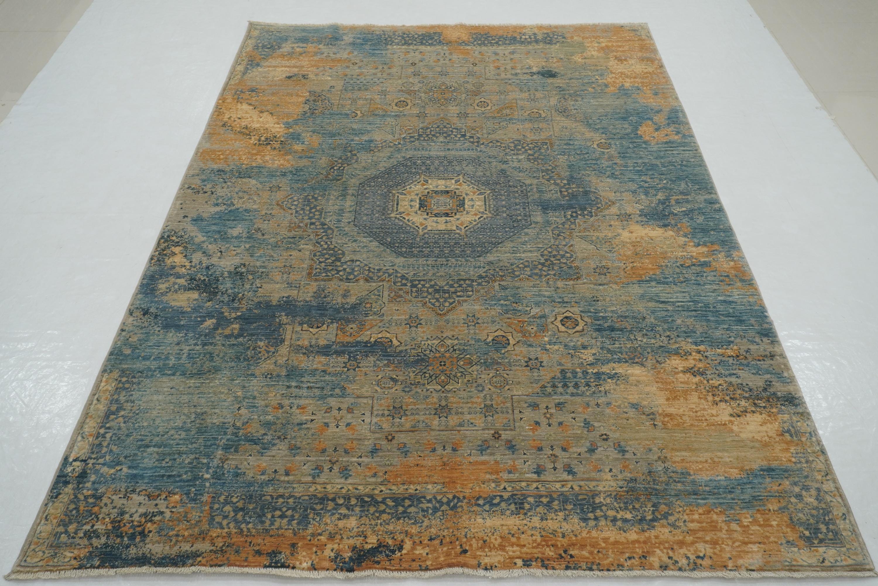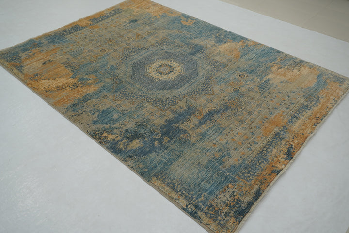 6x8 Gray Blue Modern Mamluk Turkish Hand knotted Medallion Rug